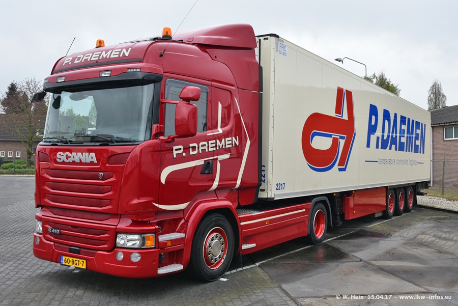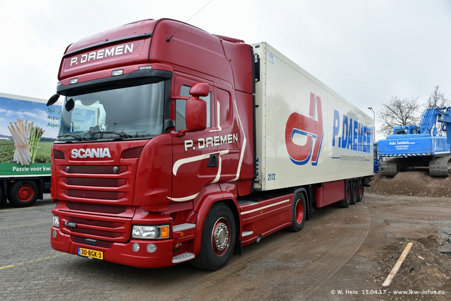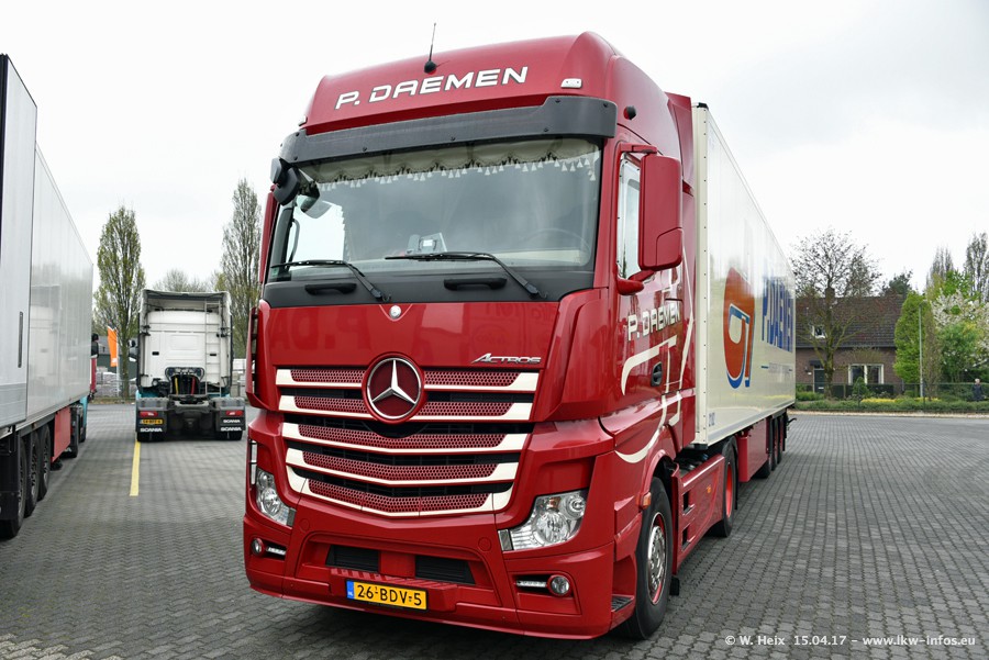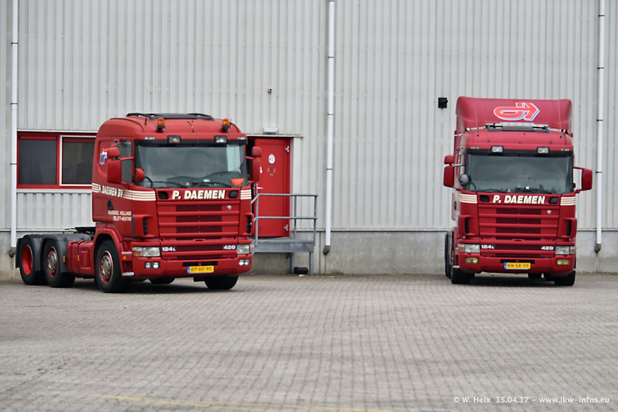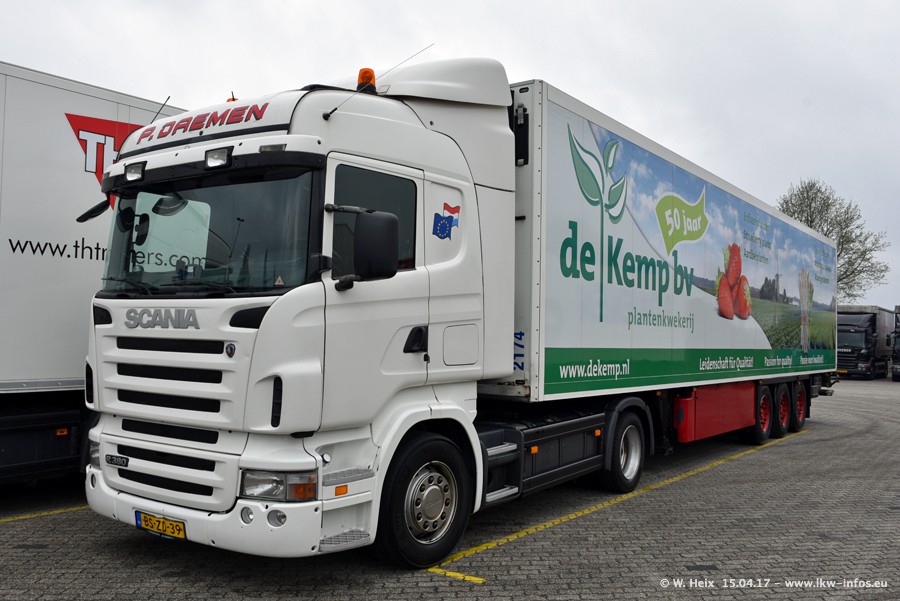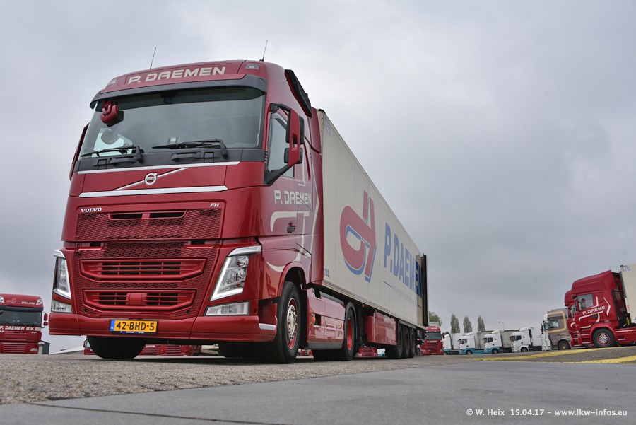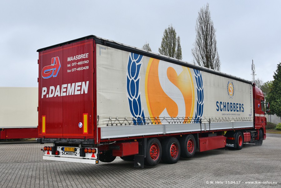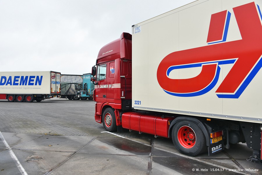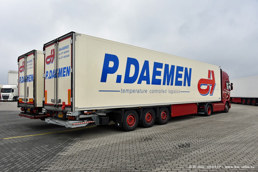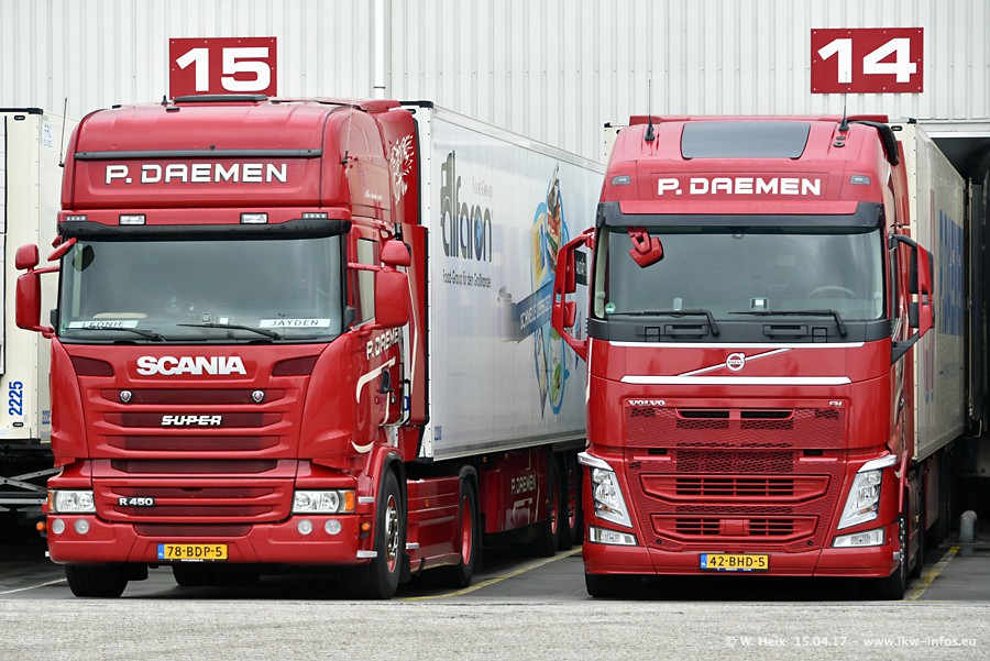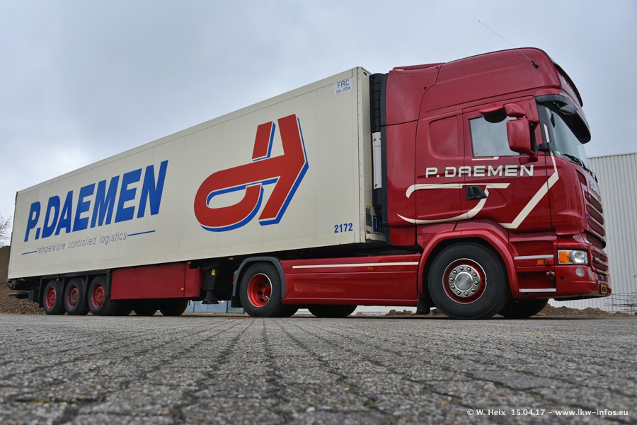 In den letzten Wochen wurde der Furhpark bei Daemen weiter modernisiert. Neu sind zwei DAF XF Euro 6 und mehrere Scania R 410 und R 450 Streamline (alte Baureihe). Und ich konnte einen neuen Auflieger entdecken, der wieder im Design eines Kunden gestaltet ist. Alle neuen Zugmaschinen sind an denn Kennzeichen mit den Buchstabenkombinationen "BJ" zu erkennen.