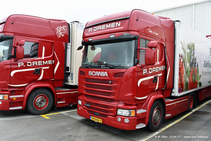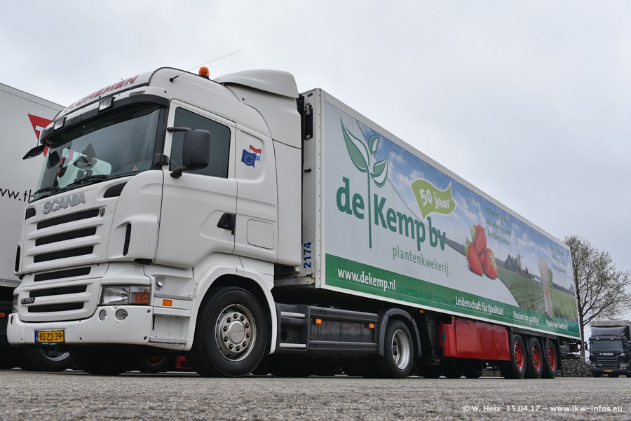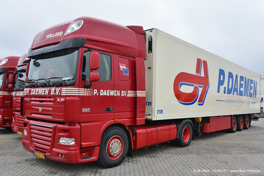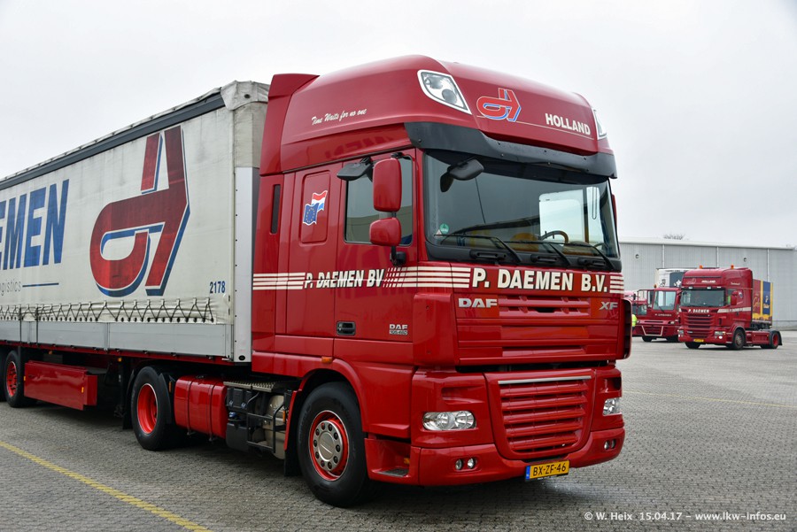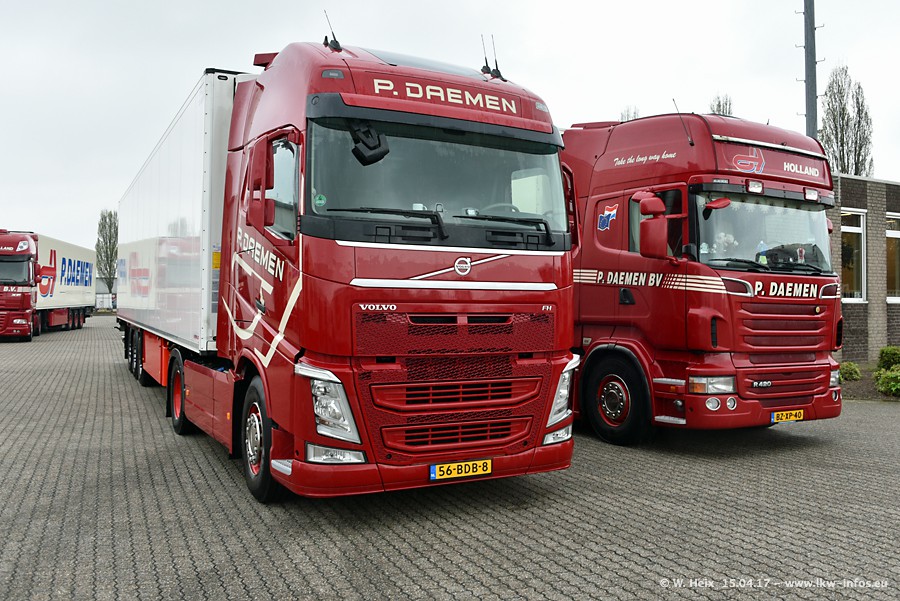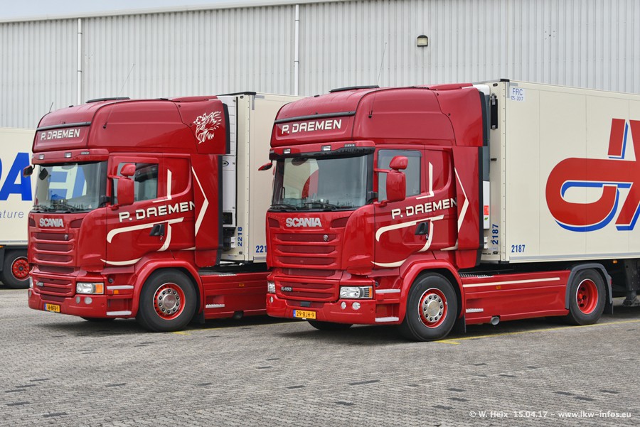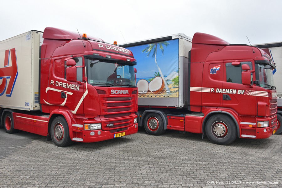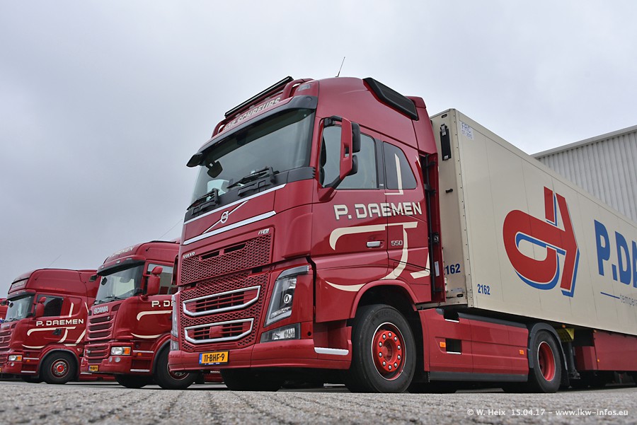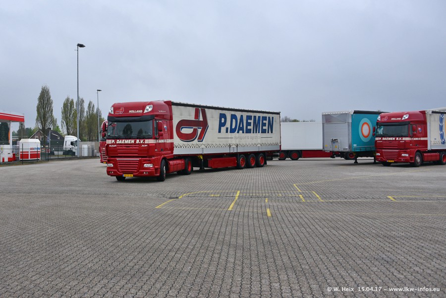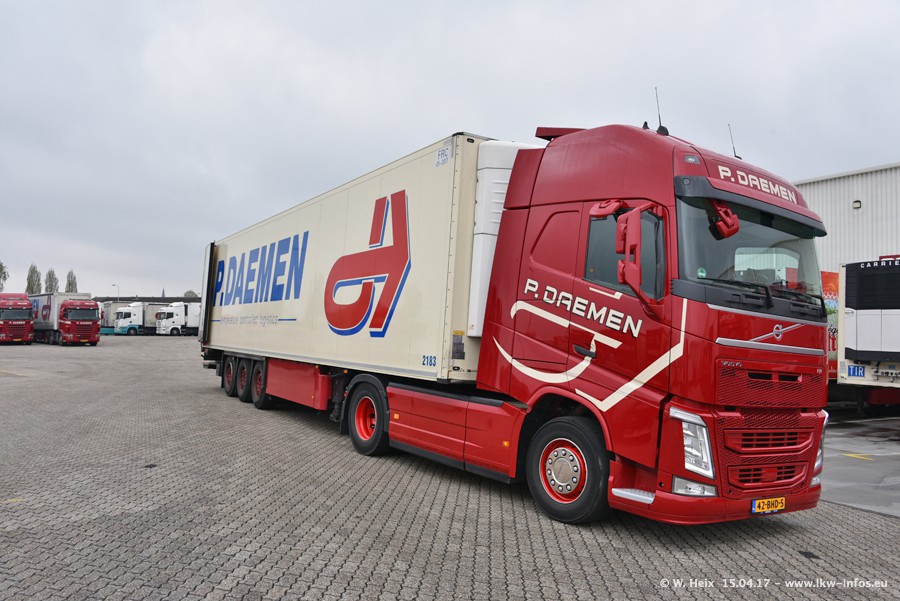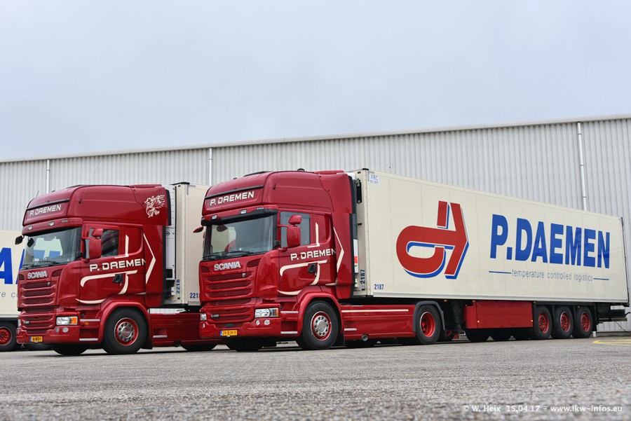 In den letzten Wochen wurde der Furhpark bei Daemen weiter modernisiert. Neu sind zwei DAF XF Euro 6 und mehrere Scania R 410 und R 450 Streamline (alte Baureihe). Und ich konnte einen neuen Auflieger entdecken, der wieder im Design eines Kunden gestaltet ist. Alle neuen Zugmaschinen sind an denn Kennzeichen mit den Buchstabenkombinationen "BJ" zu erkennen.