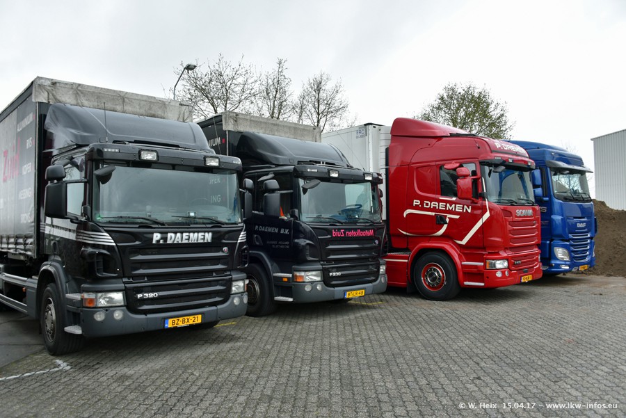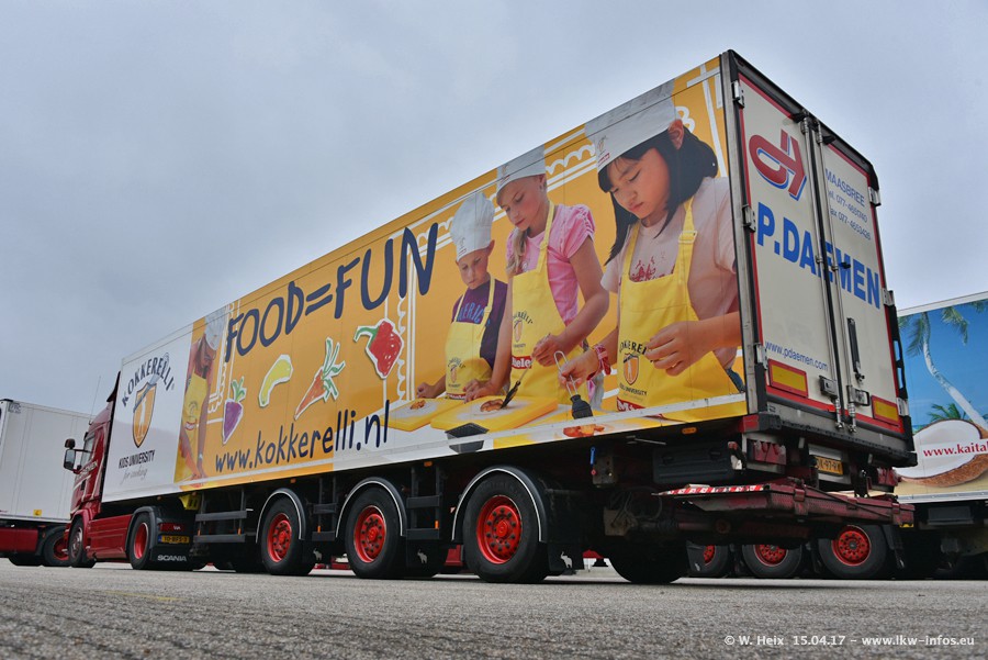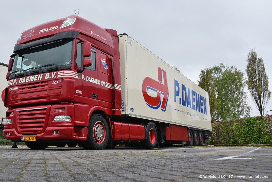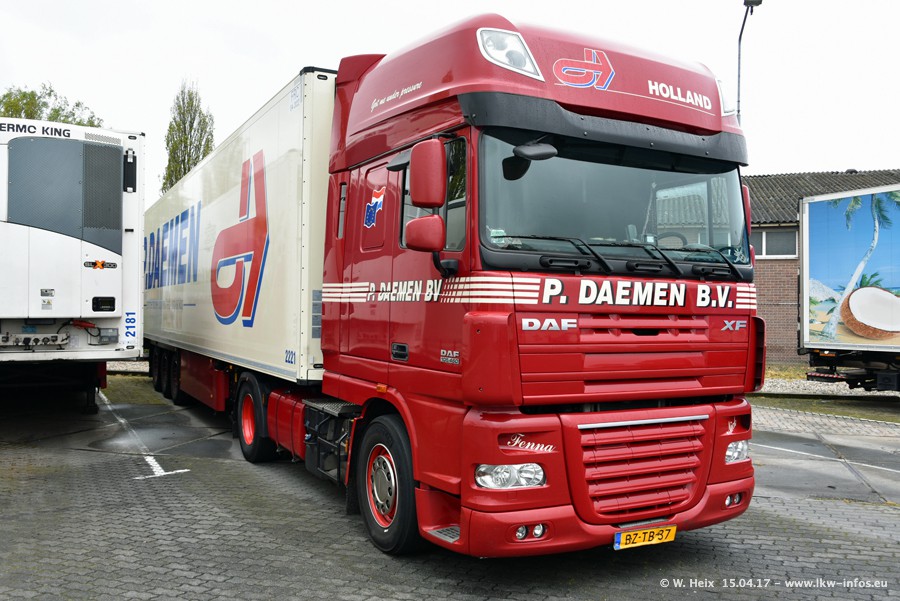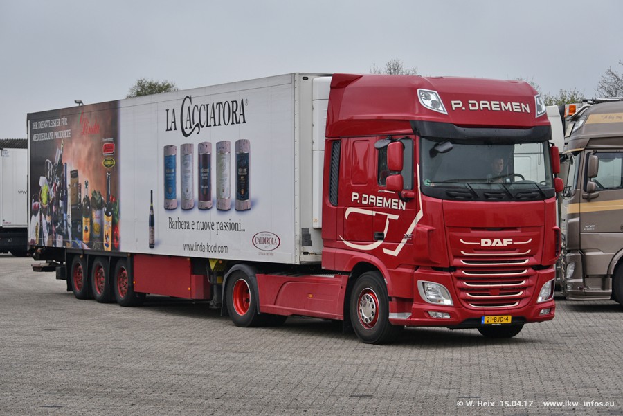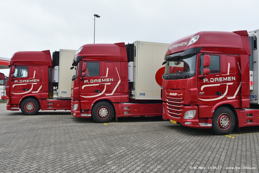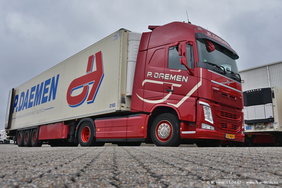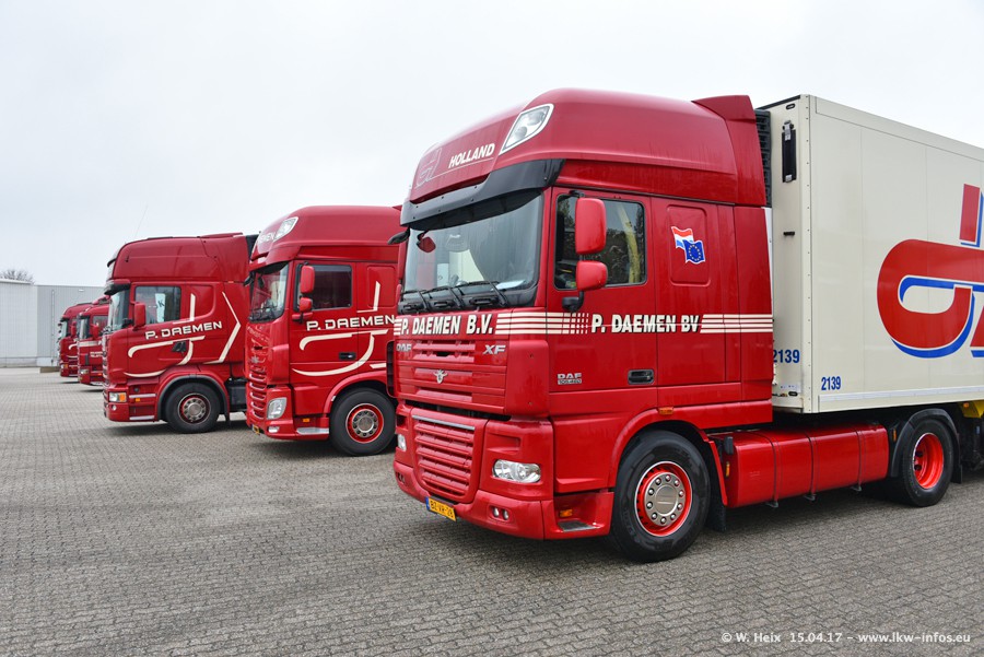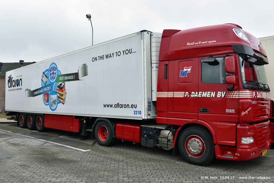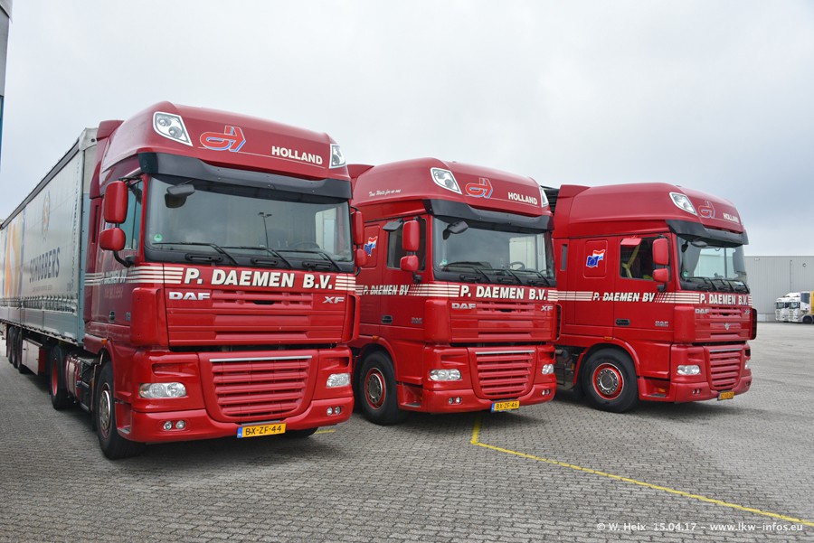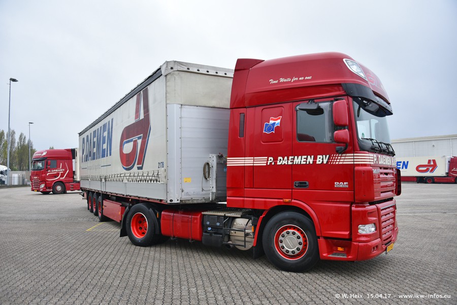 In den letzten Wochen wurde der Furhpark bei Daemen weiter modernisiert. Neu sind zwei DAF XF Euro 6 und mehrere Scania R 410 und R 450 Streamline (alte Baureihe). Und ich konnte einen neuen Auflieger entdecken, der wieder im Design eines Kunden gestaltet ist. Alle neuen Zugmaschinen sind an denn Kennzeichen mit den Buchstabenkombinationen "BJ" zu erkennen.