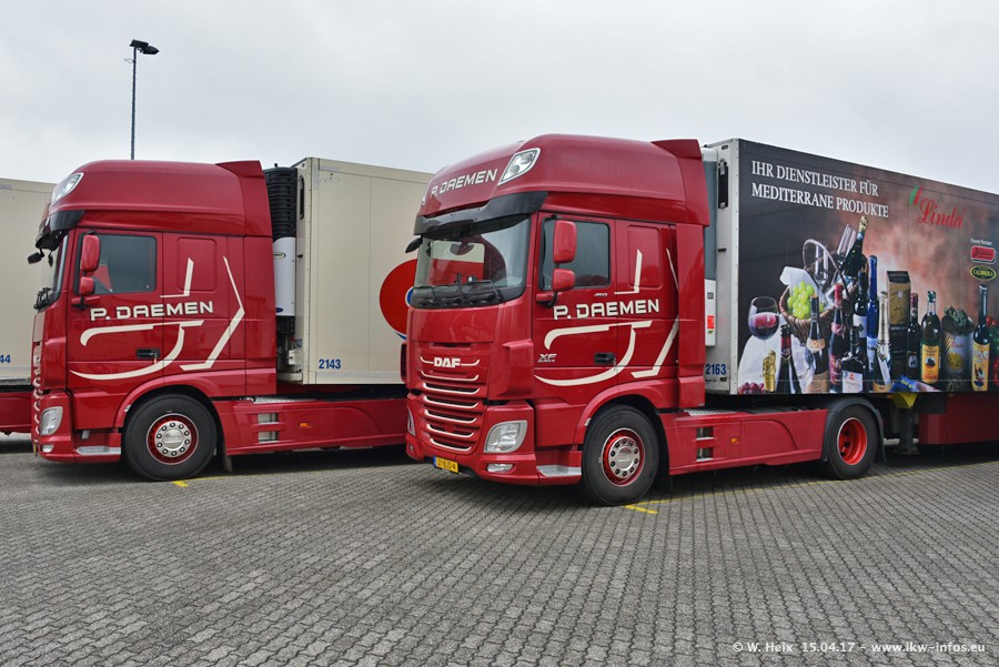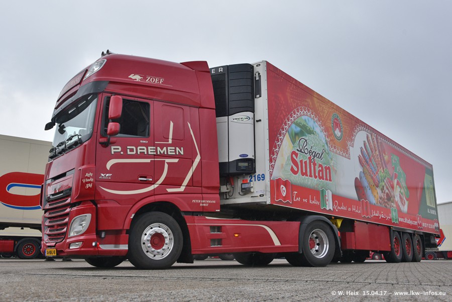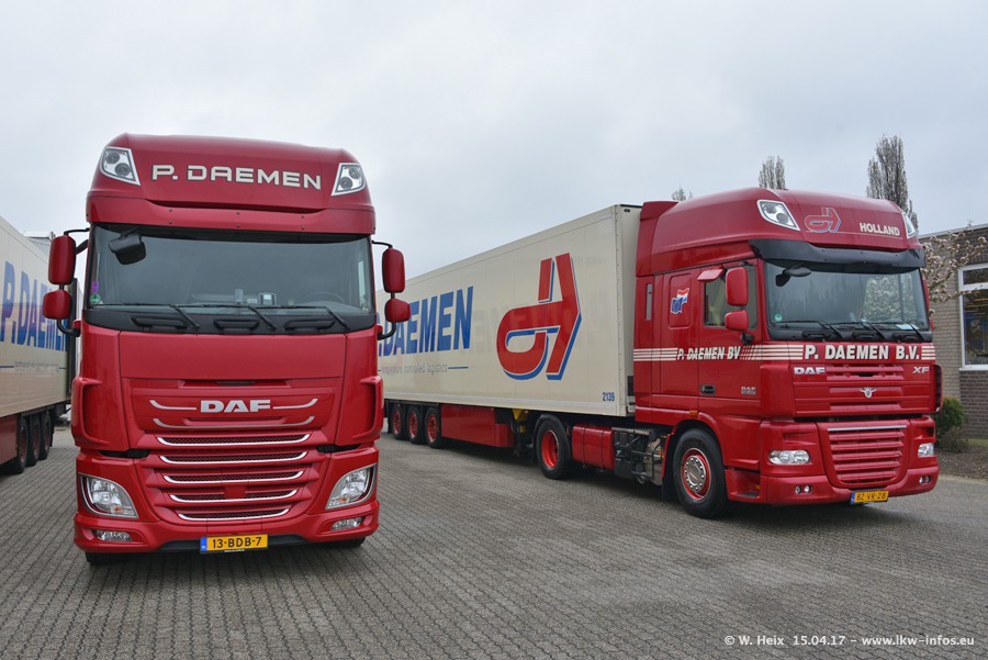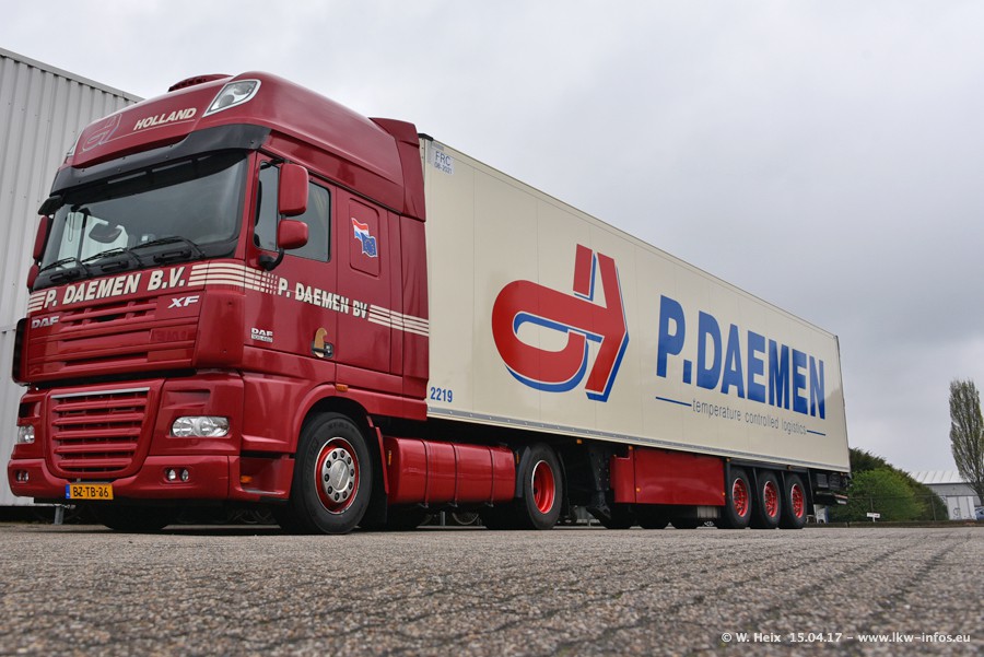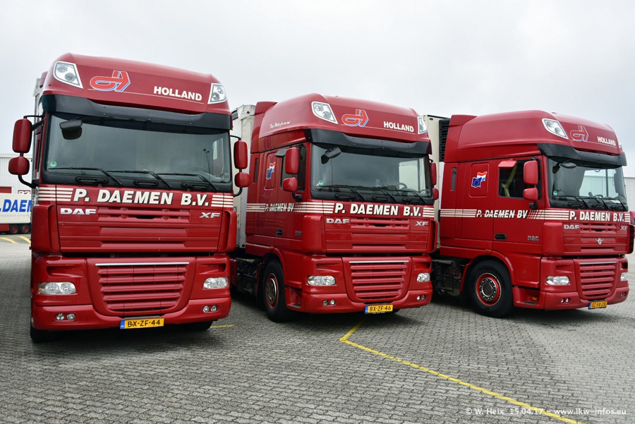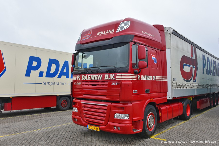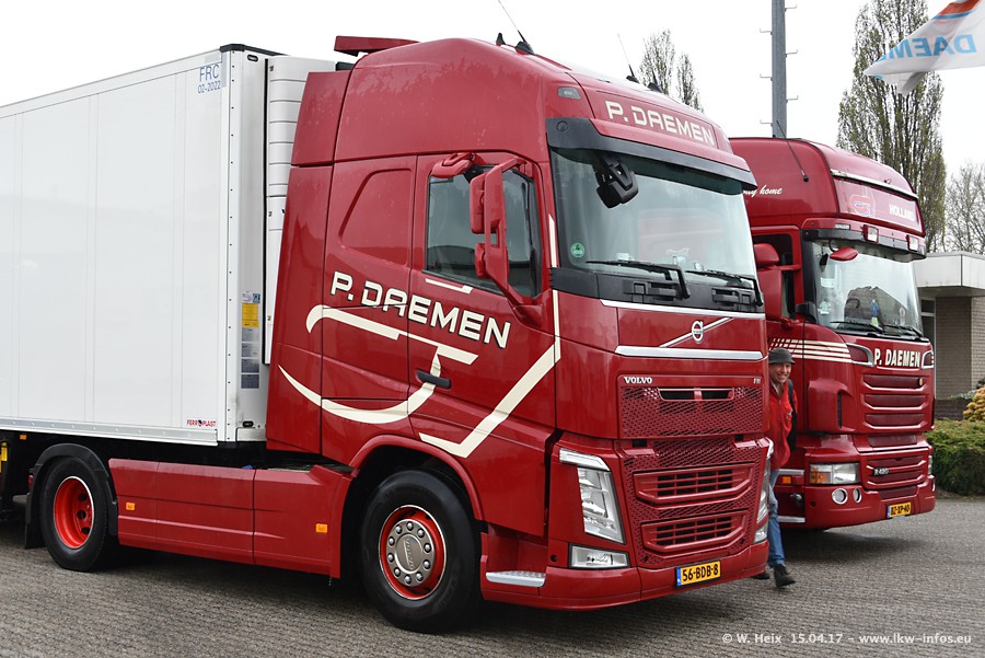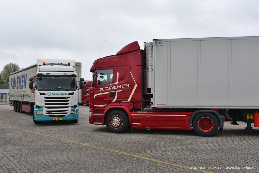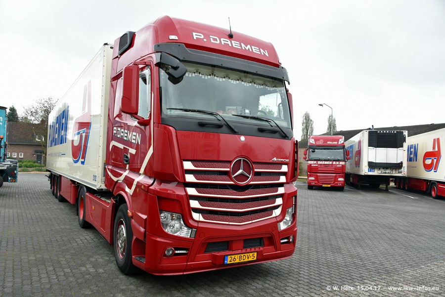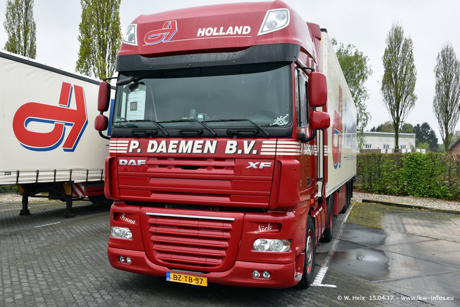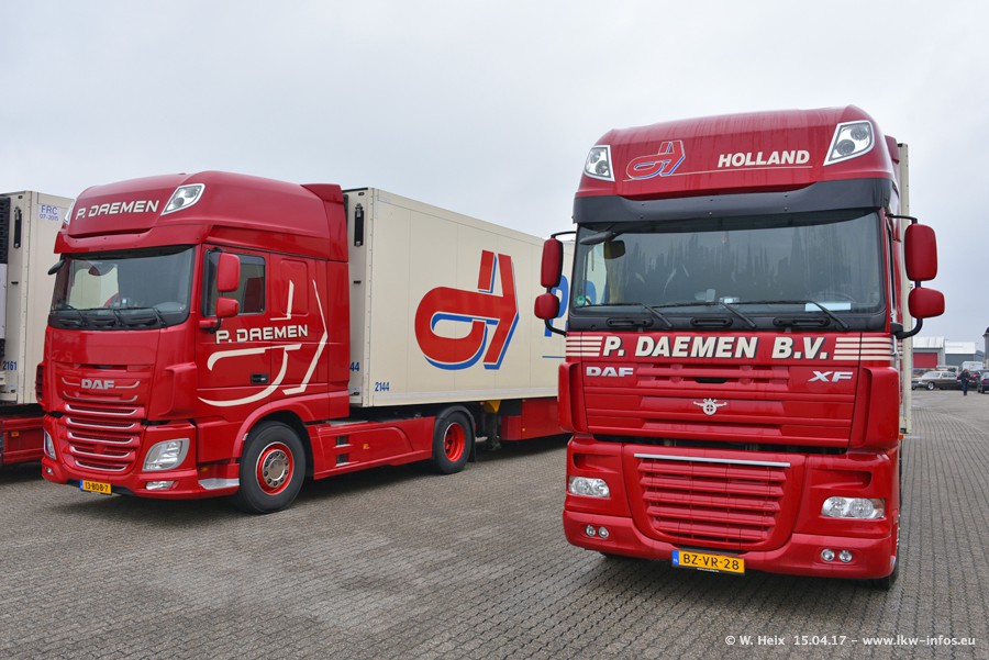In den letzten Wochen wurde der Furhpark bei Daemen weiter modernisiert. Neu sind zwei DAF XF Euro 6 und mehrere Scania R 410 und R 450 Streamline (alte Baureihe). Und ich konnte einen neuen Auflieger entdecken, der wieder im Design eines Kunden gestaltet ist. Alle neuen Zugmaschinen sind an denn Kennzeichen mit den Buchstabenkombinationen "BJ" zu erkennen.