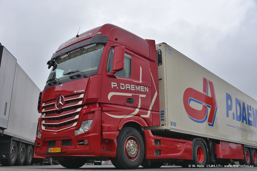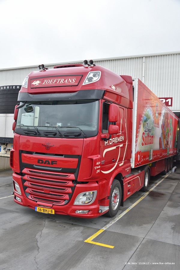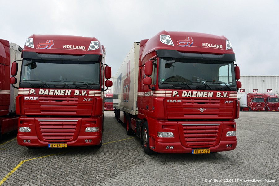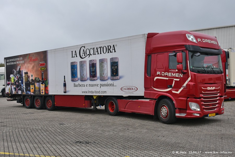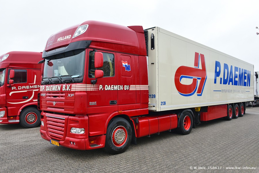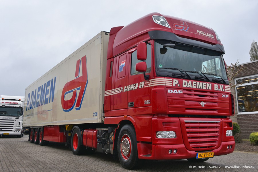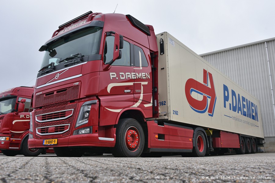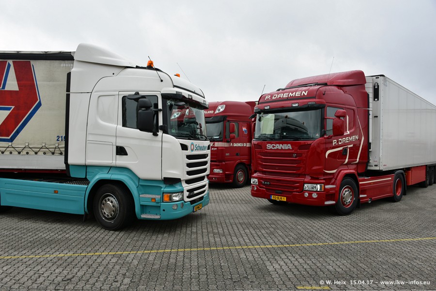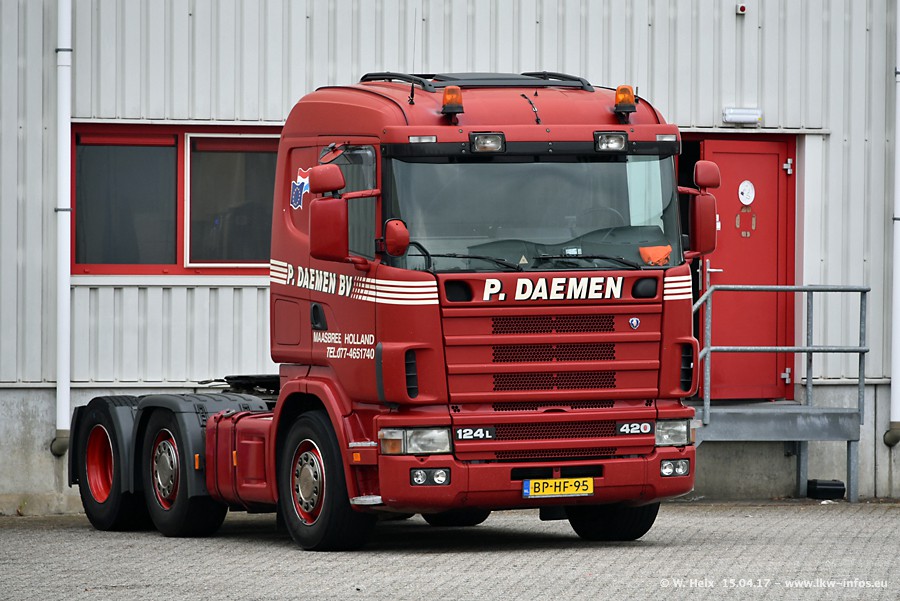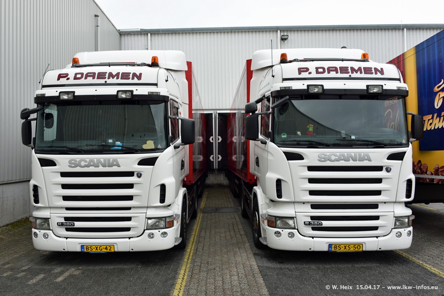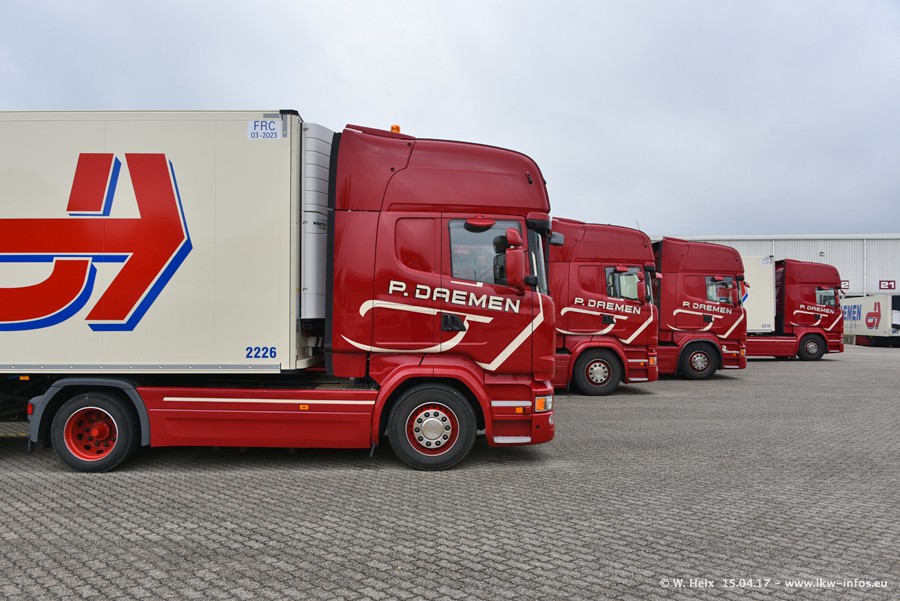 In den letzten Wochen wurde der Furhpark bei Daemen weiter modernisiert. Neu sind zwei DAF XF Euro 6 und mehrere Scania R 410 und R 450 Streamline (alte Baureihe). Und ich konnte einen neuen Auflieger entdecken, der wieder im Design eines Kunden gestaltet ist. Alle neuen Zugmaschinen sind an denn Kennzeichen mit den Buchstabenkombinationen "BJ" zu erkennen.