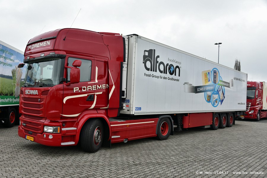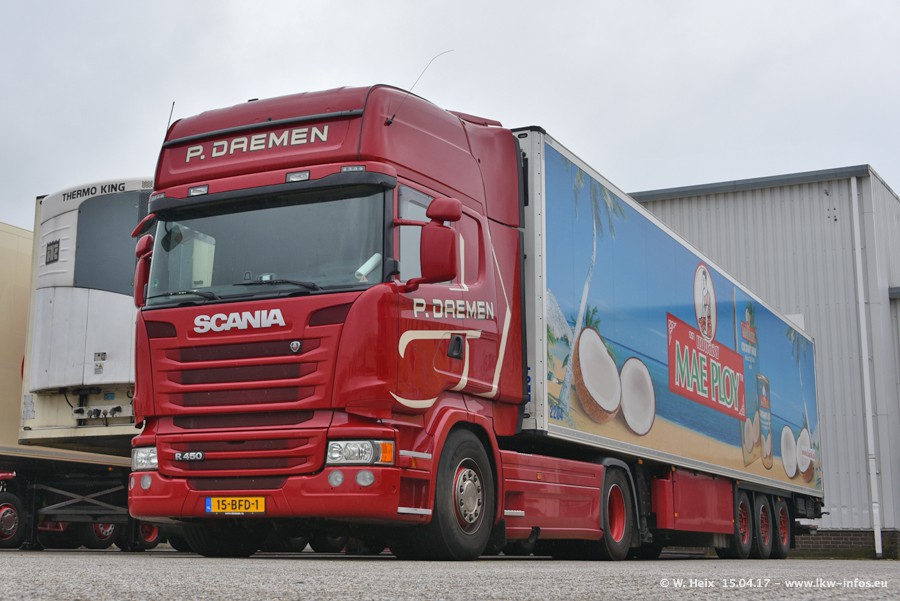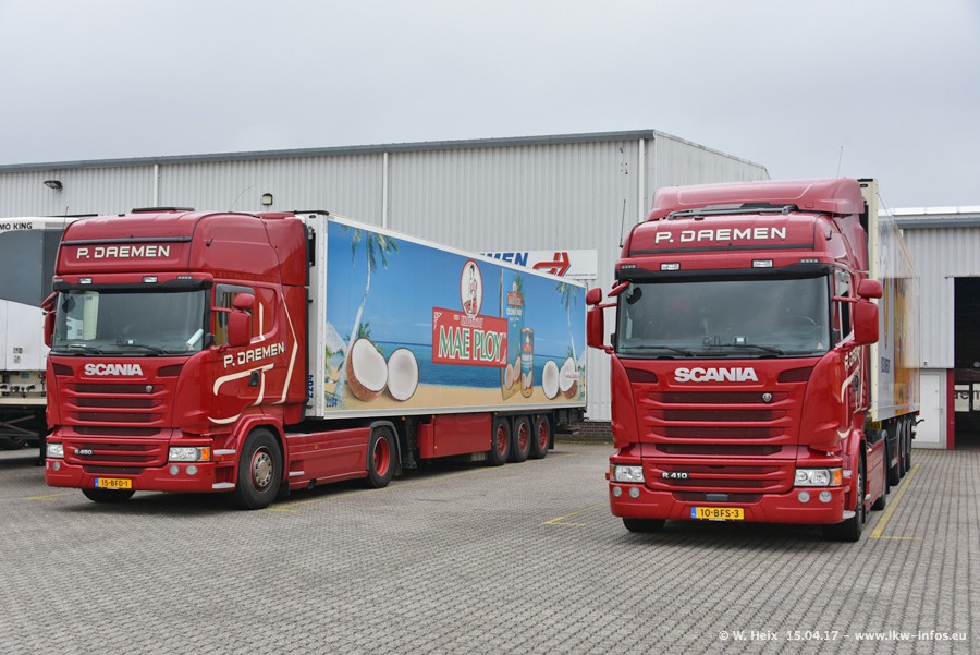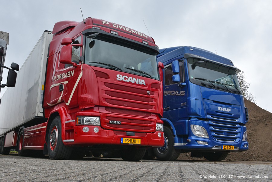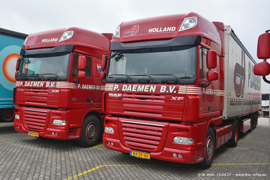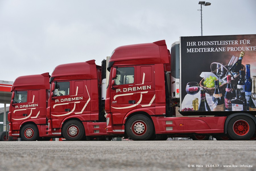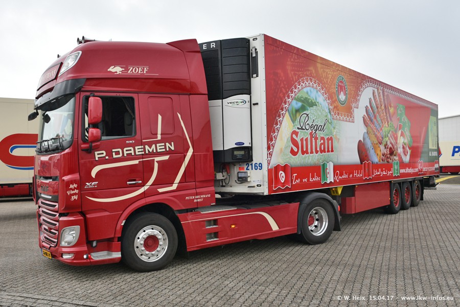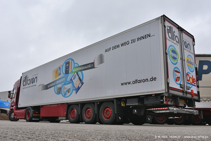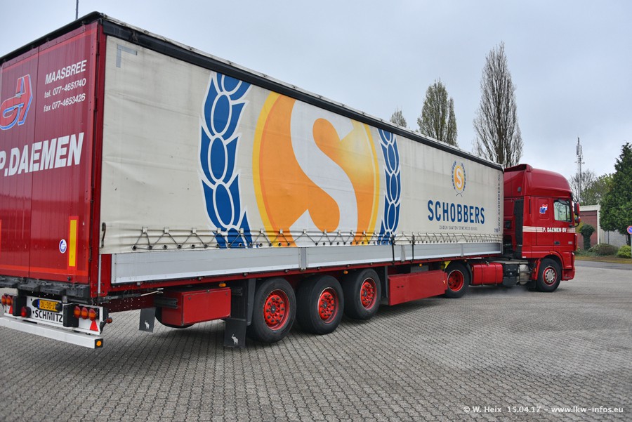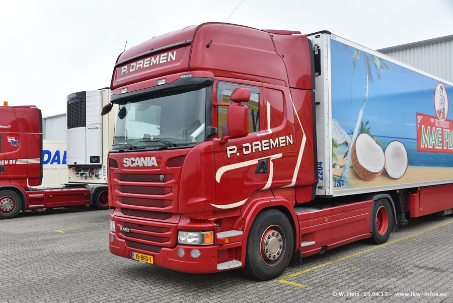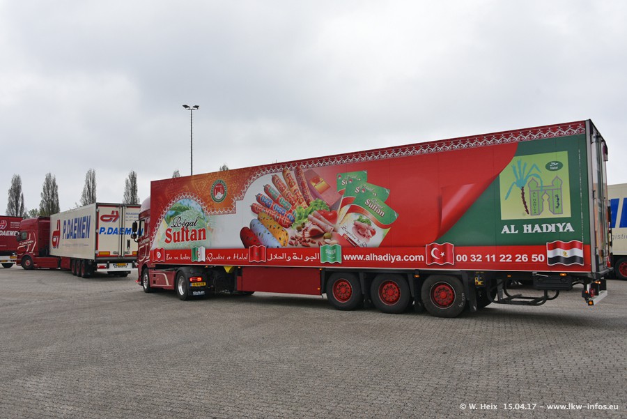 In den letzten Wochen wurde der Furhpark bei Daemen weiter modernisiert. Neu sind zwei DAF XF Euro 6 und mehrere Scania R 410 und R 450 Streamline (alte Baureihe). Und ich konnte einen neuen Auflieger entdecken, der wieder im Design eines Kunden gestaltet ist. Alle neuen Zugmaschinen sind an denn Kennzeichen mit den Buchstabenkombinationen "BJ" zu erkennen.