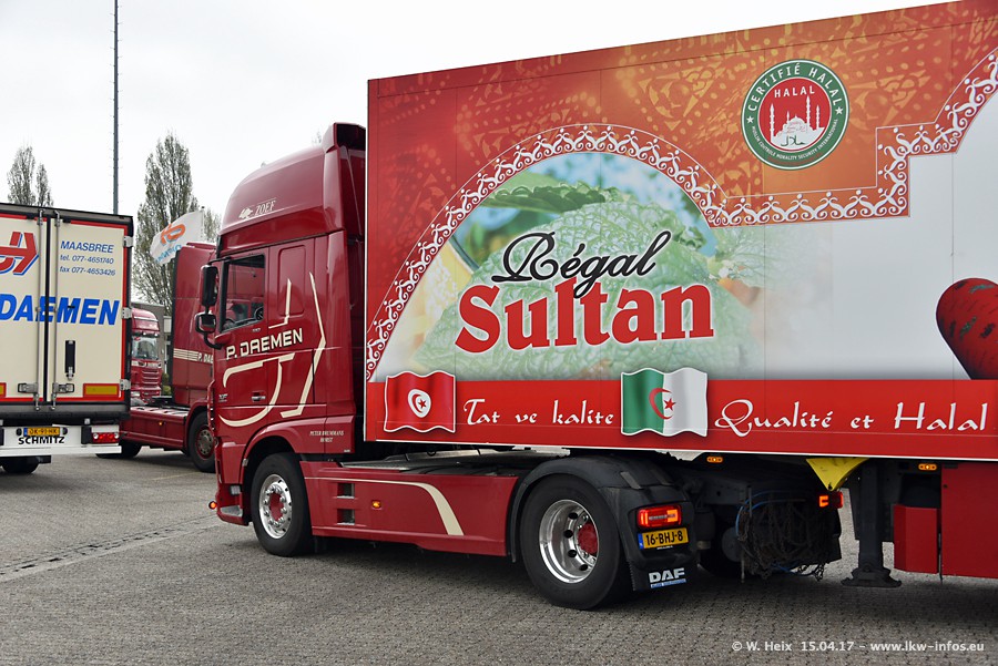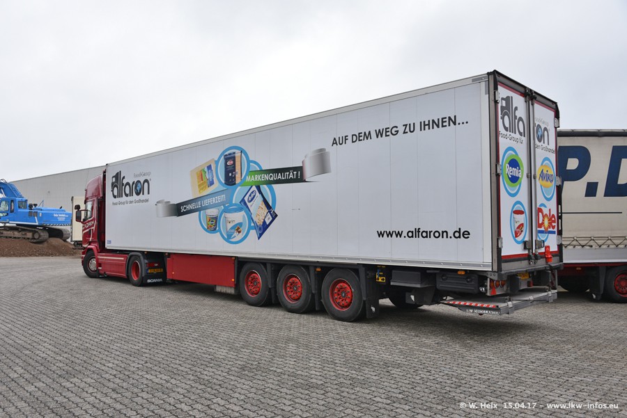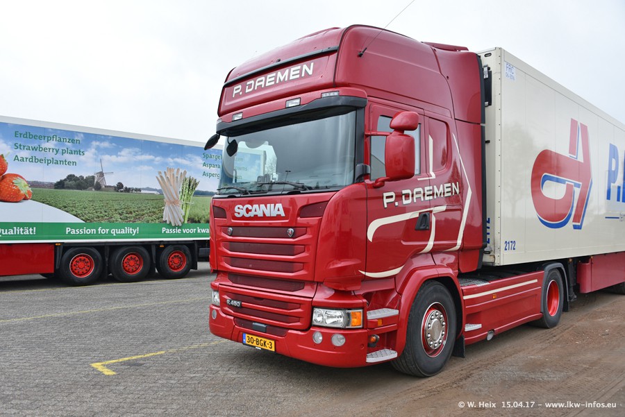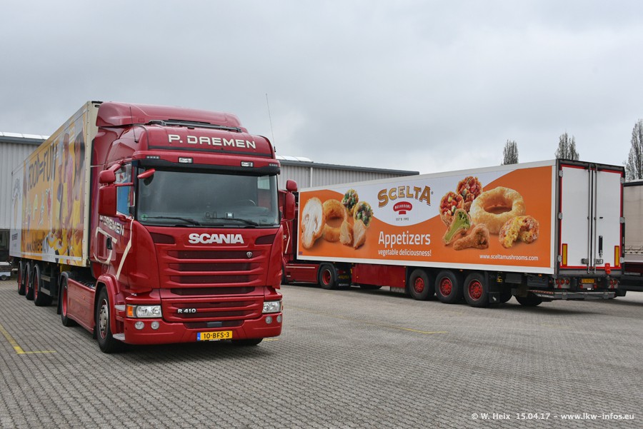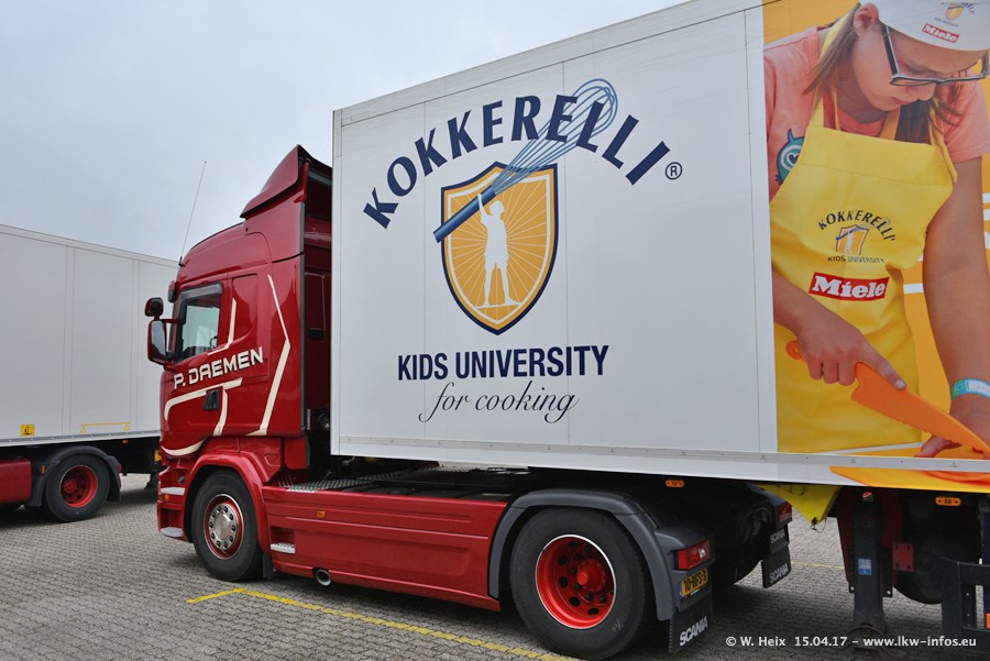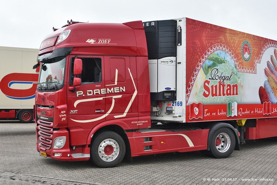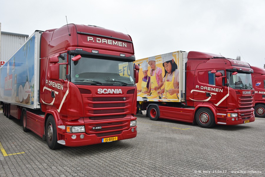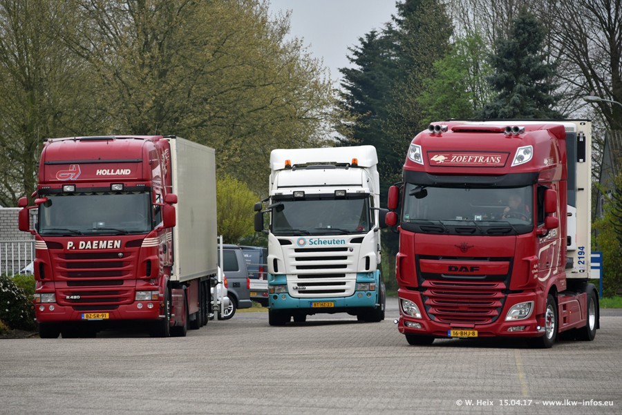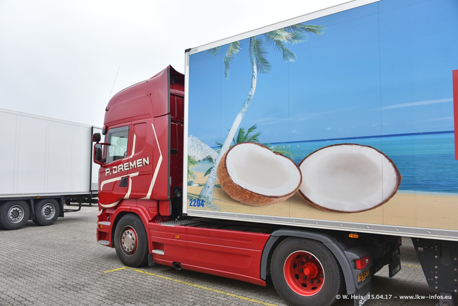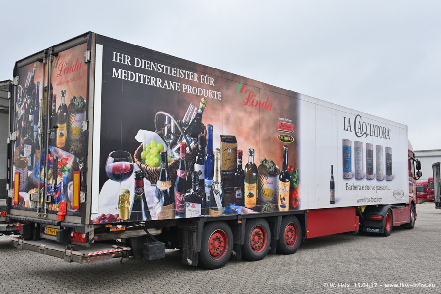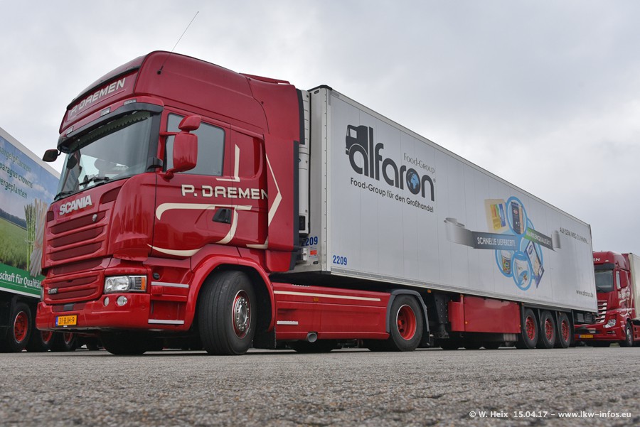 In den letzten Wochen wurde der Furhpark bei Daemen weiter modernisiert. Neu sind zwei DAF XF Euro 6 und mehrere Scania R 410 und R 450 Streamline (alte Baureihe). Und ich konnte einen neuen Auflieger entdecken, der wieder im Design eines Kunden gestaltet ist. Alle neuen Zugmaschinen sind an denn Kennzeichen mit den Buchstabenkombinationen "BJ" zu erkennen.