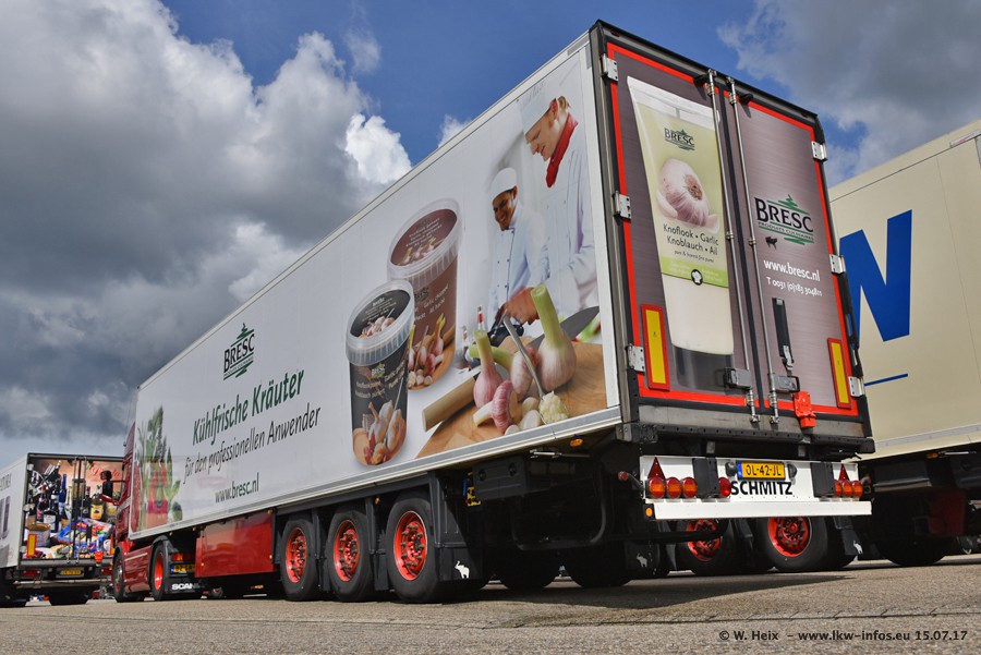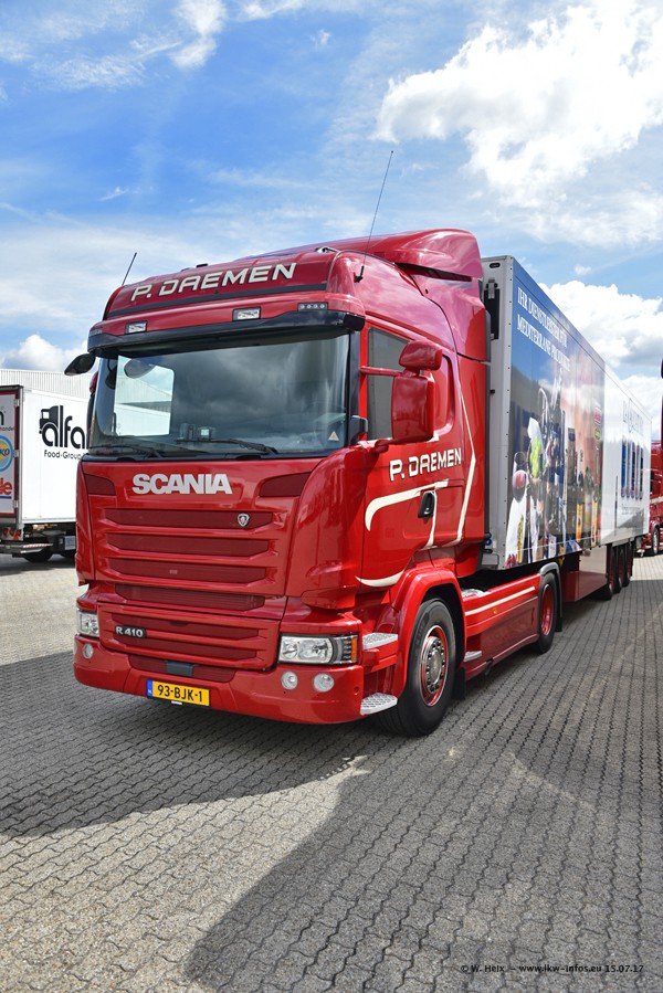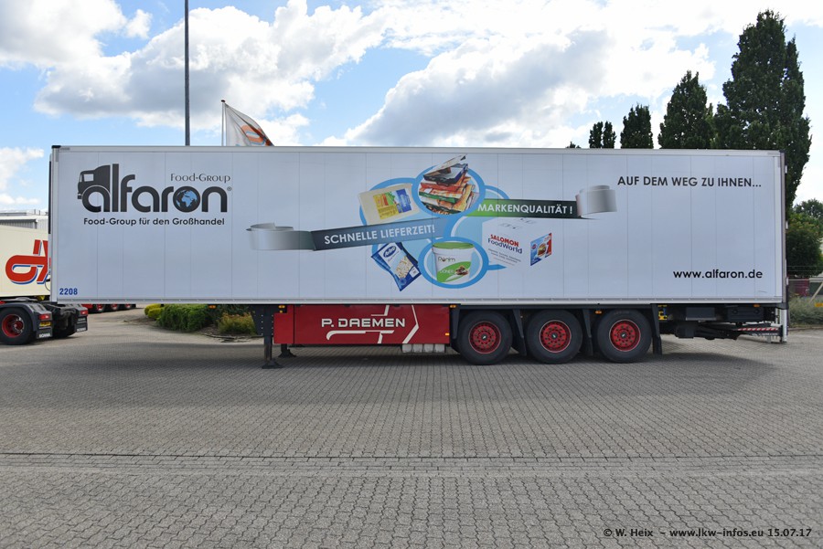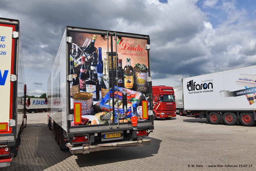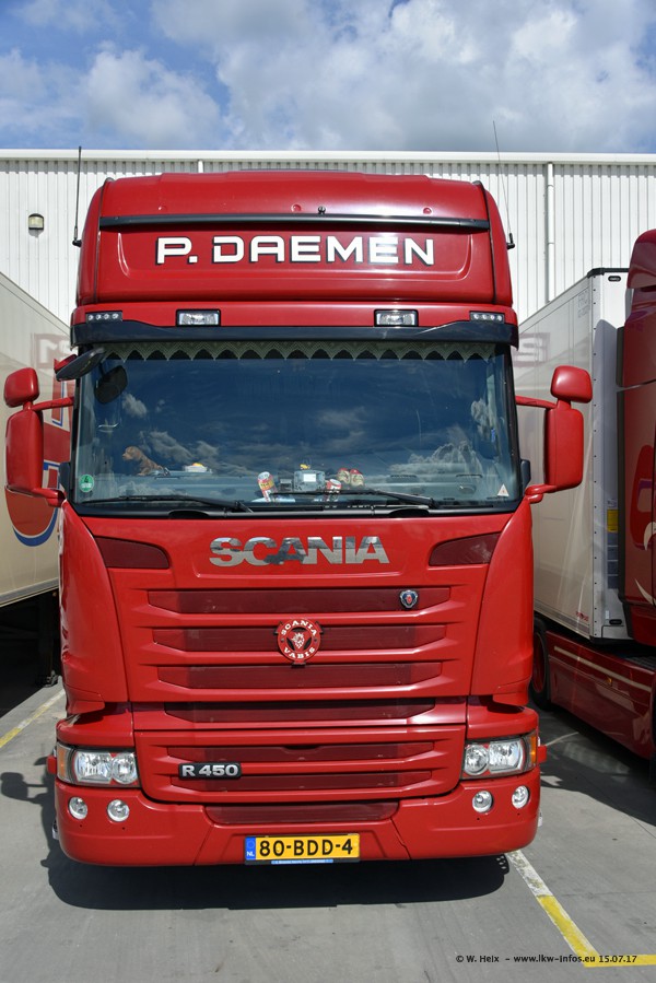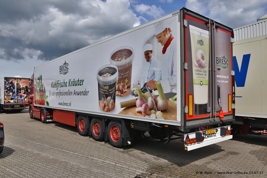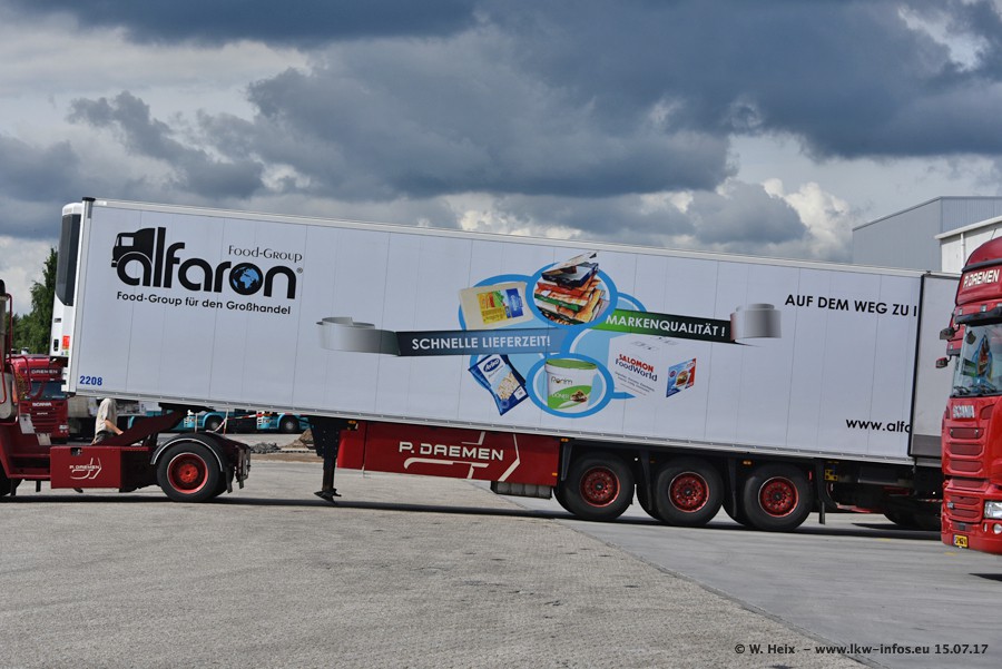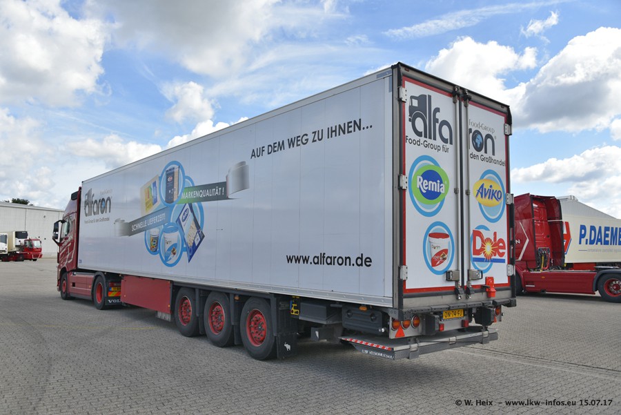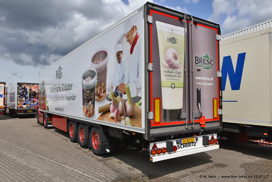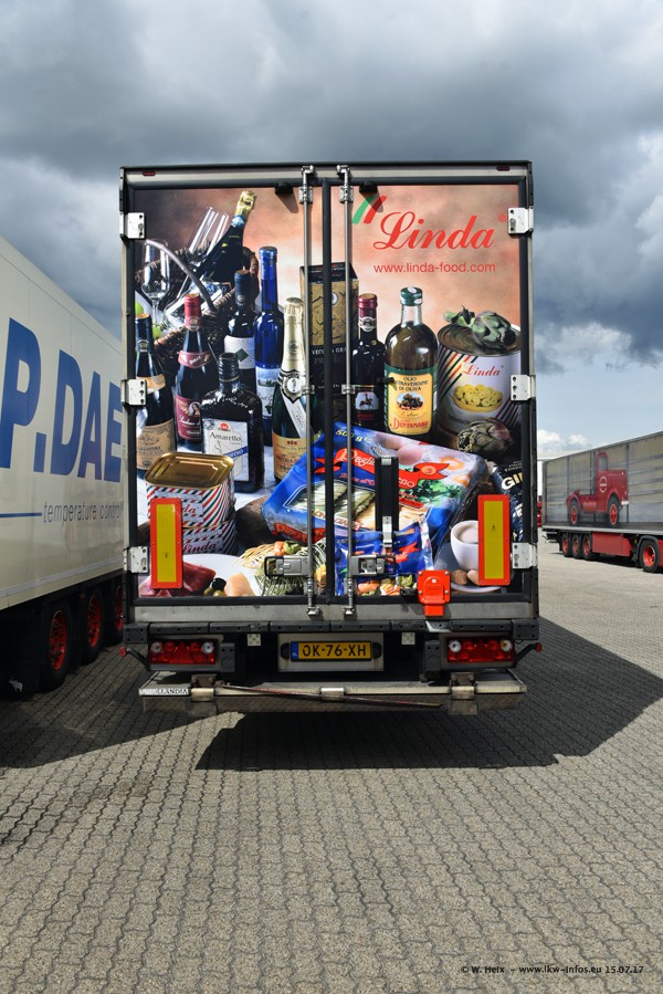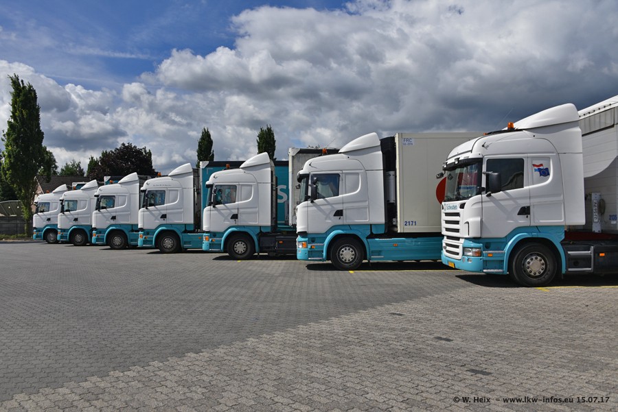 Zur Zeit wird auf dem Gelände gebaut (Erweiterung der Lagerhallen), darum ist es derzeit etwas eng. Das hatte den Vorteil, dass einige LKW außerhalb vom Firmengelände standen (gut für schöne Fotos). Und insgesamt waren diesmal weniger LKW zuhause als üblich. Das hatte den Vorteil, dass ich viele Fahrzeuge besser fotografieren konnte. Besonders interessant finde ich immer wieder die Aurlieger, die im Design der Kunden/Auftraggeber gestaltet sind. Und das werden immer mehr.