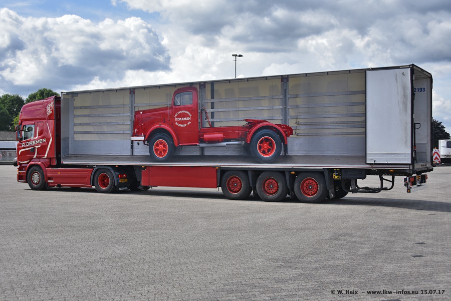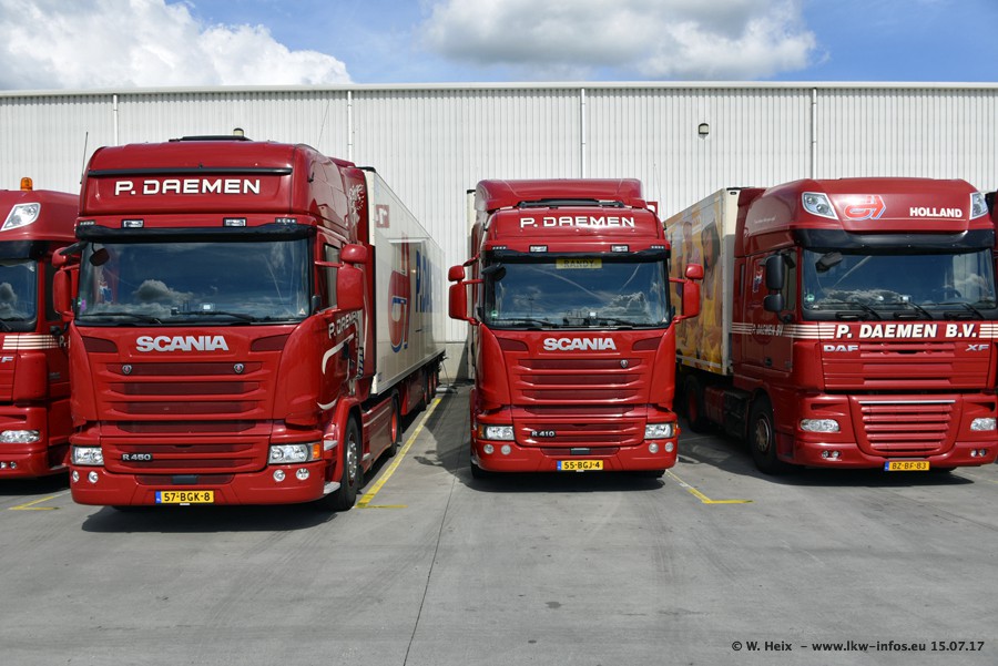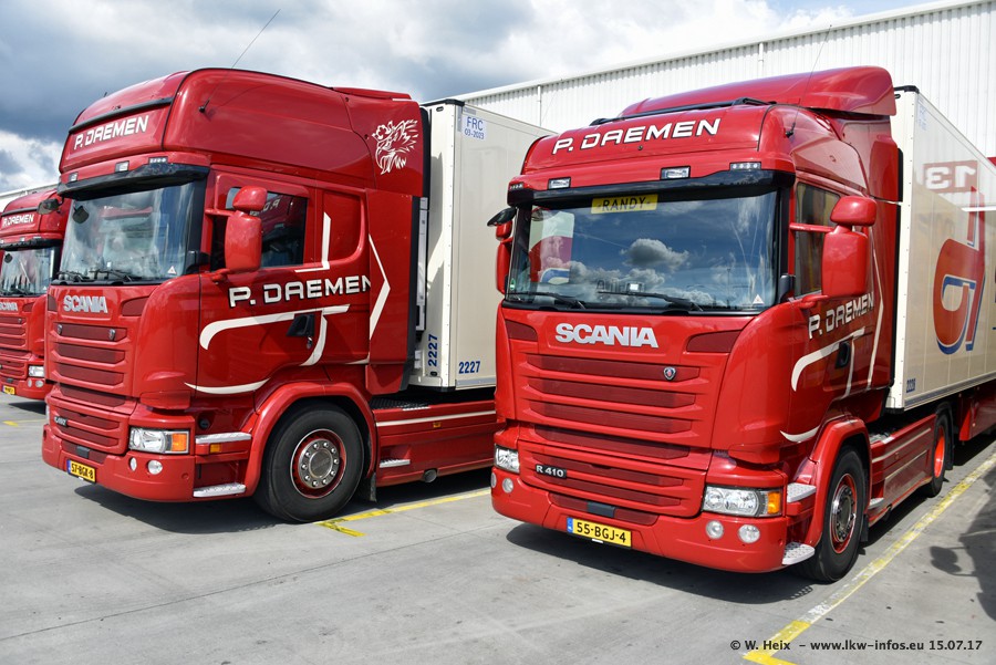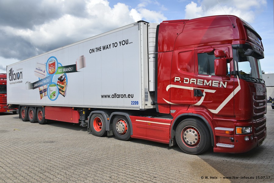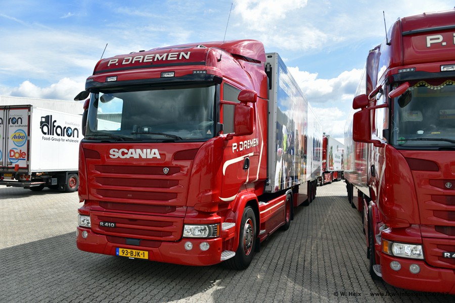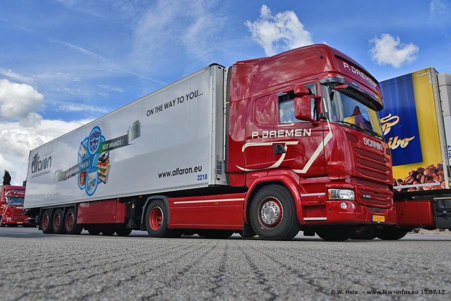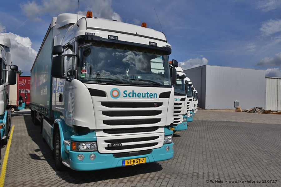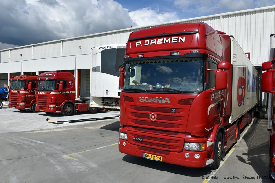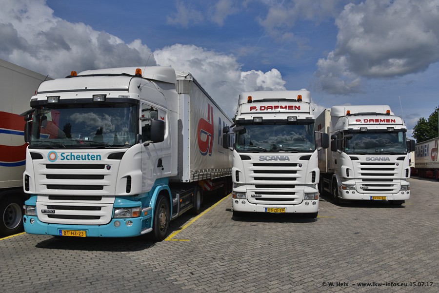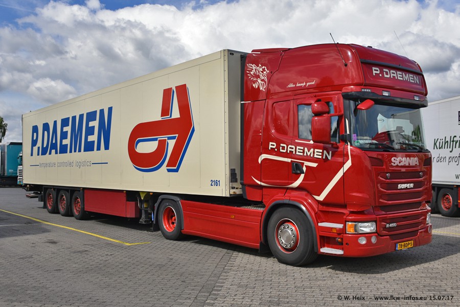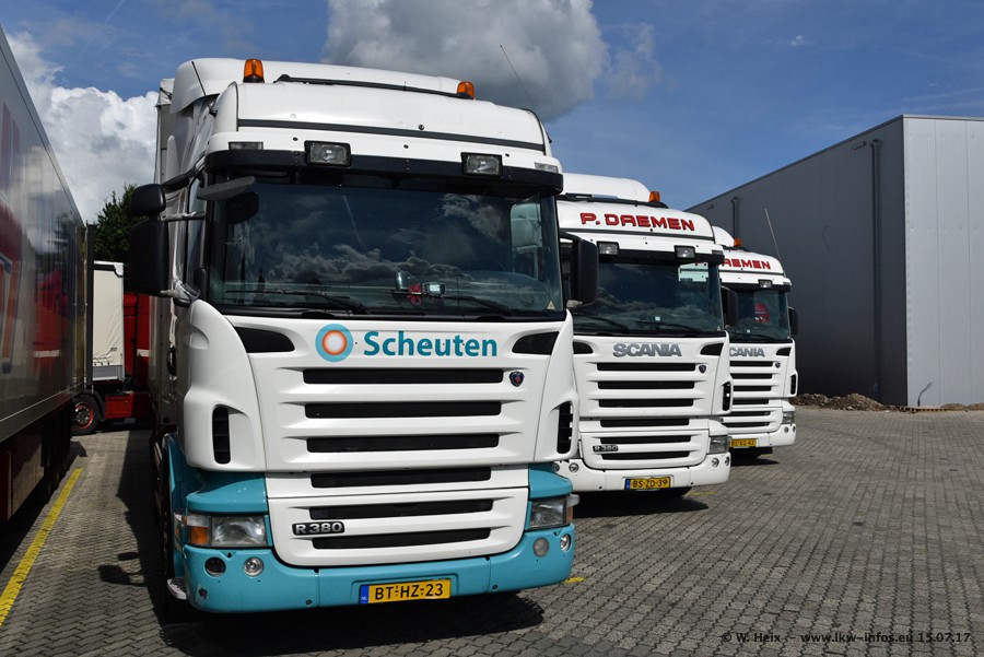 Zur Zeit wird auf dem Gelände gebaut (Erweiterung der Lagerhallen), darum ist es derzeit etwas eng. Das hatte den Vorteil, dass einige LKW außerhalb vom Firmengelände standen (gut für schöne Fotos). Und insgesamt waren diesmal weniger LKW zuhause als üblich. Das hatte den Vorteil, dass ich viele Fahrzeuge besser fotografieren konnte. Besonders interessant finde ich immer wieder die Aurlieger, die im Design der Kunden/Auftraggeber gestaltet sind. Und das werden immer mehr.