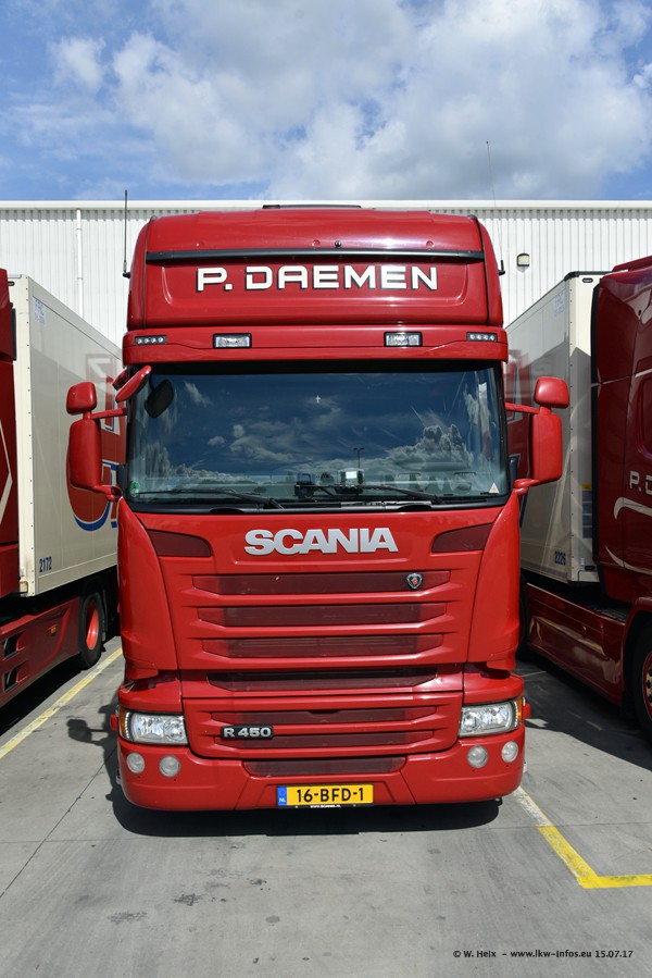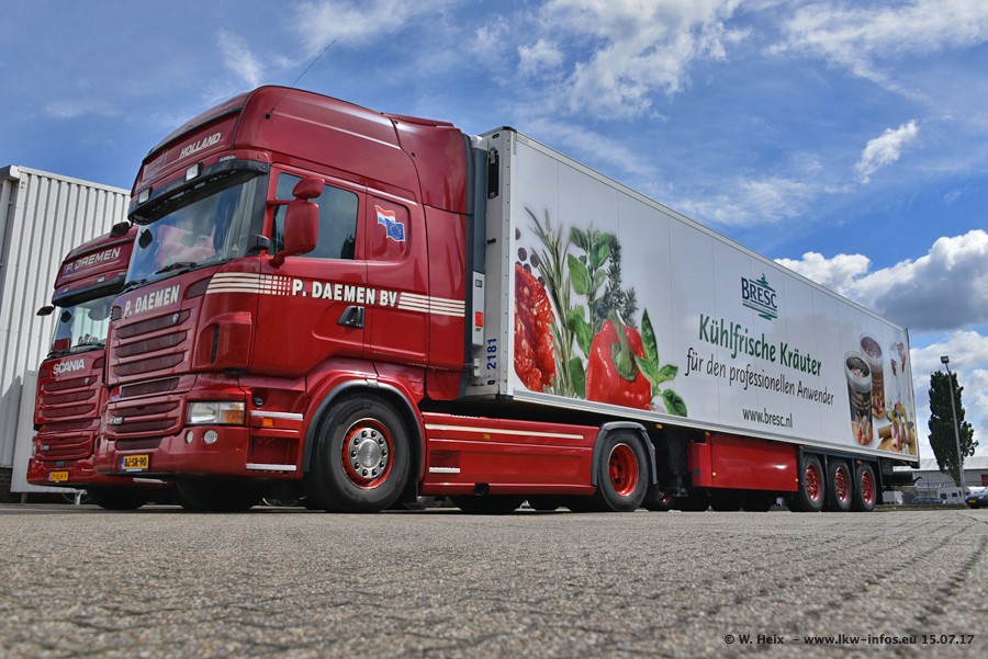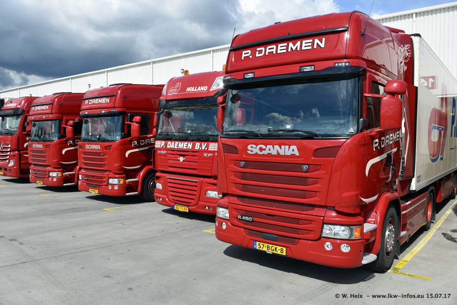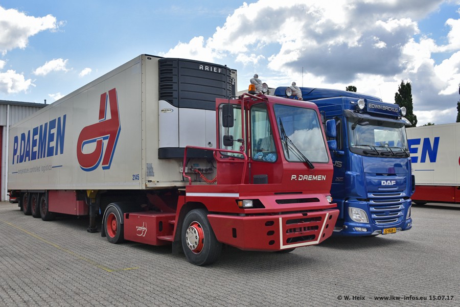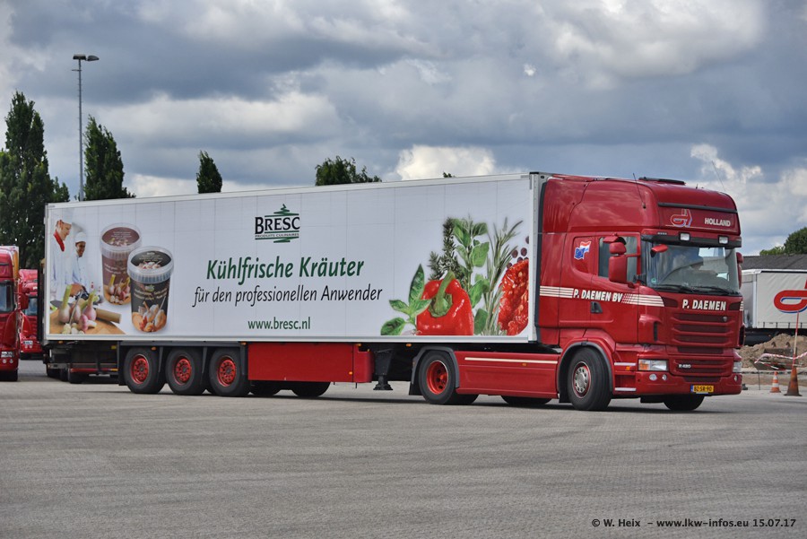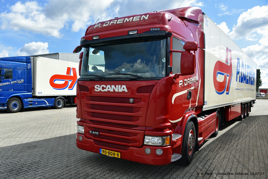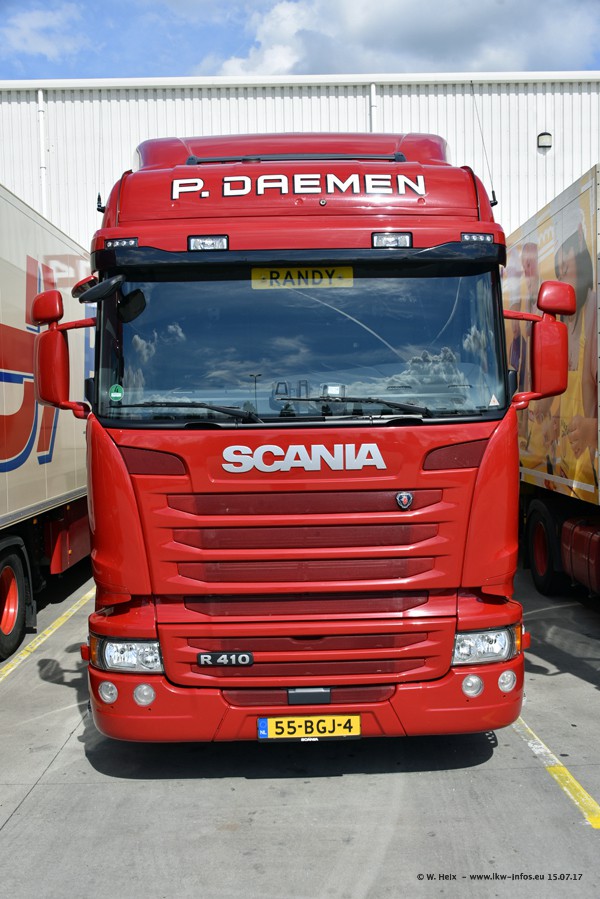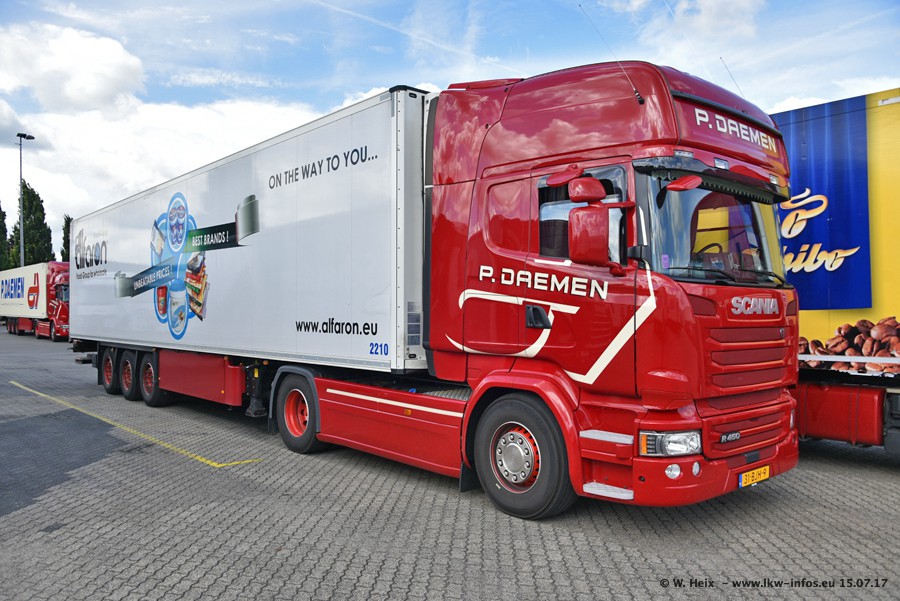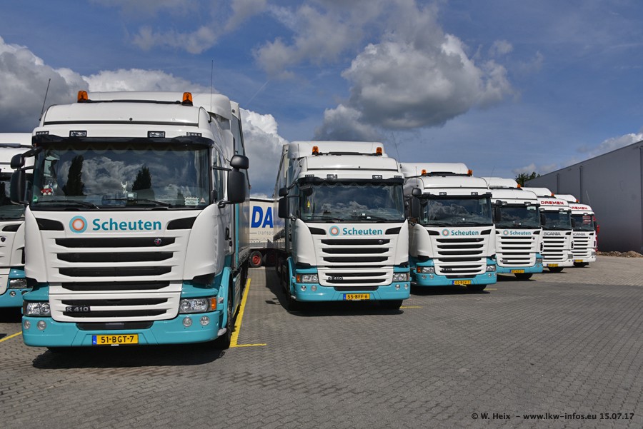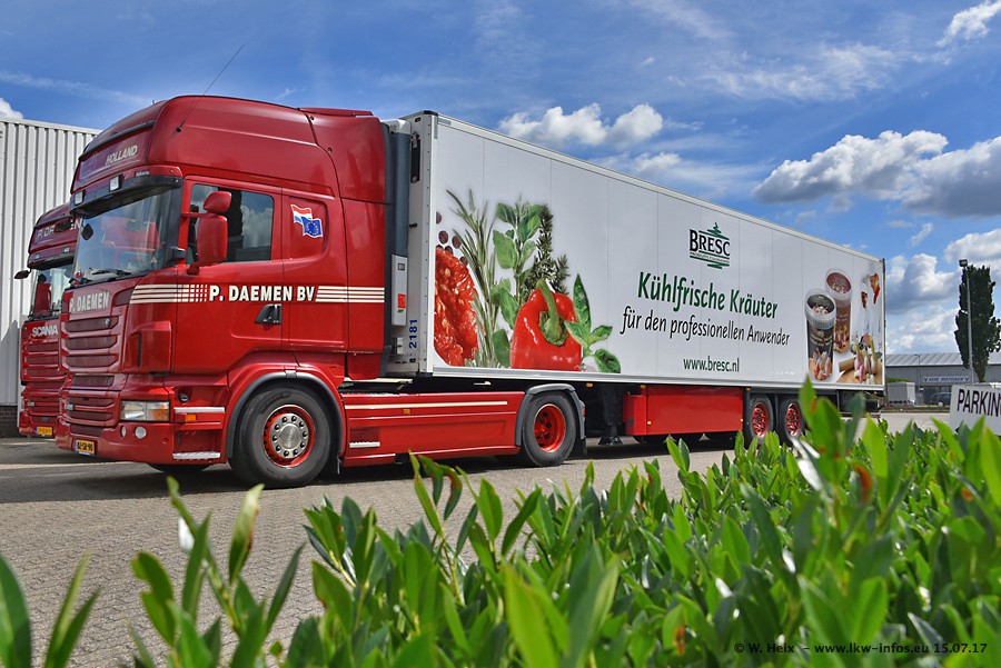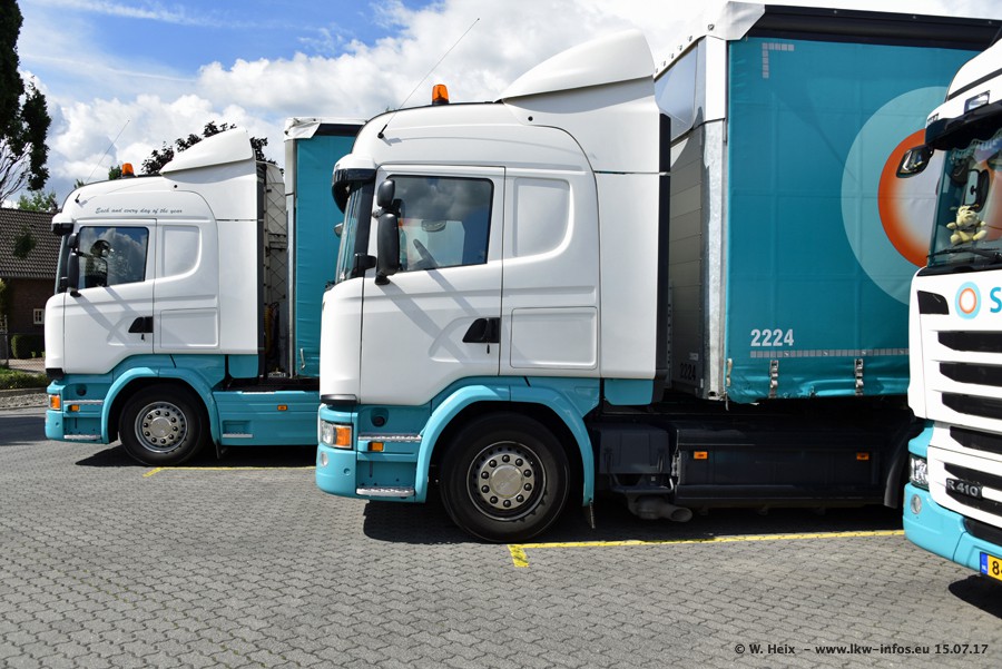 Zur Zeit wird auf dem Gelände gebaut (Erweiterung der Lagerhallen), darum ist es derzeit etwas eng. Das hatte den Vorteil, dass einige LKW außerhalb vom Firmengelände standen (gut für schöne Fotos). Und insgesamt waren diesmal weniger LKW zuhause als üblich. Das hatte den Vorteil, dass ich viele Fahrzeuge besser fotografieren konnte. Besonders interessant finde ich immer wieder die Aurlieger, die im Design der Kunden/Auftraggeber gestaltet sind. Und das werden immer mehr.