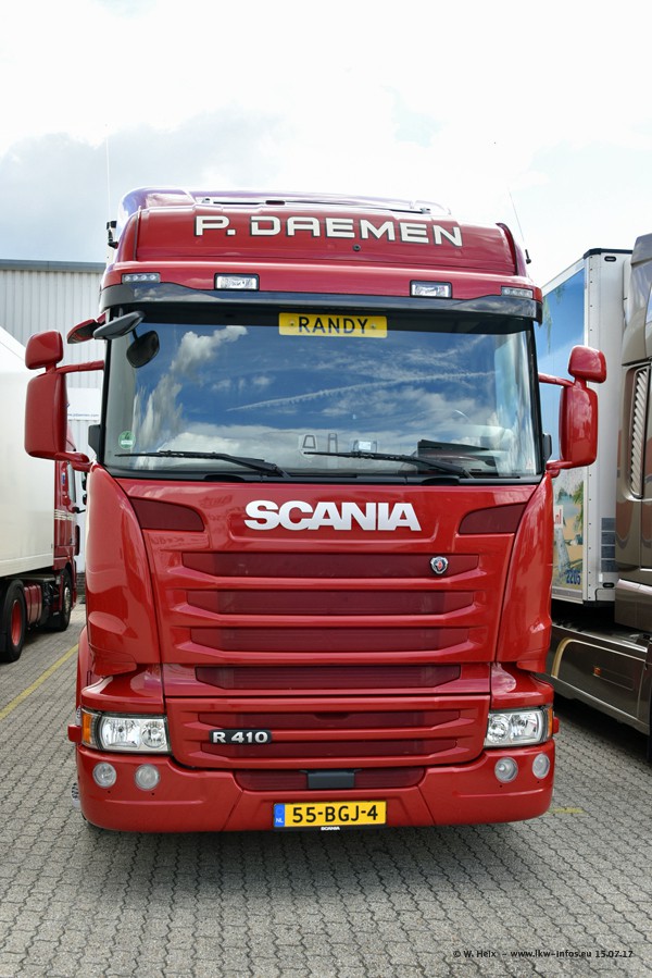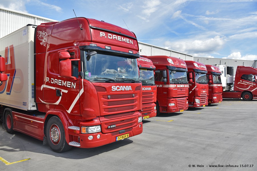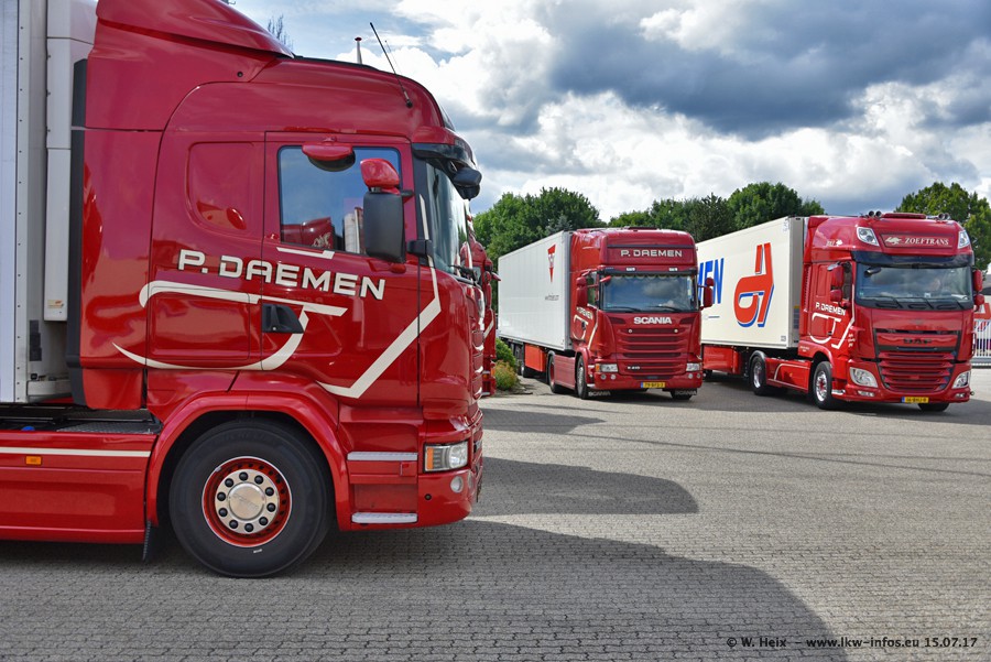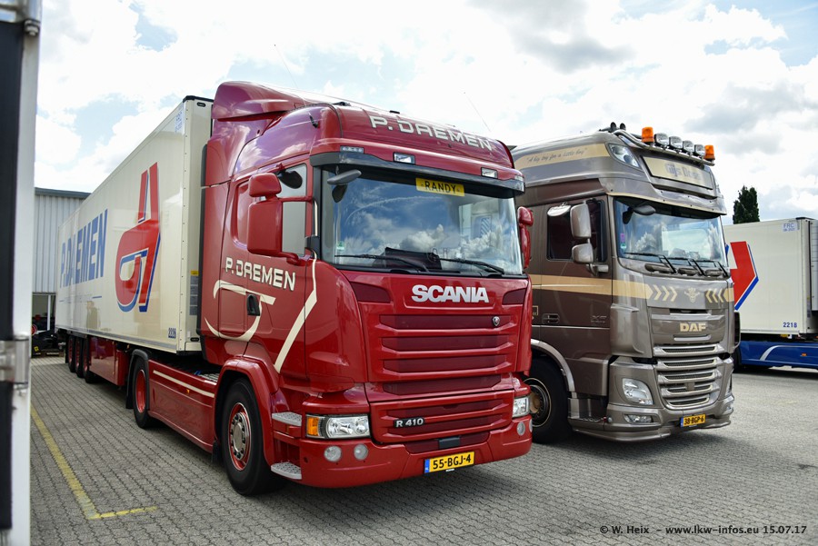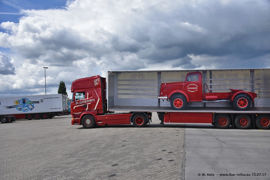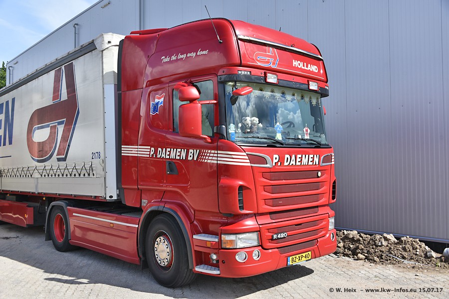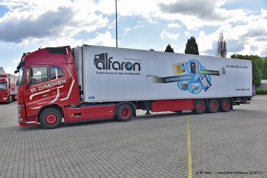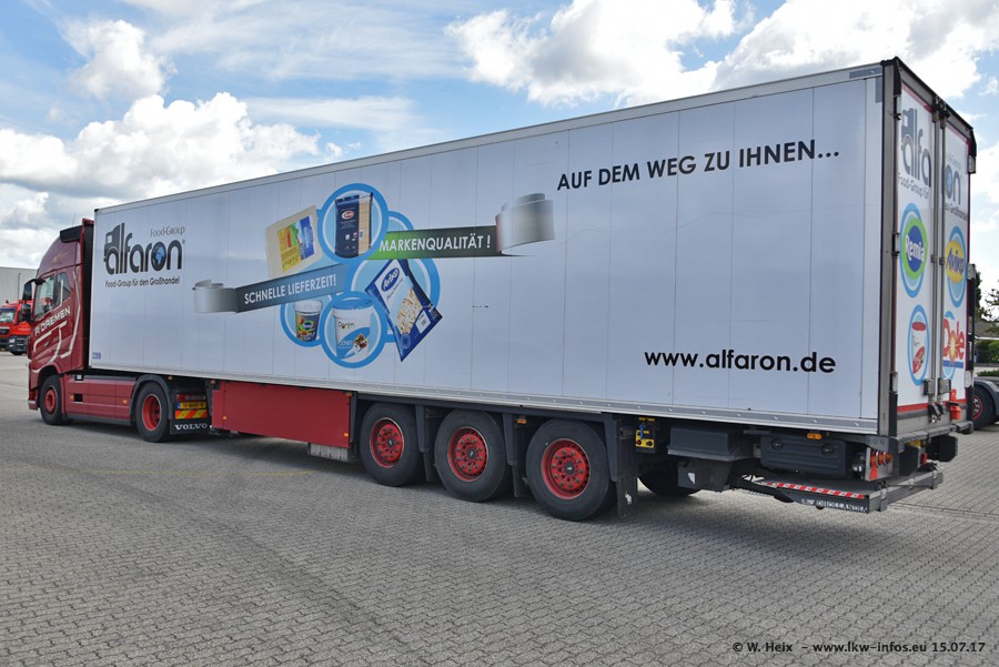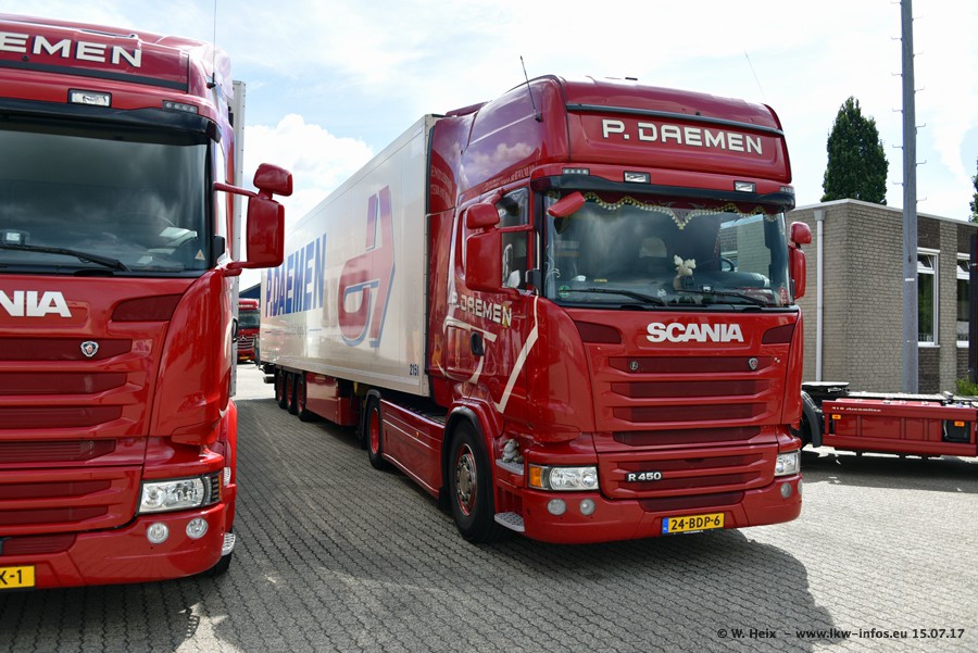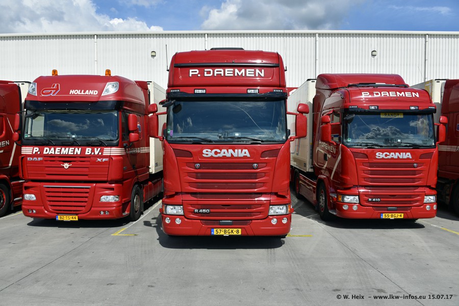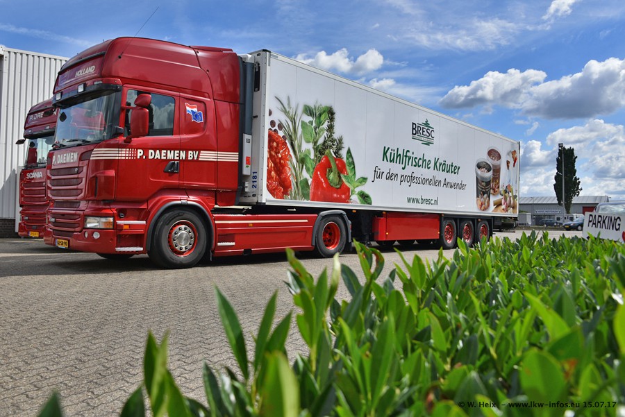 Zur Zeit wird auf dem Gelände gebaut (Erweiterung der Lagerhallen), darum ist es derzeit etwas eng. Das hatte den Vorteil, dass einige LKW außerhalb vom Firmengelände standen (gut für schöne Fotos). Und insgesamt waren diesmal weniger LKW zuhause als üblich. Das hatte den Vorteil, dass ich viele Fahrzeuge besser fotografieren konnte. Besonders interessant finde ich immer wieder die Aurlieger, die im Design der Kunden/Auftraggeber gestaltet sind. Und das werden immer mehr.