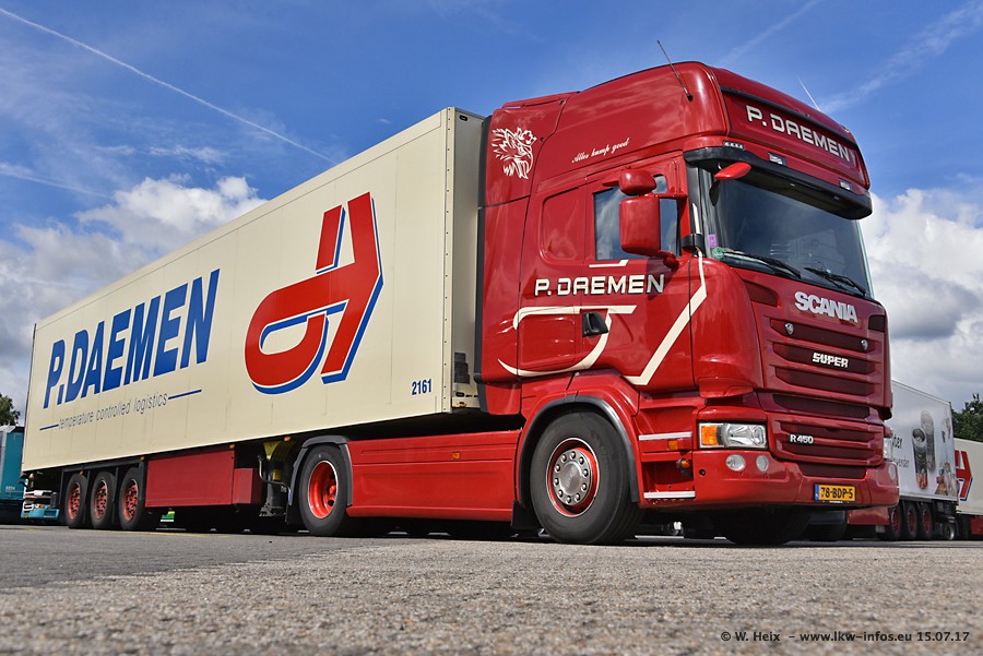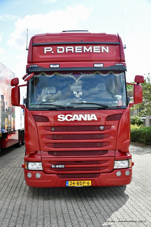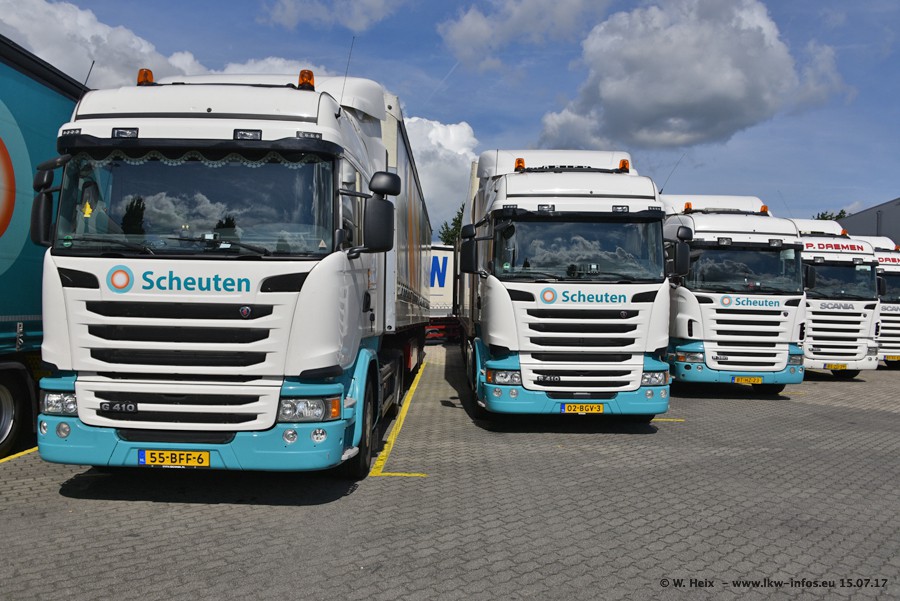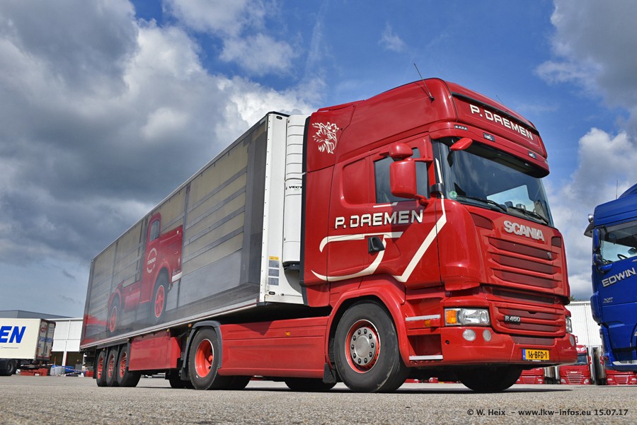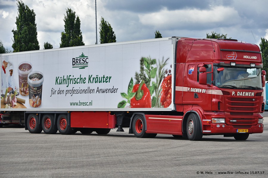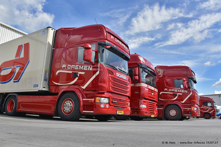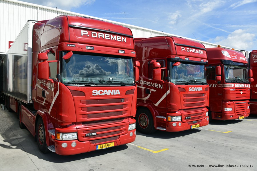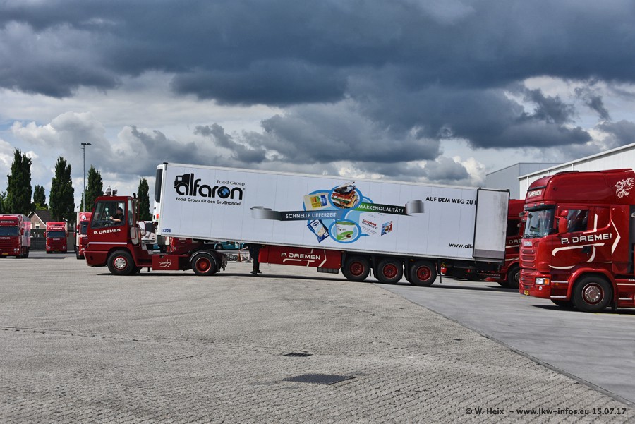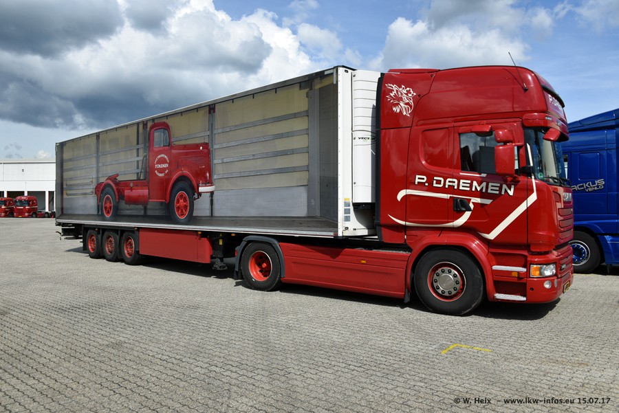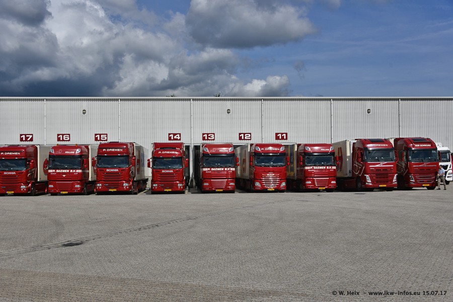 Zur Zeit wird auf dem Gelände gebaut (Erweiterung der Lagerhallen), darum ist es derzeit etwas eng. Das hatte den Vorteil, dass einige LKW außerhalb vom Firmengelände standen (gut für schöne Fotos). Und insgesamt waren diesmal weniger LKW zuhause als üblich. Das hatte den Vorteil, dass ich viele Fahrzeuge besser fotografieren konnte. Besonders interessant finde ich immer wieder die Aurlieger, die im Design der Kunden/Auftraggeber gestaltet sind. Und das werden immer mehr.