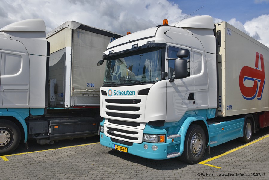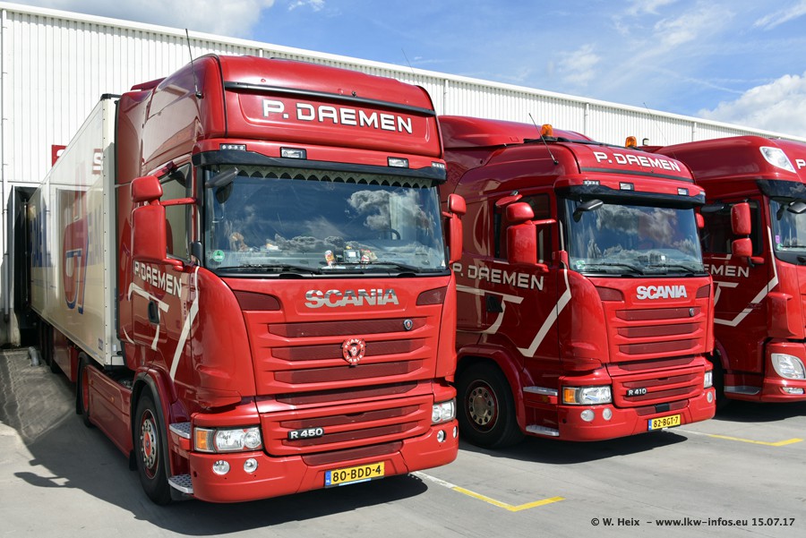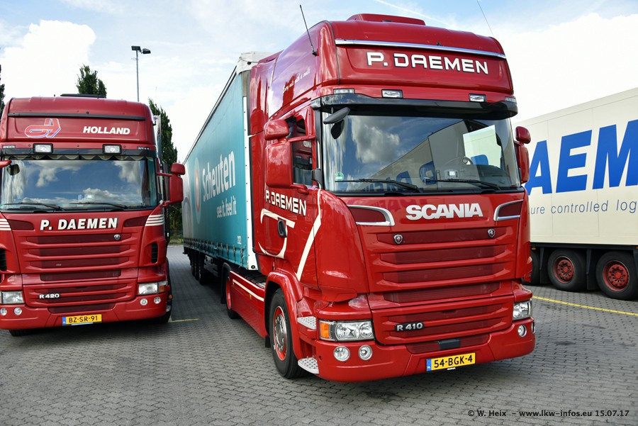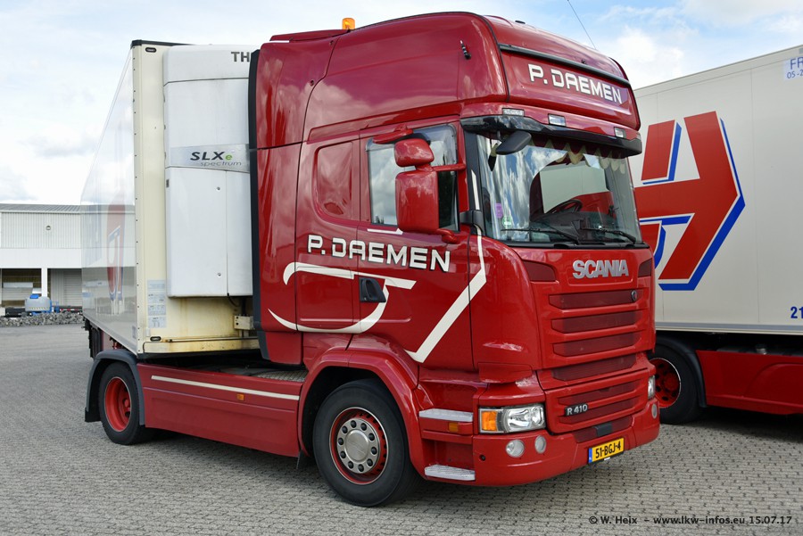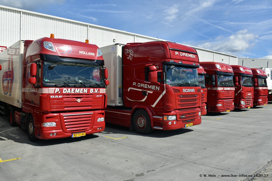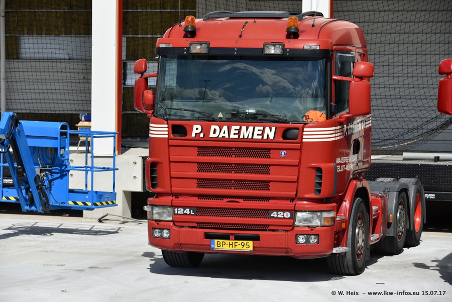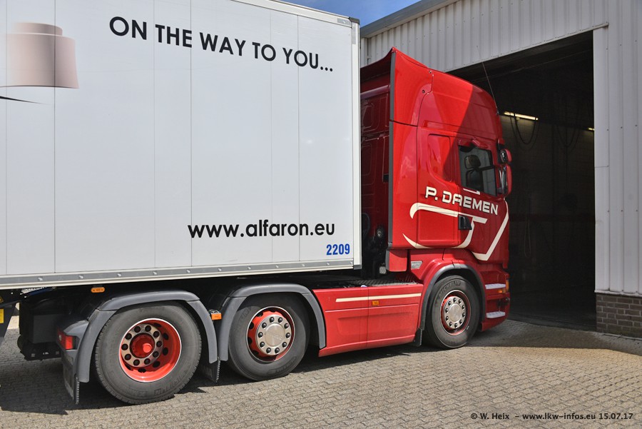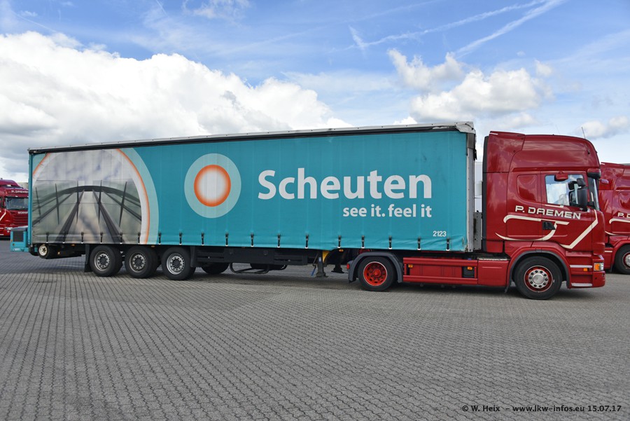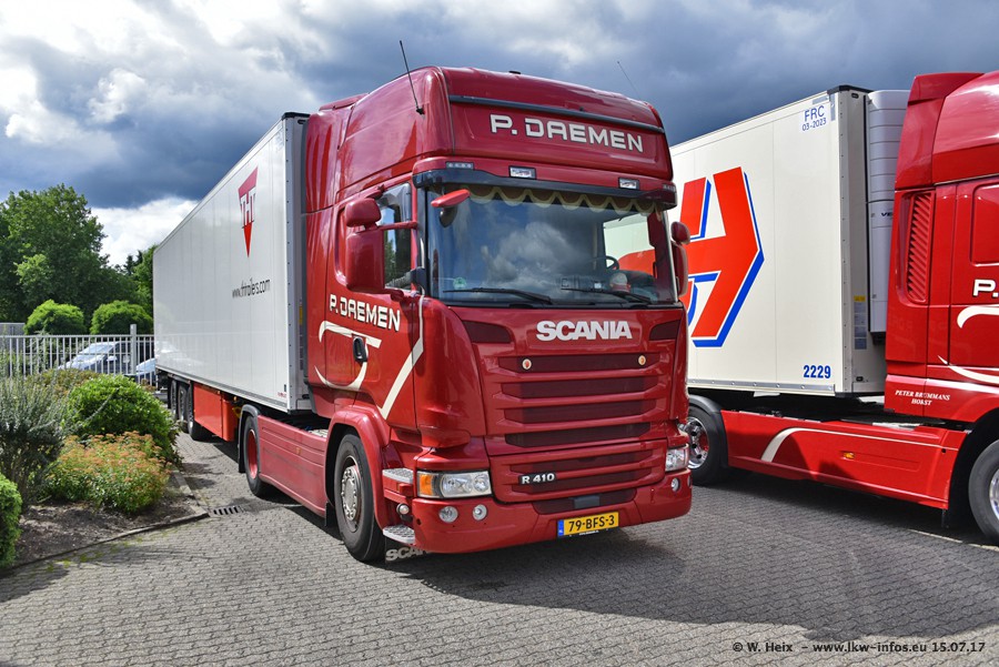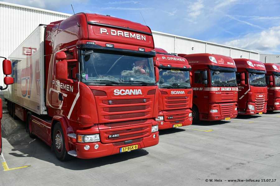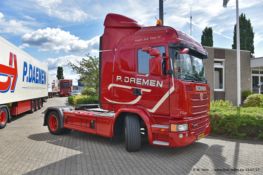Zur Zeit wird auf dem Gelände gebaut (Erweiterung der Lagerhallen), darum ist es derzeit etwas eng. Das hatte den Vorteil, dass einige LKW außerhalb vom Firmengelände standen (gut für schöne Fotos). Und insgesamt waren diesmal weniger LKW zuhause als üblich. Das hatte den Vorteil, dass ich viele Fahrzeuge besser fotografieren konnte. Besonders interessant finde ich immer wieder die Aurlieger, die im Design der Kunden/Auftraggeber gestaltet sind. Und das werden immer mehr.