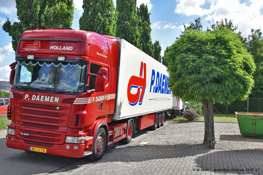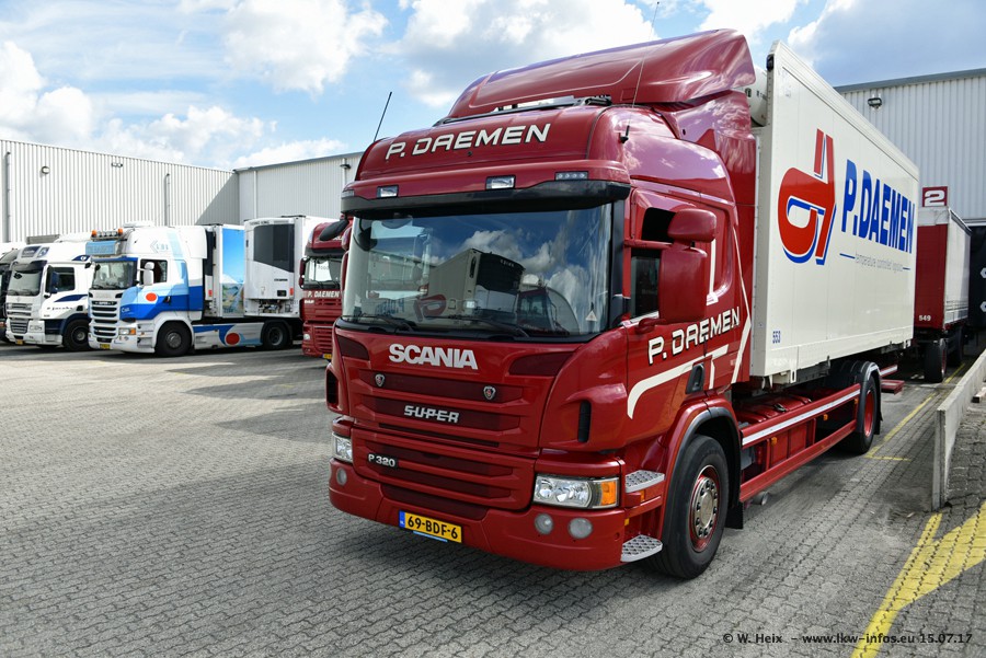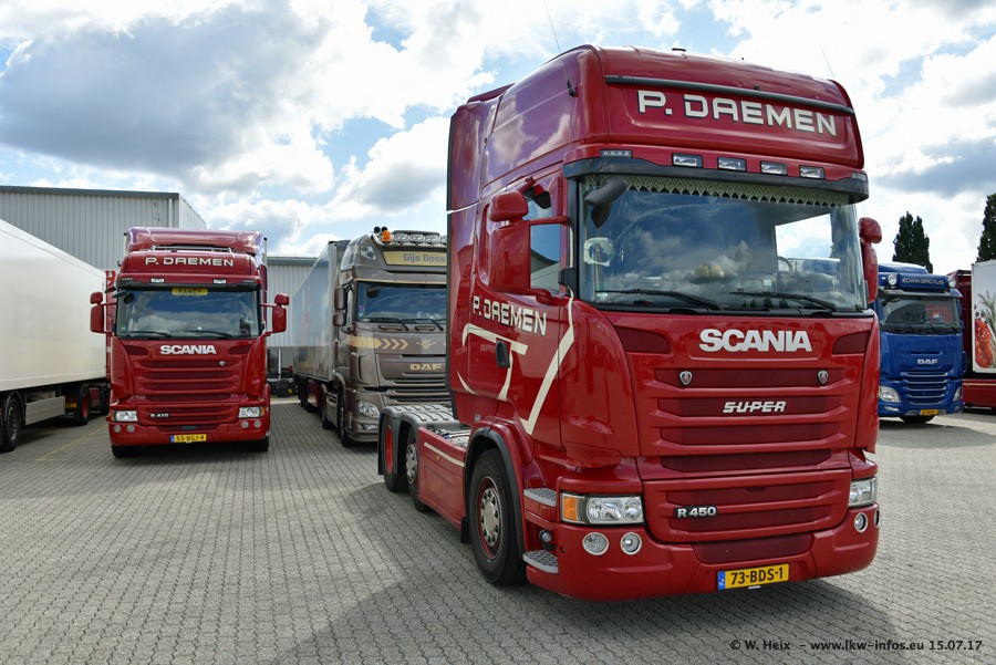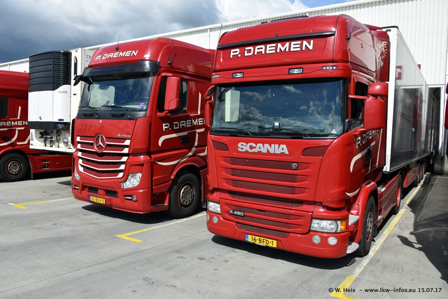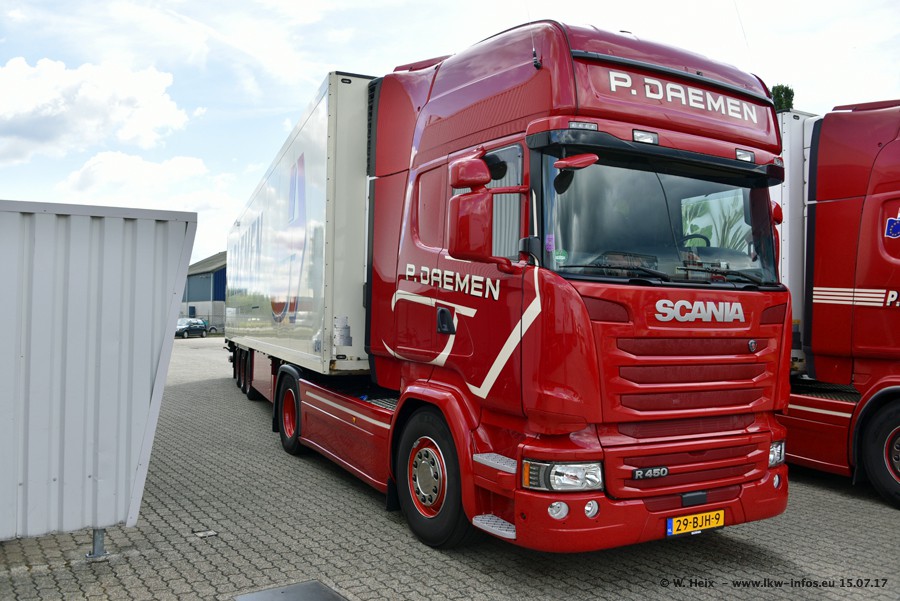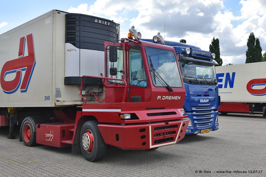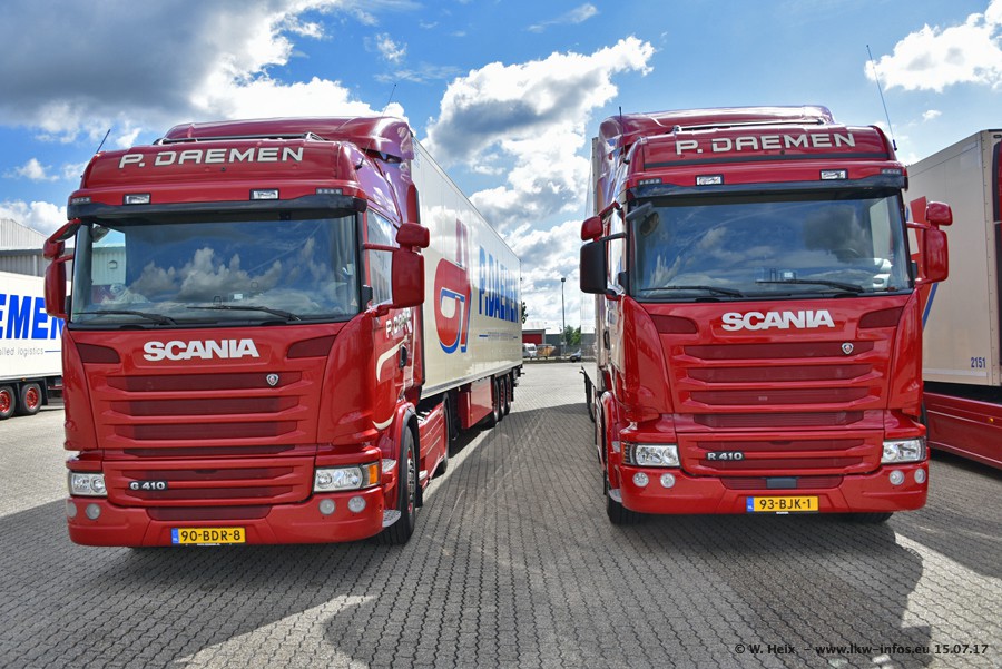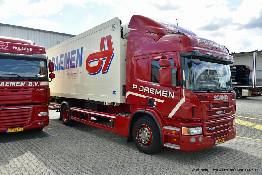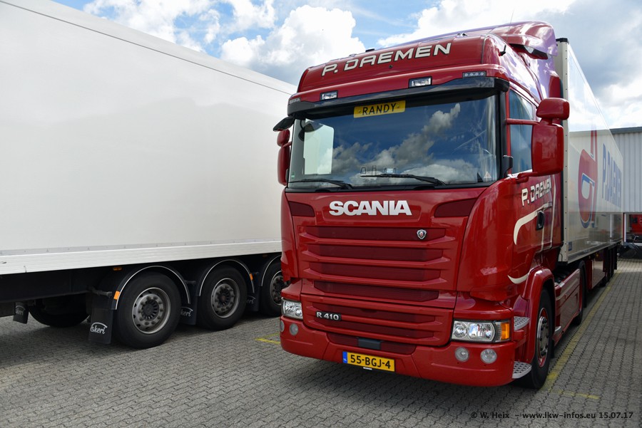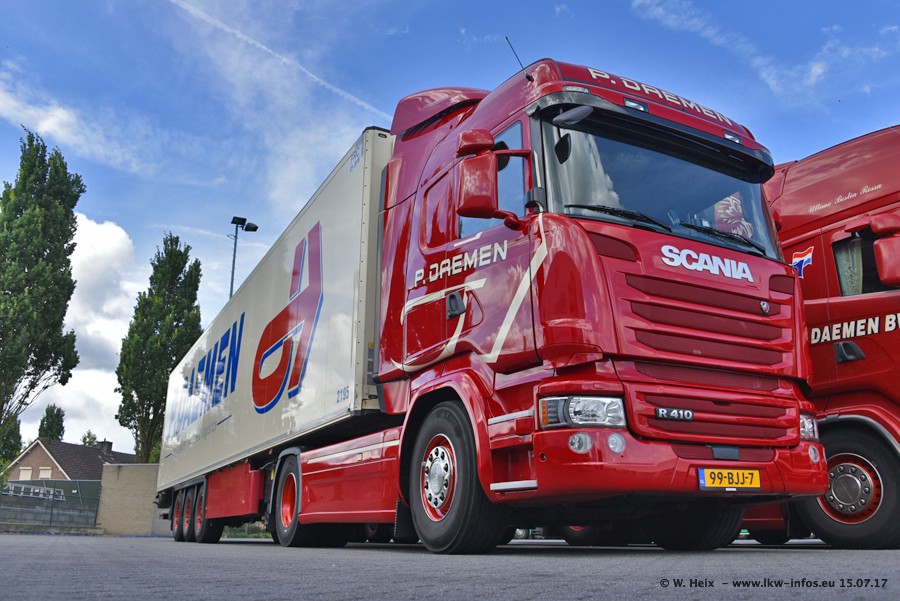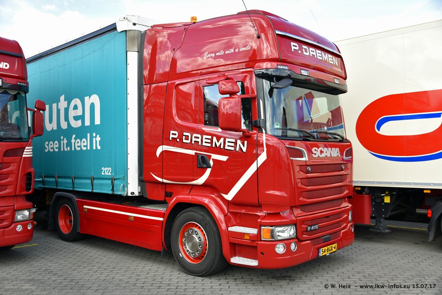 Zur Zeit wird auf dem Gelände gebaut (Erweiterung der Lagerhallen), darum ist es derzeit etwas eng. Das hatte den Vorteil, dass einige LKW außerhalb vom Firmengelände standen (gut für schöne Fotos). Und insgesamt waren diesmal weniger LKW zuhause als üblich. Das hatte den Vorteil, dass ich viele Fahrzeuge besser fotografieren konnte. Besonders interessant finde ich immer wieder die Aurlieger, die im Design der Kunden/Auftraggeber gestaltet sind. Und das werden immer mehr.