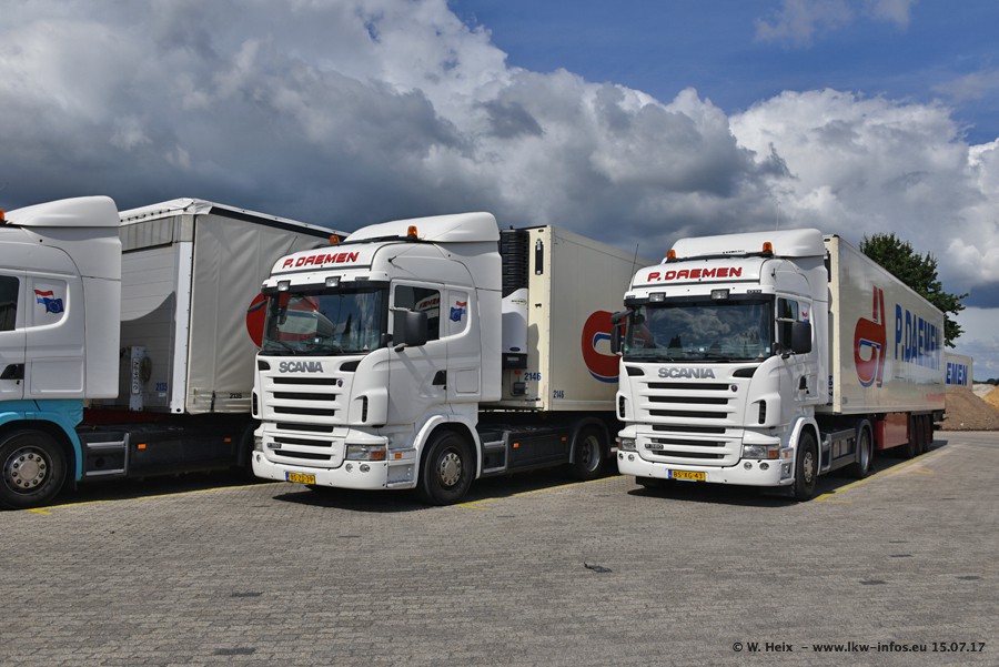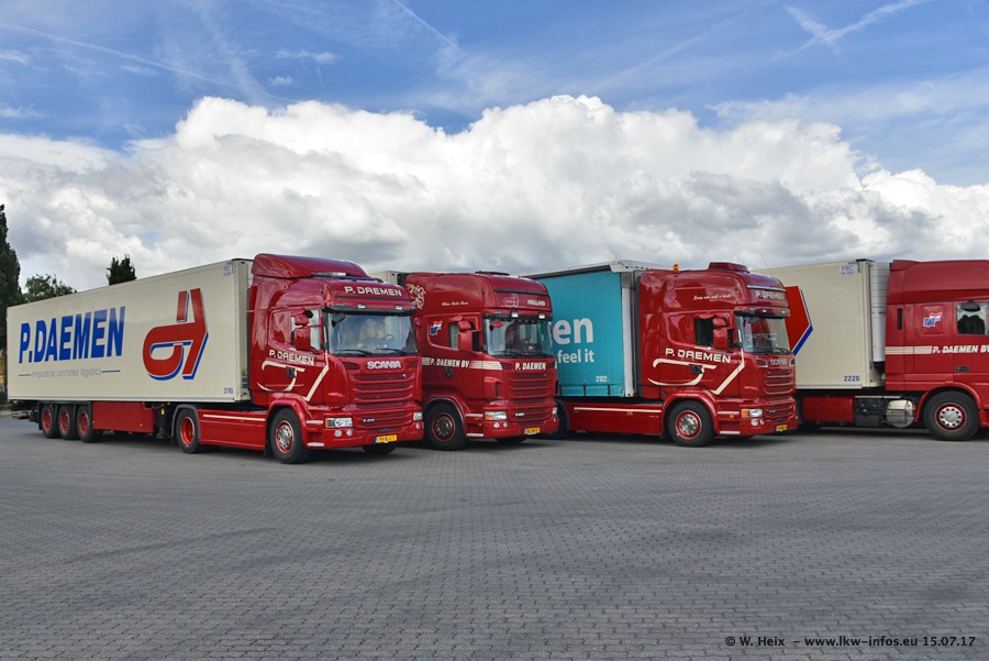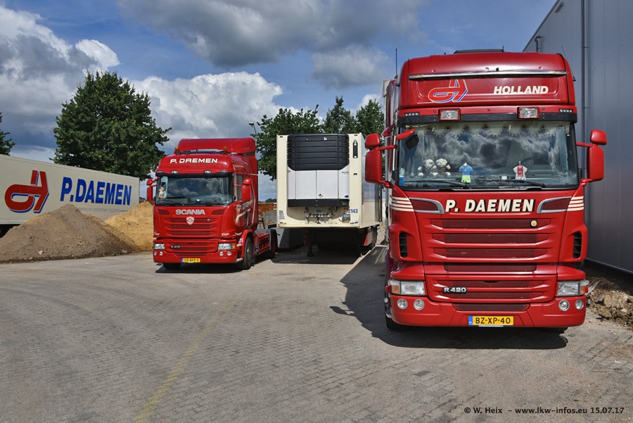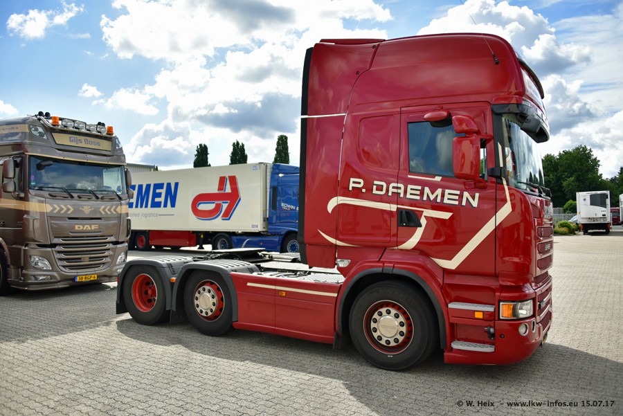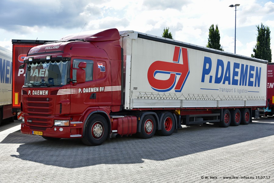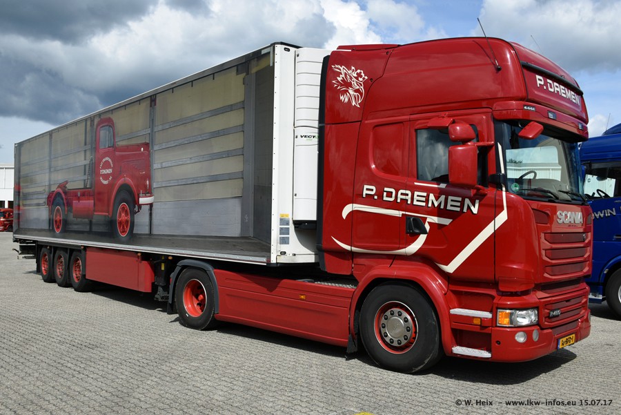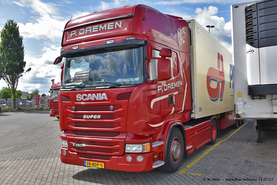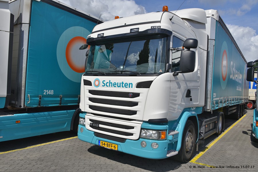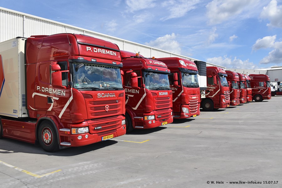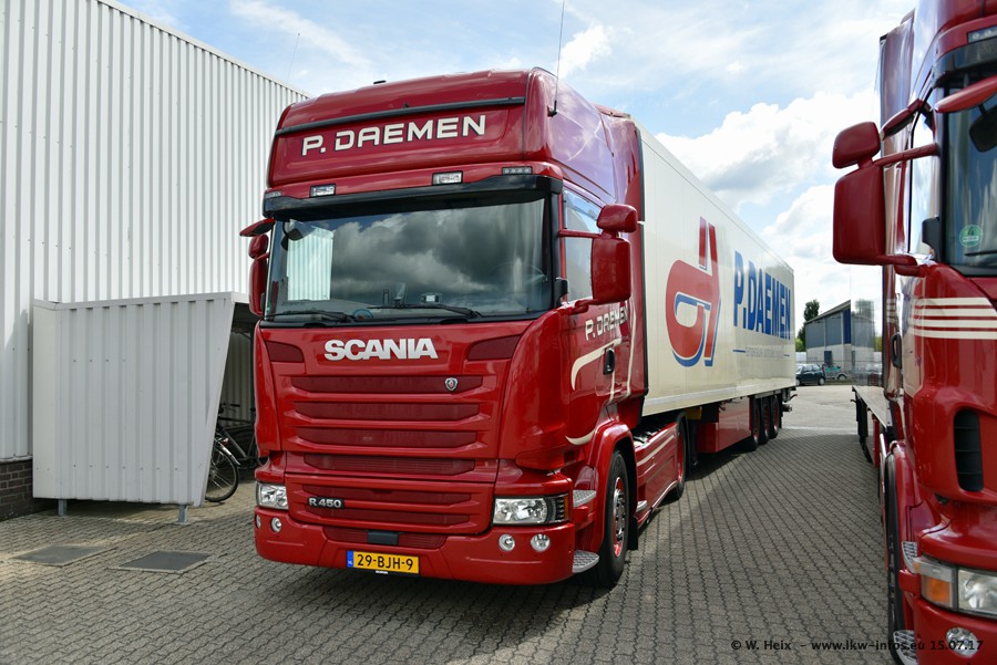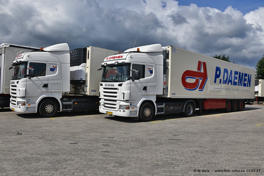 Zur Zeit wird auf dem Gelände gebaut (Erweiterung der Lagerhallen), darum ist es derzeit etwas eng. Das hatte den Vorteil, dass einige LKW außerhalb vom Firmengelände standen (gut für schöne Fotos). Und insgesamt waren diesmal weniger LKW zuhause als üblich. Das hatte den Vorteil, dass ich viele Fahrzeuge besser fotografieren konnte. Besonders interessant finde ich immer wieder die Aurlieger, die im Design der Kunden/Auftraggeber gestaltet sind. Und das werden immer mehr.