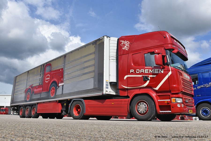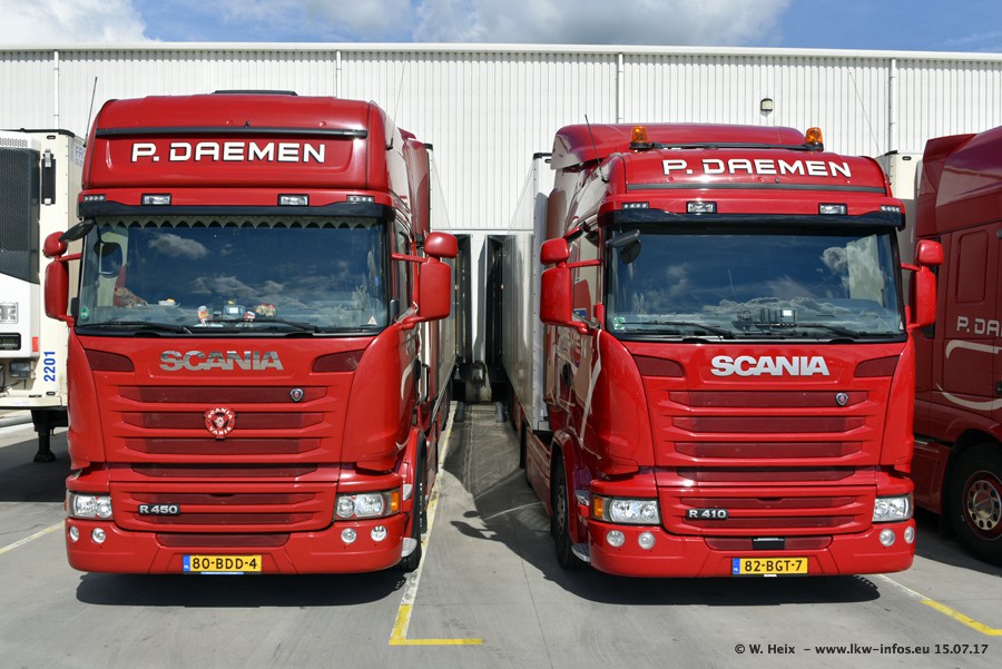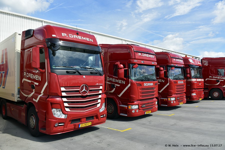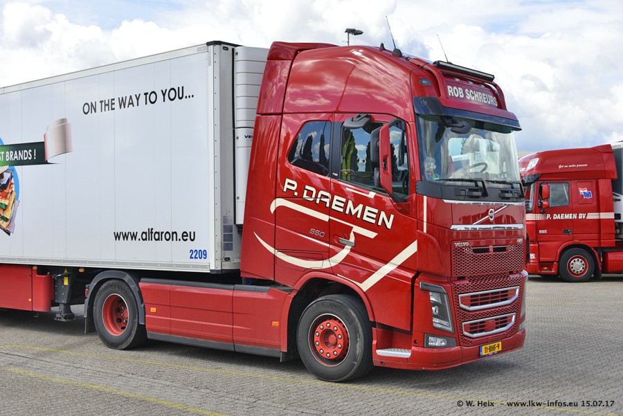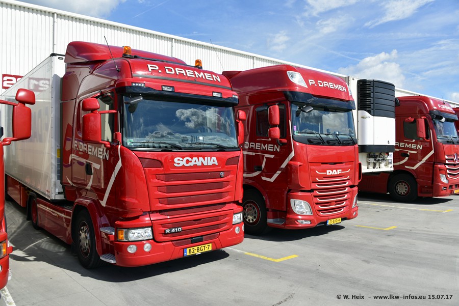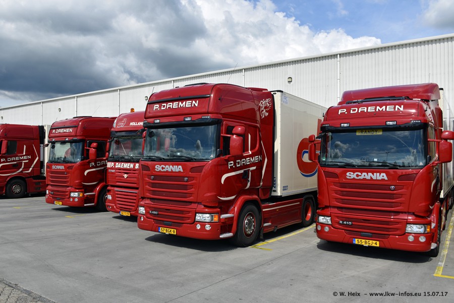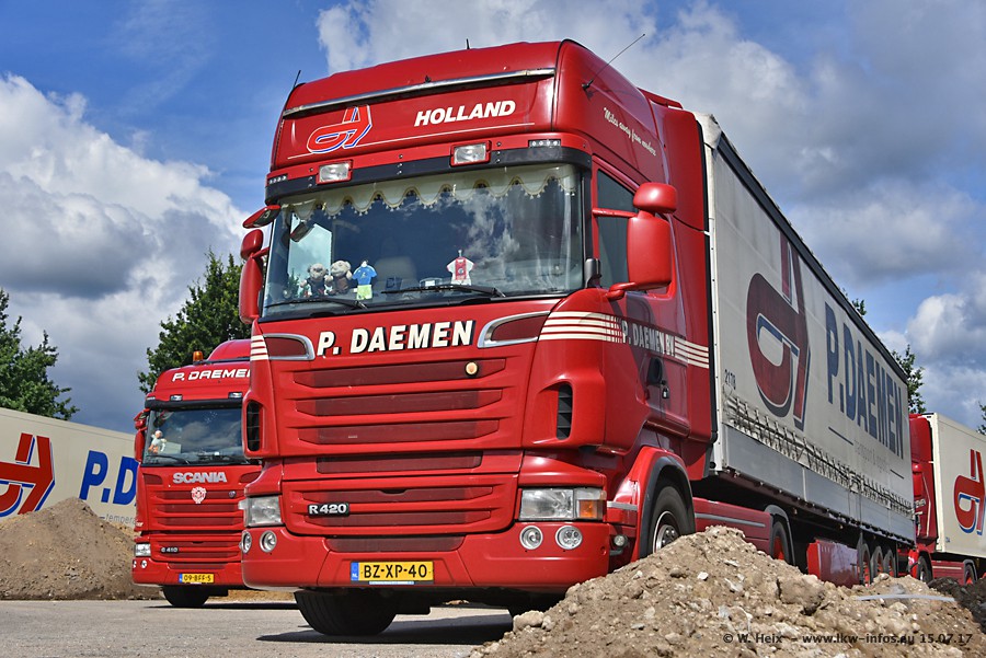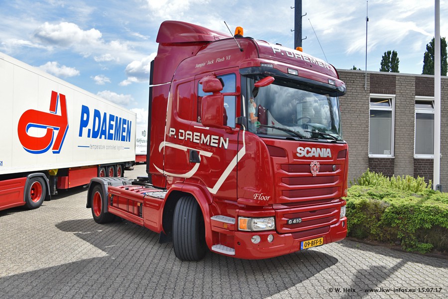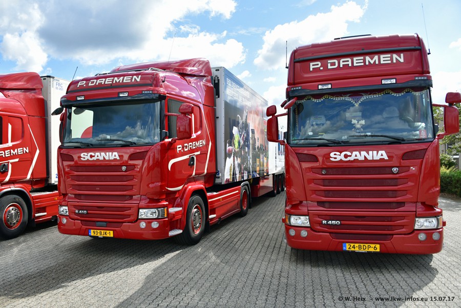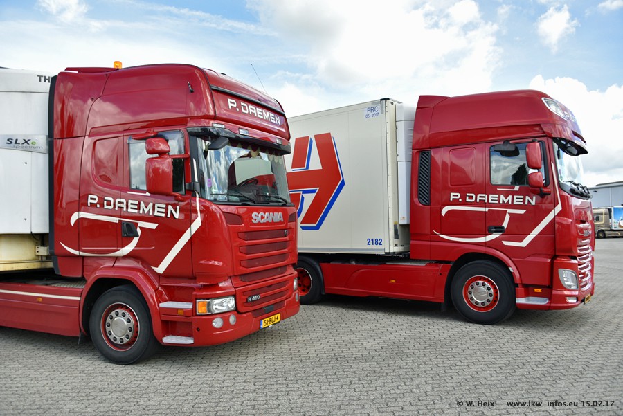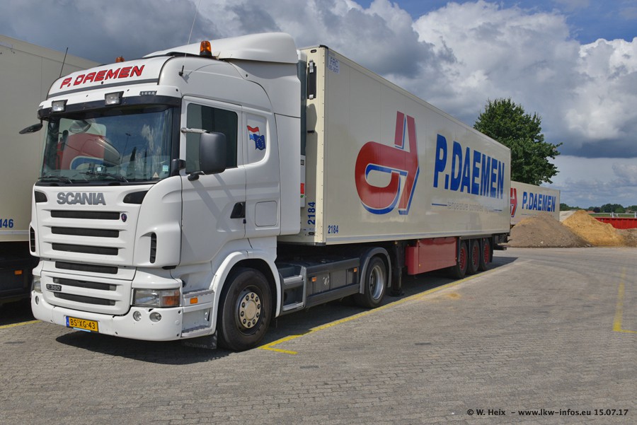 Zur Zeit wird auf dem Gelände gebaut (Erweiterung der Lagerhallen), darum ist es derzeit etwas eng. Das hatte den Vorteil, dass einige LKW außerhalb vom Firmengelände standen (gut für schöne Fotos). Und insgesamt waren diesmal weniger LKW zuhause als üblich. Das hatte den Vorteil, dass ich viele Fahrzeuge besser fotografieren konnte. Besonders interessant finde ich immer wieder die Aurlieger, die im Design der Kunden/Auftraggeber gestaltet sind. Und das werden immer mehr.