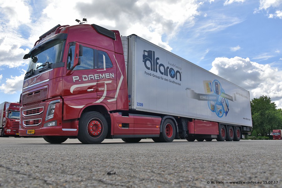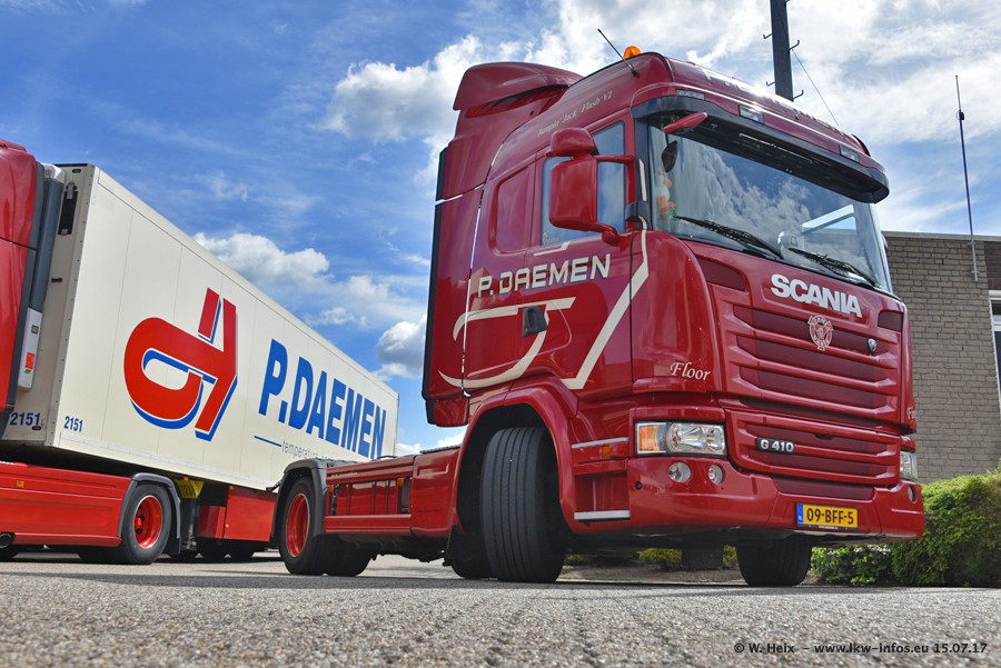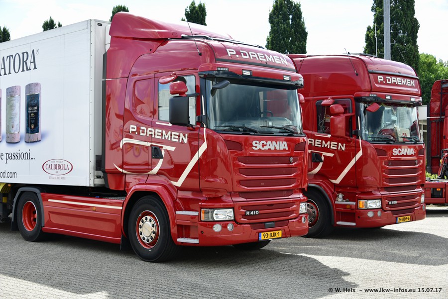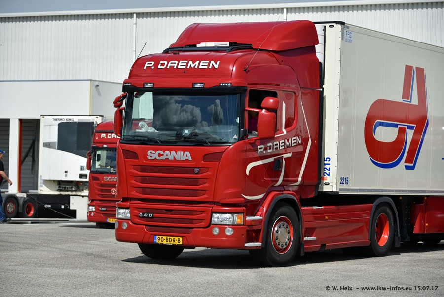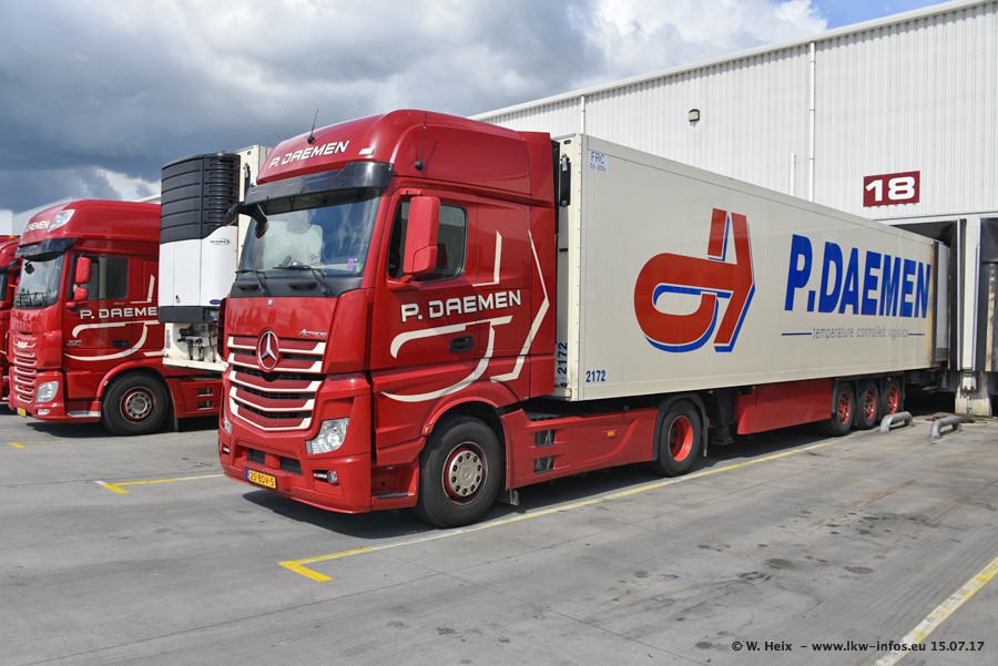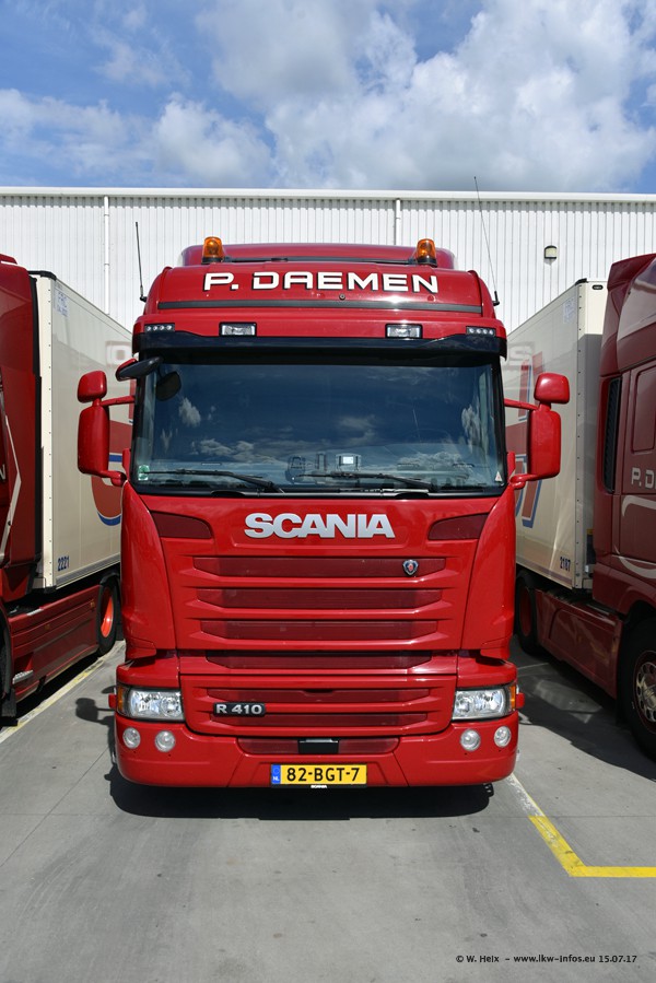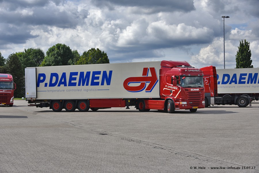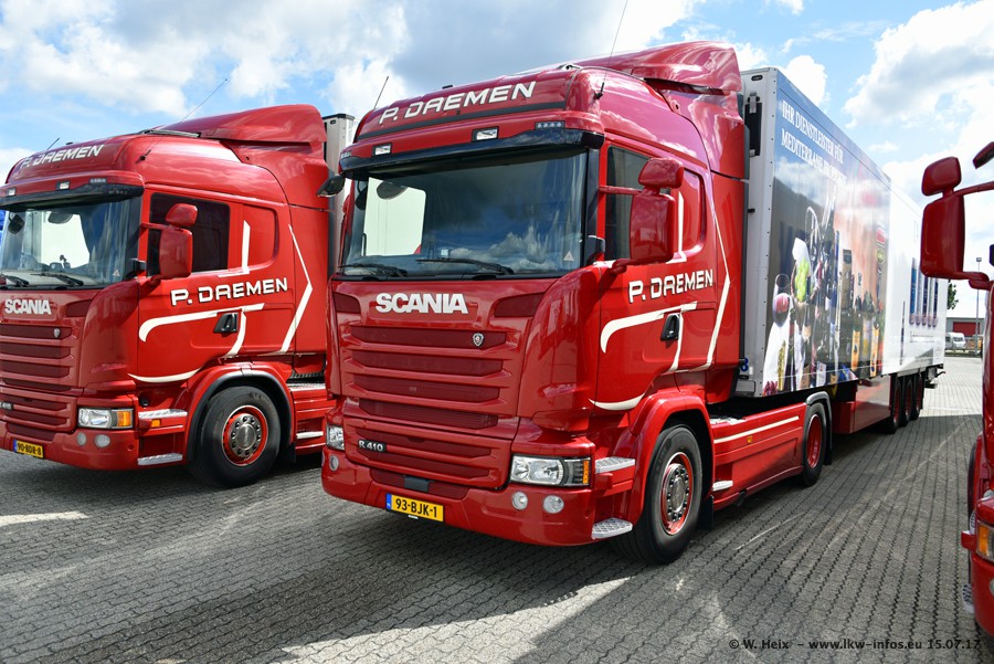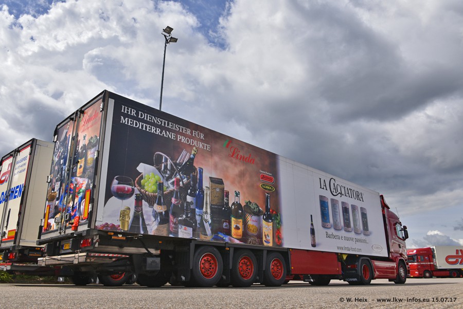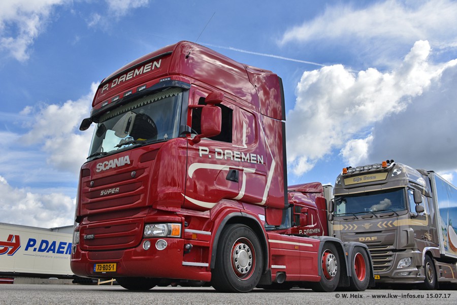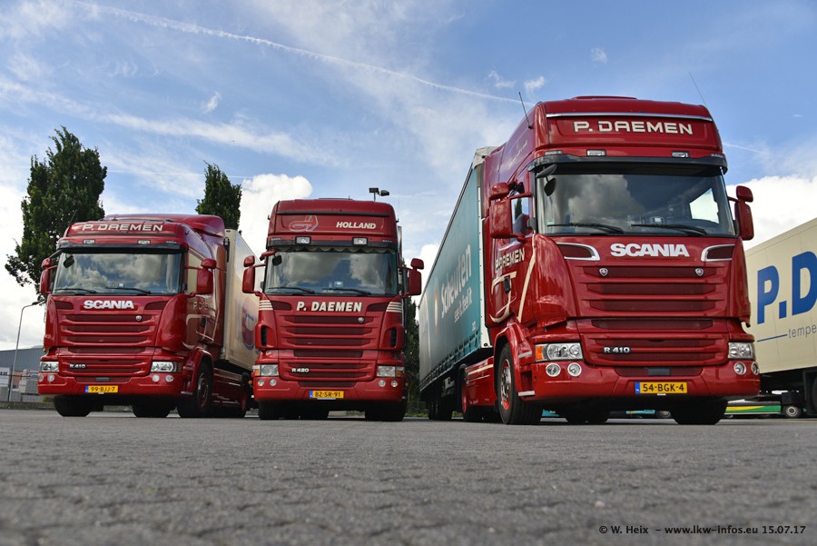 Zur Zeit wird auf dem Gelände gebaut (Erweiterung der Lagerhallen), darum ist es derzeit etwas eng. Das hatte den Vorteil, dass einige LKW außerhalb vom Firmengelände standen (gut für schöne Fotos). Und insgesamt waren diesmal weniger LKW zuhause als üblich. Das hatte den Vorteil, dass ich viele Fahrzeuge besser fotografieren konnte. Besonders interessant finde ich immer wieder die Aurlieger, die im Design der Kunden/Auftraggeber gestaltet sind. Und das werden immer mehr.