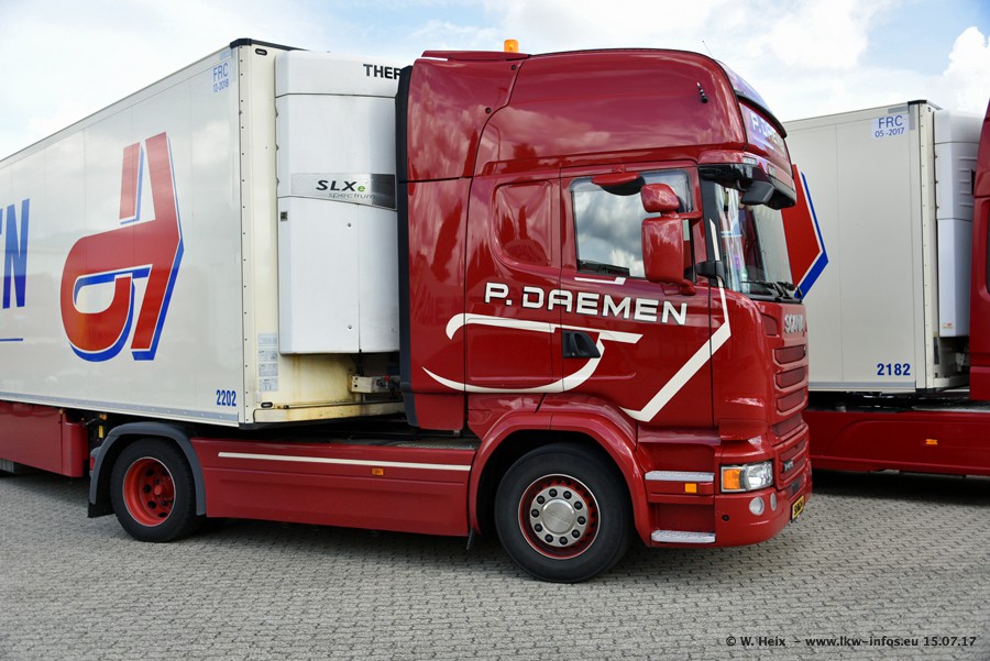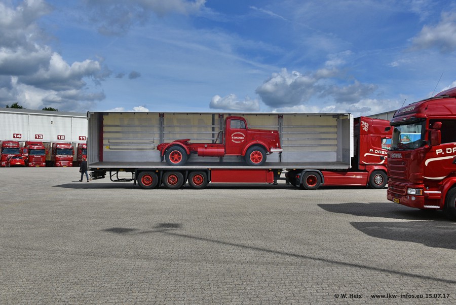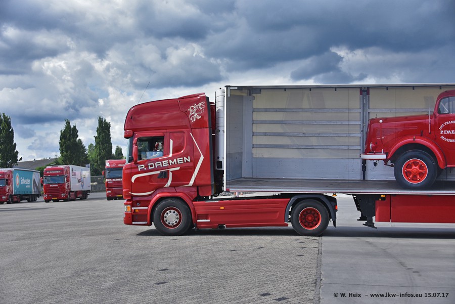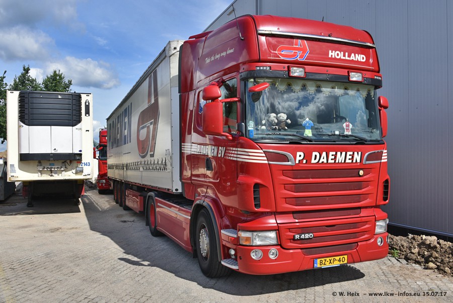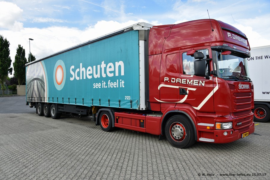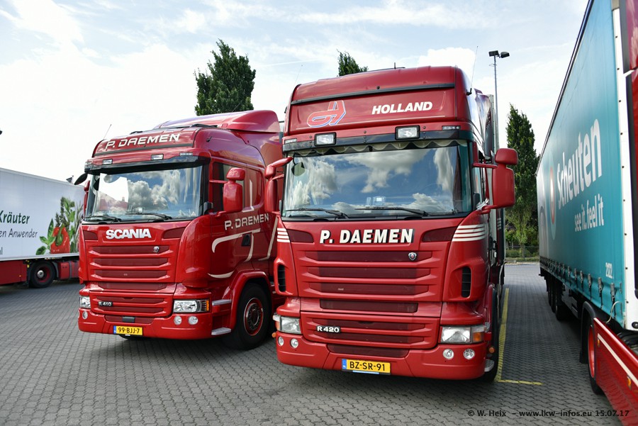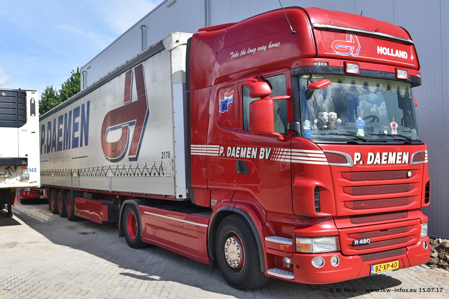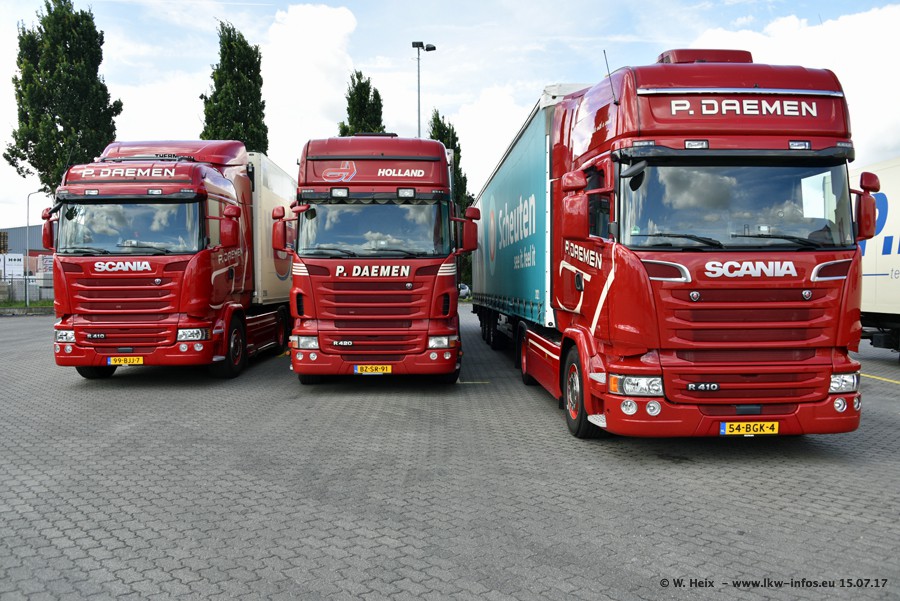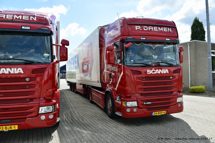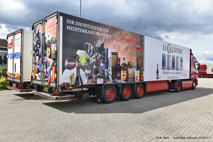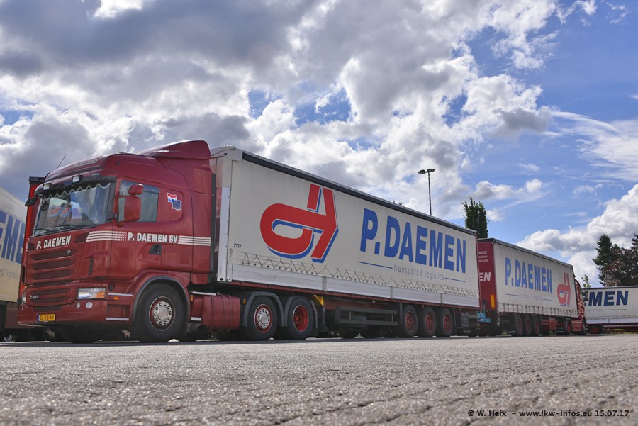 Zur Zeit wird auf dem Gelände gebaut (Erweiterung der Lagerhallen), darum ist es derzeit etwas eng. Das hatte den Vorteil, dass einige LKW außerhalb vom Firmengelände standen (gut für schöne Fotos). Und insgesamt waren diesmal weniger LKW zuhause als üblich. Das hatte den Vorteil, dass ich viele Fahrzeuge besser fotografieren konnte. Besonders interessant finde ich immer wieder die Aurlieger, die im Design der Kunden/Auftraggeber gestaltet sind. Und das werden immer mehr.