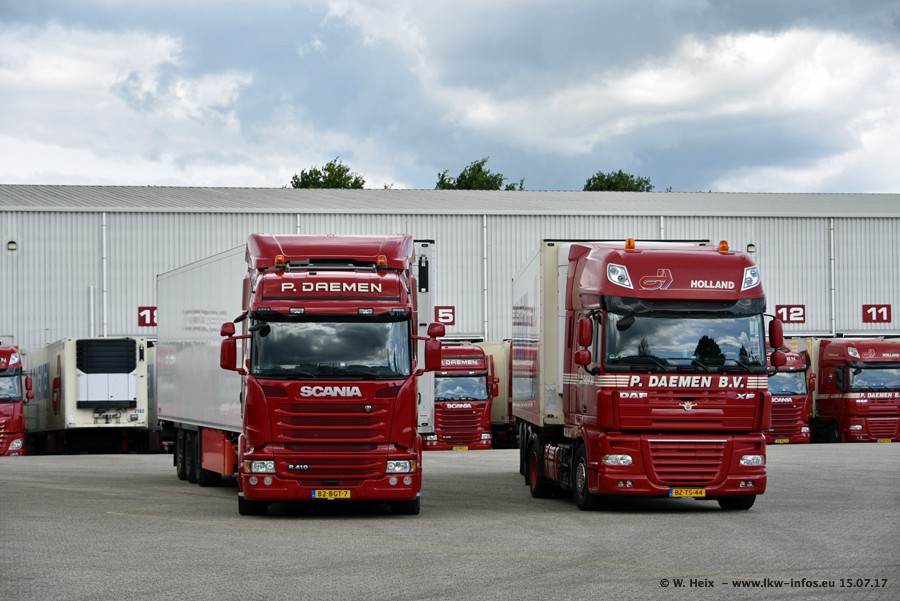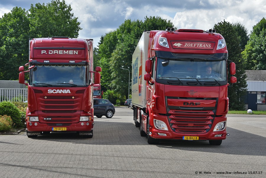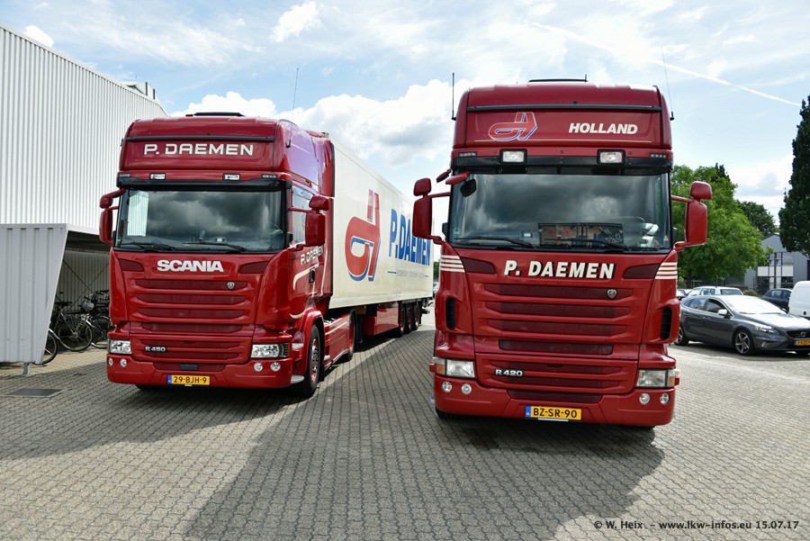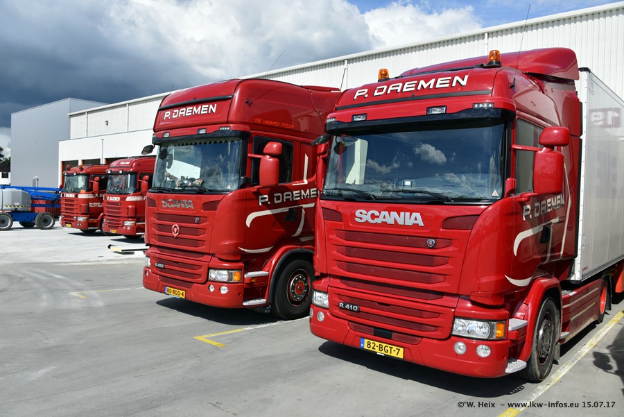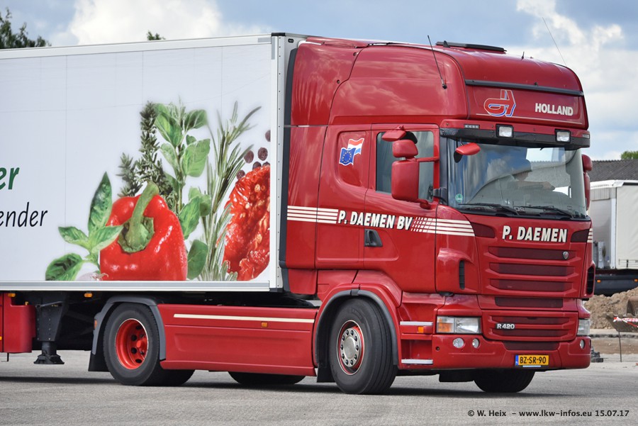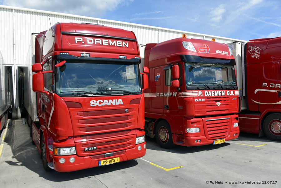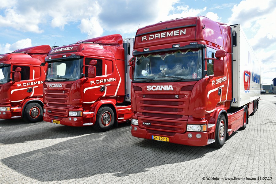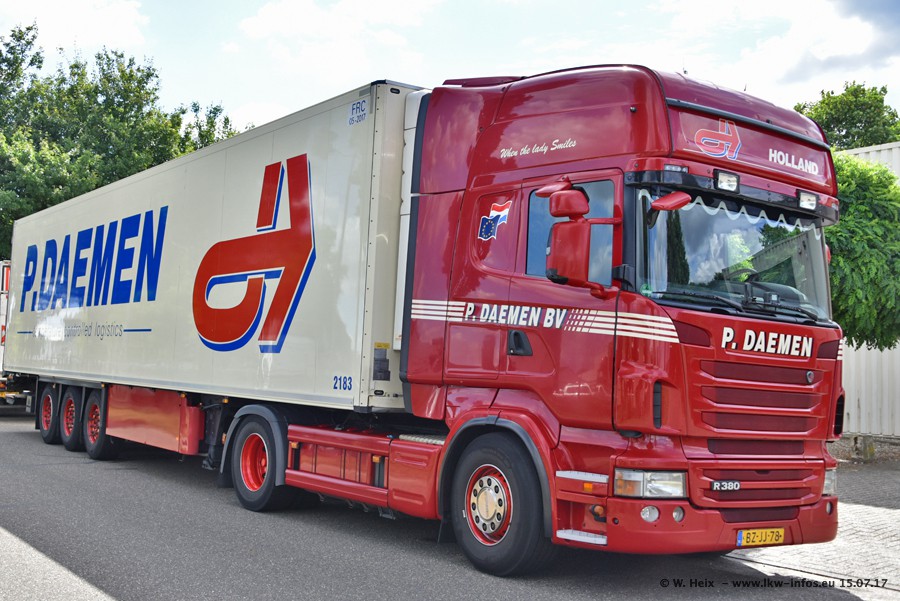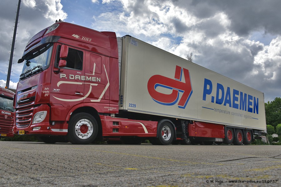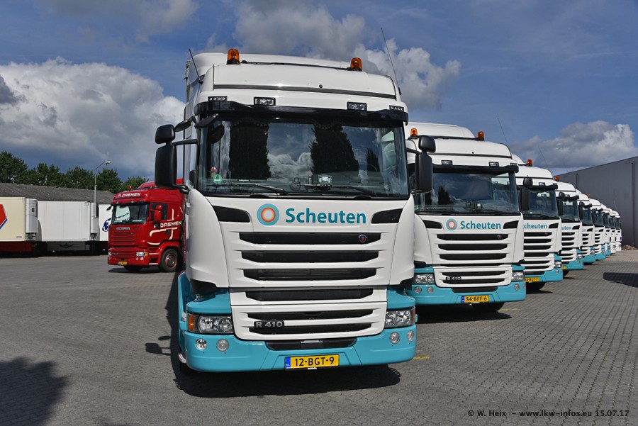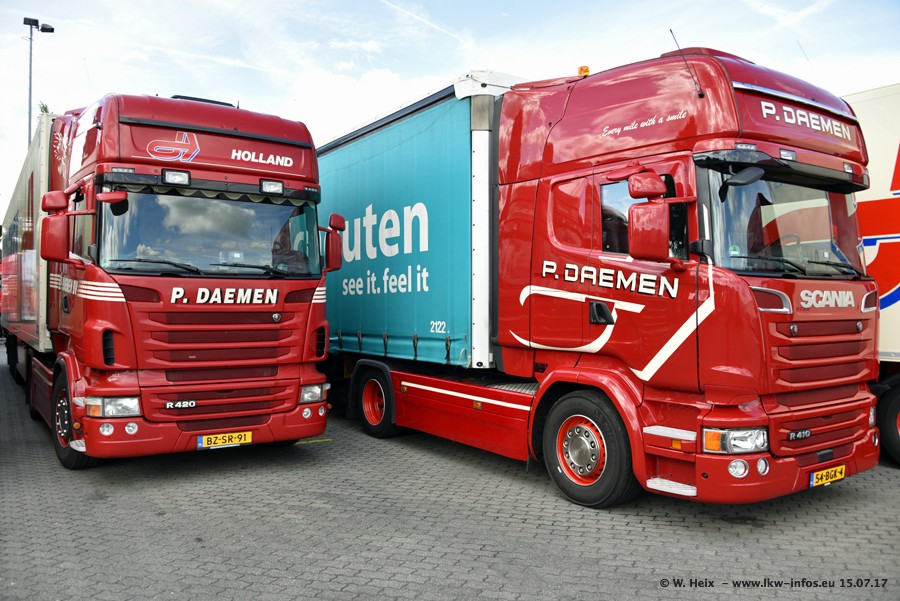 Zur Zeit wird auf dem Gelände gebaut (Erweiterung der Lagerhallen), darum ist es derzeit etwas eng. Das hatte den Vorteil, dass einige LKW außerhalb vom Firmengelände standen (gut für schöne Fotos). Und insgesamt waren diesmal weniger LKW zuhause als üblich. Das hatte den Vorteil, dass ich viele Fahrzeuge besser fotografieren konnte. Besonders interessant finde ich immer wieder die Aurlieger, die im Design der Kunden/Auftraggeber gestaltet sind. Und das werden immer mehr.