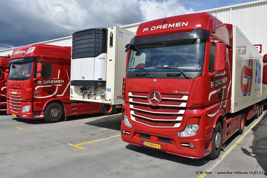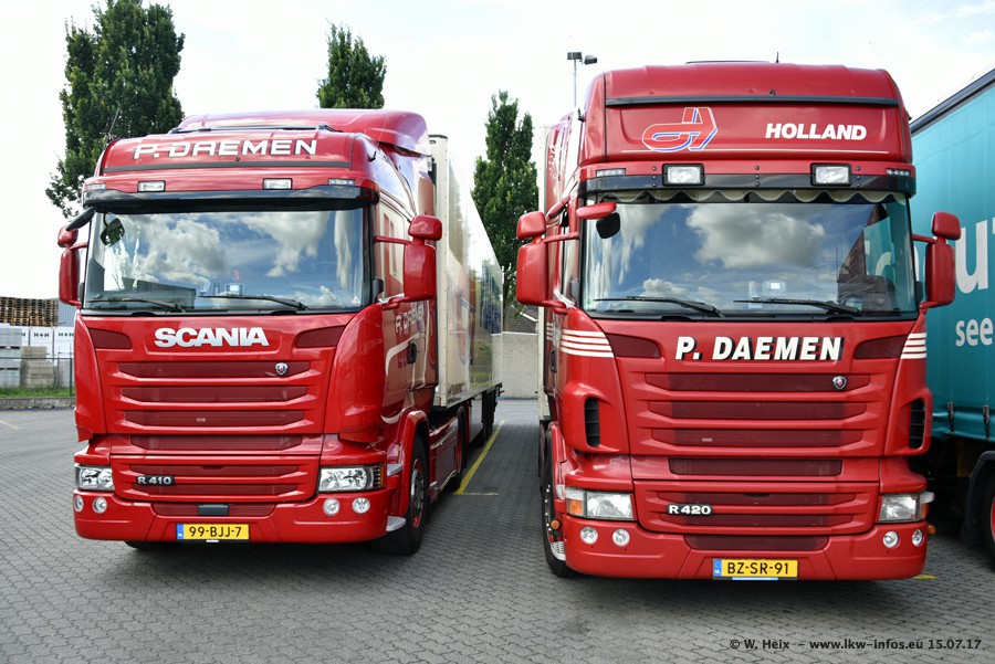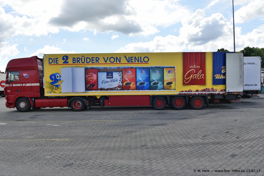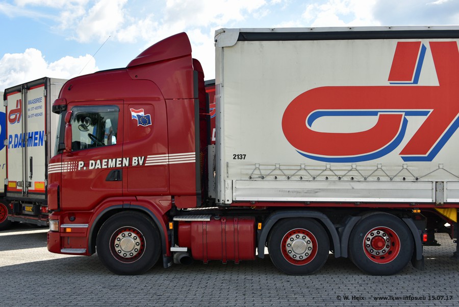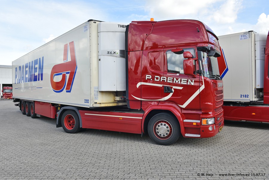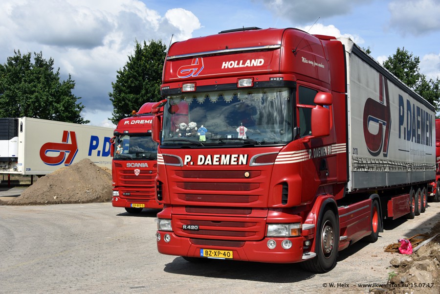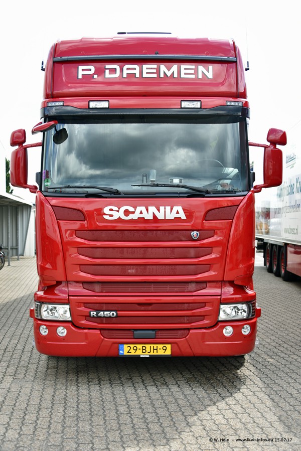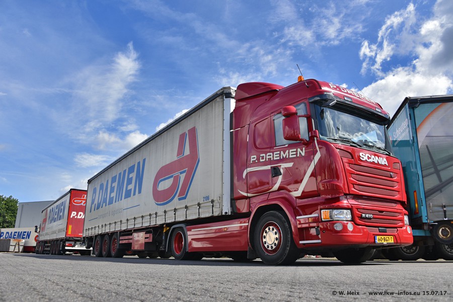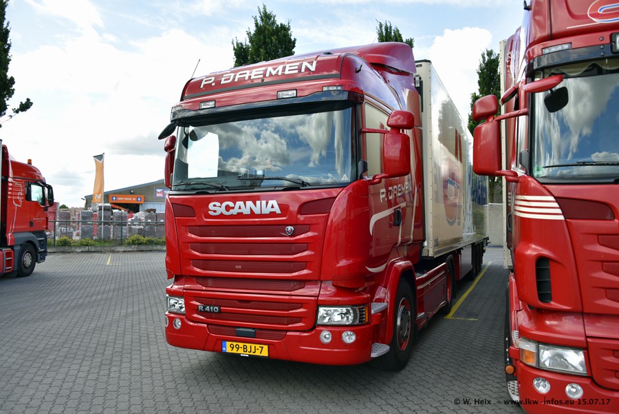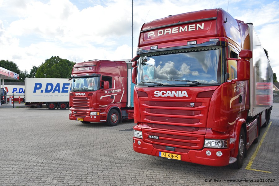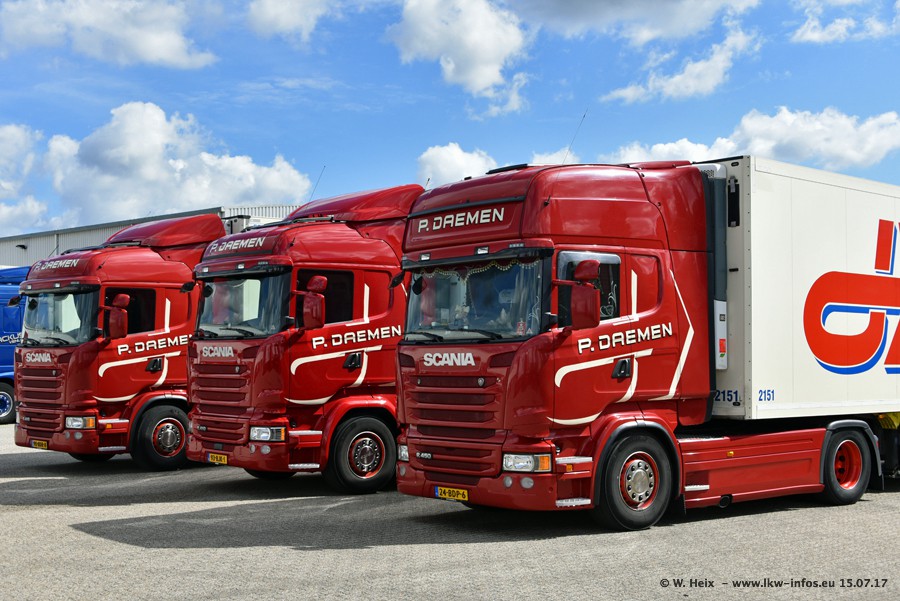 Zur Zeit wird auf dem Gelände gebaut (Erweiterung der Lagerhallen), darum ist es derzeit etwas eng. Das hatte den Vorteil, dass einige LKW außerhalb vom Firmengelände standen (gut für schöne Fotos). Und insgesamt waren diesmal weniger LKW zuhause als üblich. Das hatte den Vorteil, dass ich viele Fahrzeuge besser fotografieren konnte. Besonders interessant finde ich immer wieder die Aurlieger, die im Design der Kunden/Auftraggeber gestaltet sind. Und das werden immer mehr.