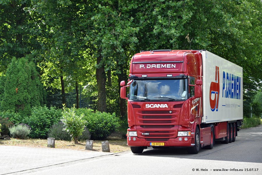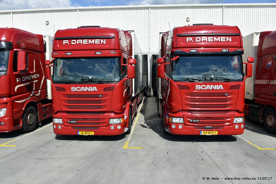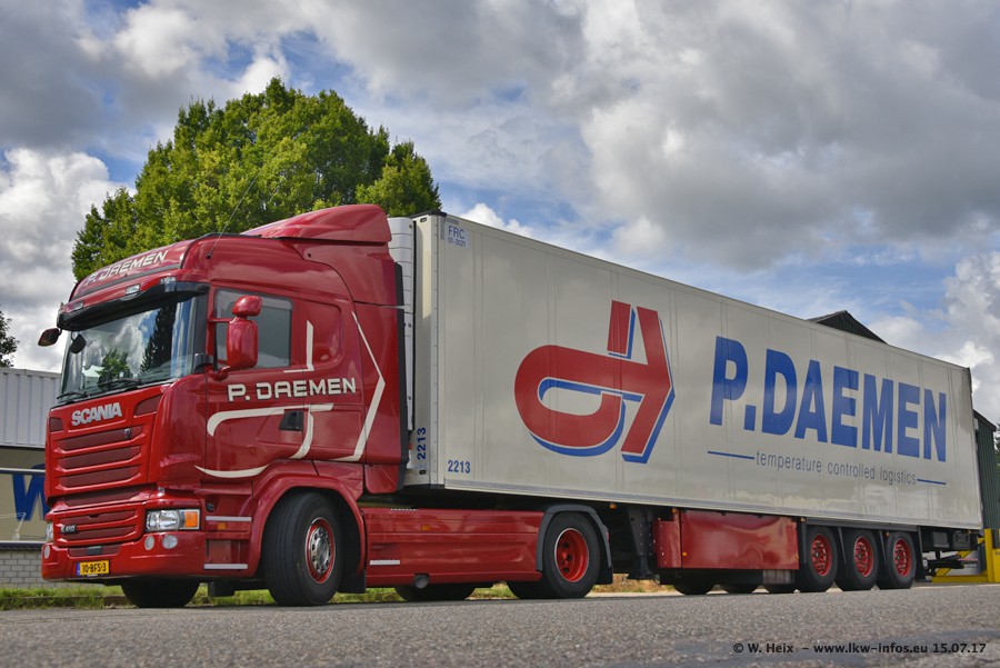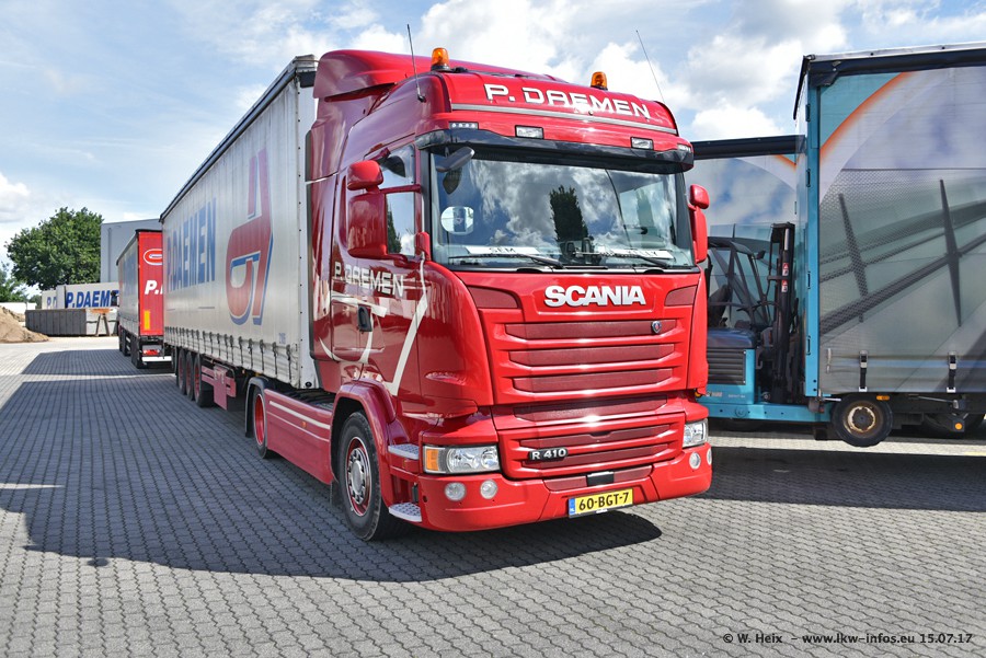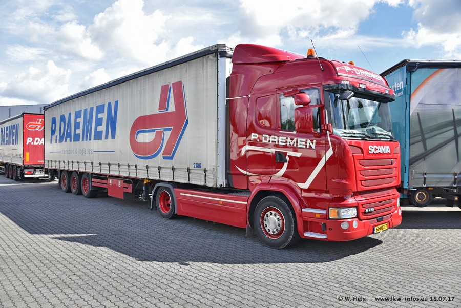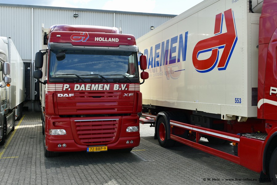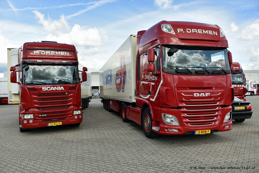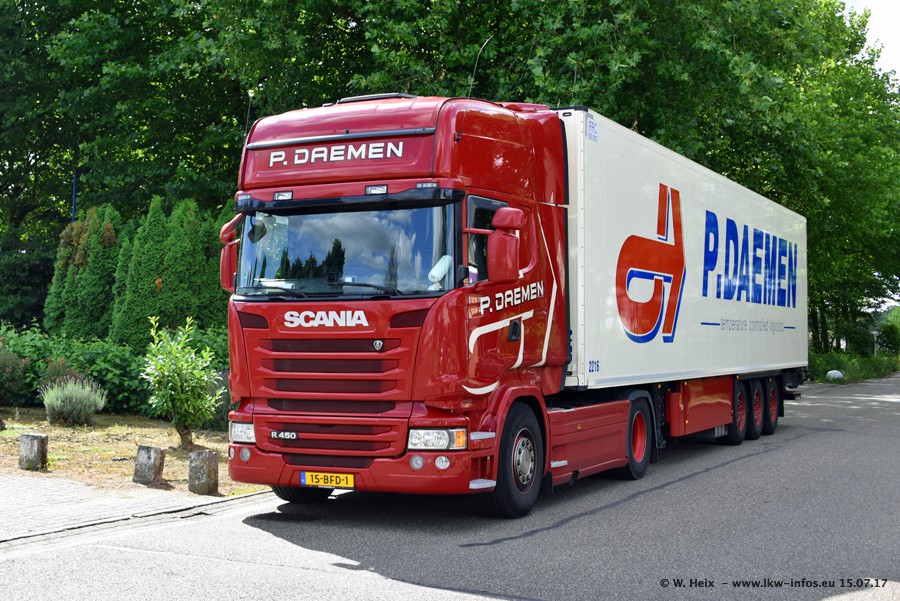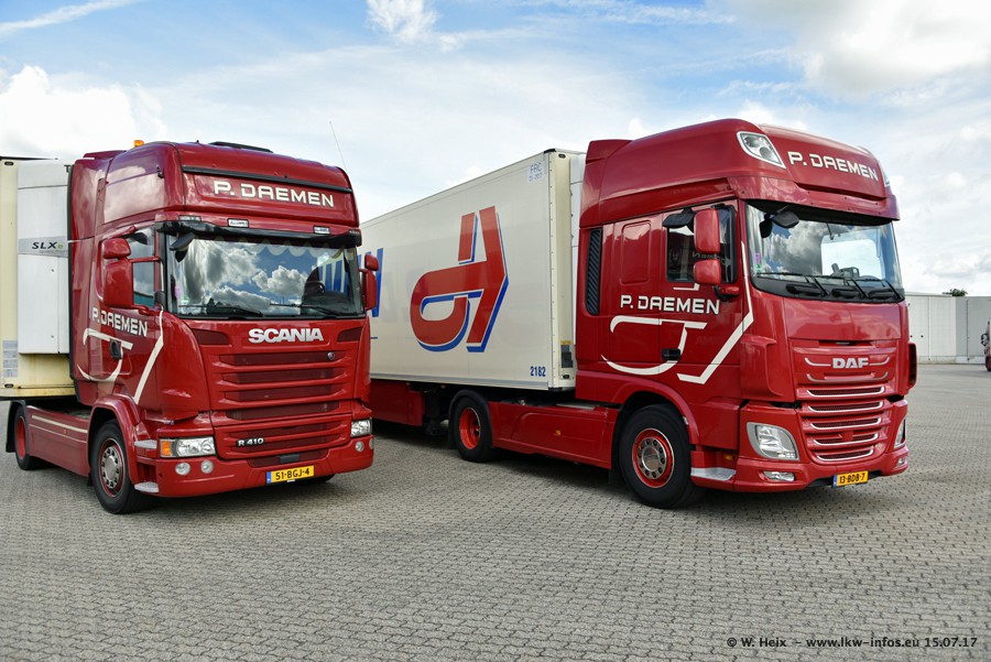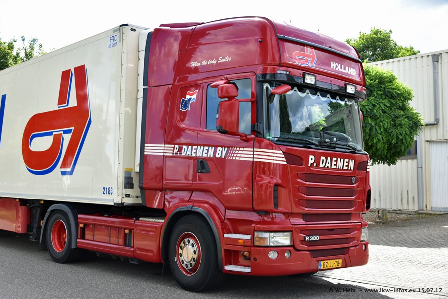 Zur Zeit wird auf dem Gelände gebaut (Erweiterung der Lagerhallen), darum ist es derzeit etwas eng. Das hatte den Vorteil, dass einige LKW außerhalb vom Firmengelände standen (gut für schöne Fotos). Und insgesamt waren diesmal weniger LKW zuhause als üblich. Das hatte den Vorteil, dass ich viele Fahrzeuge besser fotografieren konnte. Besonders interessant finde ich immer wieder die Aurlieger, die im Design der Kunden/Auftraggeber gestaltet sind. Und das werden immer mehr.