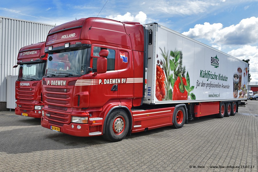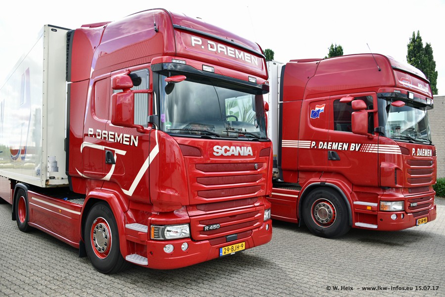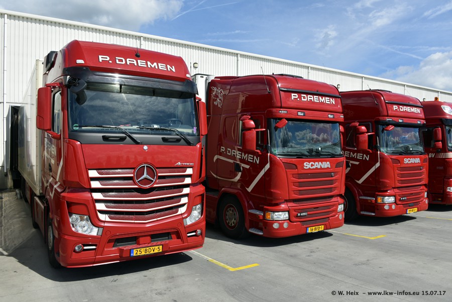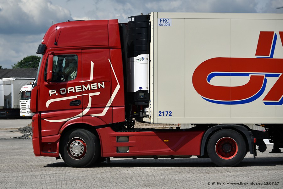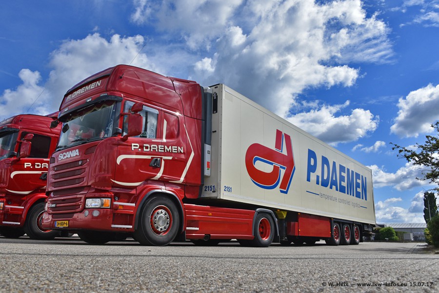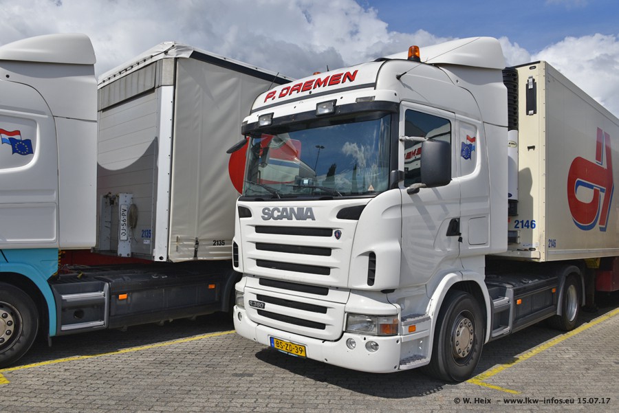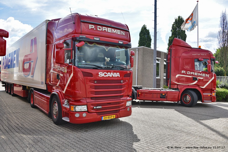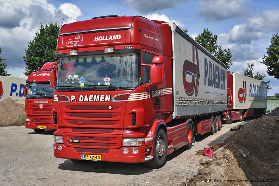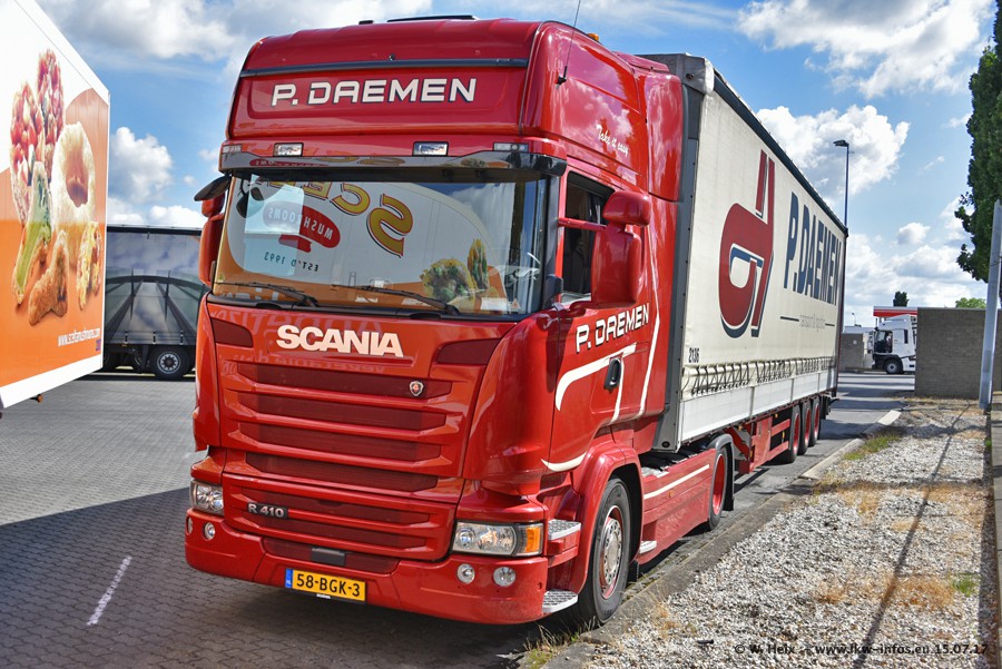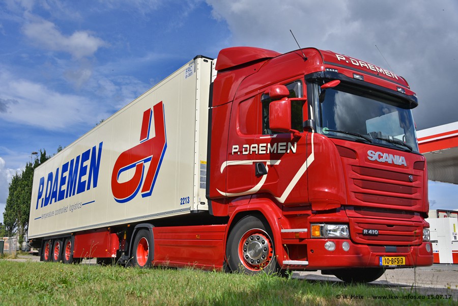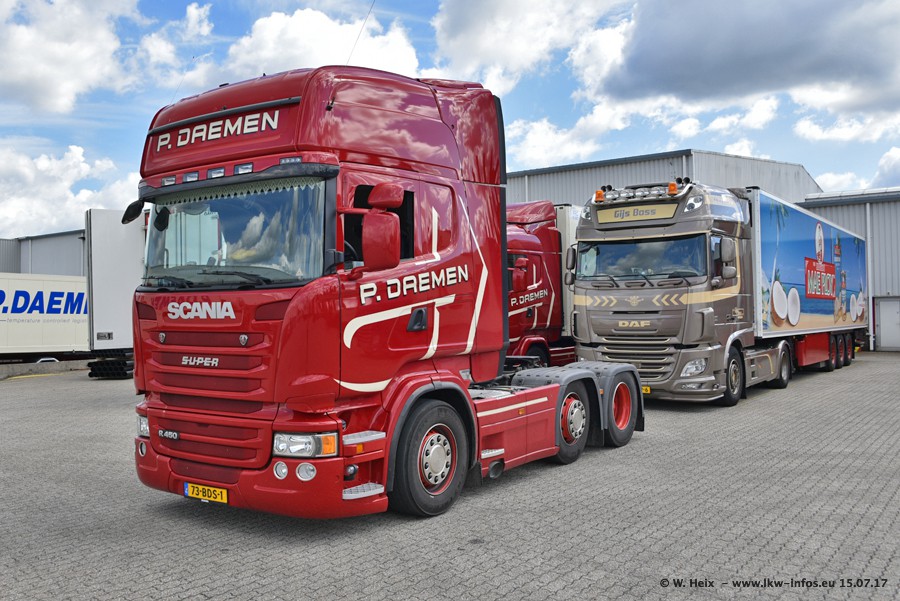 Zur Zeit wird auf dem Gelände gebaut (Erweiterung der Lagerhallen), darum ist es derzeit etwas eng. Das hatte den Vorteil, dass einige LKW außerhalb vom Firmengelände standen (gut für schöne Fotos). Und insgesamt waren diesmal weniger LKW zuhause als üblich. Das hatte den Vorteil, dass ich viele Fahrzeuge besser fotografieren konnte. Besonders interessant finde ich immer wieder die Aurlieger, die im Design der Kunden/Auftraggeber gestaltet sind. Und das werden immer mehr.