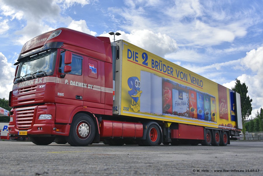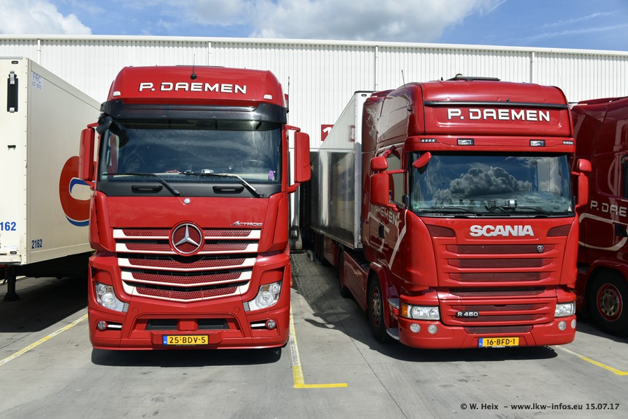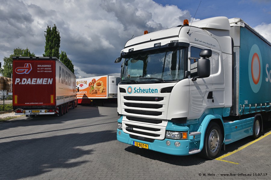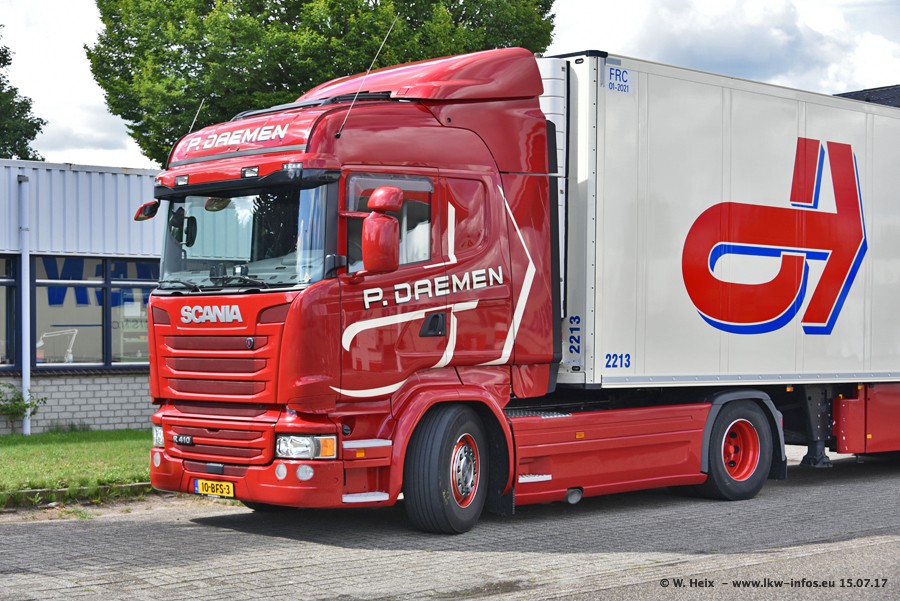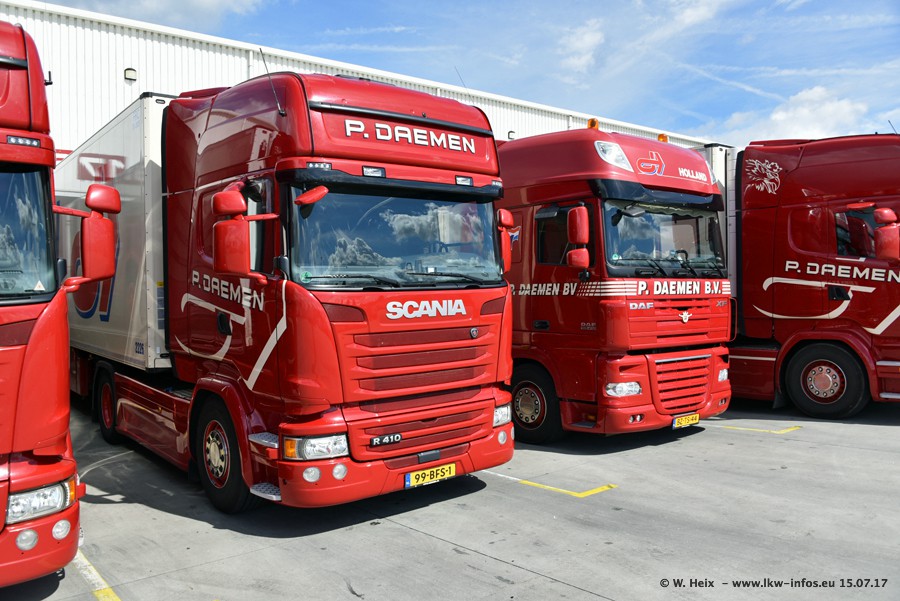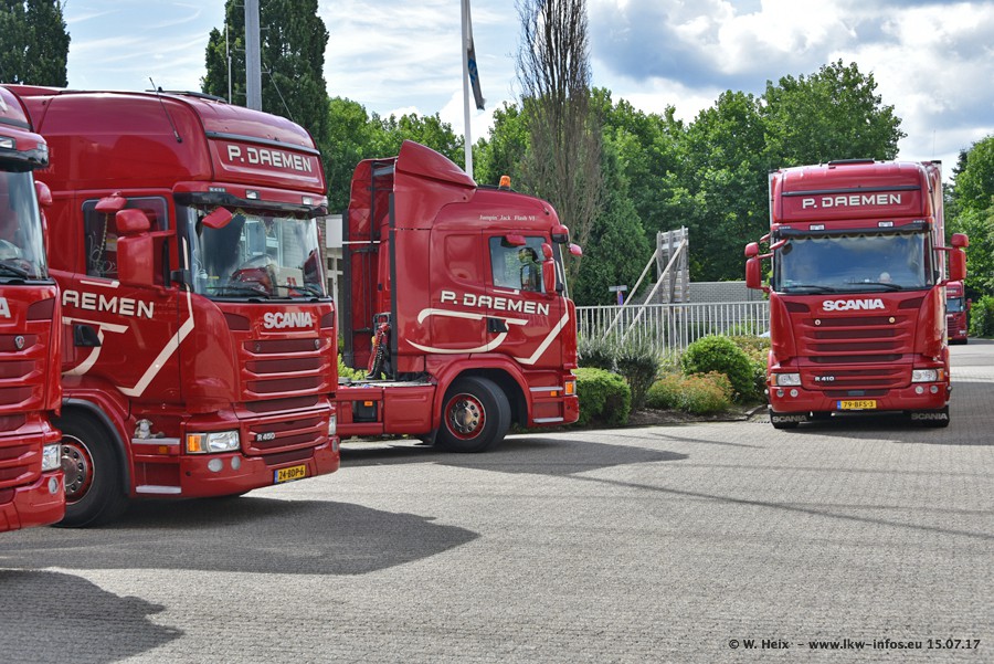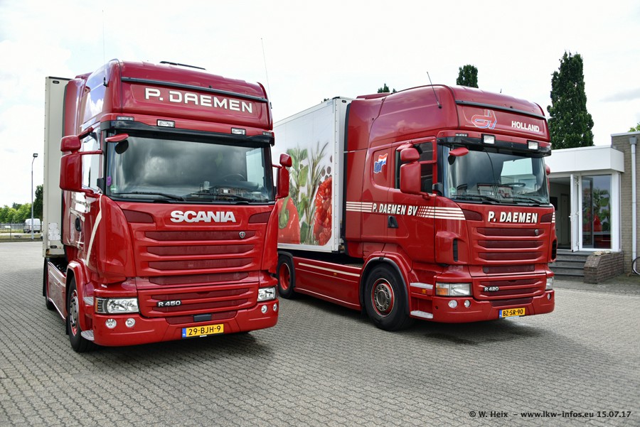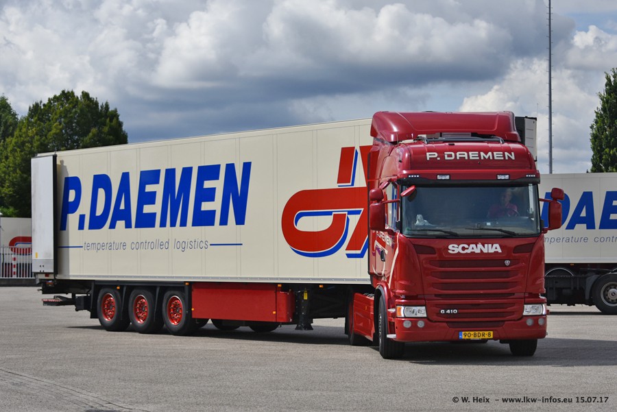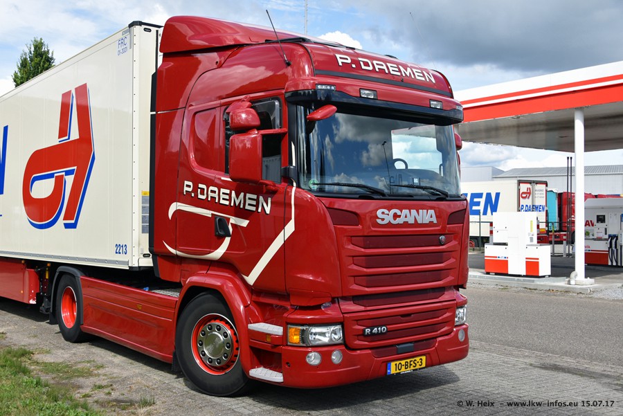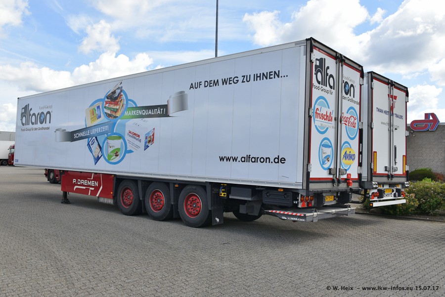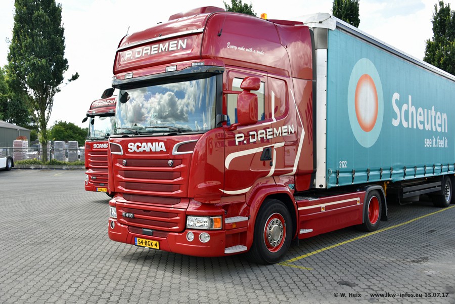 Zur Zeit wird auf dem Gelände gebaut (Erweiterung der Lagerhallen), darum ist es derzeit etwas eng. Das hatte den Vorteil, dass einige LKW außerhalb vom Firmengelände standen (gut für schöne Fotos). Und insgesamt waren diesmal weniger LKW zuhause als üblich. Das hatte den Vorteil, dass ich viele Fahrzeuge besser fotografieren konnte. Besonders interessant finde ich immer wieder die Aurlieger, die im Design der Kunden/Auftraggeber gestaltet sind. Und das werden immer mehr.