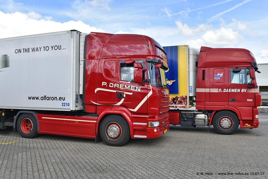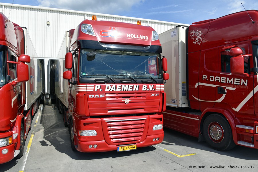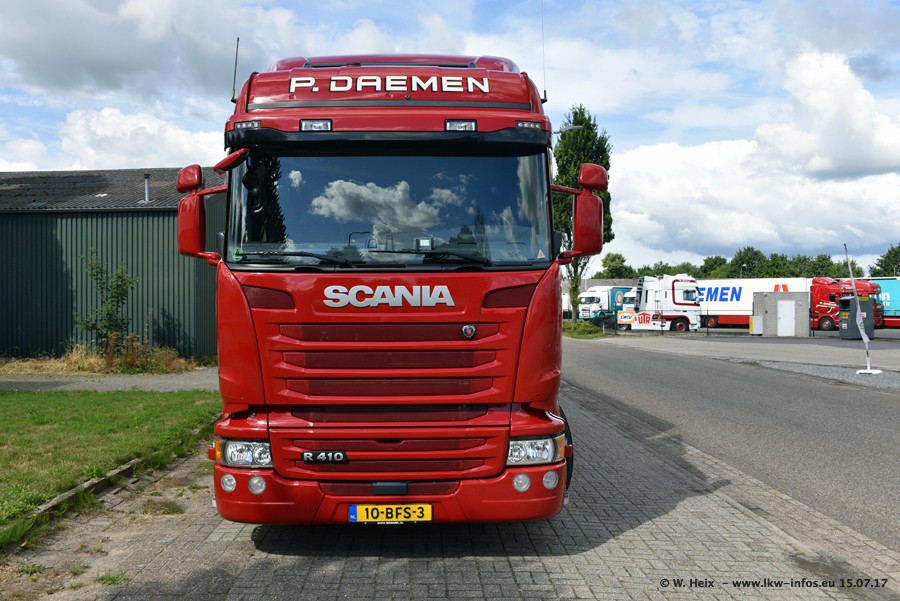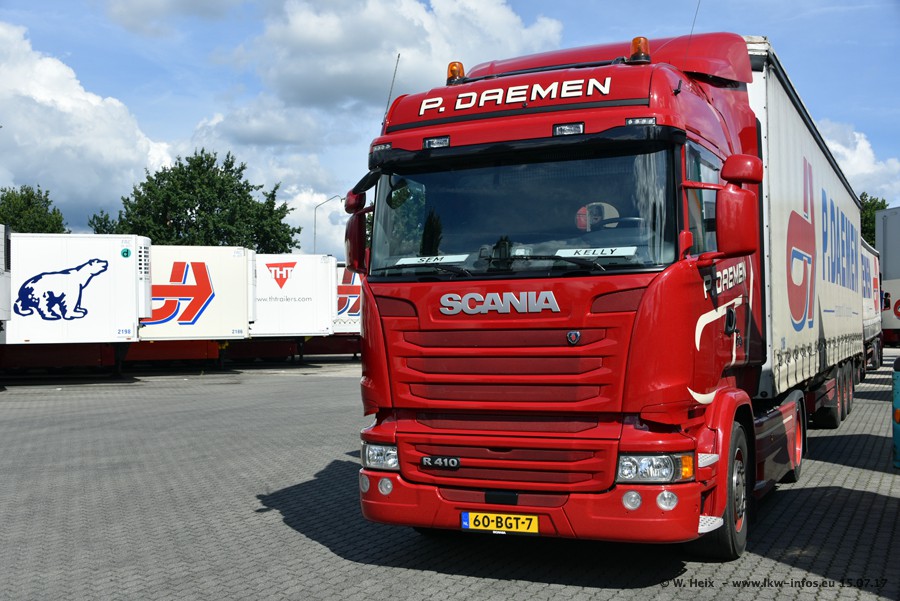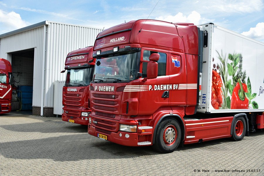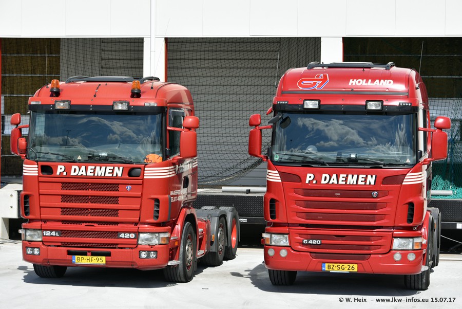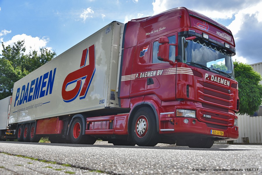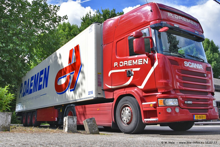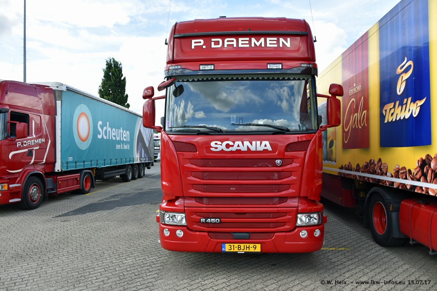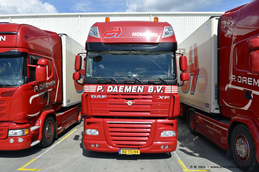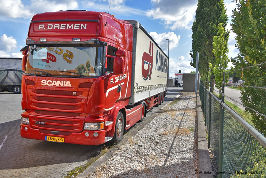 Zur Zeit wird auf dem Gelände gebaut (Erweiterung der Lagerhallen), darum ist es derzeit etwas eng. Das hatte den Vorteil, dass einige LKW außerhalb vom Firmengelände standen (gut für schöne Fotos). Und insgesamt waren diesmal weniger LKW zuhause als üblich. Das hatte den Vorteil, dass ich viele Fahrzeuge besser fotografieren konnte. Besonders interessant finde ich immer wieder die Aurlieger, die im Design der Kunden/Auftraggeber gestaltet sind. Und das werden immer mehr.