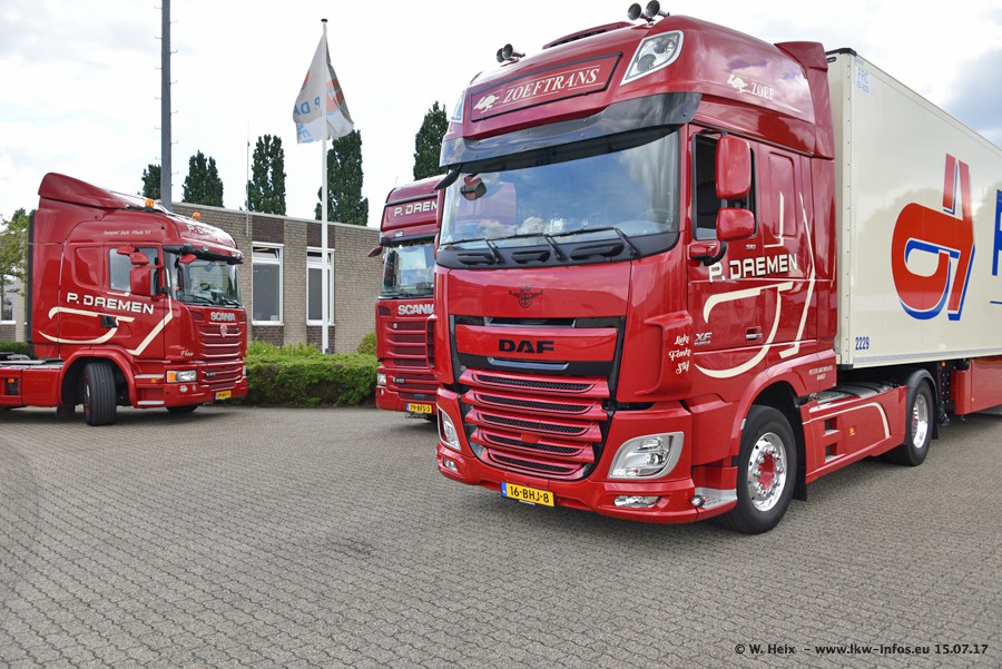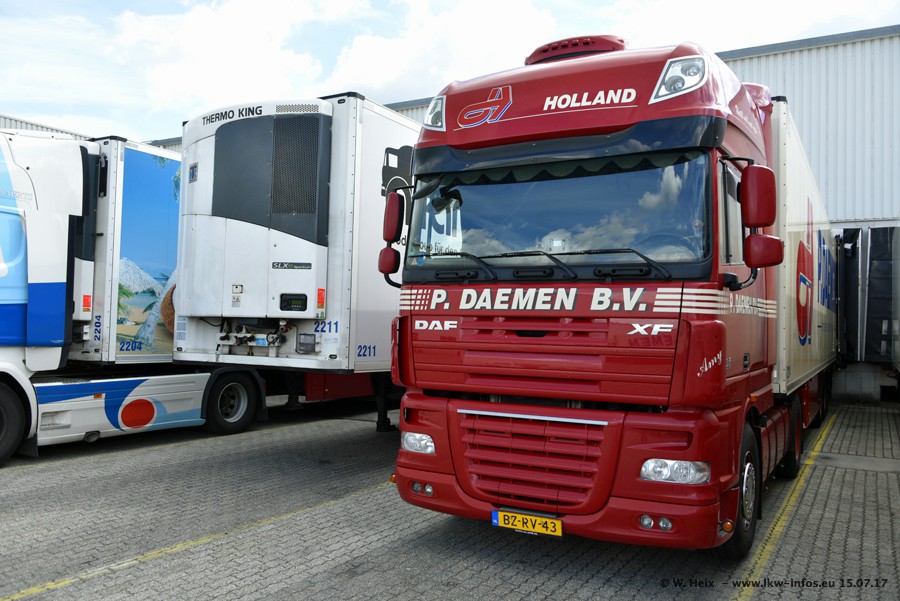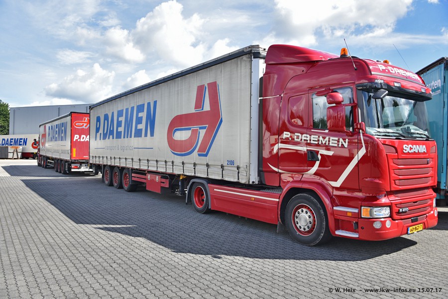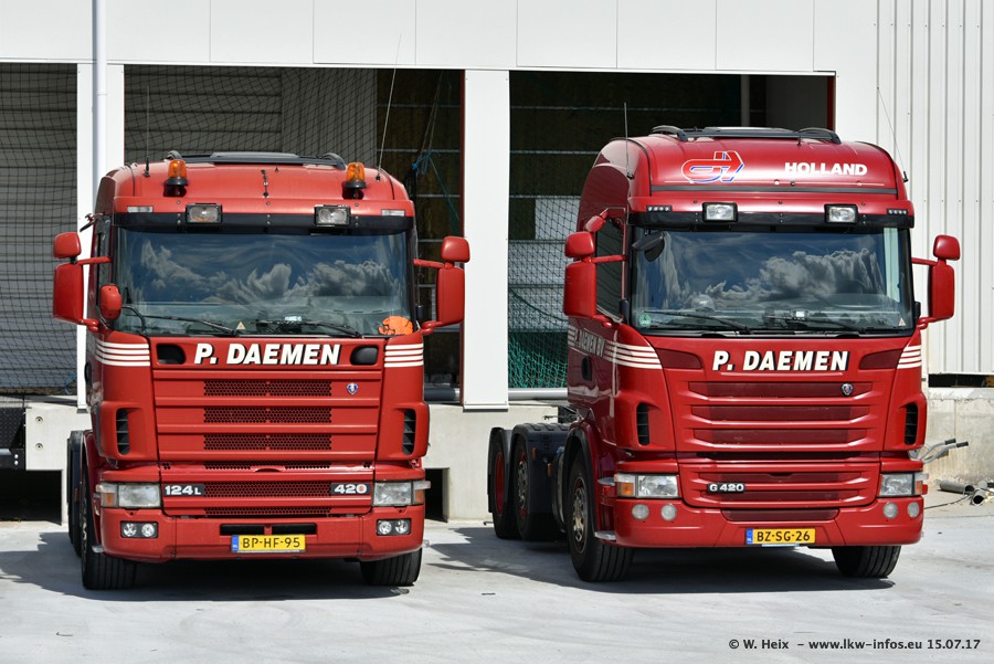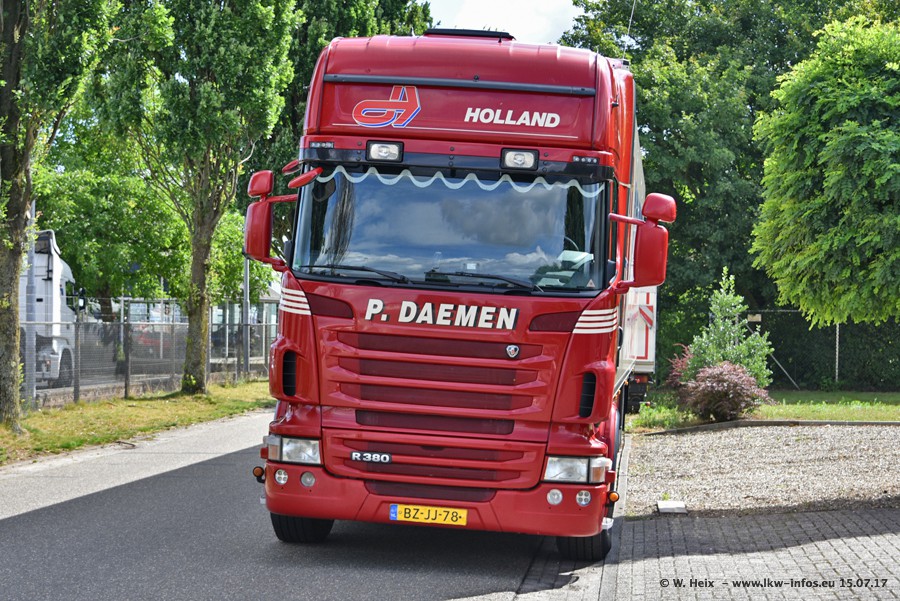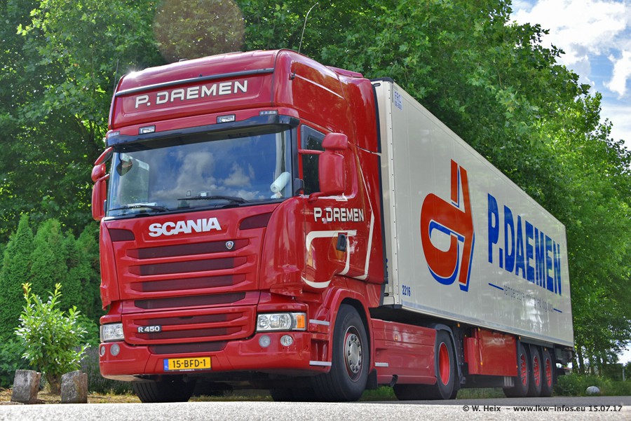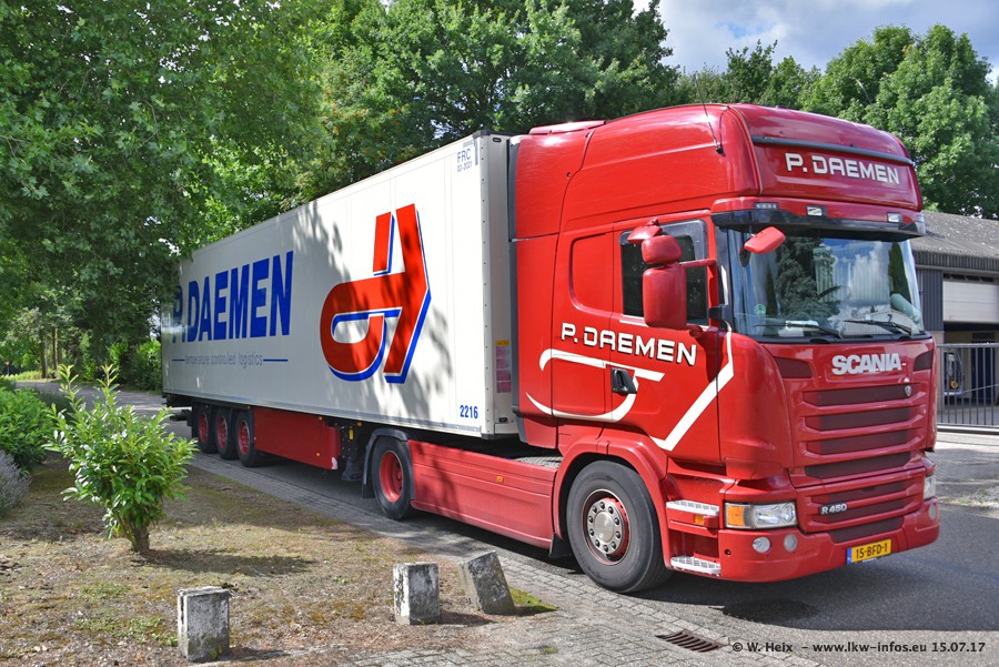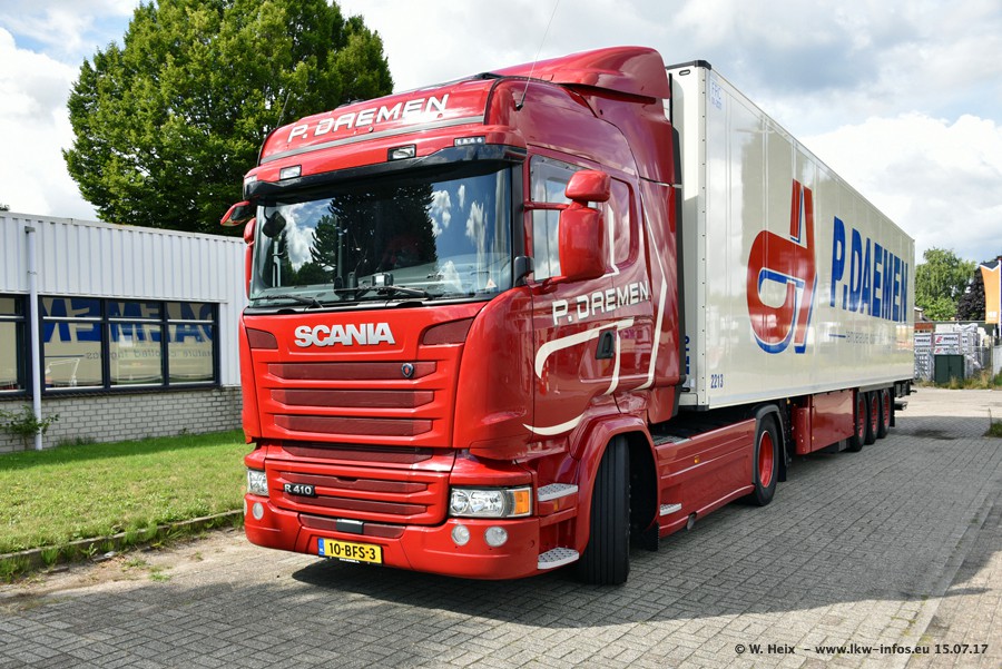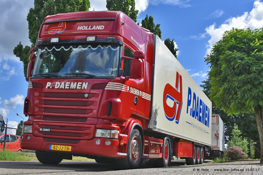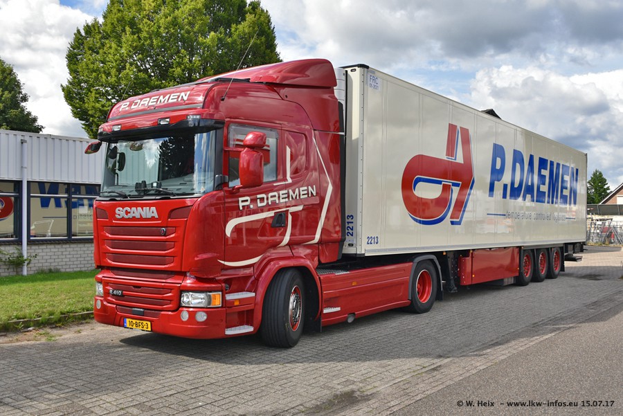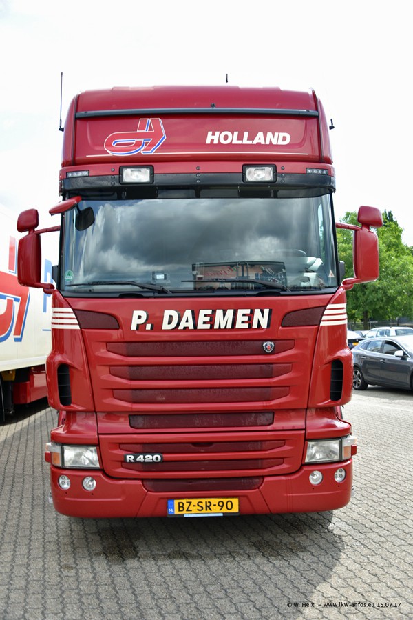 Zur Zeit wird auf dem Gelände gebaut (Erweiterung der Lagerhallen), darum ist es derzeit etwas eng. Das hatte den Vorteil, dass einige LKW außerhalb vom Firmengelände standen (gut für schöne Fotos). Und insgesamt waren diesmal weniger LKW zuhause als üblich. Das hatte den Vorteil, dass ich viele Fahrzeuge besser fotografieren konnte. Besonders interessant finde ich immer wieder die Aurlieger, die im Design der Kunden/Auftraggeber gestaltet sind. Und das werden immer mehr.