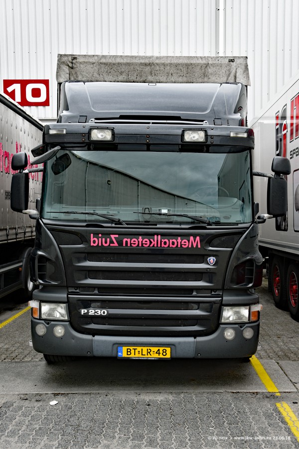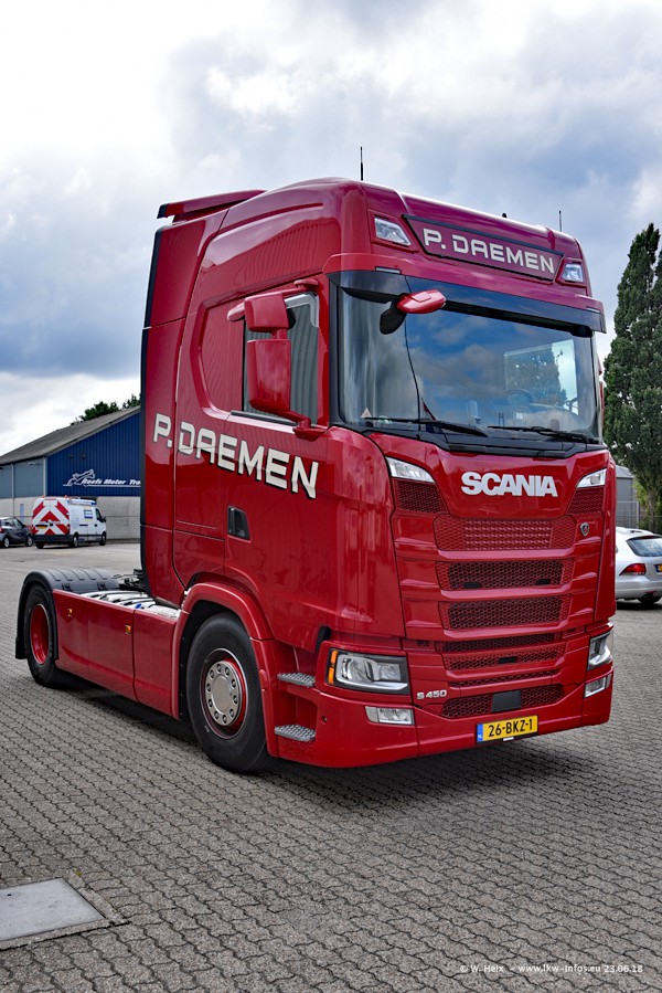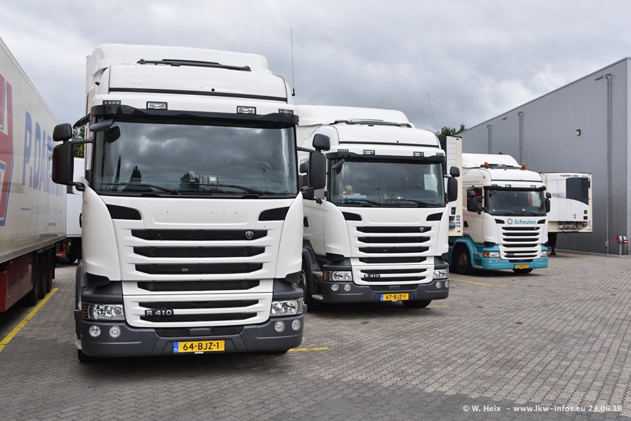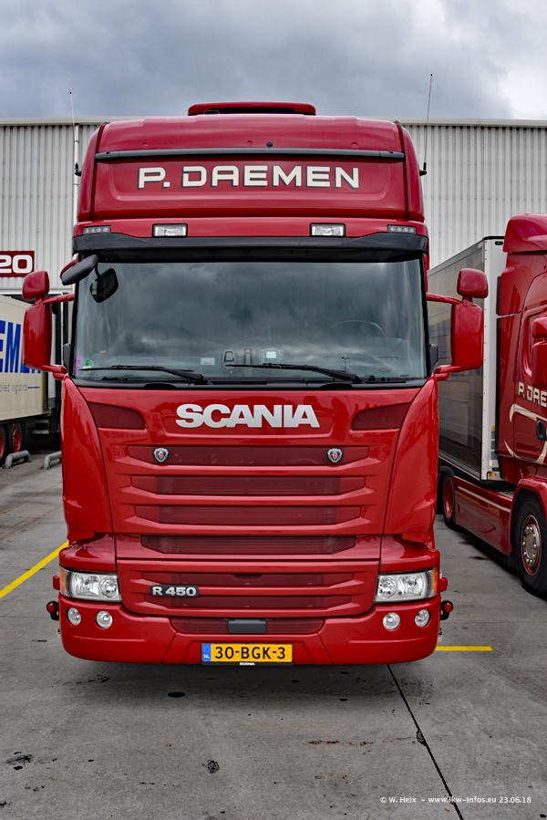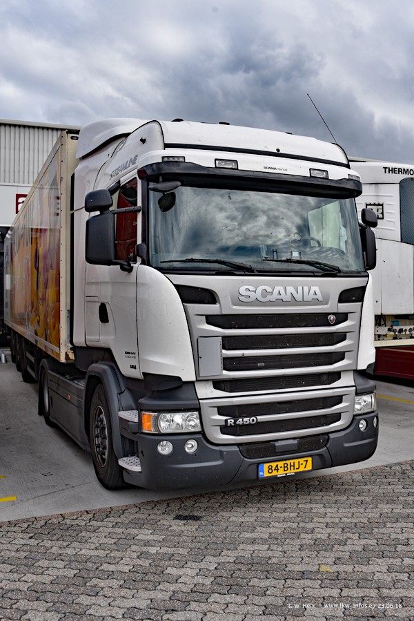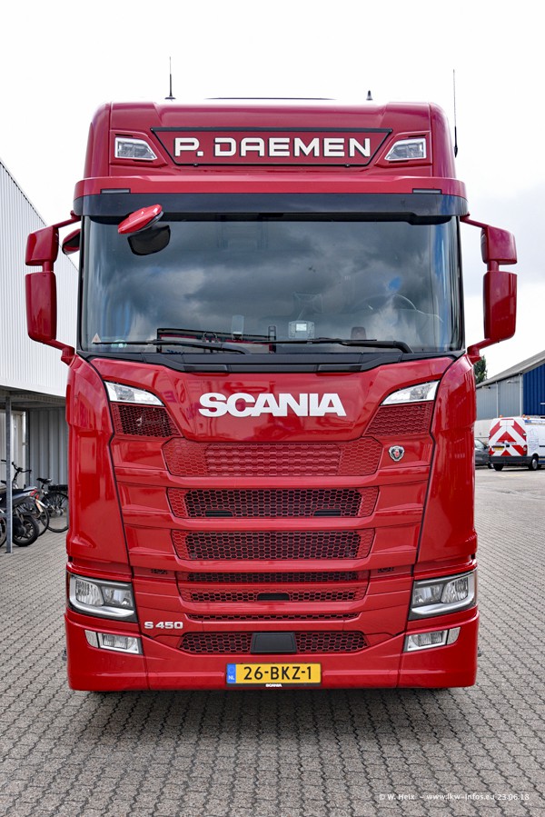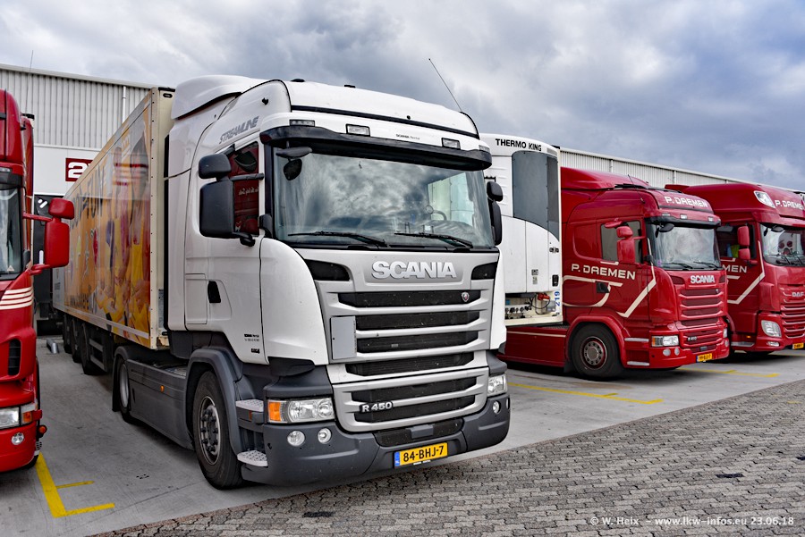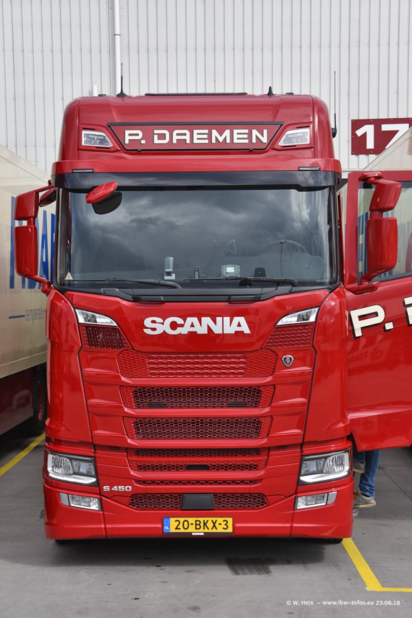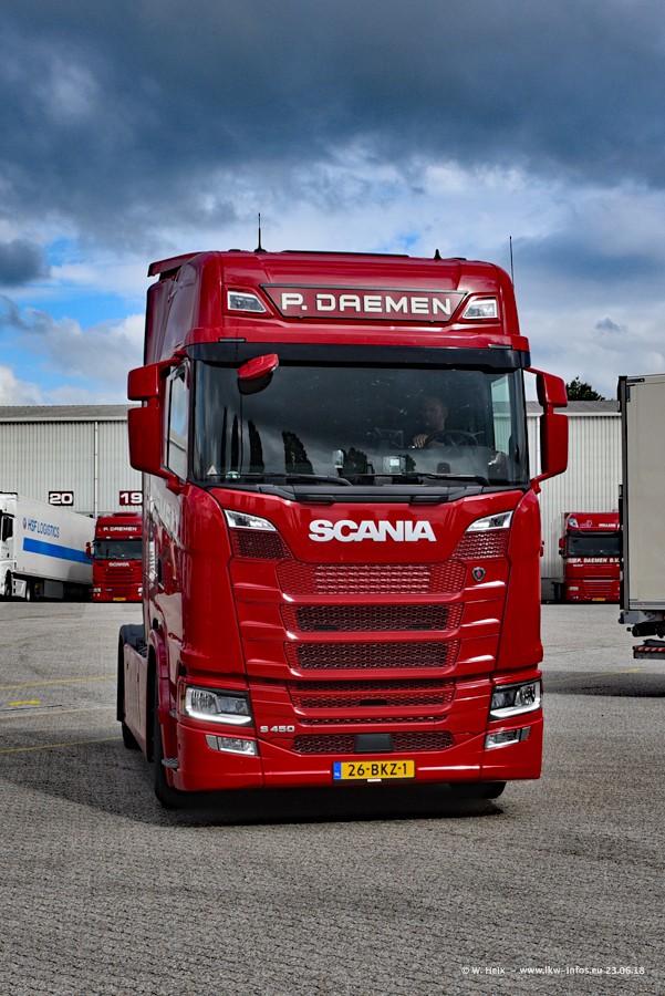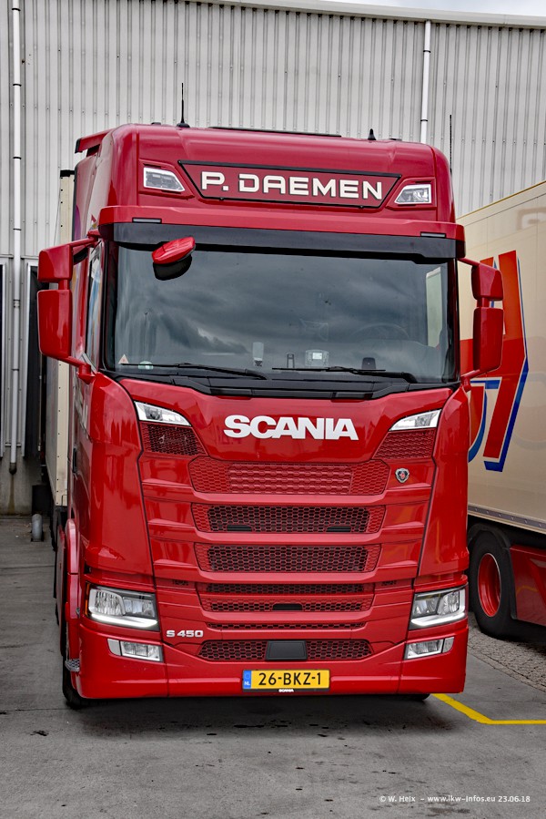 Im ersten Halbjahr 2018 sind mindestens vier DAF XF Euro 6 sowie drei SCANIA S 450 NextGen in den Fuhrpark gekommen. Zwei neue SCANIA konnte ich fotografieren, der dritte stand zum Beschriften in der Werkstatt. Dazu kommt noch ein neuer SCANIA G NextGen 8x2, in Kundenfarben (schwarz) lackiert ist. Dieser SCANIA wurde für Fotos erstmals aus der Halle gefahren und wird ab Montag fahren.