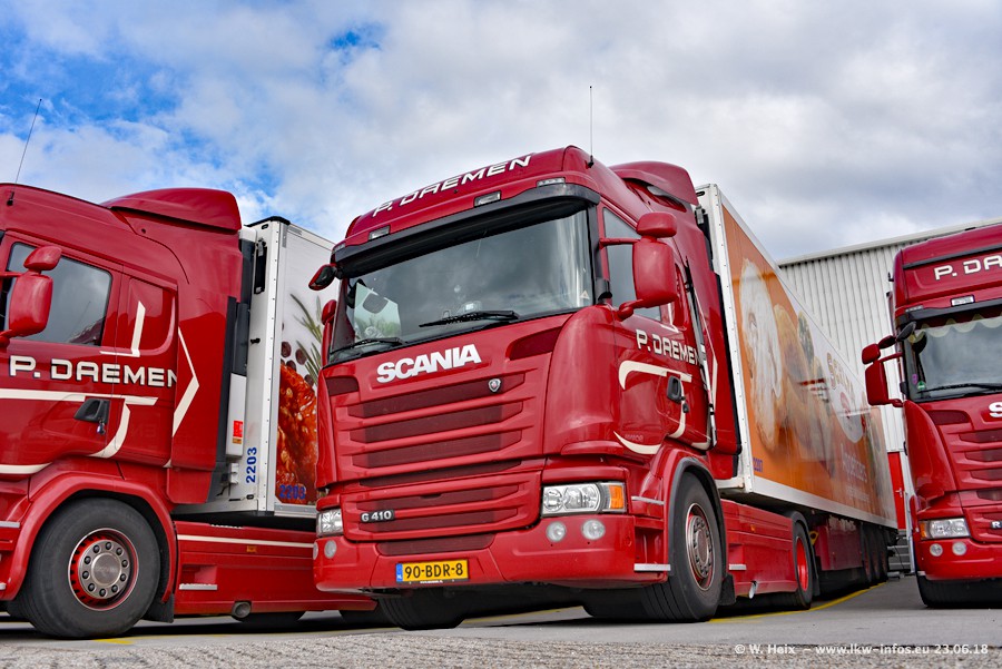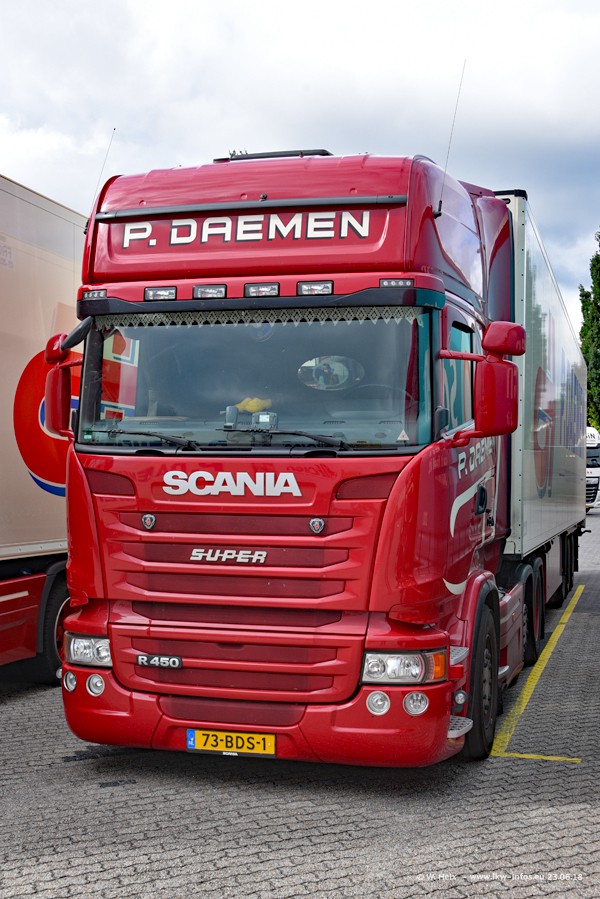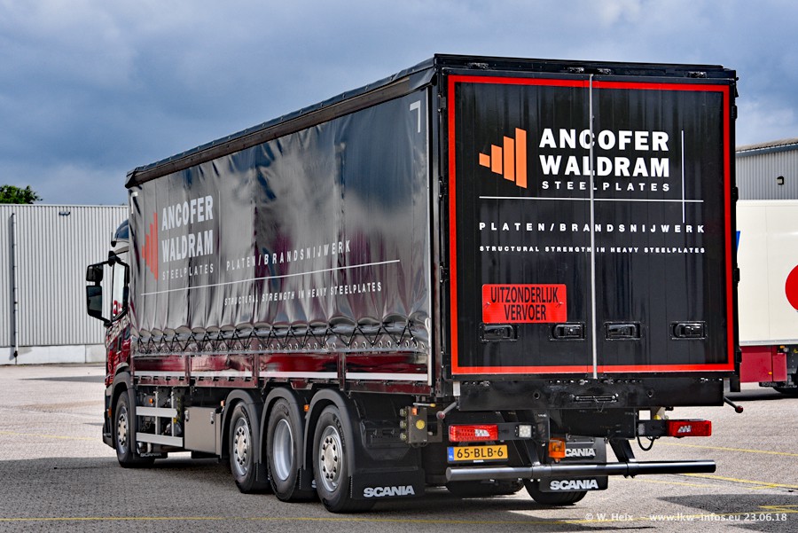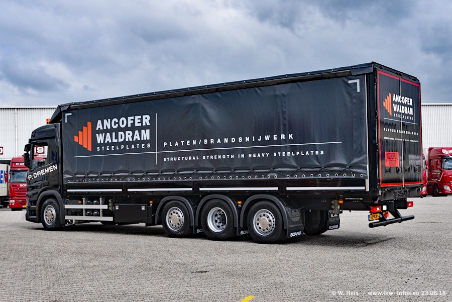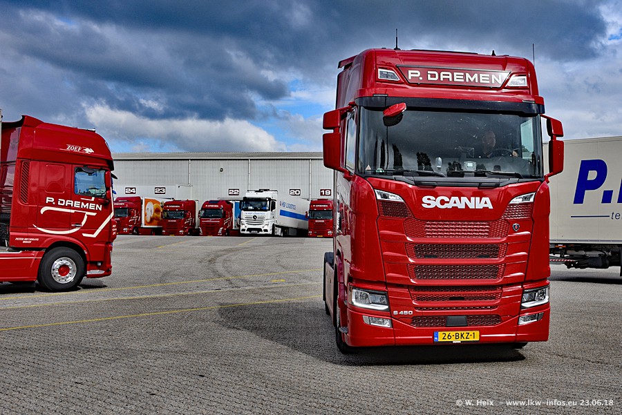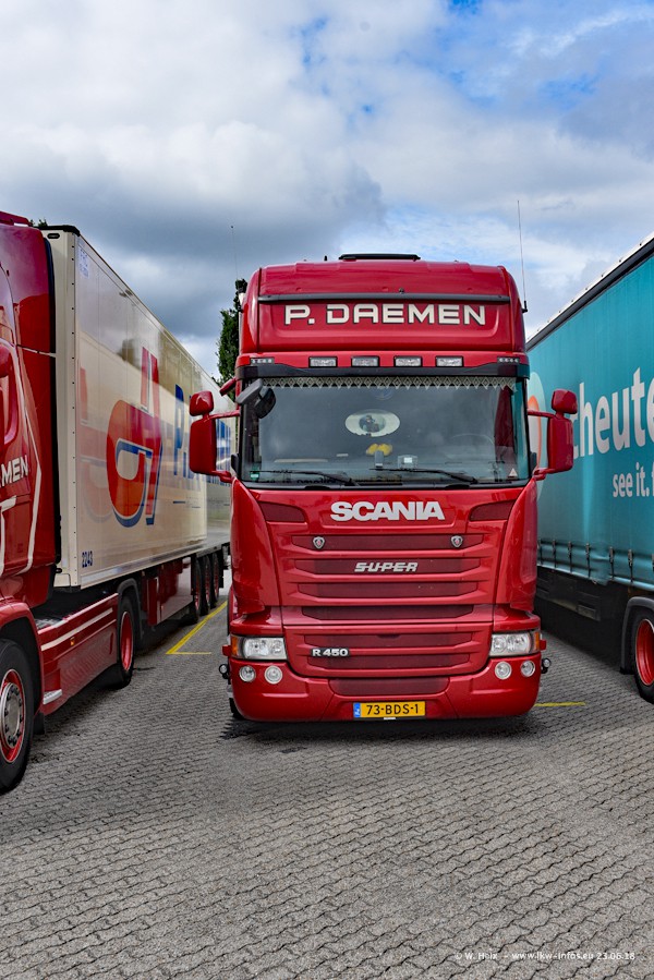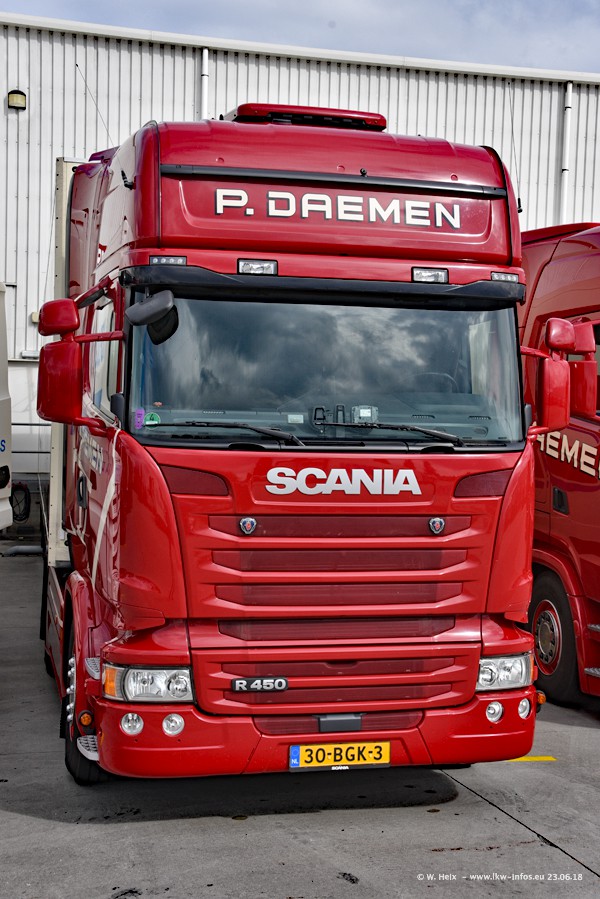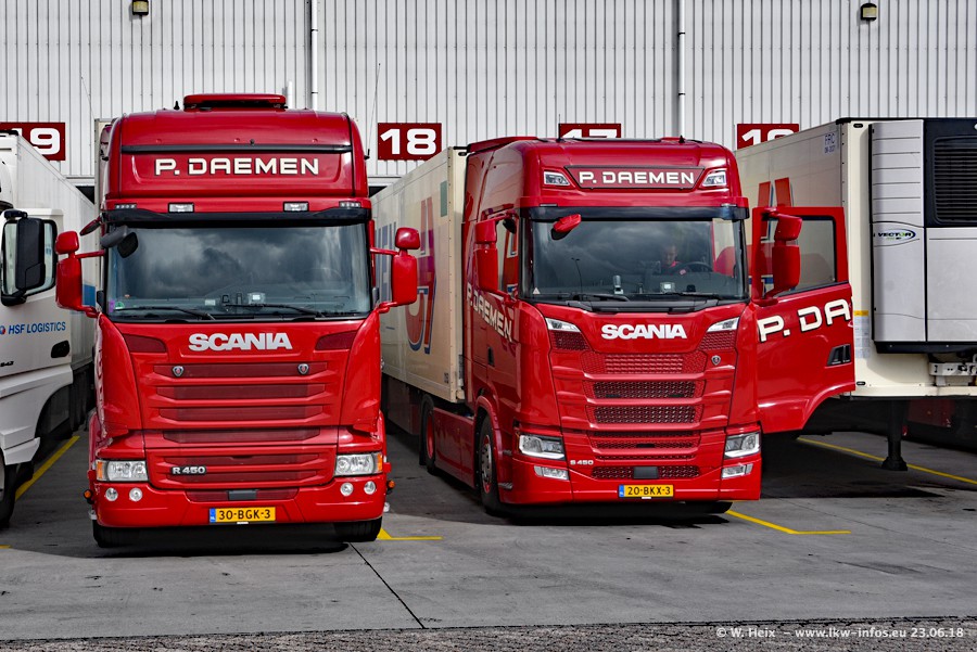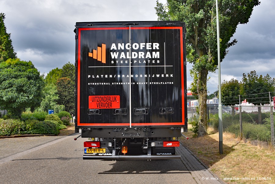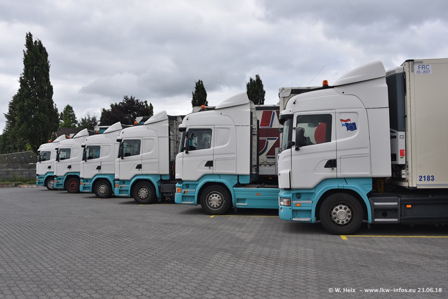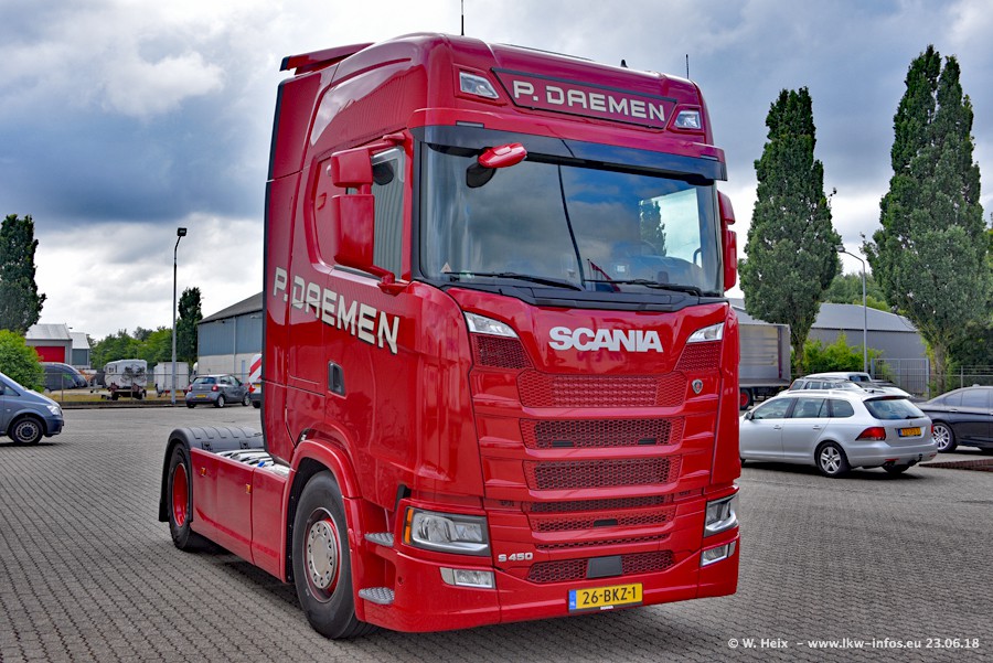 Im ersten Halbjahr 2018 sind mindestens vier DAF XF Euro 6 sowie drei SCANIA S 450 NextGen in den Fuhrpark gekommen. Zwei neue SCANIA konnte ich fotografieren, der dritte stand zum Beschriften in der Werkstatt. Dazu kommt noch ein neuer SCANIA G NextGen 8x2, in Kundenfarben (schwarz) lackiert ist. Dieser SCANIA wurde für Fotos erstmals aus der Halle gefahren und wird ab Montag fahren.