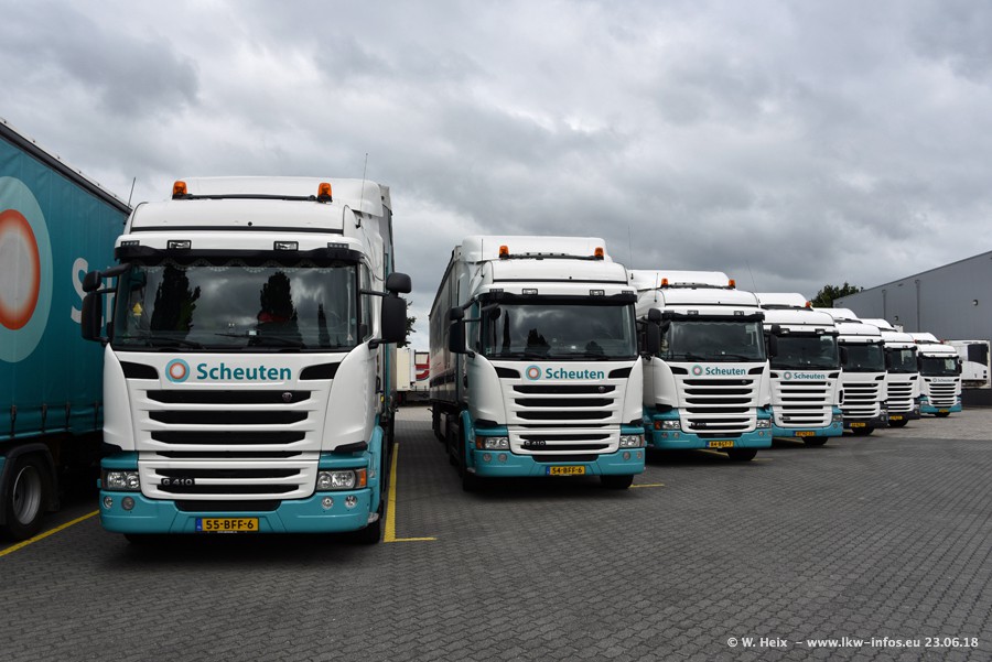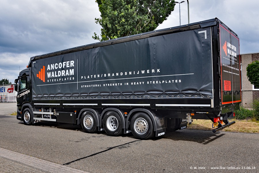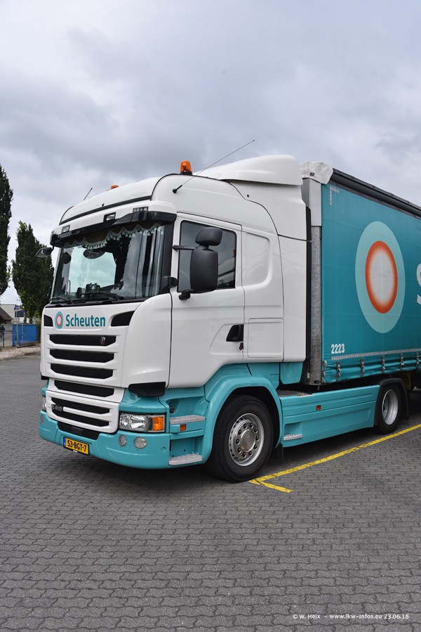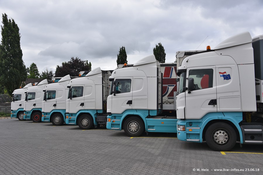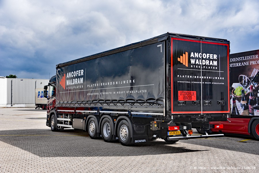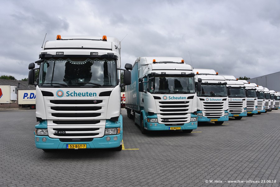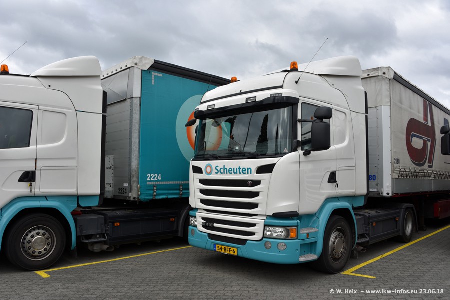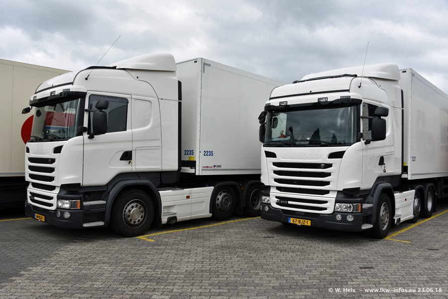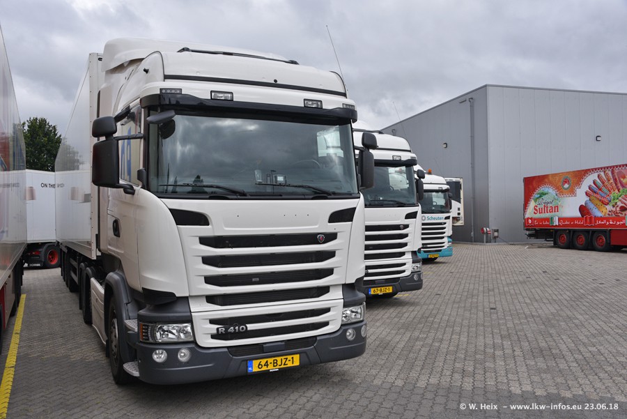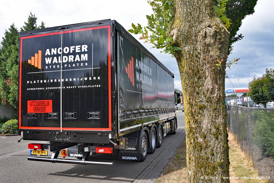 Im ersten Halbjahr 2018 sind mindestens vier DAF XF Euro 6 sowie drei SCANIA S 450 NextGen in den Fuhrpark gekommen. Zwei neue SCANIA konnte ich fotografieren, der dritte stand zum Beschriften in der Werkstatt. Dazu kommt noch ein neuer SCANIA G NextGen 8x2, in Kundenfarben (schwarz) lackiert ist. Dieser SCANIA wurde für Fotos erstmals aus der Halle gefahren und wird ab Montag fahren.