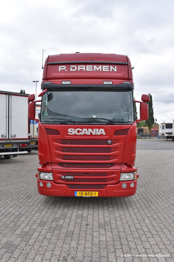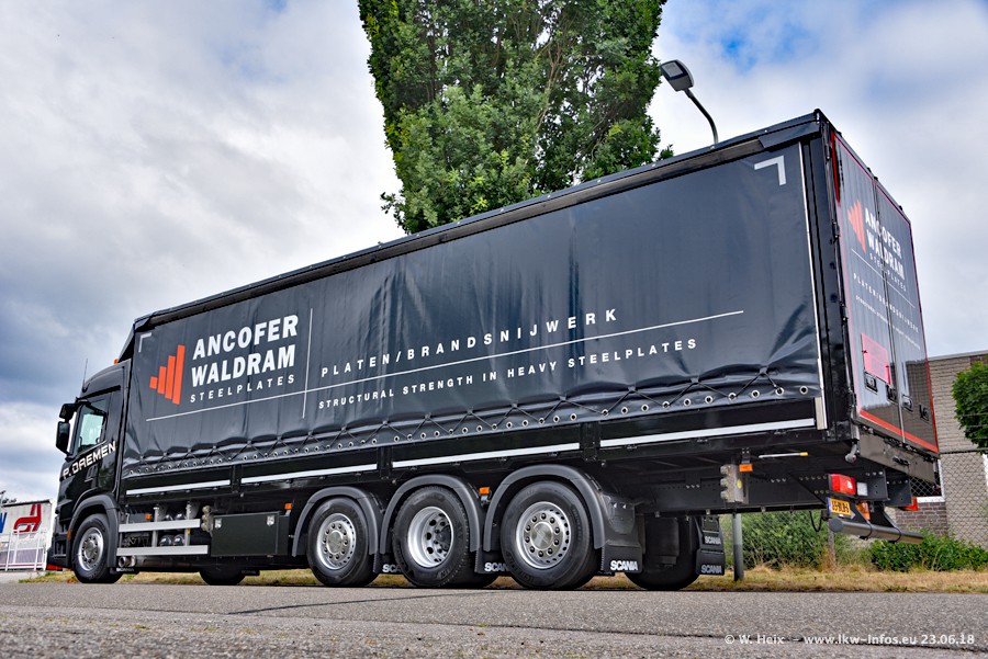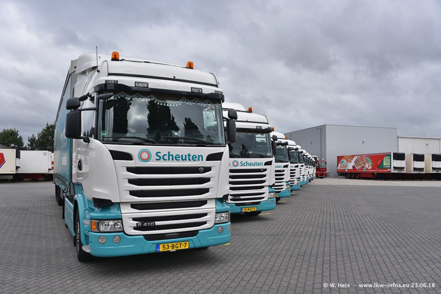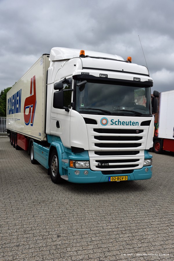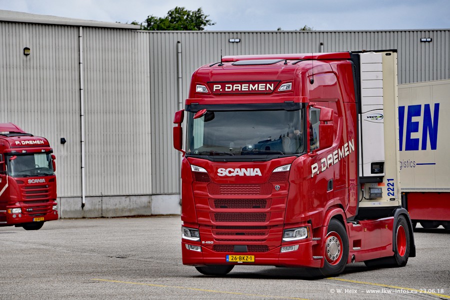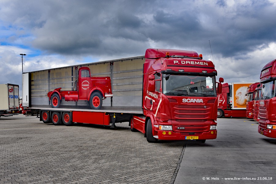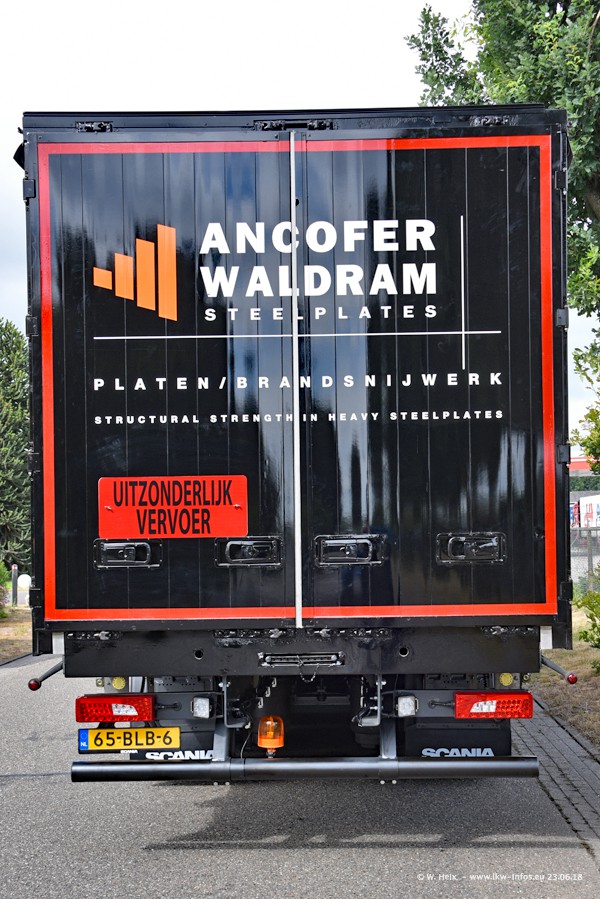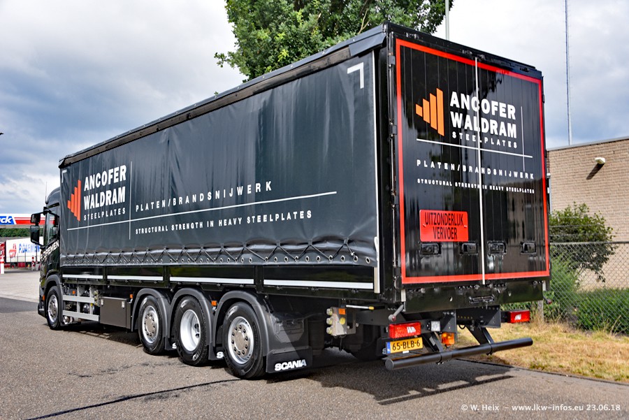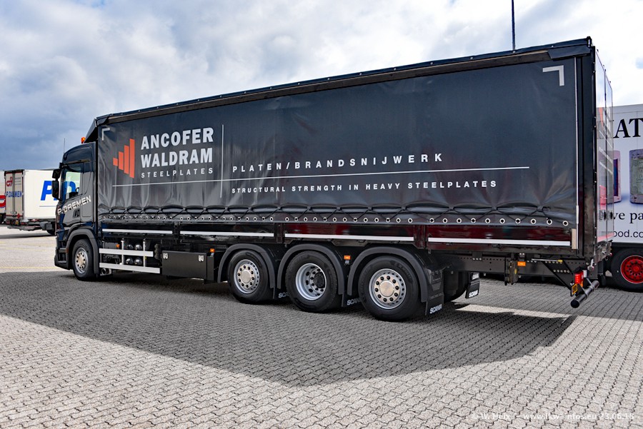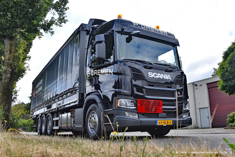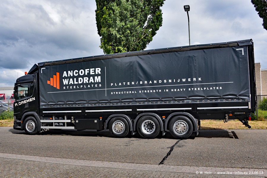 Im ersten Halbjahr 2018 sind mindestens vier DAF XF Euro 6 sowie drei SCANIA S 450 NextGen in den Fuhrpark gekommen. Zwei neue SCANIA konnte ich fotografieren, der dritte stand zum Beschriften in der Werkstatt. Dazu kommt noch ein neuer SCANIA G NextGen 8x2, in Kundenfarben (schwarz) lackiert ist. Dieser SCANIA wurde für Fotos erstmals aus der Halle gefahren und wird ab Montag fahren.