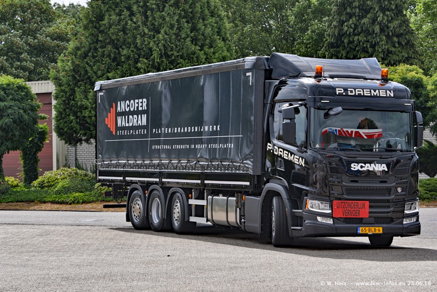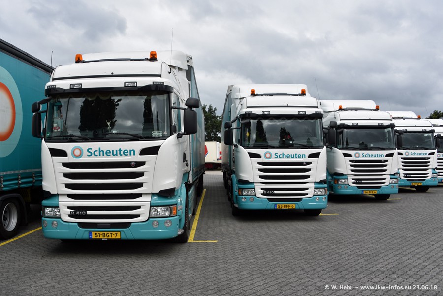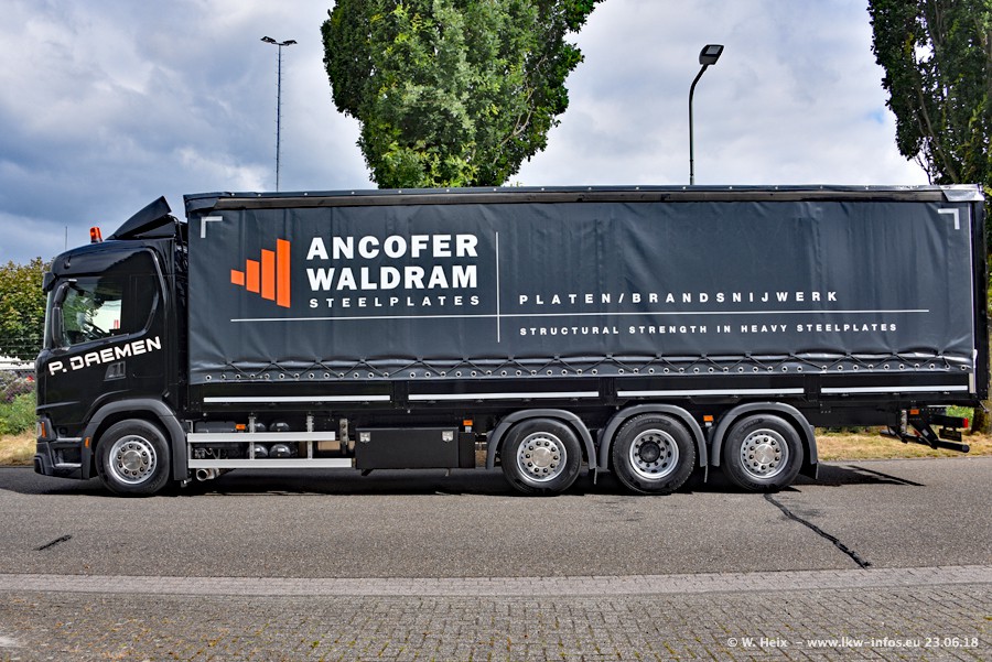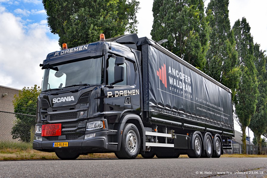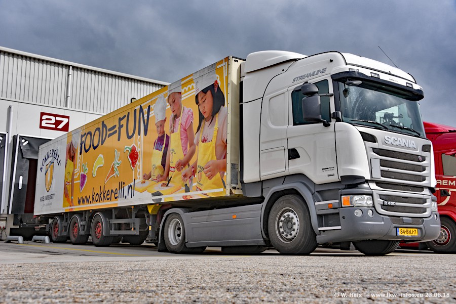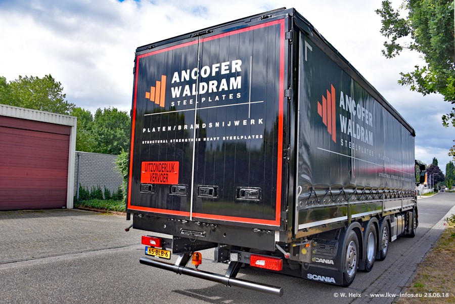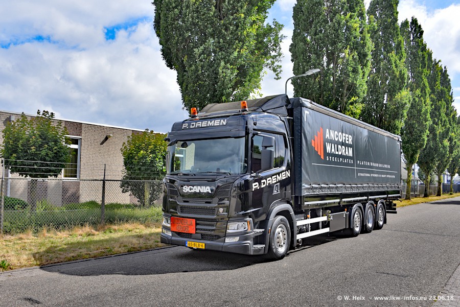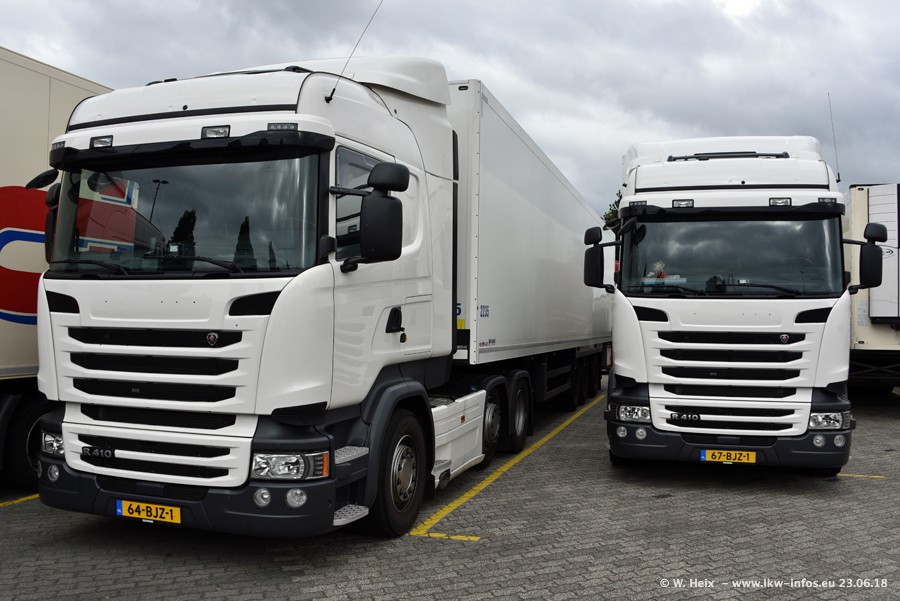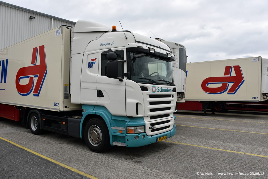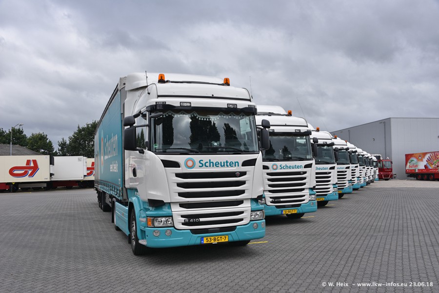 Im ersten Halbjahr 2018 sind mindestens vier DAF XF Euro 6 sowie drei SCANIA S 450 NextGen in den Fuhrpark gekommen. Zwei neue SCANIA konnte ich fotografieren, der dritte stand zum Beschriften in der Werkstatt. Dazu kommt noch ein neuer SCANIA G NextGen 8x2, in Kundenfarben (schwarz) lackiert ist. Dieser SCANIA wurde für Fotos erstmals aus der Halle gefahren und wird ab Montag fahren.