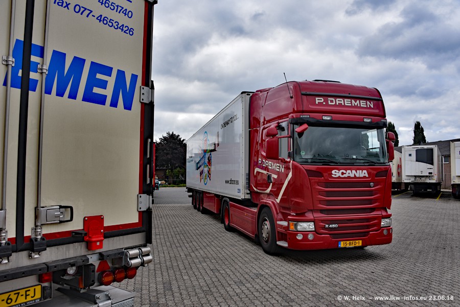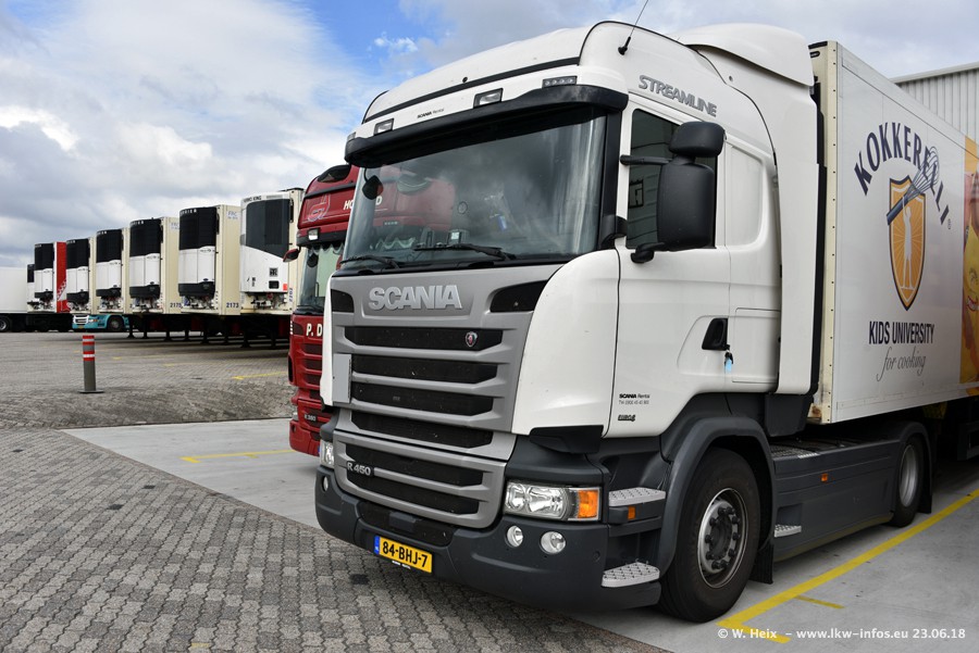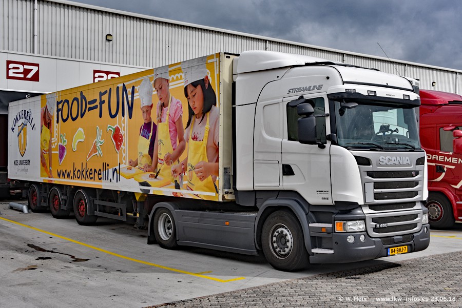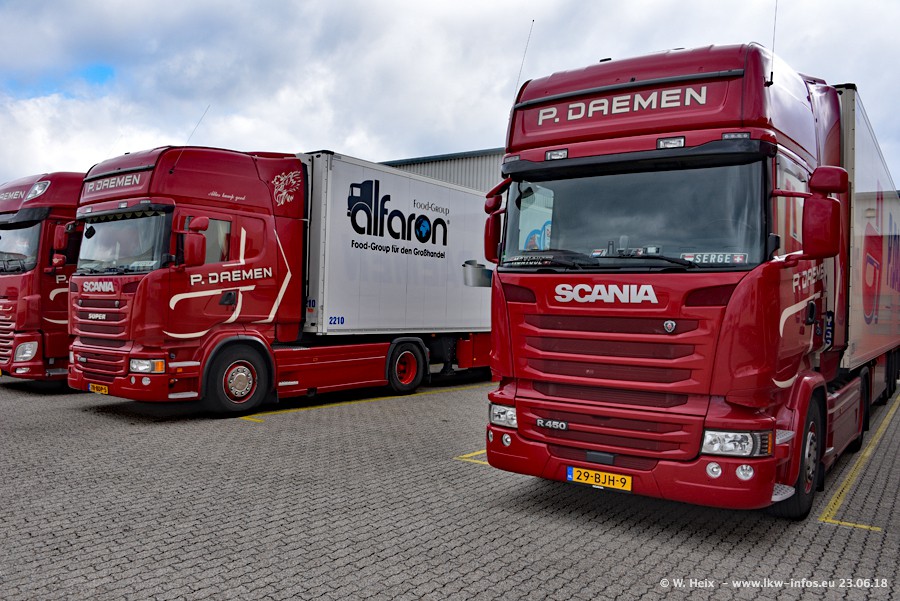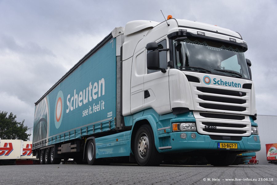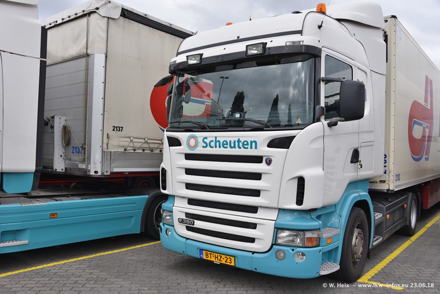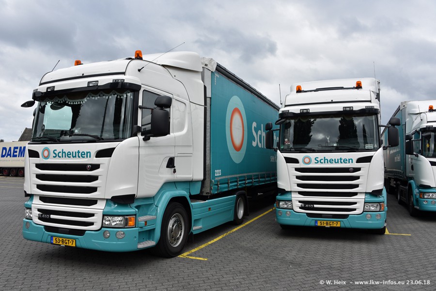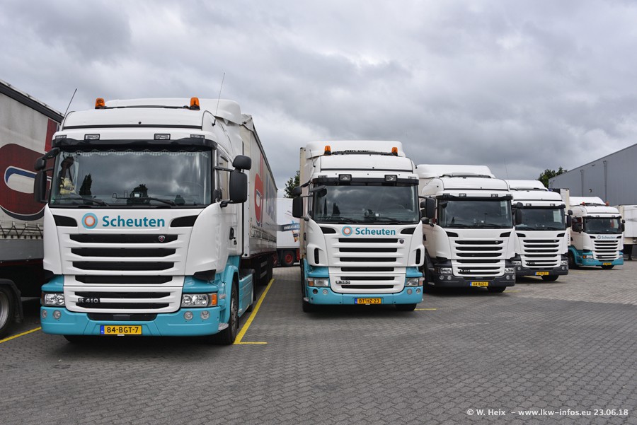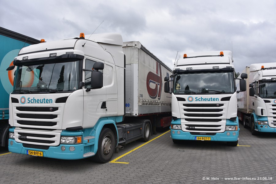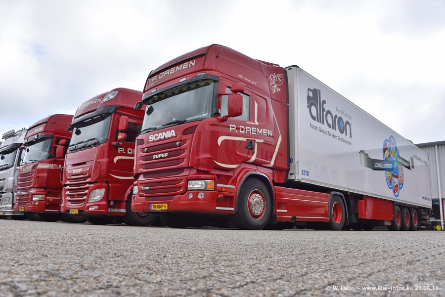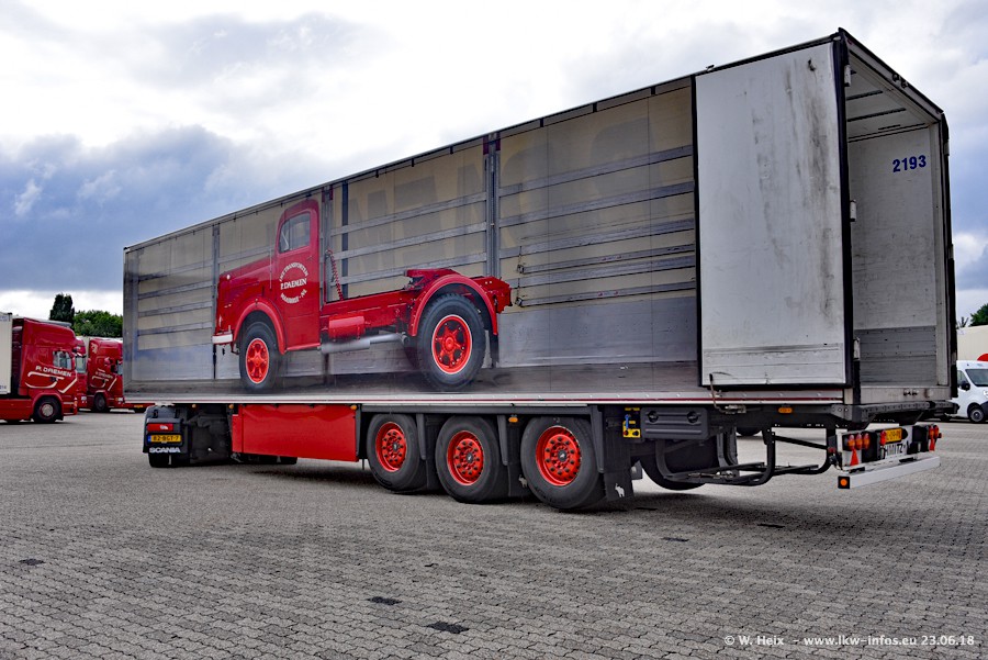 Im ersten Halbjahr 2018 sind mindestens vier DAF XF Euro 6 sowie drei SCANIA S 450 NextGen in den Fuhrpark gekommen. Zwei neue SCANIA konnte ich fotografieren, der dritte stand zum Beschriften in der Werkstatt. Dazu kommt noch ein neuer SCANIA G NextGen 8x2, in Kundenfarben (schwarz) lackiert ist. Dieser SCANIA wurde für Fotos erstmals aus der Halle gefahren und wird ab Montag fahren.