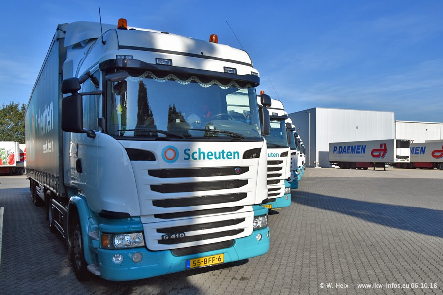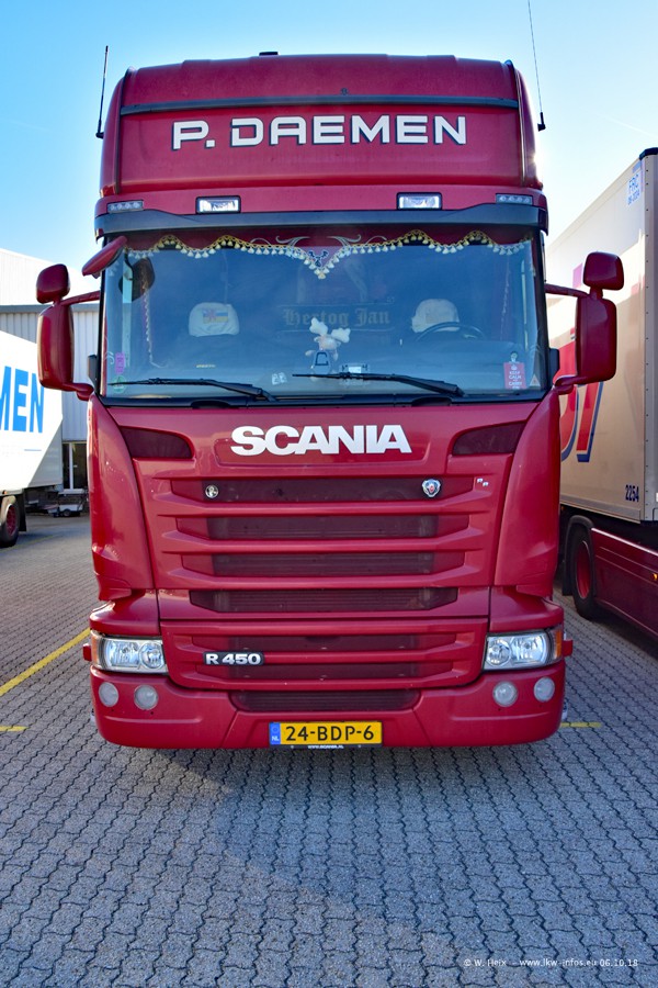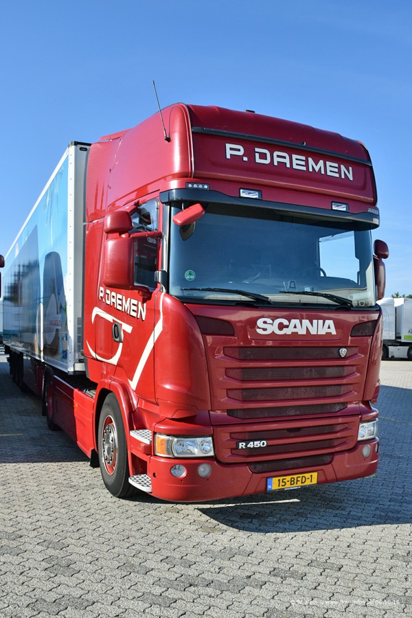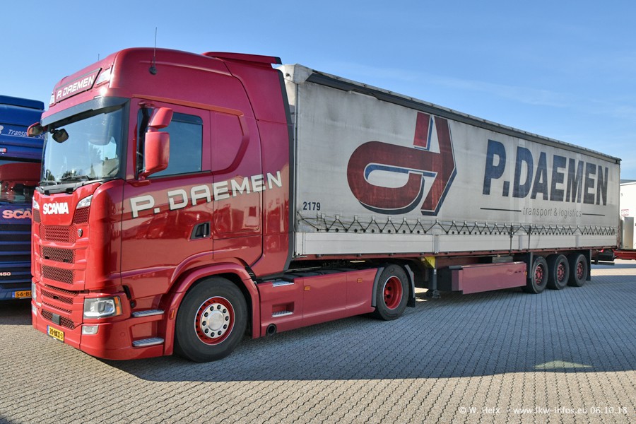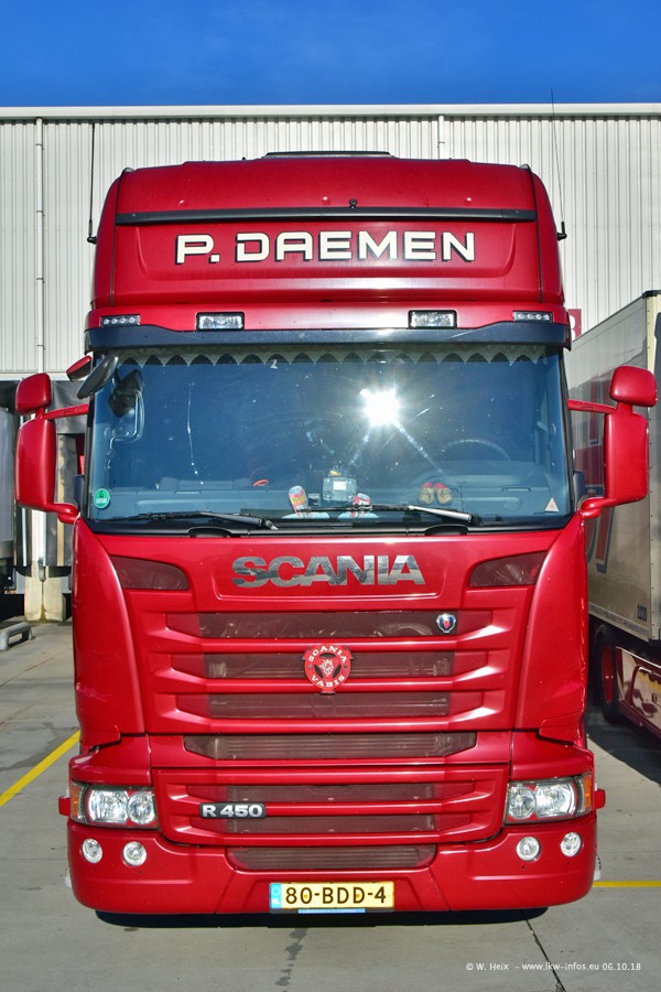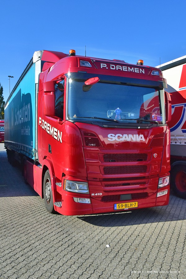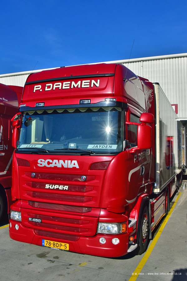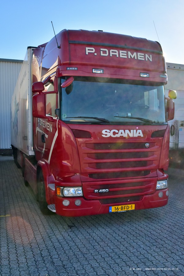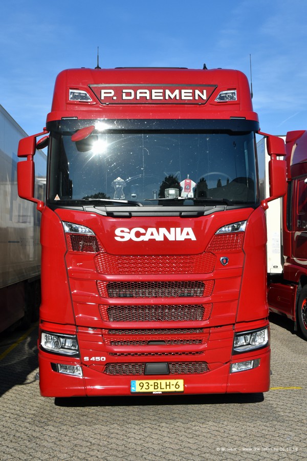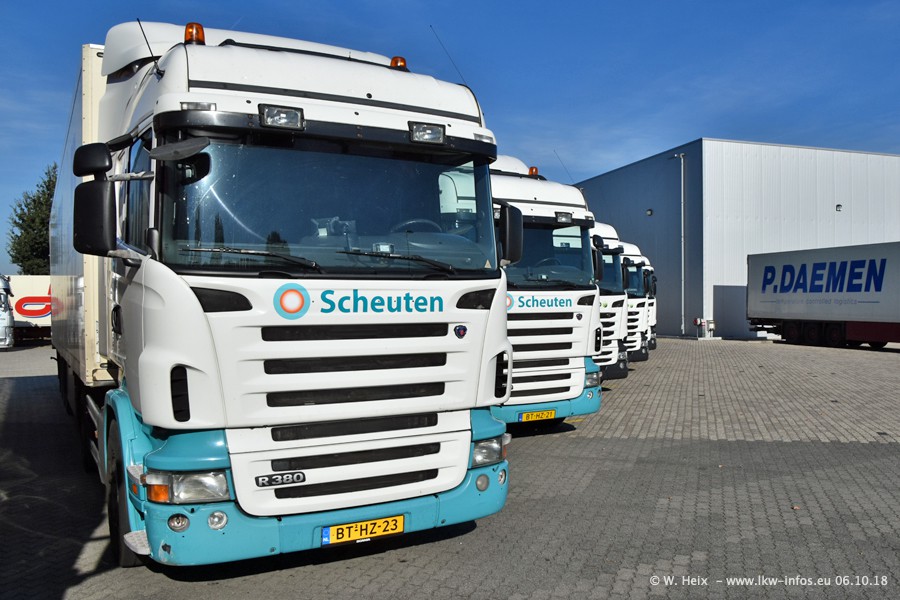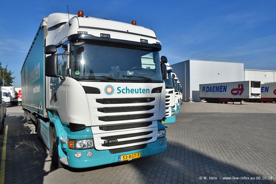 Inzwischen gibt es mehrere neue SCANIA S NextGen, einen schwarznen SCANIA P 280 NextGen und einige neue DAF New XF Euro 6. Bei diesem Besuch war ein sehr großer Teil der LKW zuhause und somit konnte ich auch viele der neuen DAF und SCANIA fotografieren. Die sechs SCANIA R 410 Streamline sind inzwischen auch fertig beschriftet (Greenyard). Diesmal habe ich die Bilder sortiert nach P. Daemen, Greenyard und Scheuten.