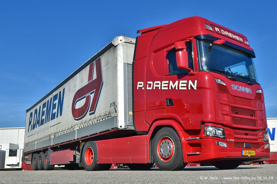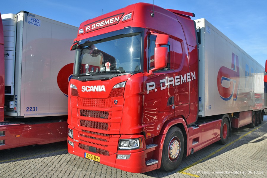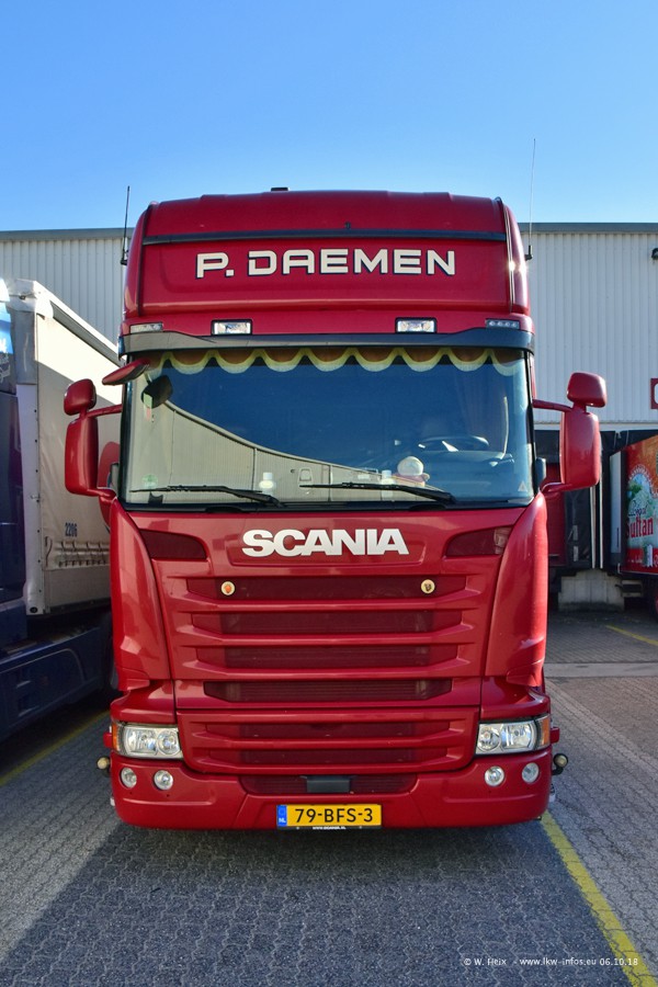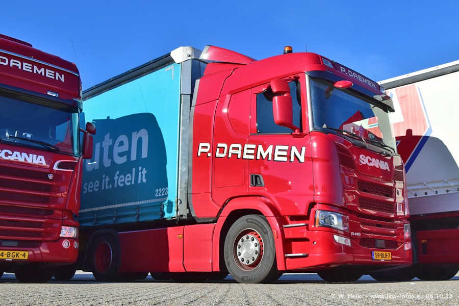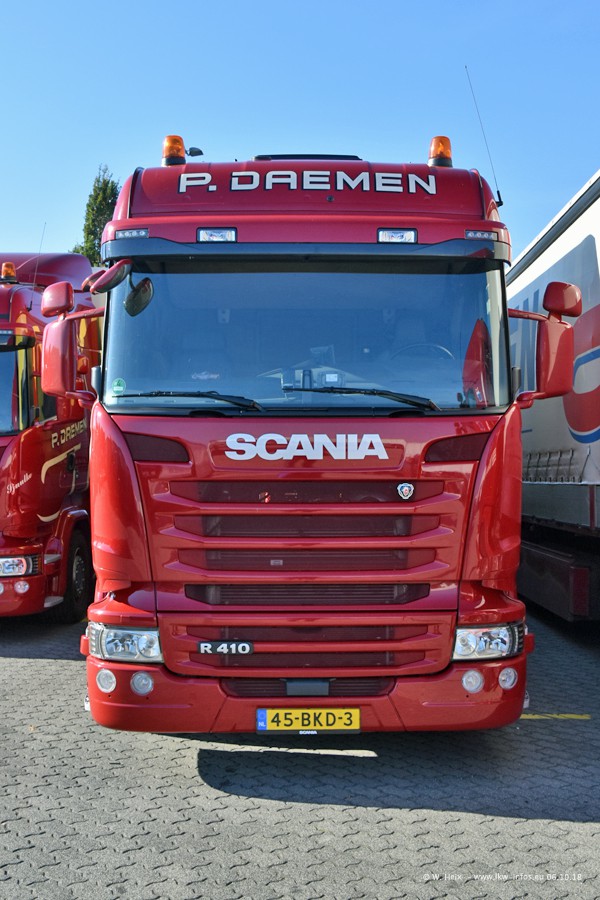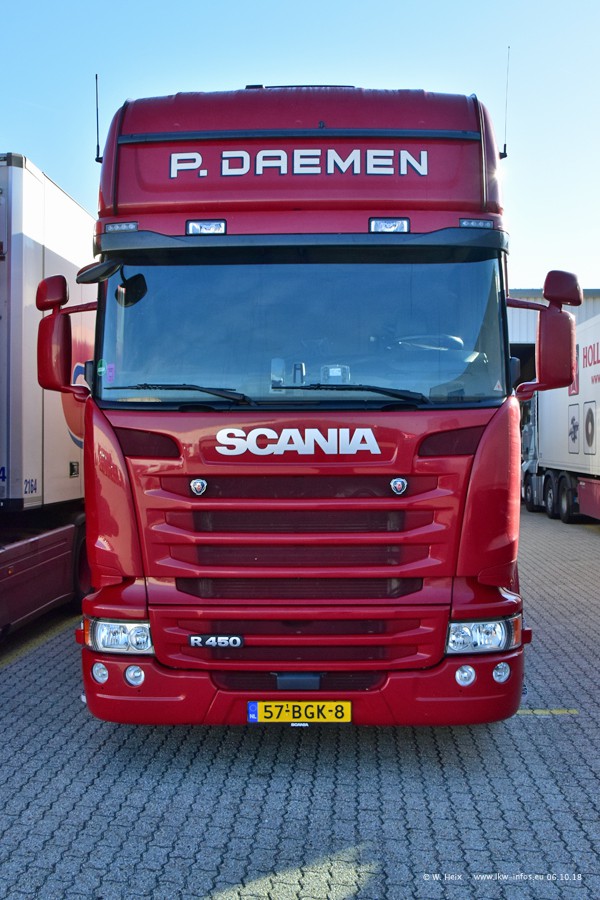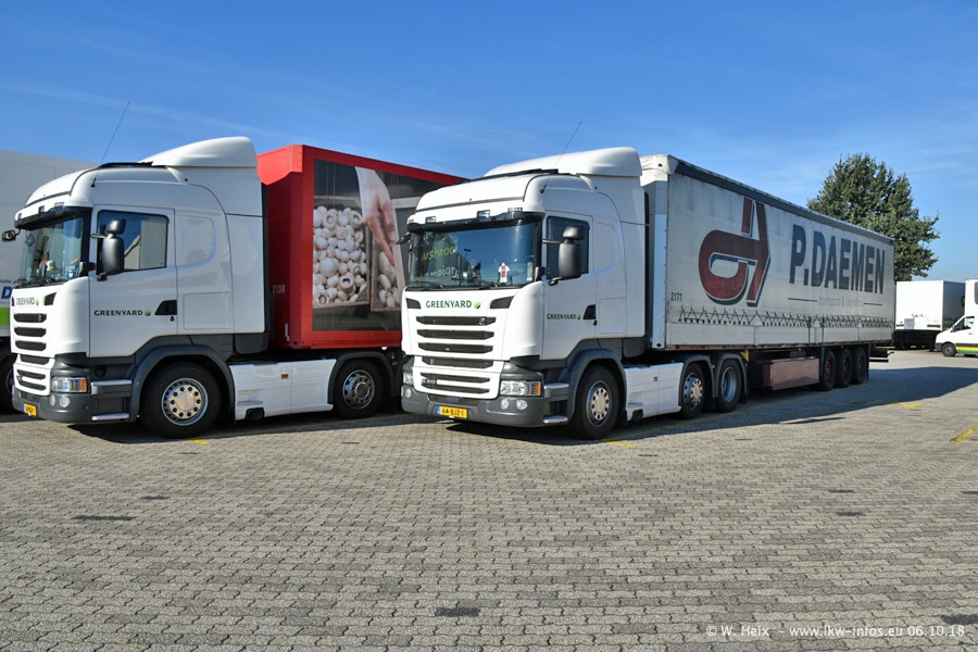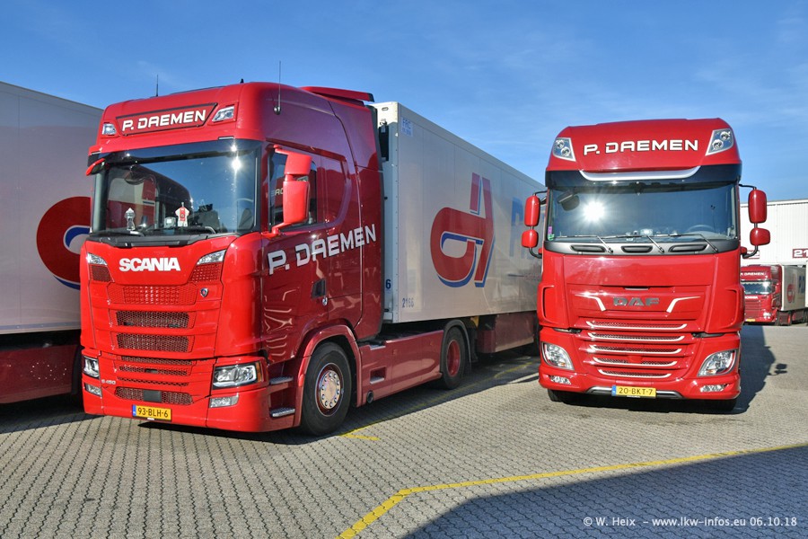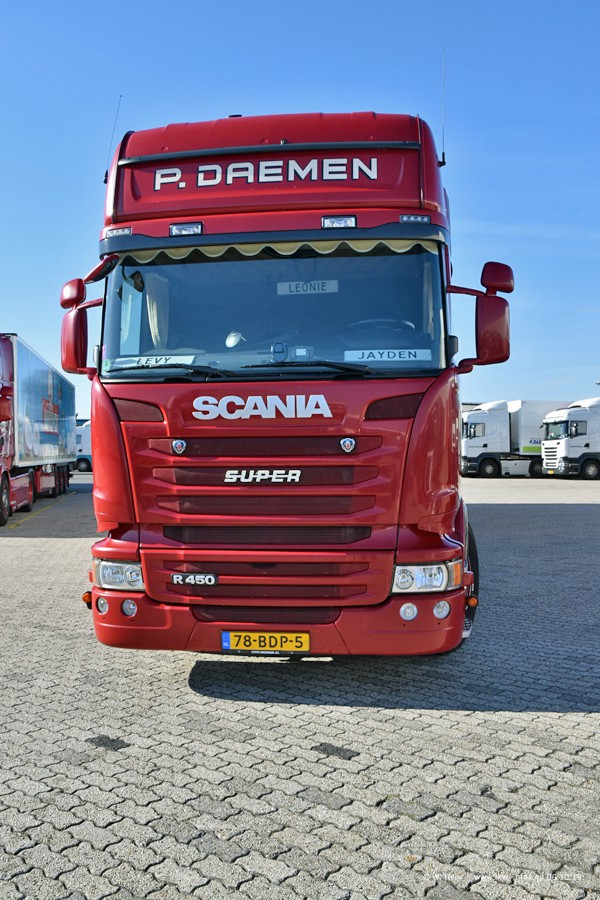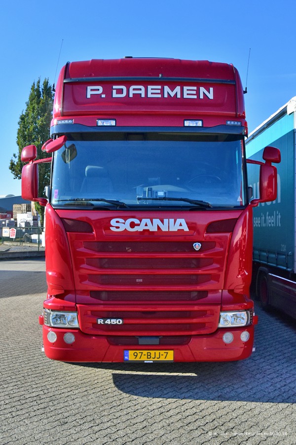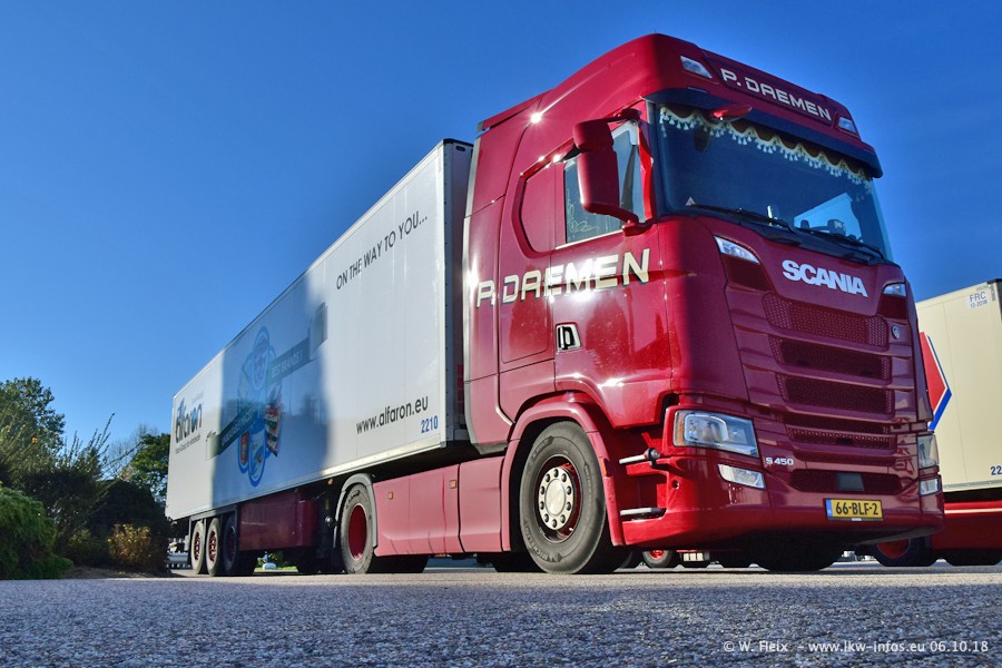 Inzwischen gibt es mehrere neue SCANIA S NextGen, einen schwarznen SCANIA P 280 NextGen und einige neue DAF New XF Euro 6. Bei diesem Besuch war ein sehr großer Teil der LKW zuhause und somit konnte ich auch viele der neuen DAF und SCANIA fotografieren. Die sechs SCANIA R 410 Streamline sind inzwischen auch fertig beschriftet (Greenyard). Diesmal habe ich die Bilder sortiert nach P. Daemen, Greenyard und Scheuten.