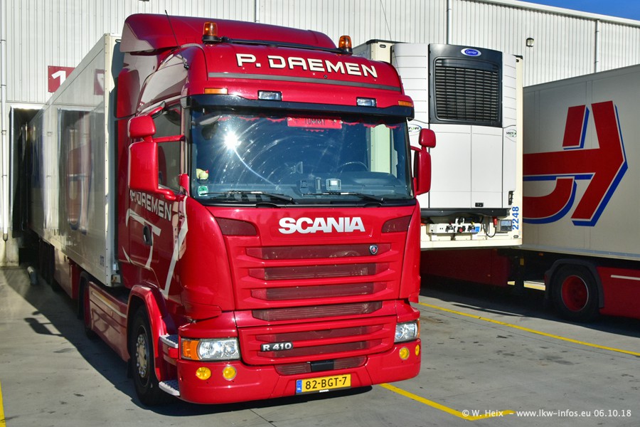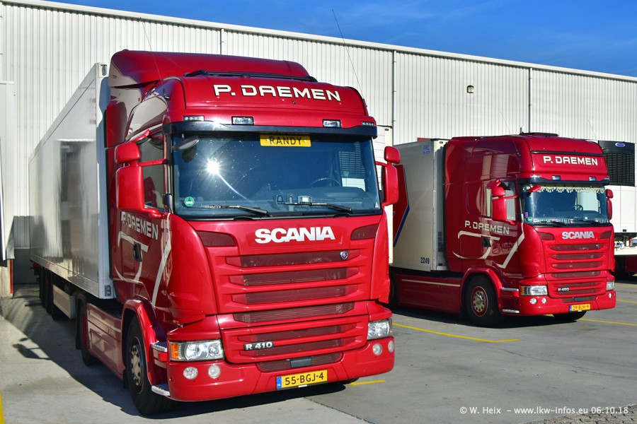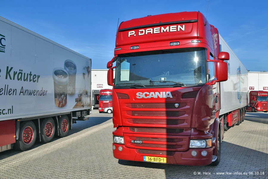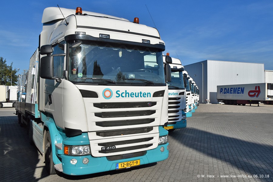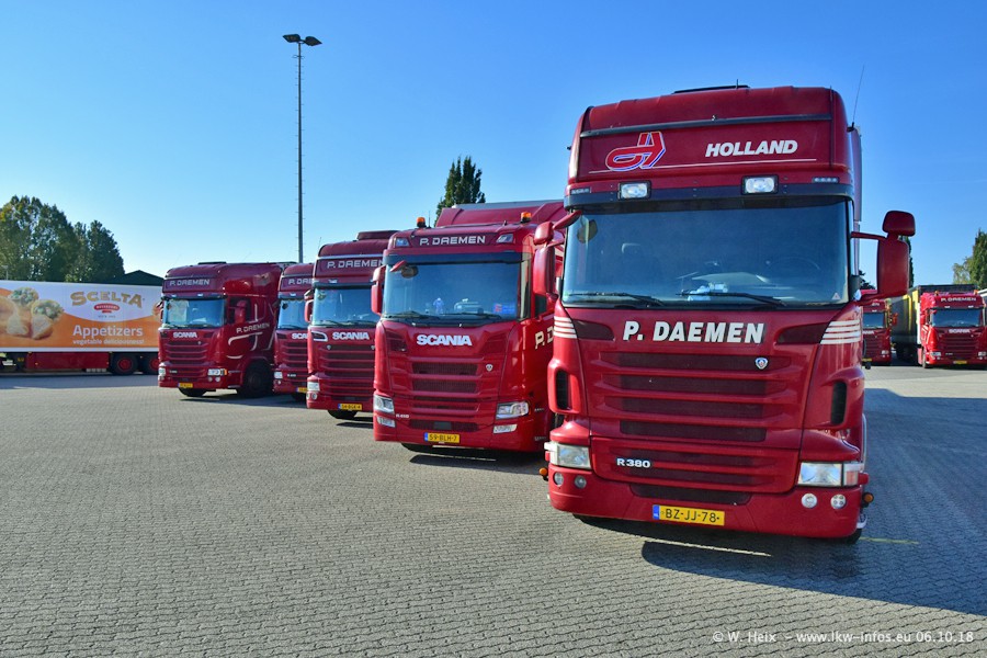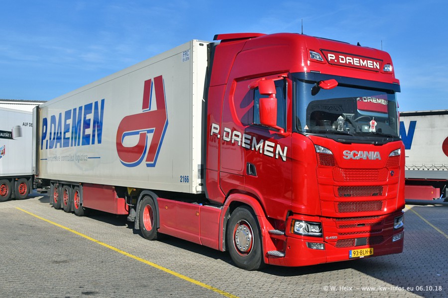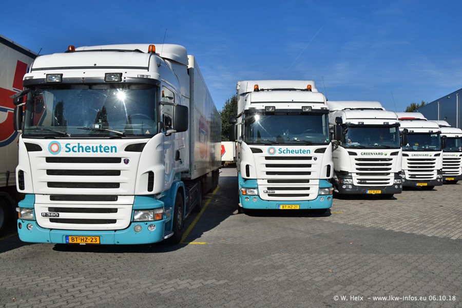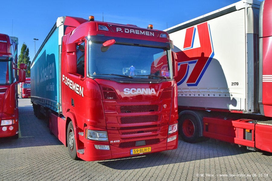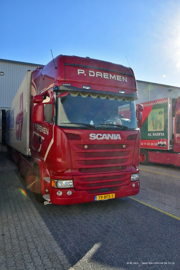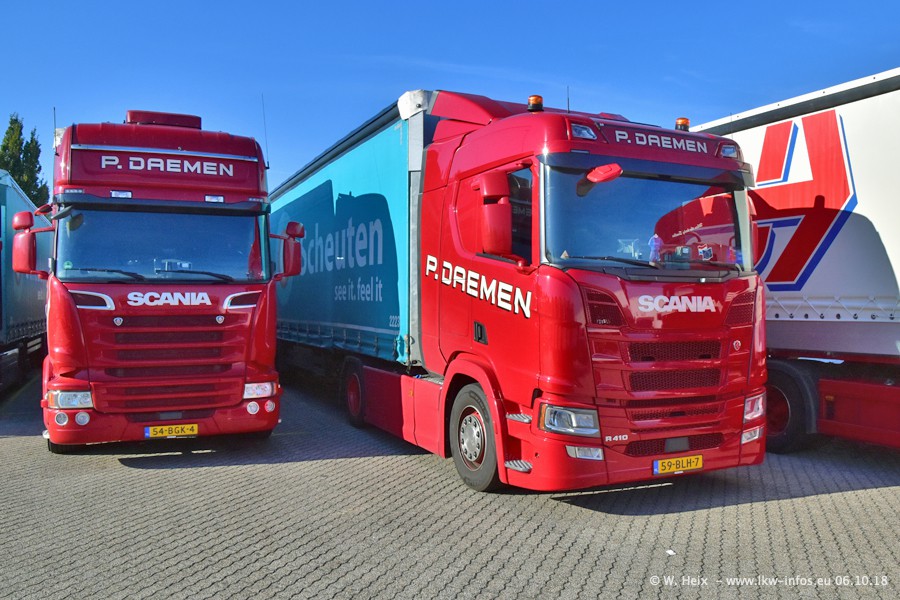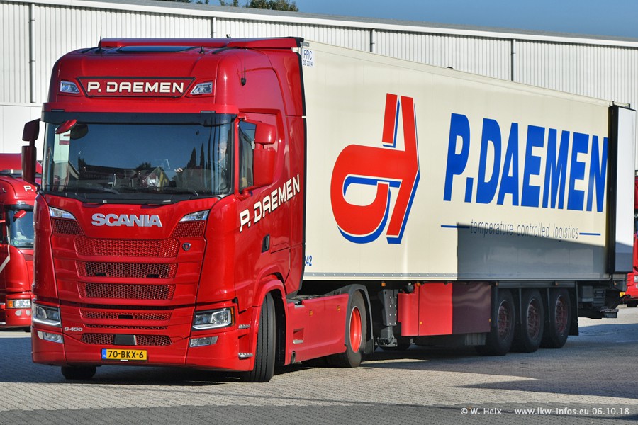 Inzwischen gibt es mehrere neue SCANIA S NextGen, einen schwarznen SCANIA P 280 NextGen und einige neue DAF New XF Euro 6. Bei diesem Besuch war ein sehr großer Teil der LKW zuhause und somit konnte ich auch viele der neuen DAF und SCANIA fotografieren. Die sechs SCANIA R 410 Streamline sind inzwischen auch fertig beschriftet (Greenyard). Diesmal habe ich die Bilder sortiert nach P. Daemen, Greenyard und Scheuten.