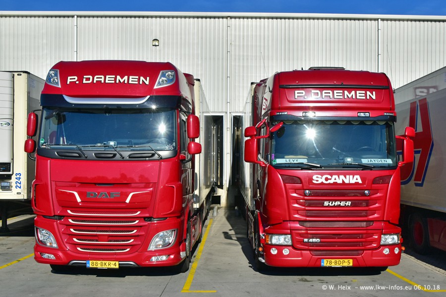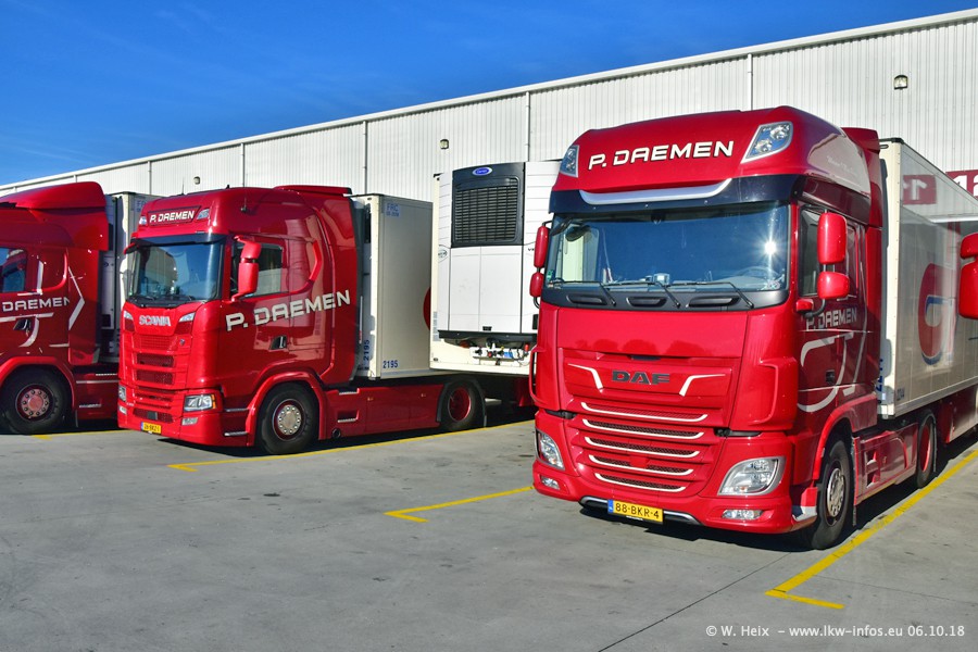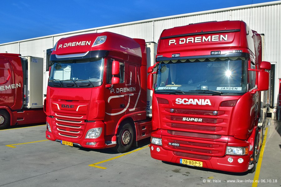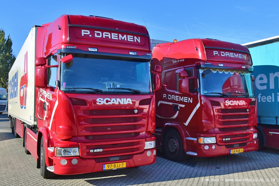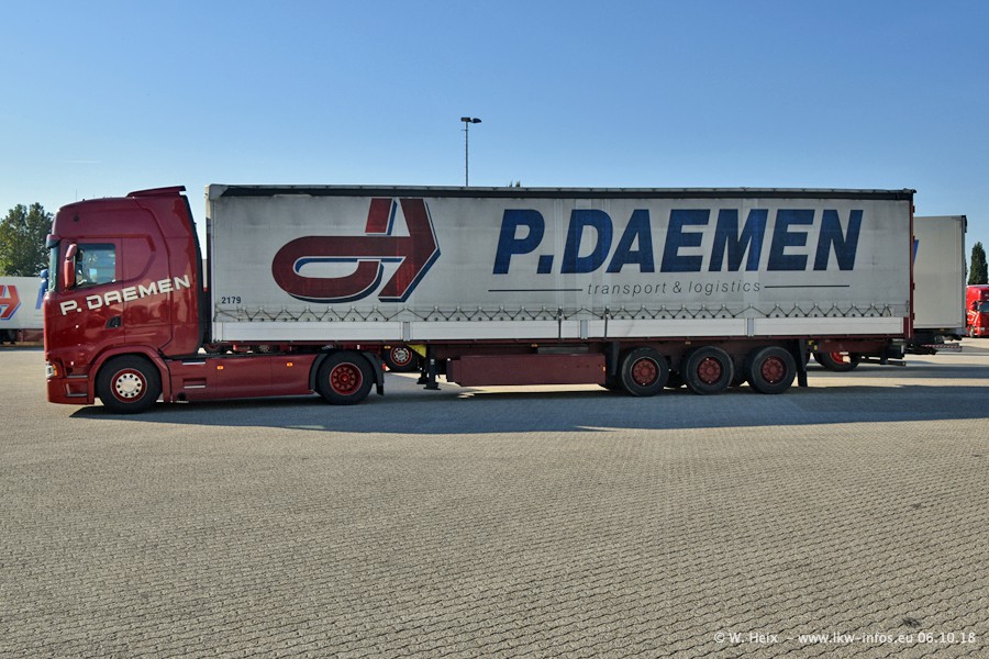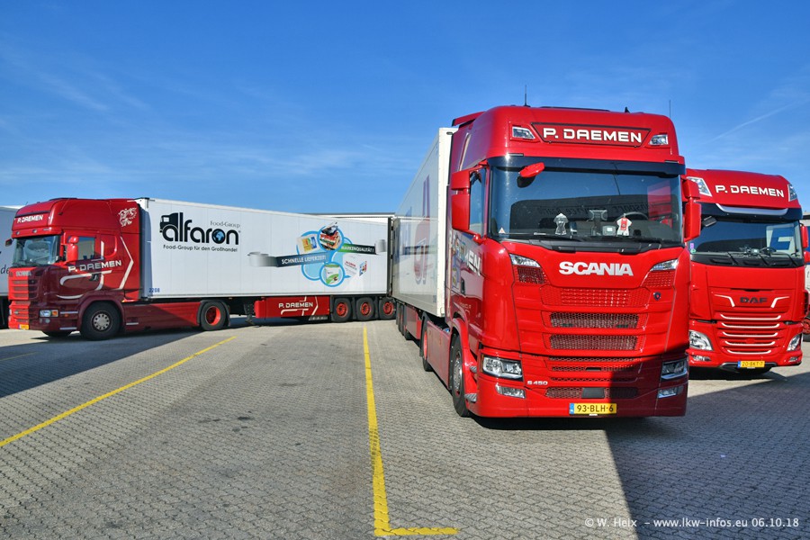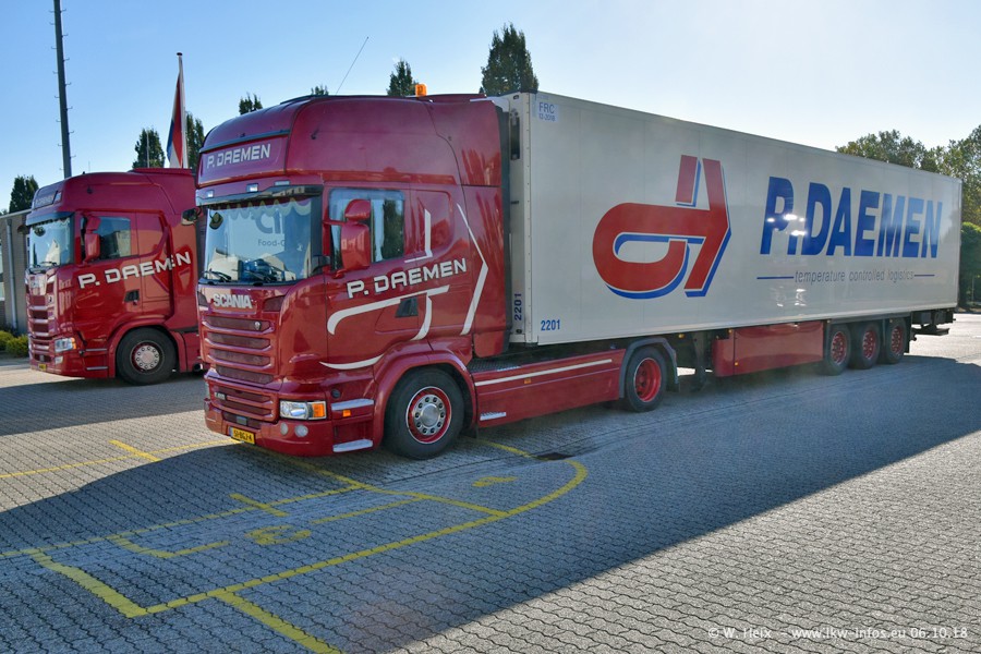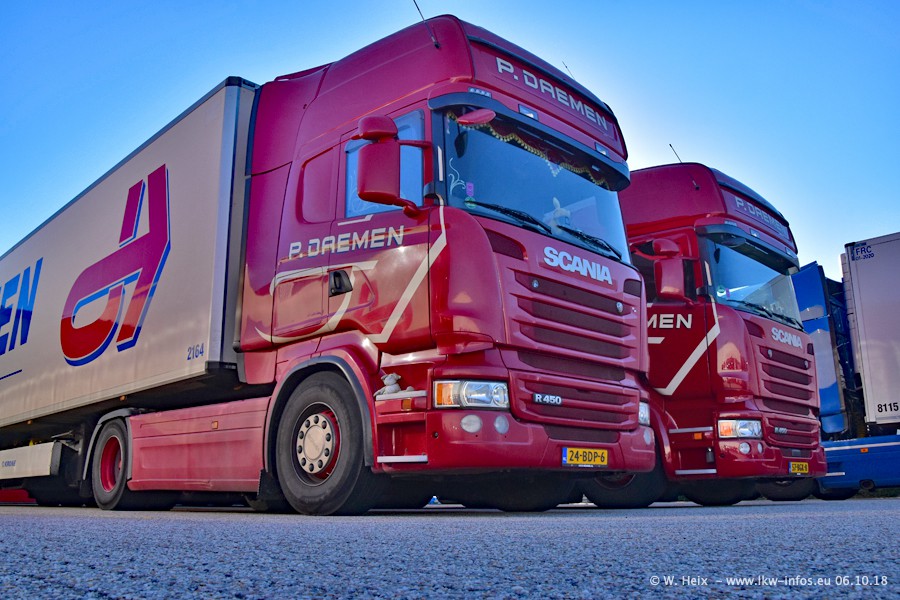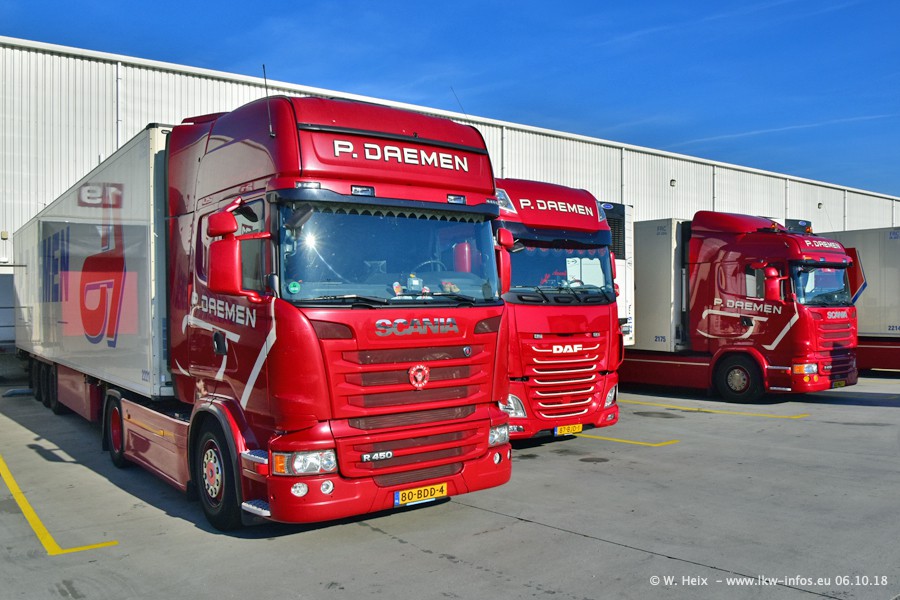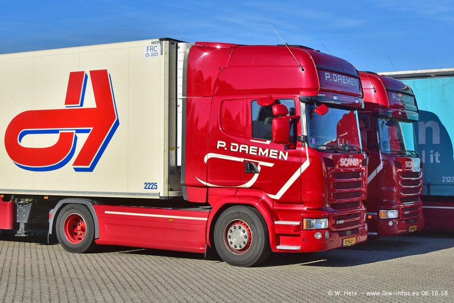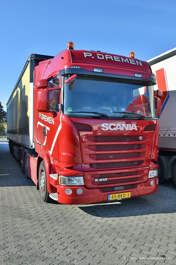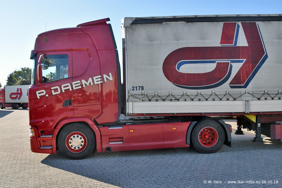 Inzwischen gibt es mehrere neue SCANIA S NextGen, einen schwarznen SCANIA P 280 NextGen und einige neue DAF New XF Euro 6. Bei diesem Besuch war ein sehr großer Teil der LKW zuhause und somit konnte ich auch viele der neuen DAF und SCANIA fotografieren. Die sechs SCANIA R 410 Streamline sind inzwischen auch fertig beschriftet (Greenyard). Diesmal habe ich die Bilder sortiert nach P. Daemen, Greenyard und Scheuten.