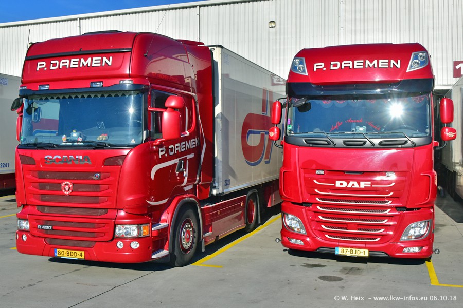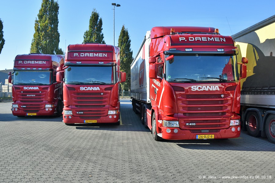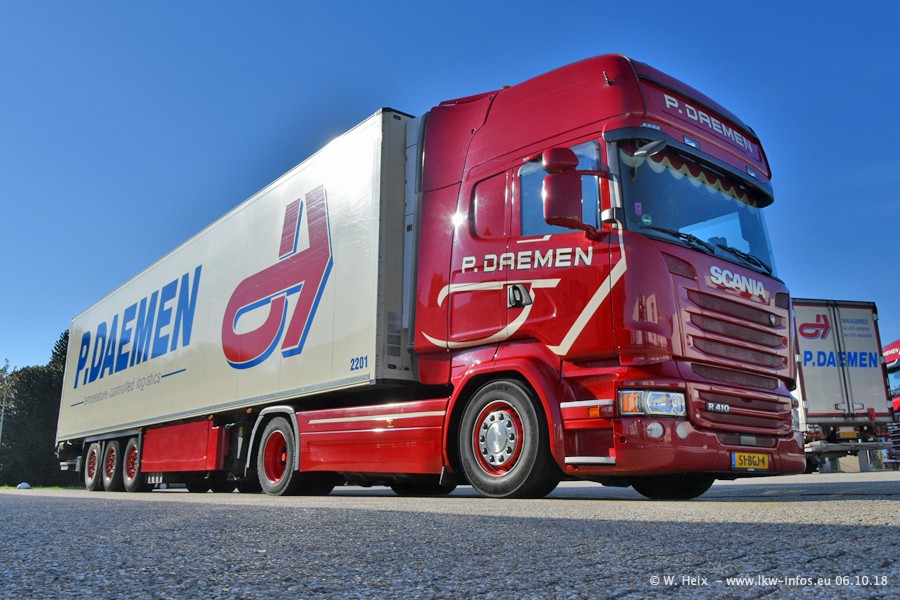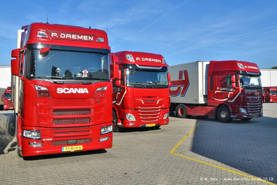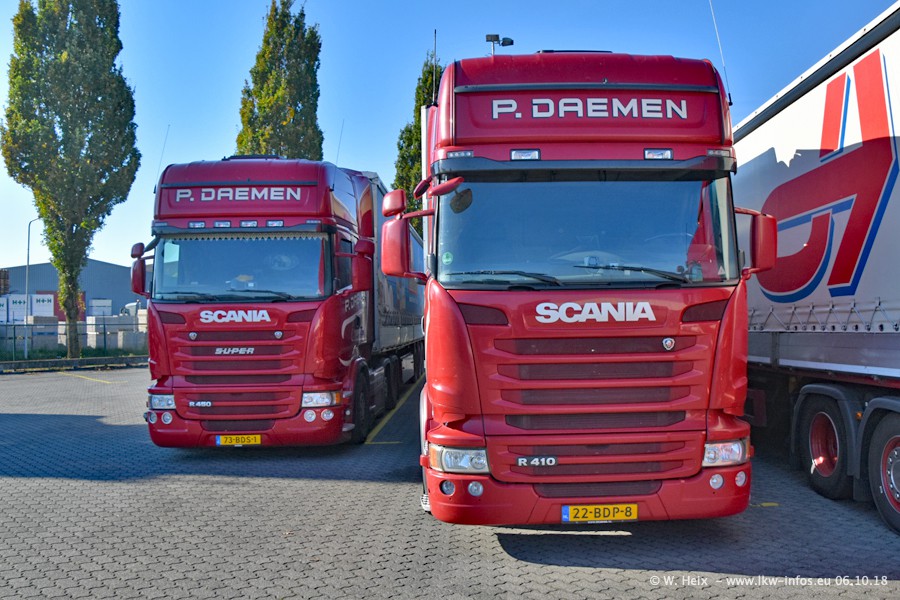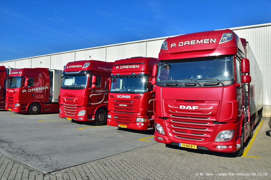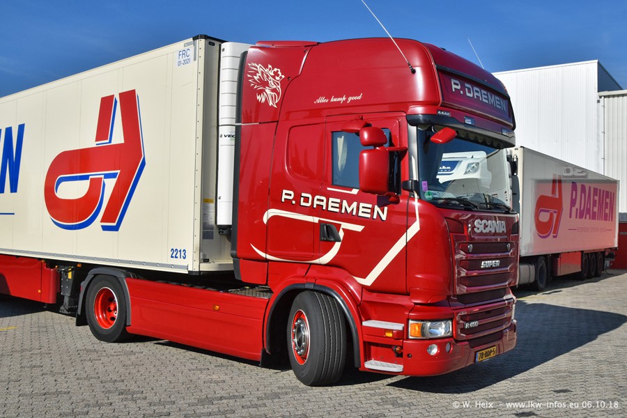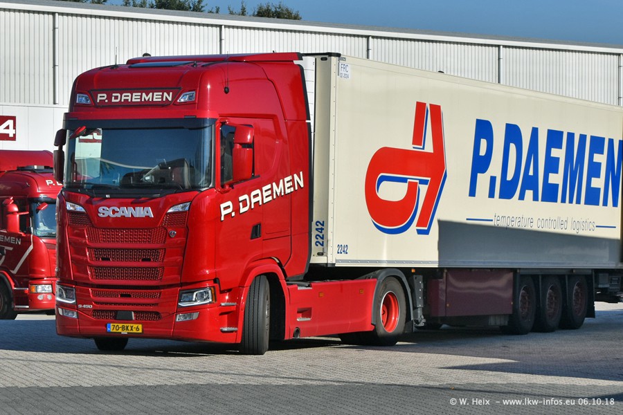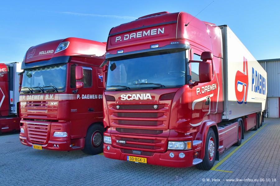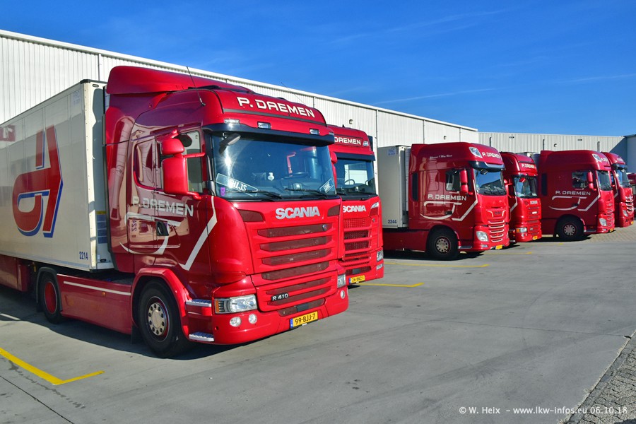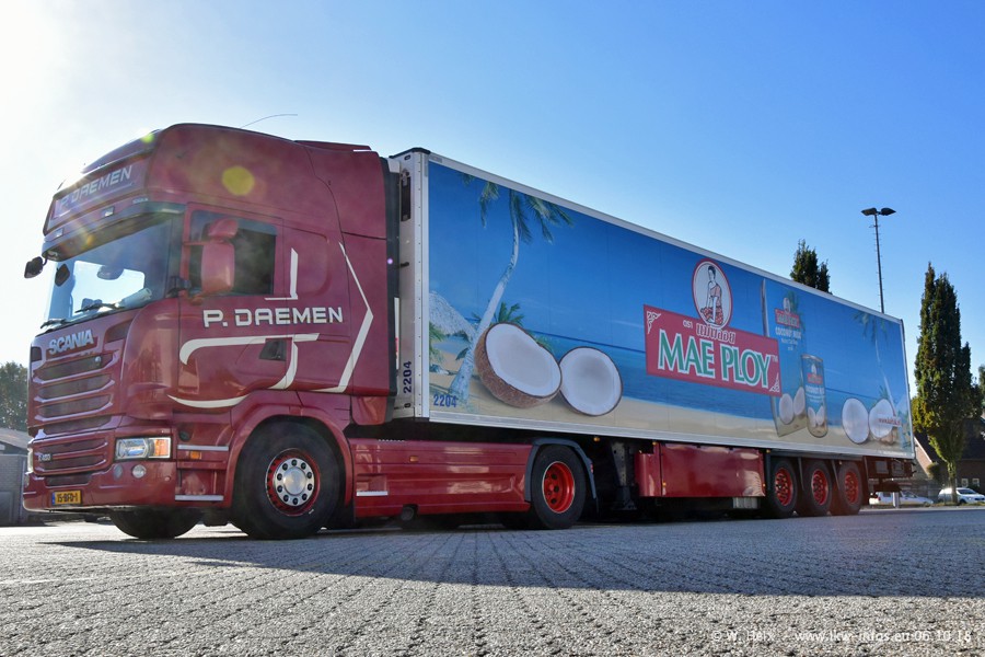 Inzwischen gibt es mehrere neue SCANIA S NextGen, einen schwarznen SCANIA P 280 NextGen und einige neue DAF New XF Euro 6. Bei diesem Besuch war ein sehr großer Teil der LKW zuhause und somit konnte ich auch viele der neuen DAF und SCANIA fotografieren. Die sechs SCANIA R 410 Streamline sind inzwischen auch fertig beschriftet (Greenyard). Diesmal habe ich die Bilder sortiert nach P. Daemen, Greenyard und Scheuten.
