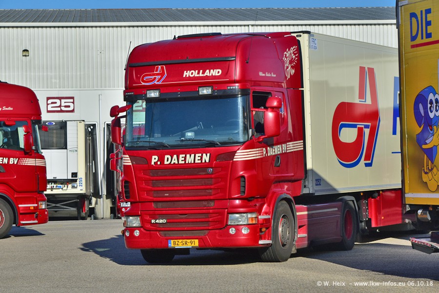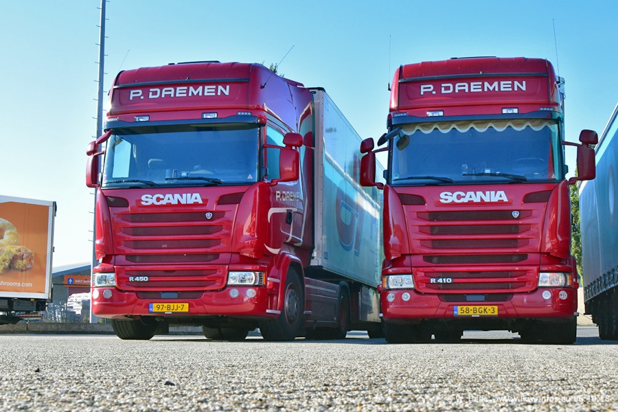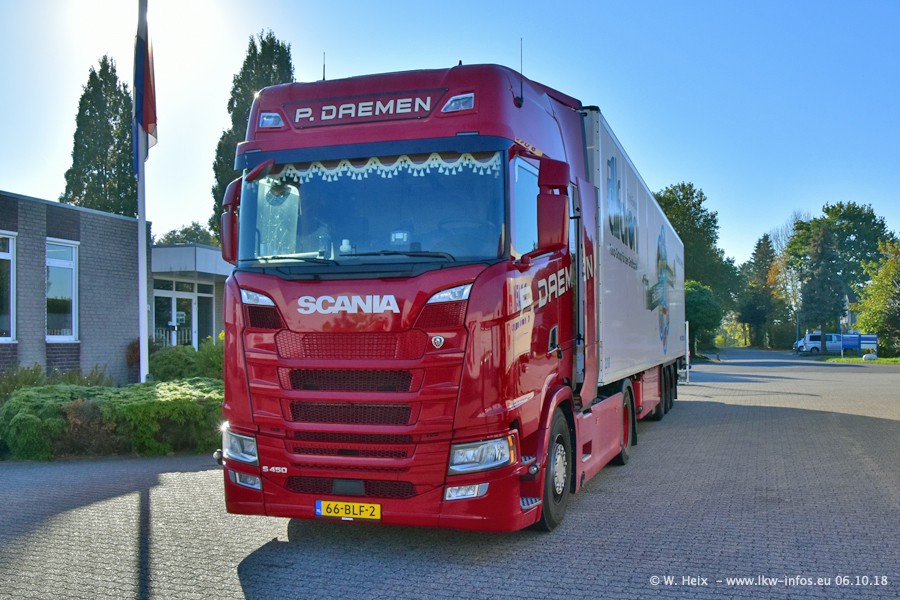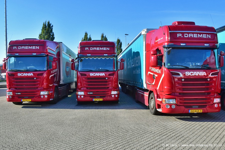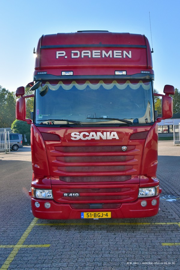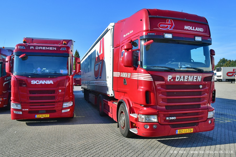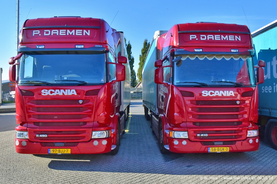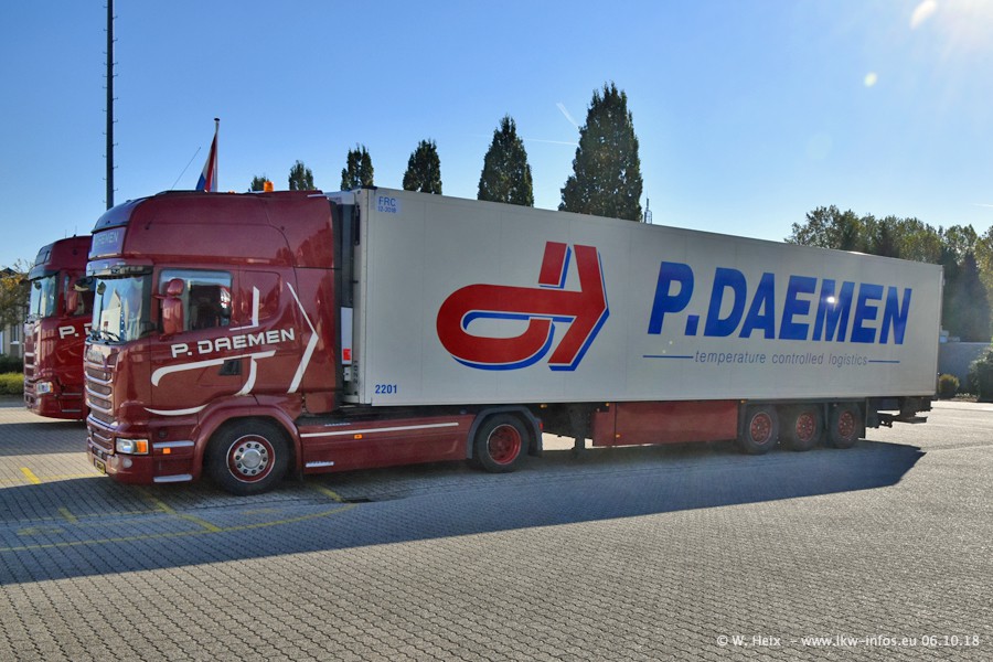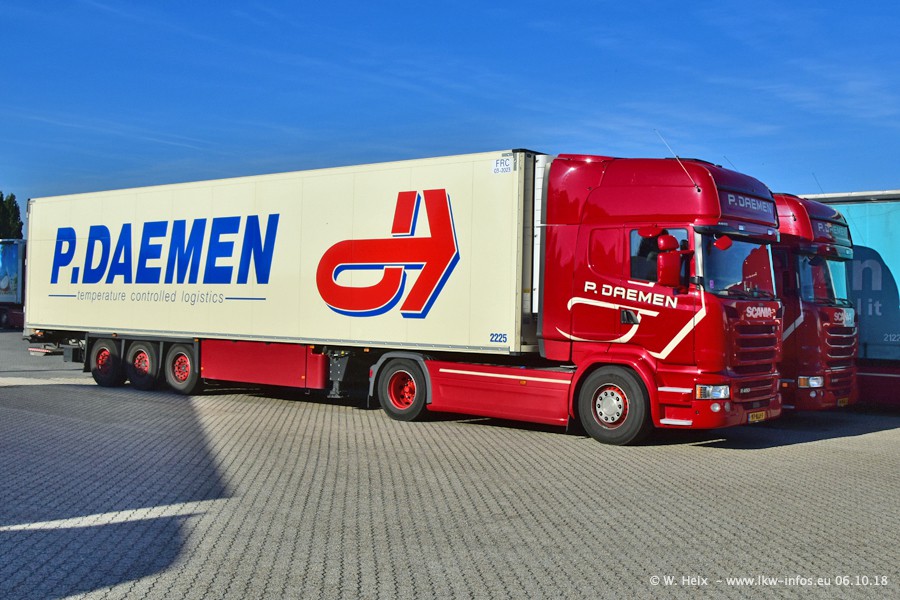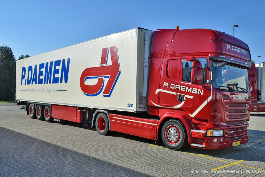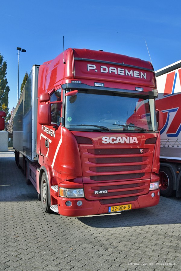 Inzwischen gibt es mehrere neue SCANIA S NextGen, einen schwarznen SCANIA P 280 NextGen und einige neue DAF New XF Euro 6. Bei diesem Besuch war ein sehr großer Teil der LKW zuhause und somit konnte ich auch viele der neuen DAF und SCANIA fotografieren. Die sechs SCANIA R 410 Streamline sind inzwischen auch fertig beschriftet (Greenyard). Diesmal habe ich die Bilder sortiert nach P. Daemen, Greenyard und Scheuten.