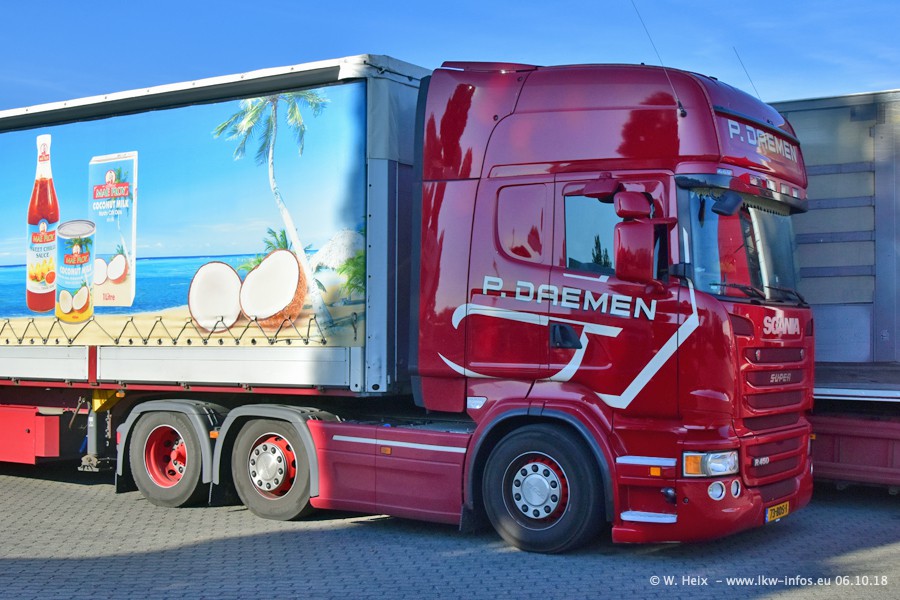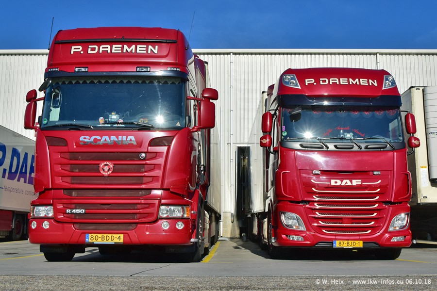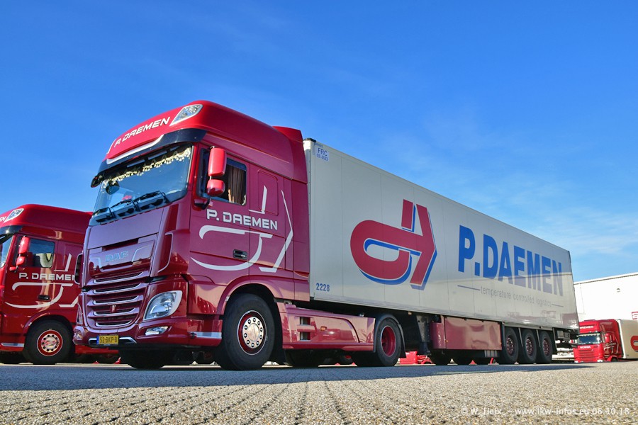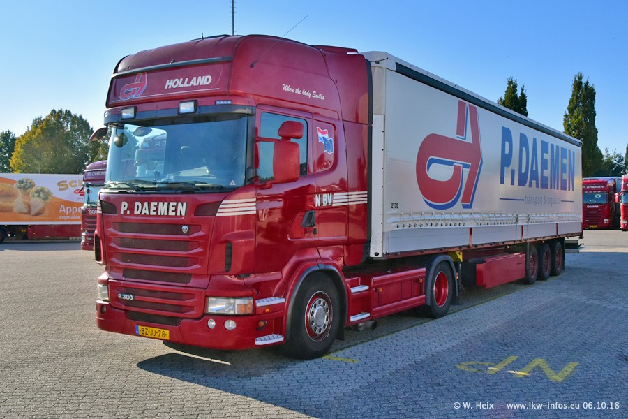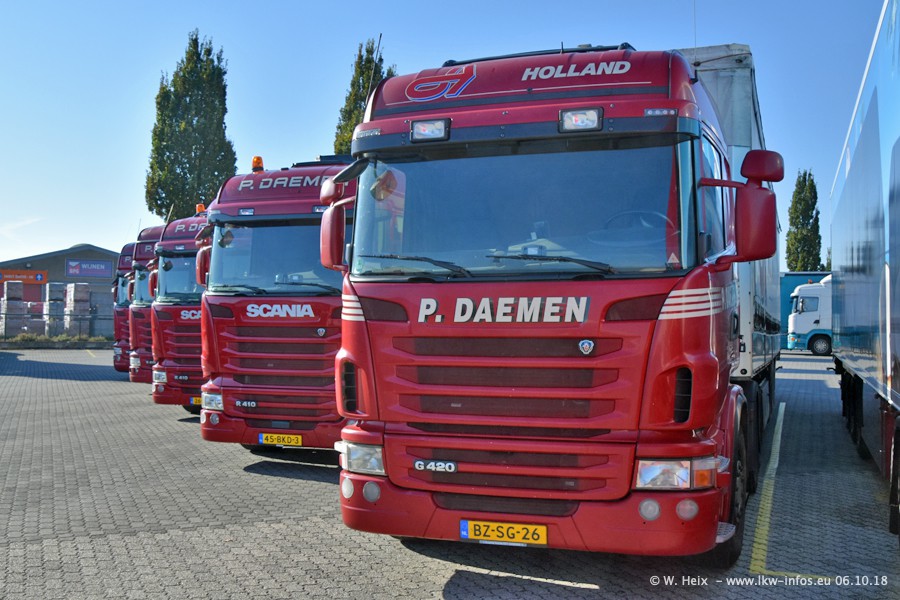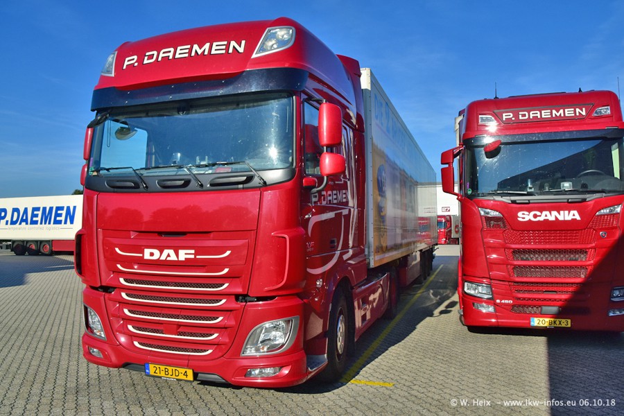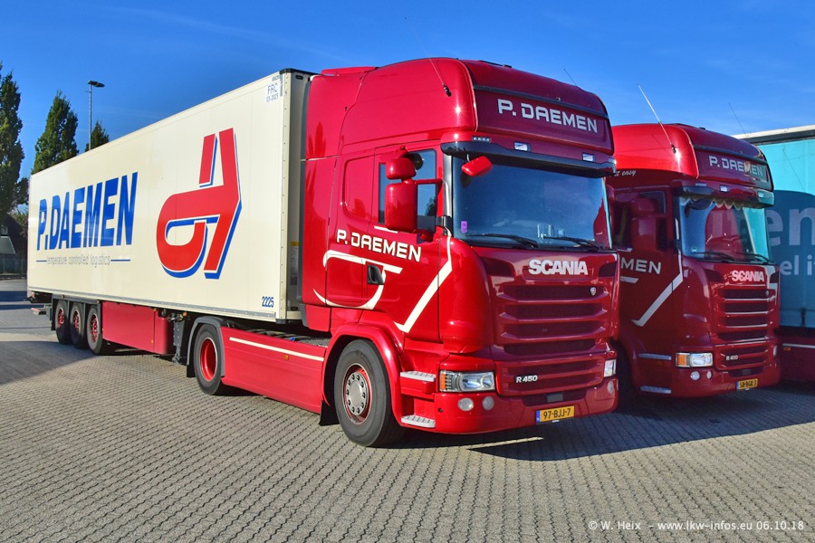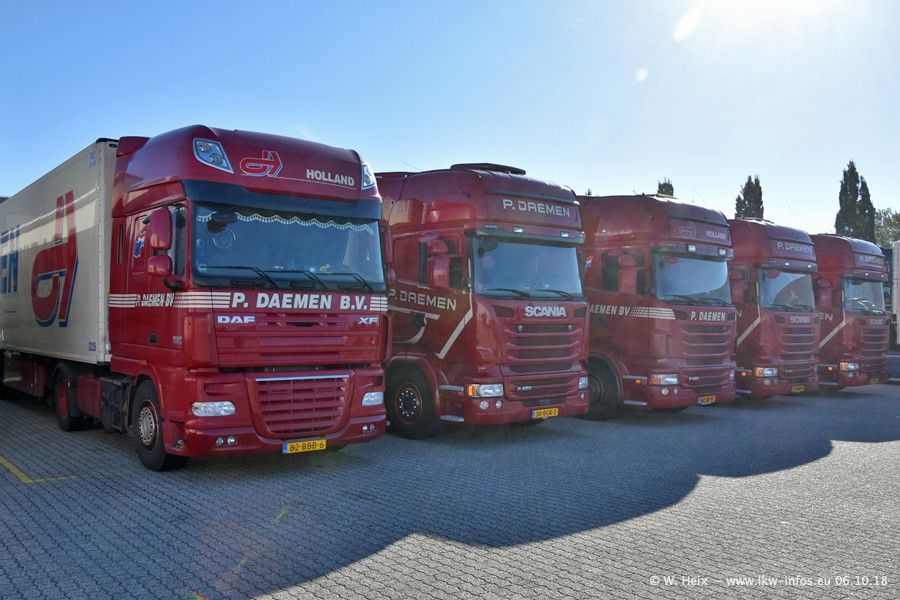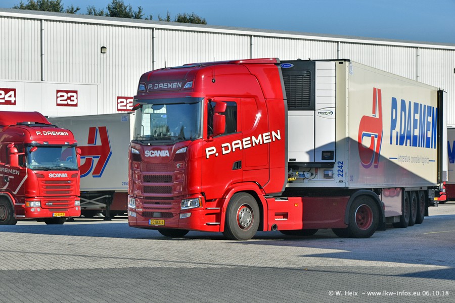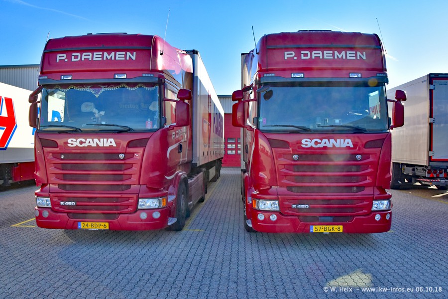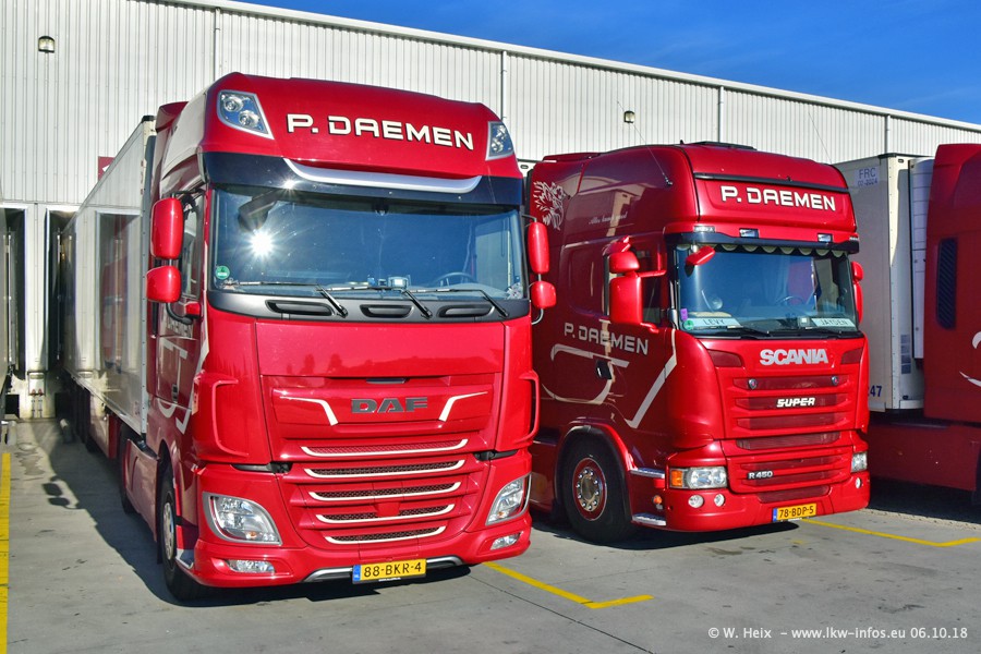 Inzwischen gibt es mehrere neue SCANIA S NextGen, einen schwarznen SCANIA P 280 NextGen und einige neue DAF New XF Euro 6. Bei diesem Besuch war ein sehr großer Teil der LKW zuhause und somit konnte ich auch viele der neuen DAF und SCANIA fotografieren. Die sechs SCANIA R 410 Streamline sind inzwischen auch fertig beschriftet (Greenyard). Diesmal habe ich die Bilder sortiert nach P. Daemen, Greenyard und Scheuten.