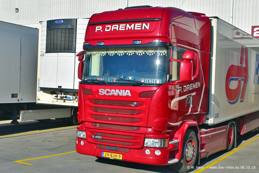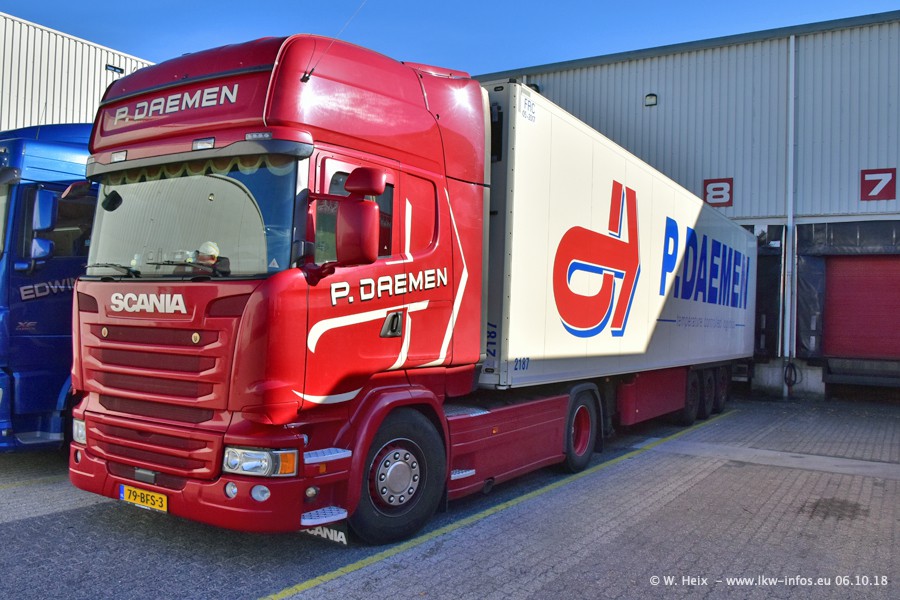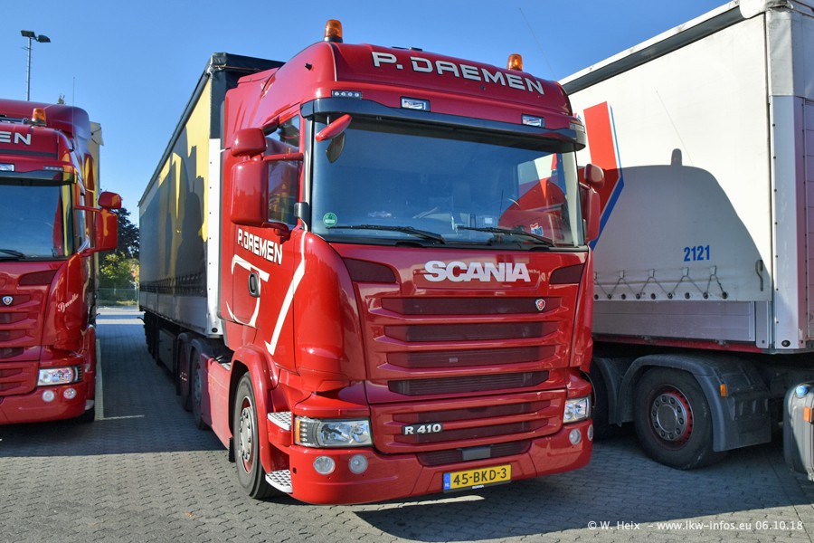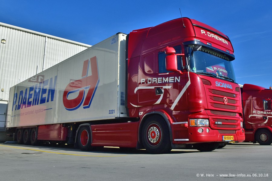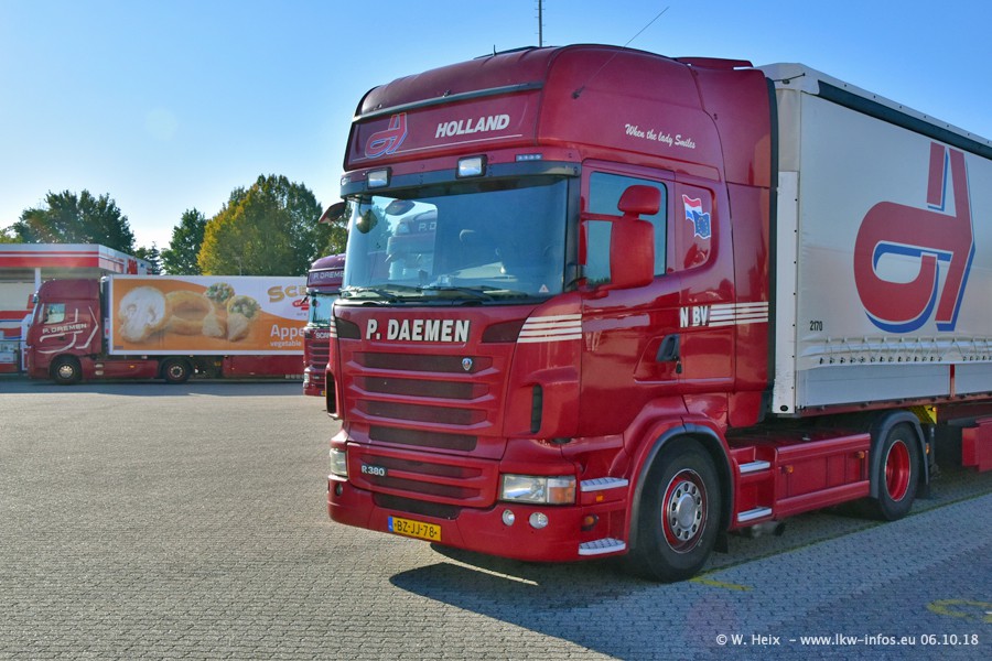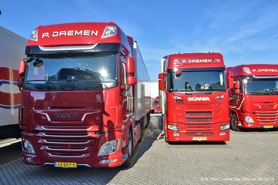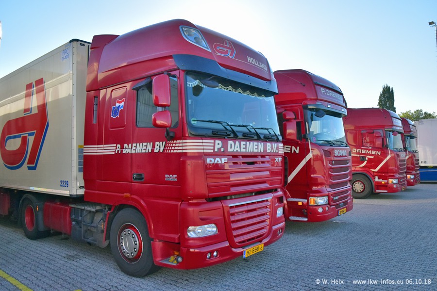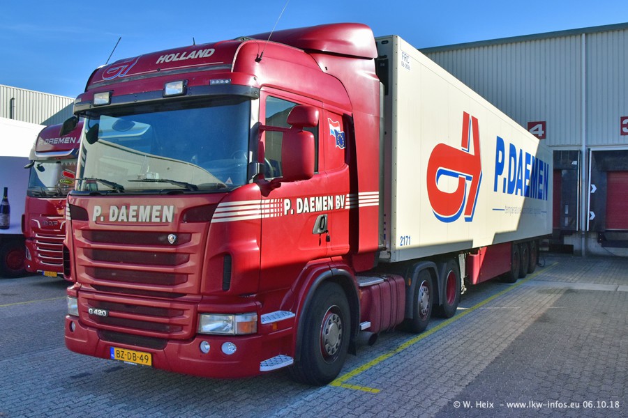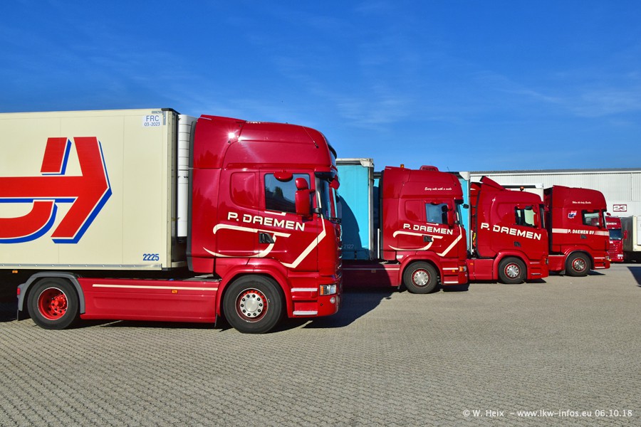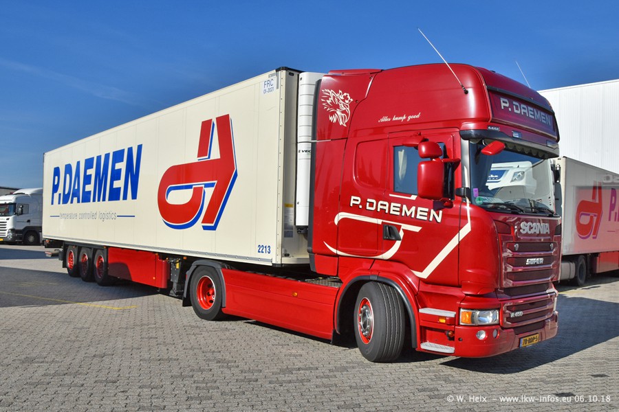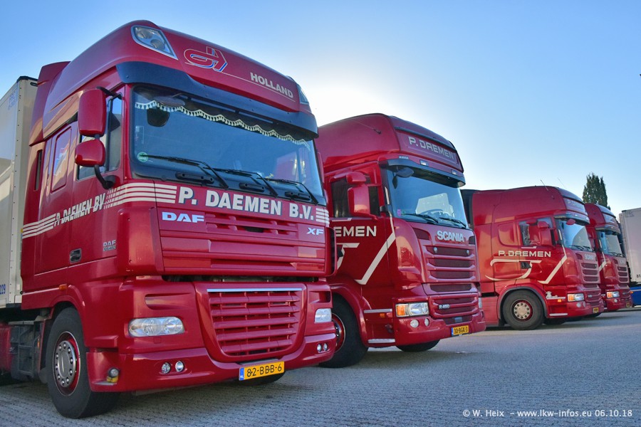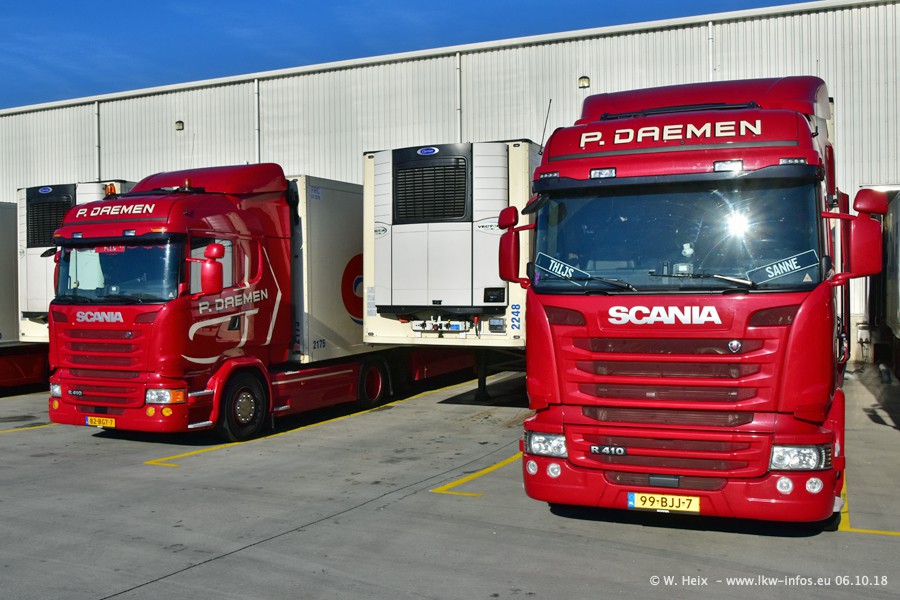 Inzwischen gibt es mehrere neue SCANIA S NextGen, einen schwarznen SCANIA P 280 NextGen und einige neue DAF New XF Euro 6. Bei diesem Besuch war ein sehr großer Teil der LKW zuhause und somit konnte ich auch viele der neuen DAF und SCANIA fotografieren. Die sechs SCANIA R 410 Streamline sind inzwischen auch fertig beschriftet (Greenyard). Diesmal habe ich die Bilder sortiert nach P. Daemen, Greenyard und Scheuten.
