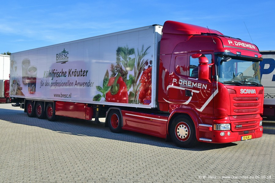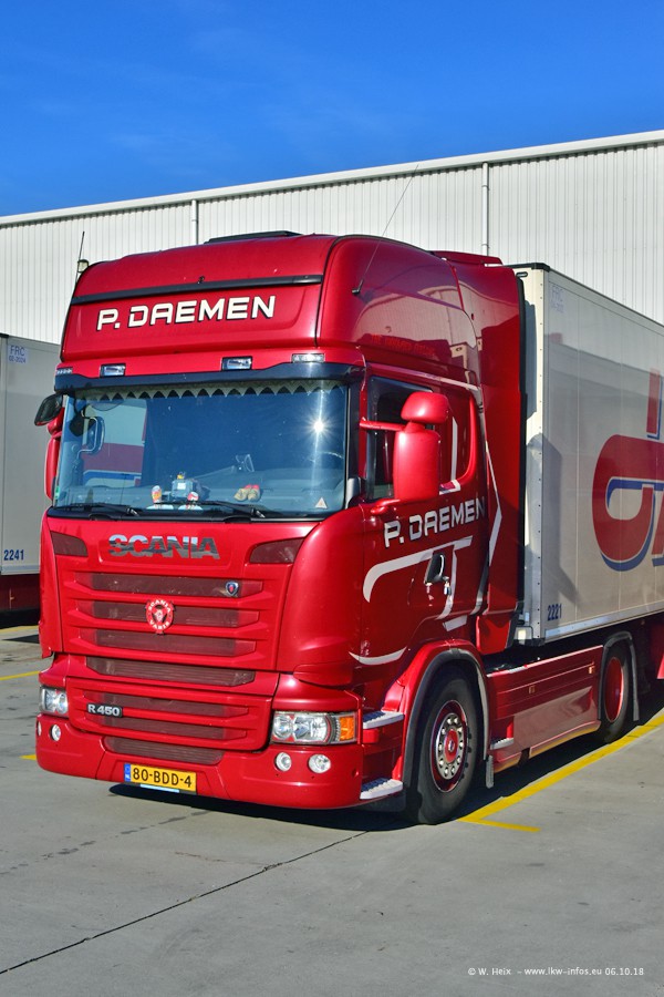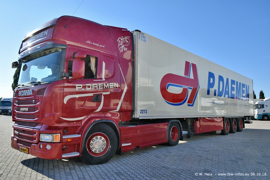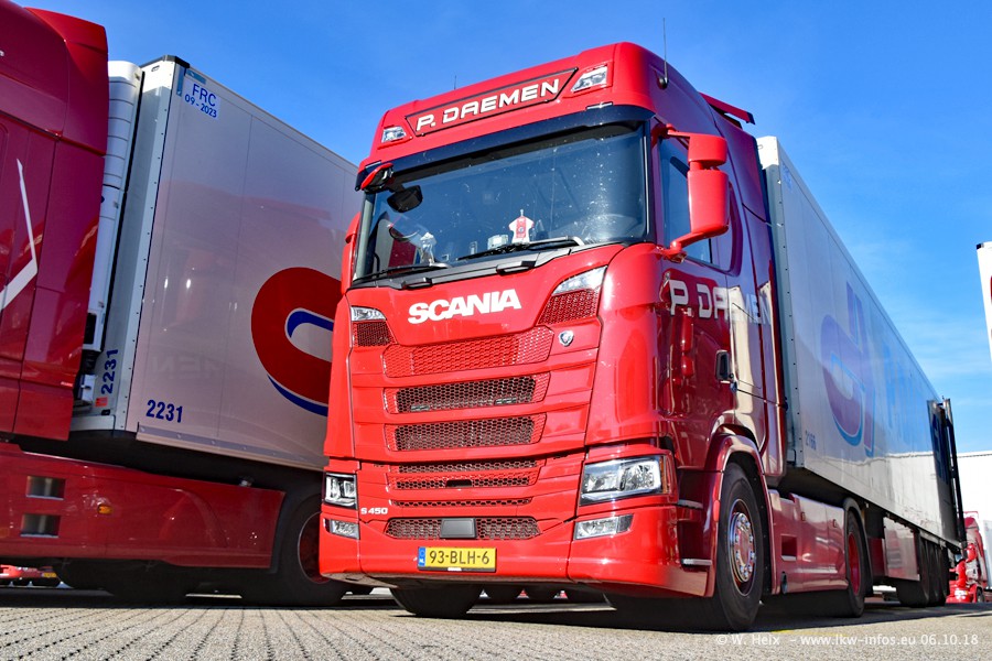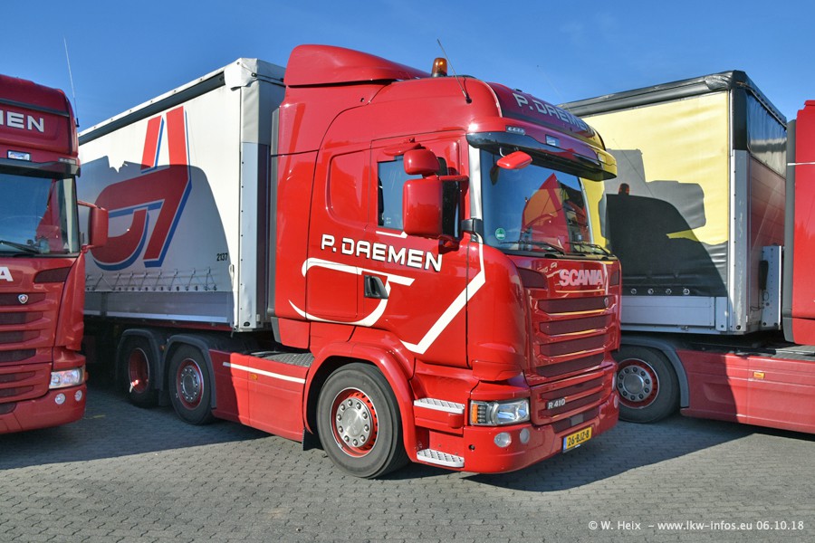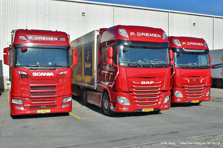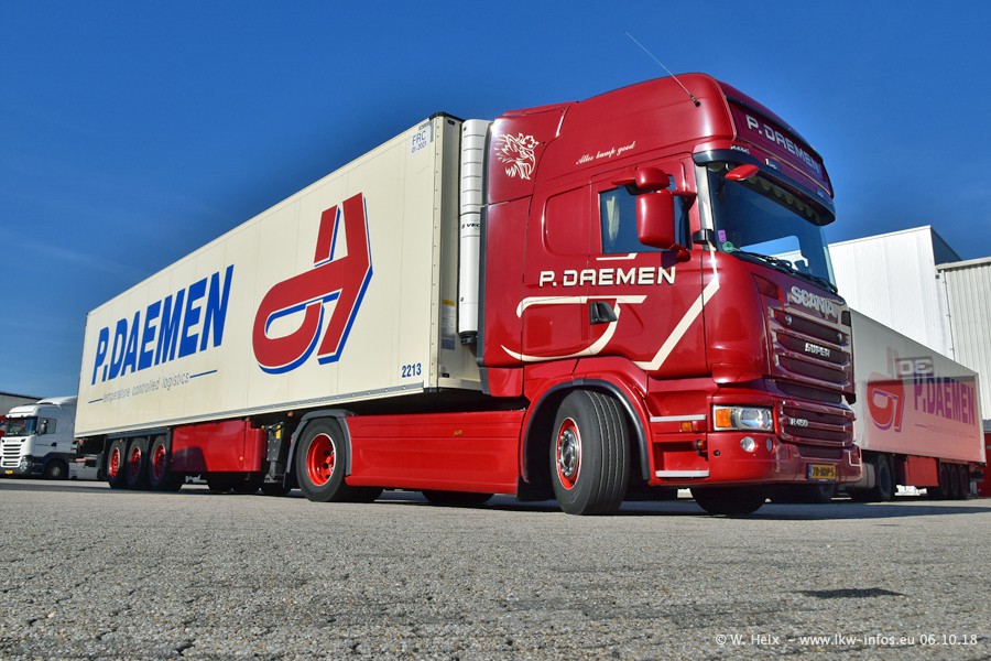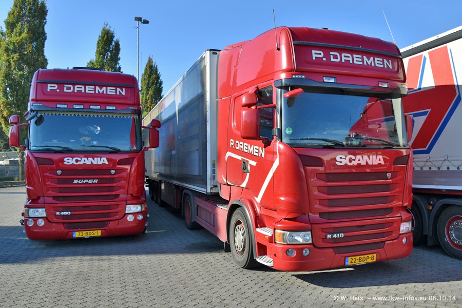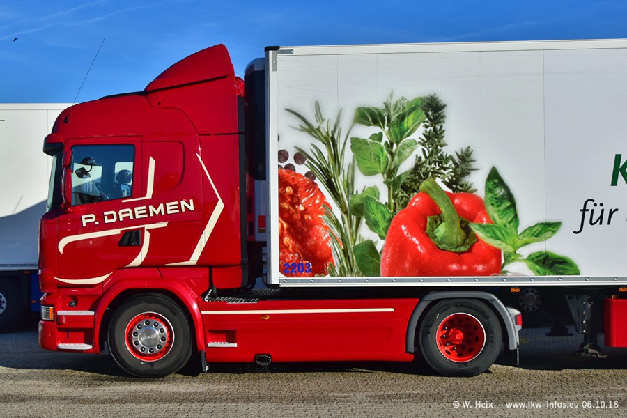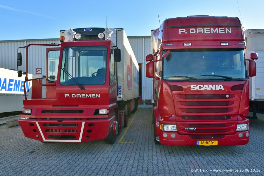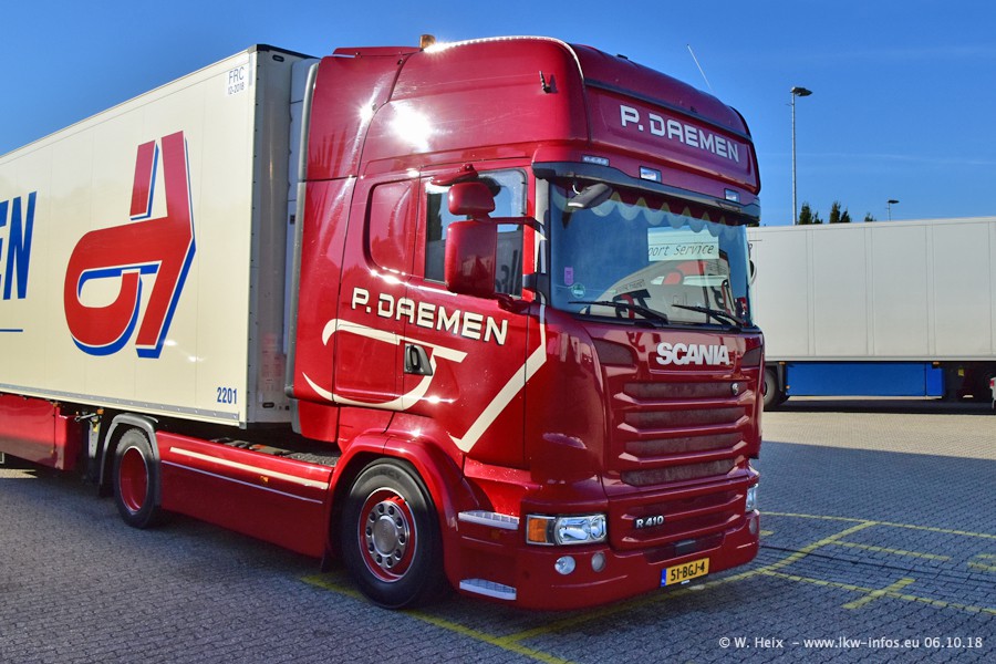 Inzwischen gibt es mehrere neue SCANIA S NextGen, einen schwarznen SCANIA P 280 NextGen und einige neue DAF New XF Euro 6. Bei diesem Besuch war ein sehr großer Teil der LKW zuhause und somit konnte ich auch viele der neuen DAF und SCANIA fotografieren. Die sechs SCANIA R 410 Streamline sind inzwischen auch fertig beschriftet (Greenyard). Diesmal habe ich die Bilder sortiert nach P. Daemen, Greenyard und Scheuten.