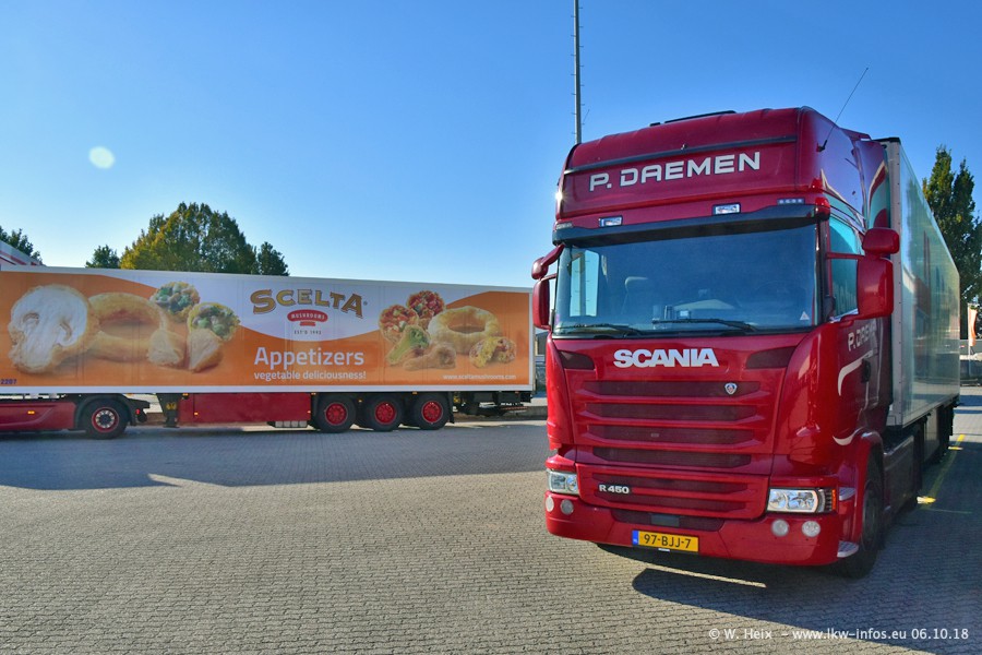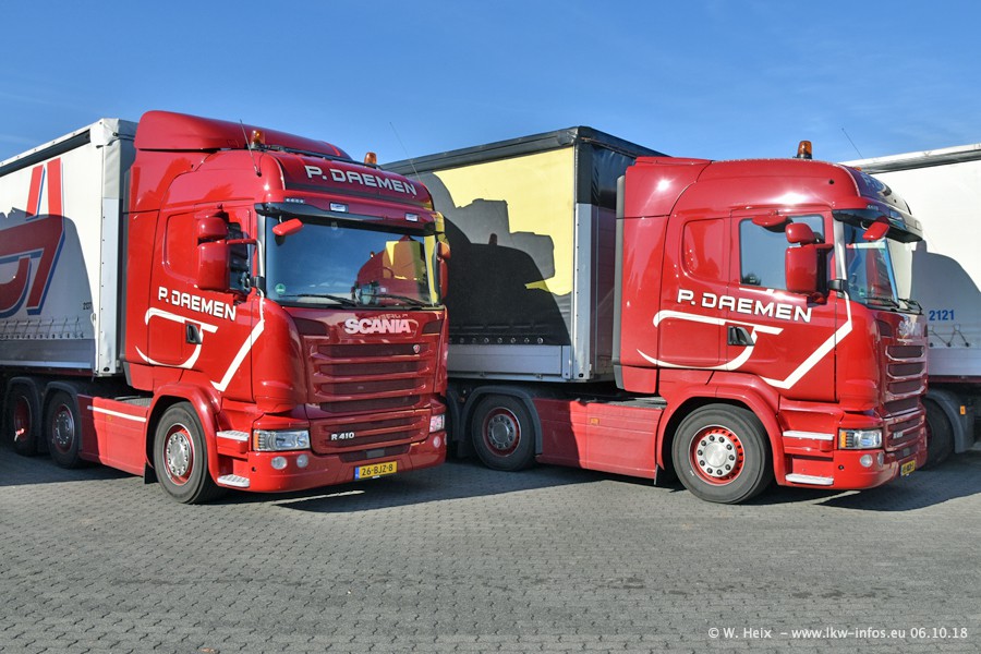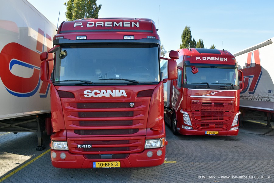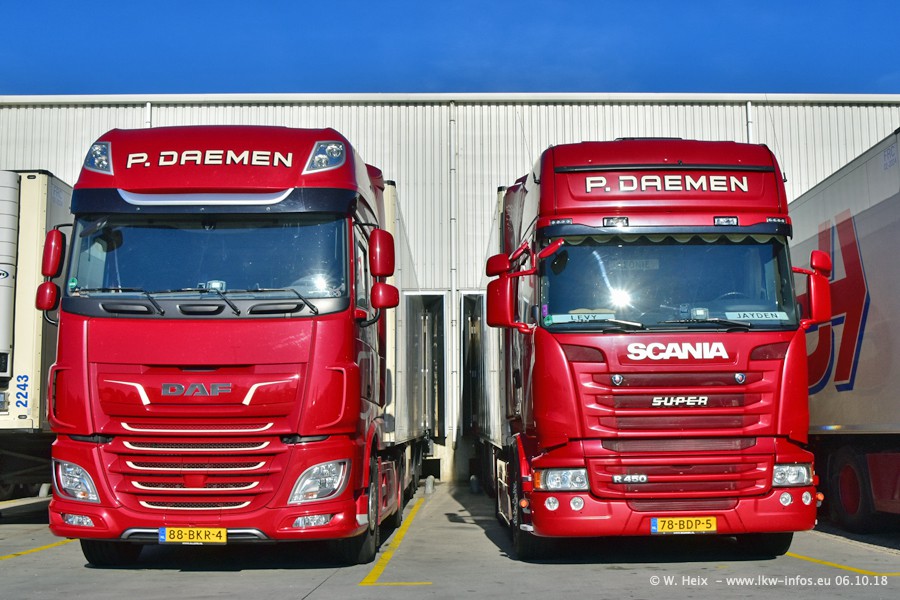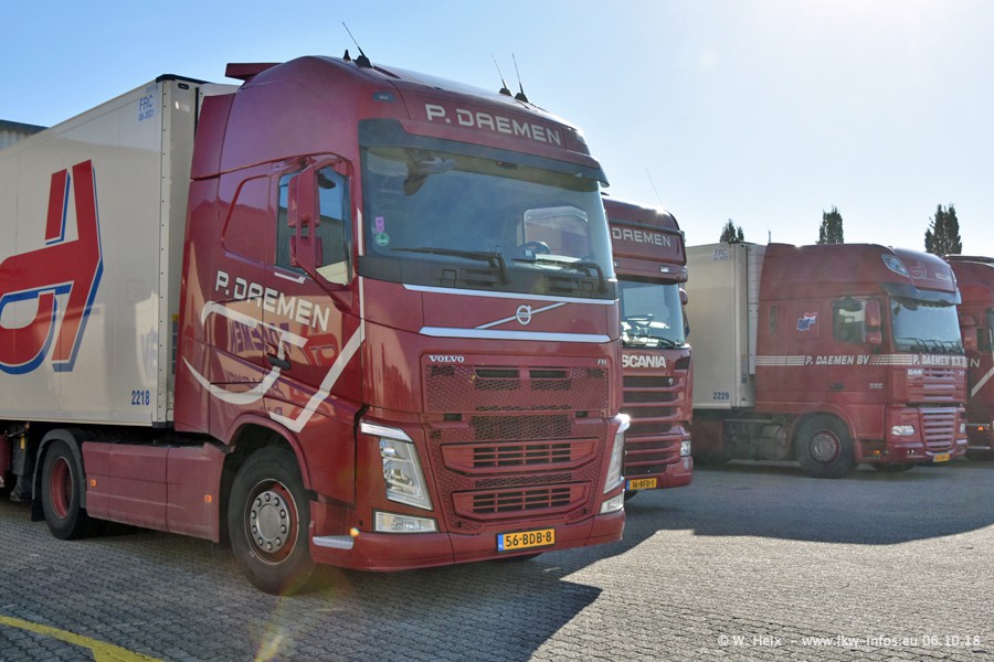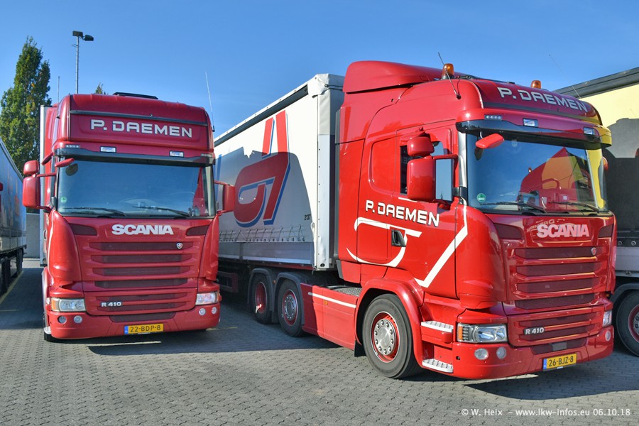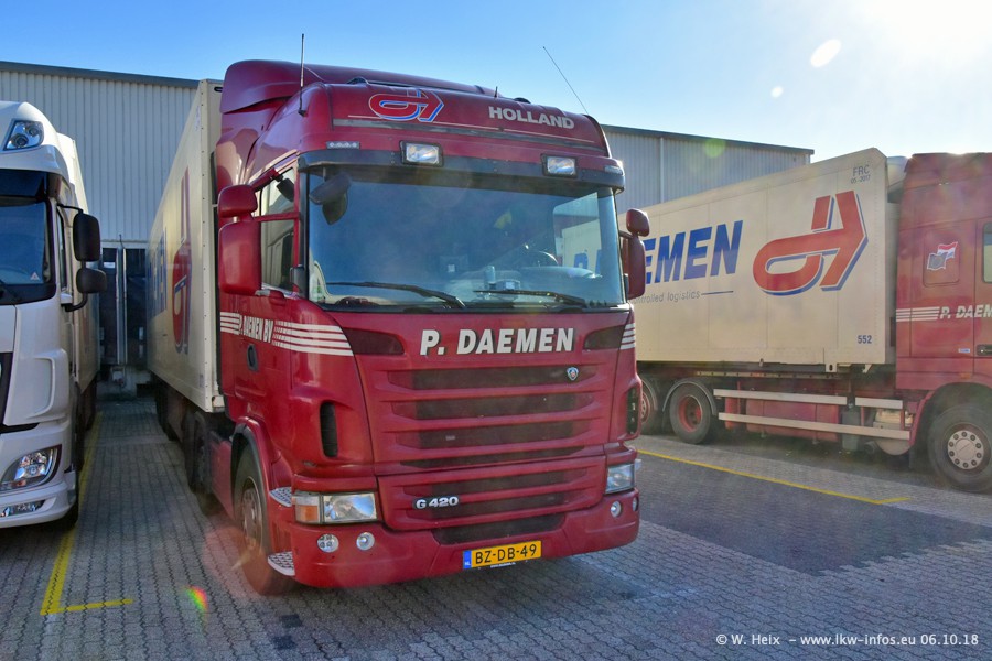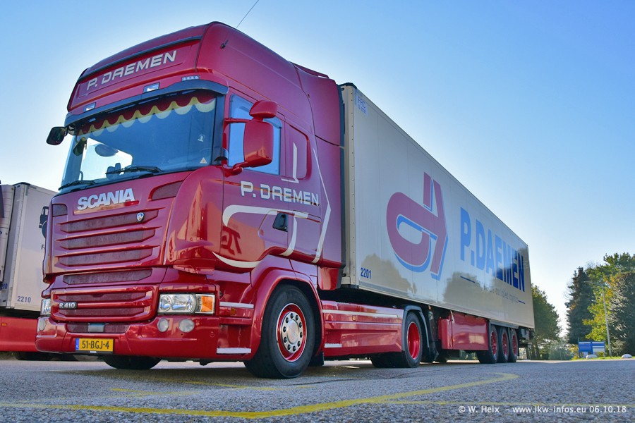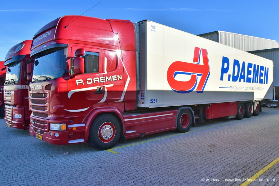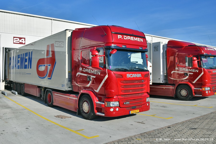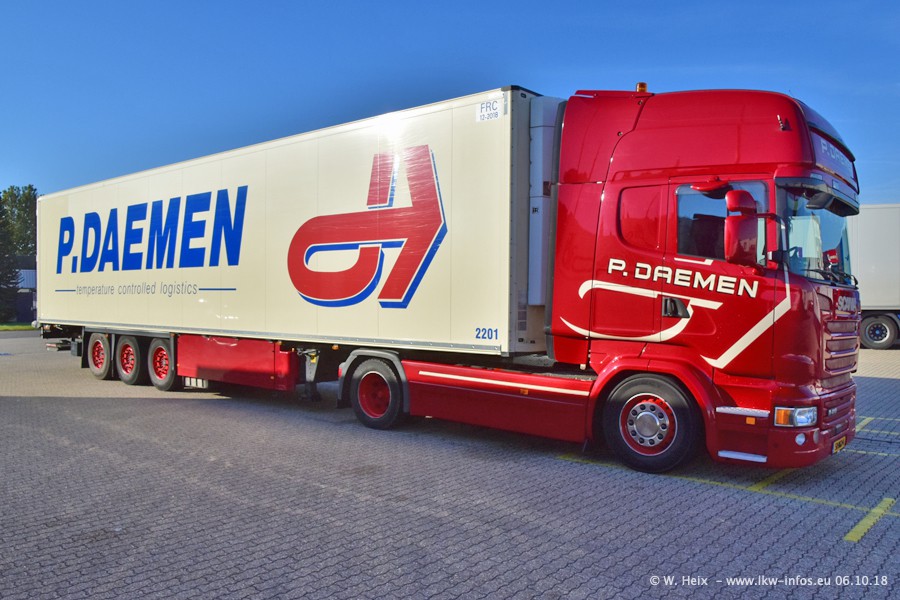 Inzwischen gibt es mehrere neue SCANIA S NextGen, einen schwarznen SCANIA P 280 NextGen und einige neue DAF New XF Euro 6. Bei diesem Besuch war ein sehr großer Teil der LKW zuhause und somit konnte ich auch viele der neuen DAF und SCANIA fotografieren. Die sechs SCANIA R 410 Streamline sind inzwischen auch fertig beschriftet (Greenyard). Diesmal habe ich die Bilder sortiert nach P. Daemen, Greenyard und Scheuten.