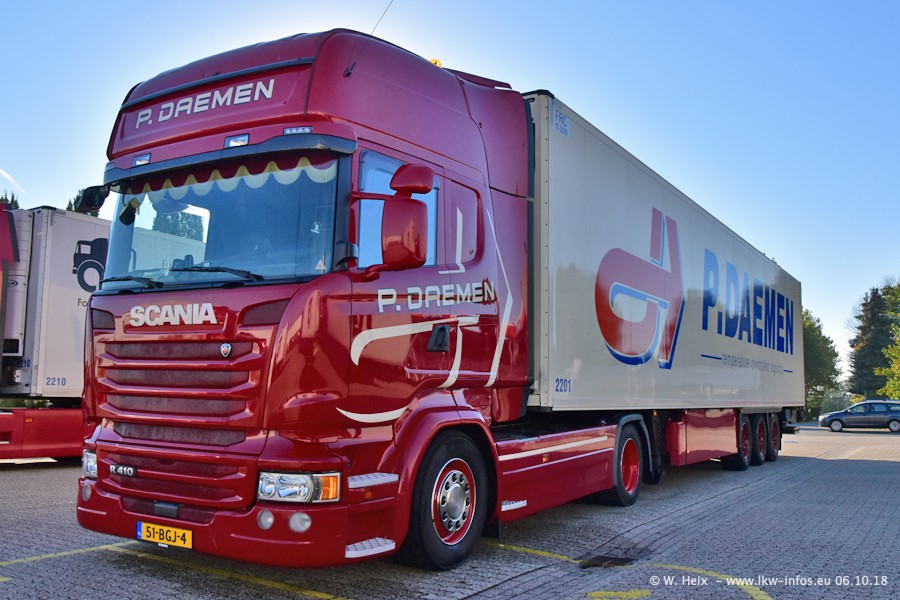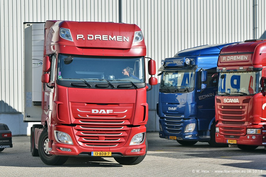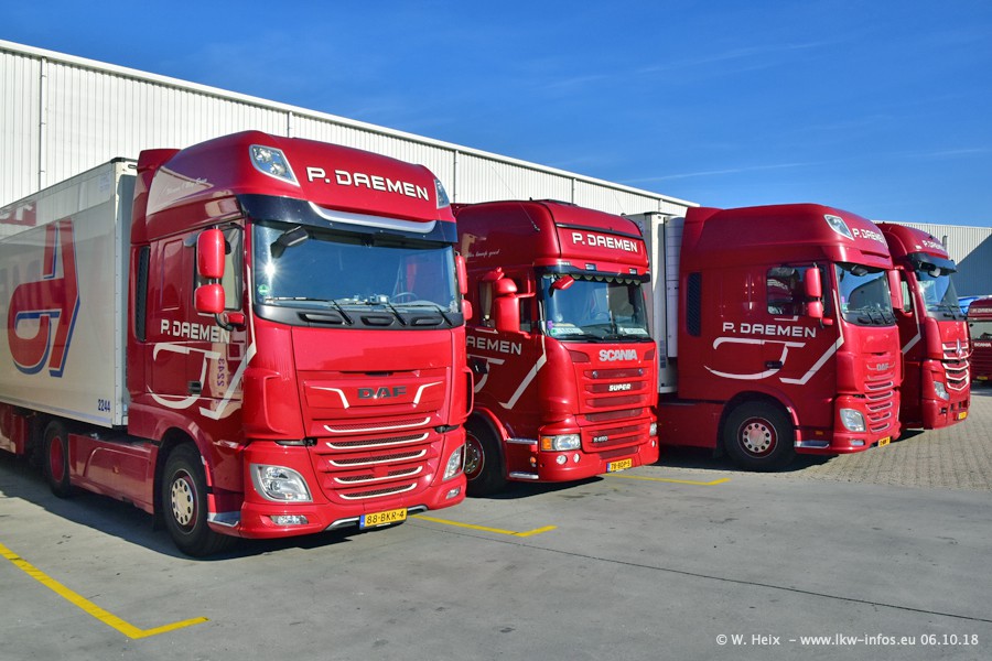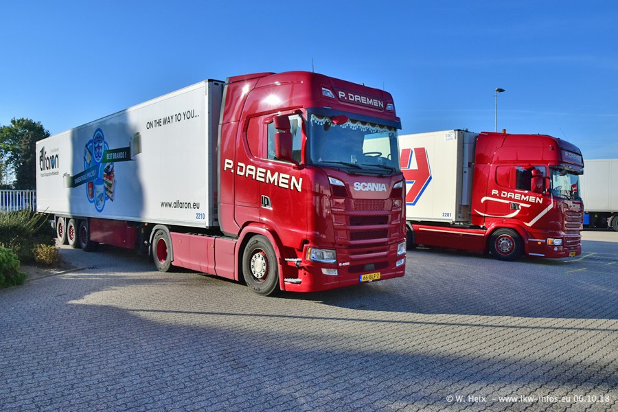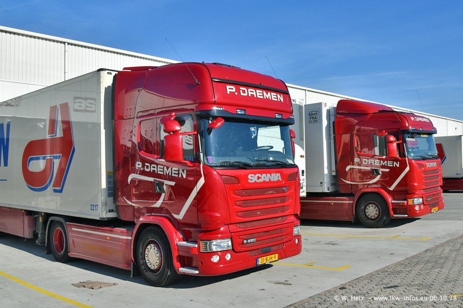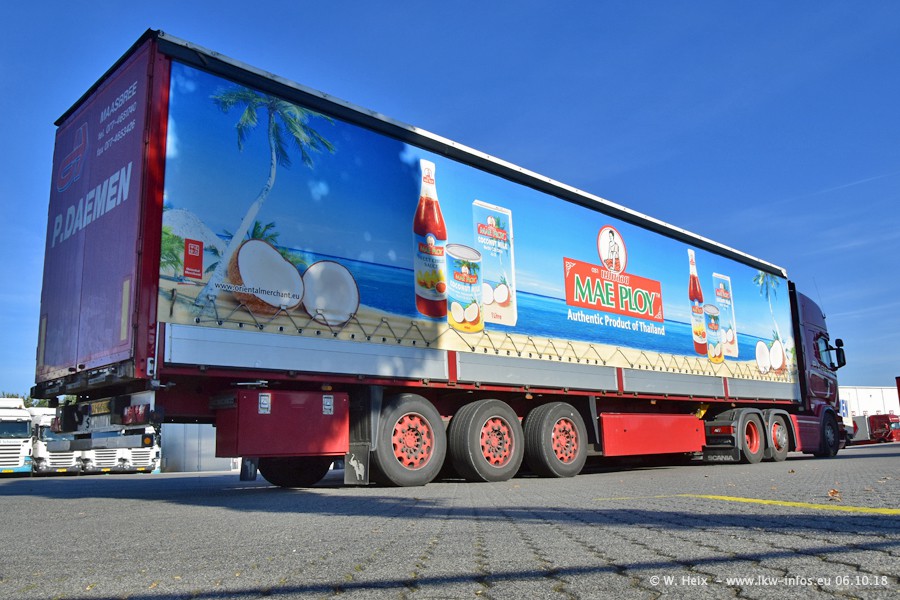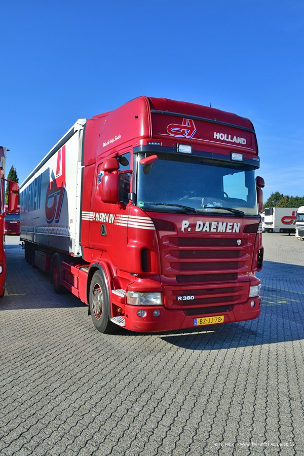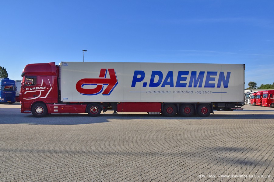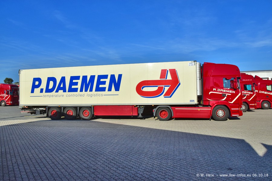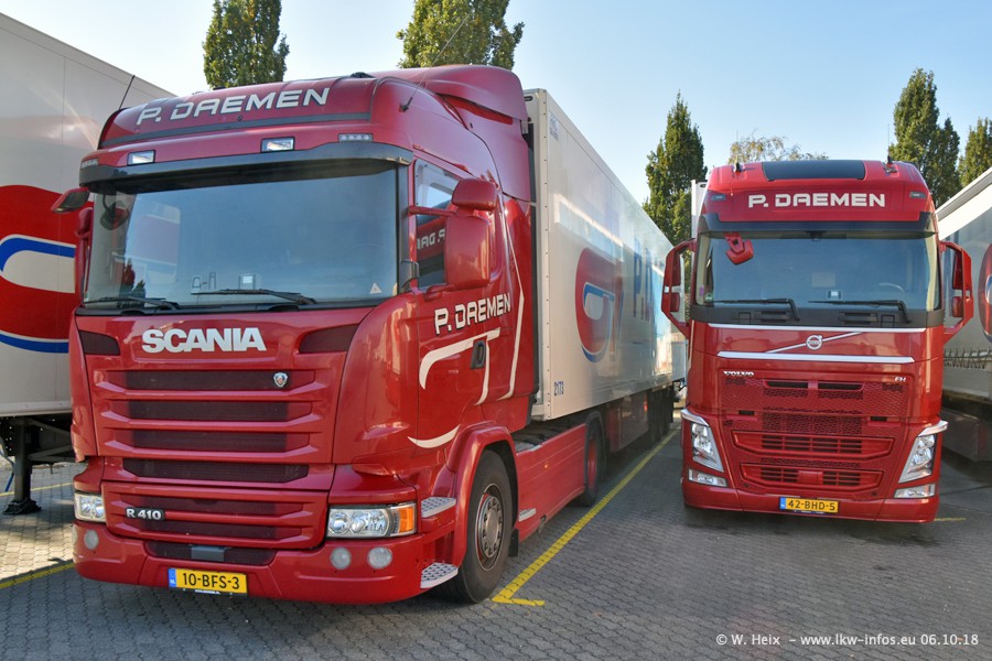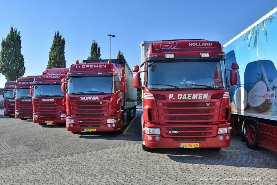 Inzwischen gibt es mehrere neue SCANIA S NextGen, einen schwarznen SCANIA P 280 NextGen und einige neue DAF New XF Euro 6. Bei diesem Besuch war ein sehr großer Teil der LKW zuhause und somit konnte ich auch viele der neuen DAF und SCANIA fotografieren. Die sechs SCANIA R 410 Streamline sind inzwischen auch fertig beschriftet (Greenyard). Diesmal habe ich die Bilder sortiert nach P. Daemen, Greenyard und Scheuten.