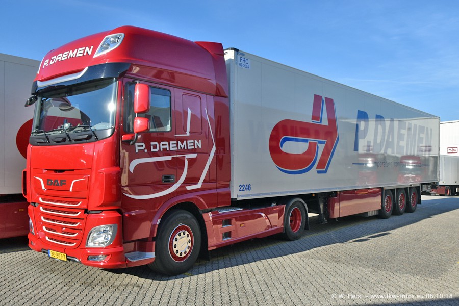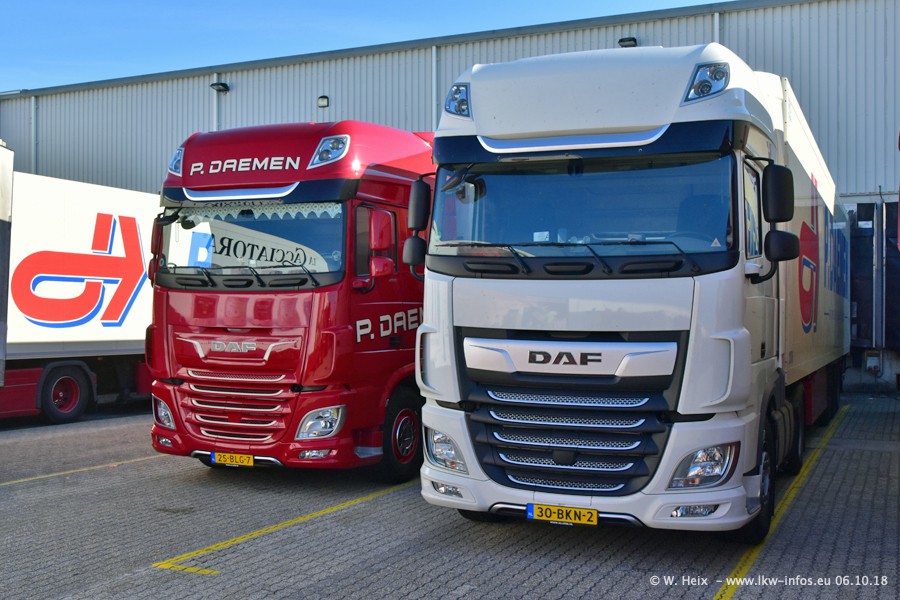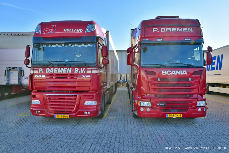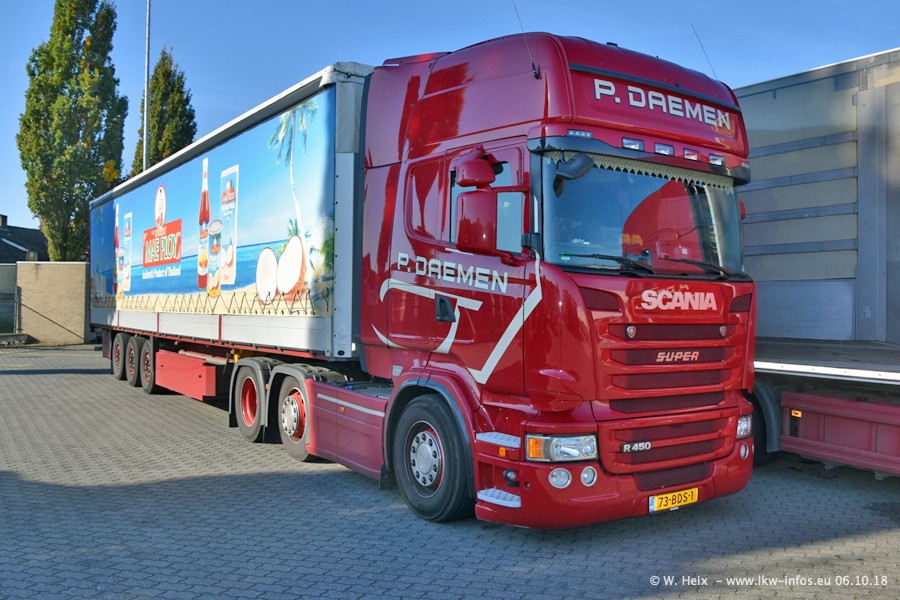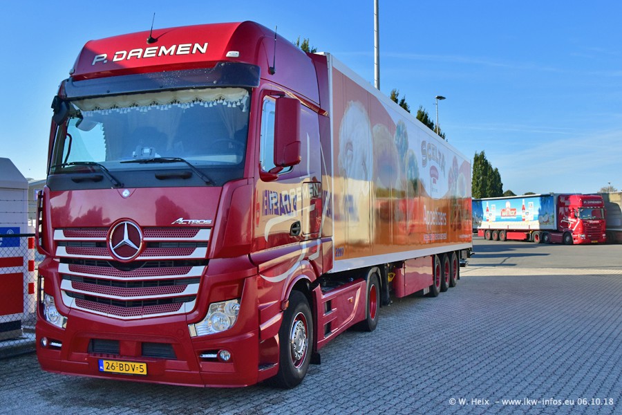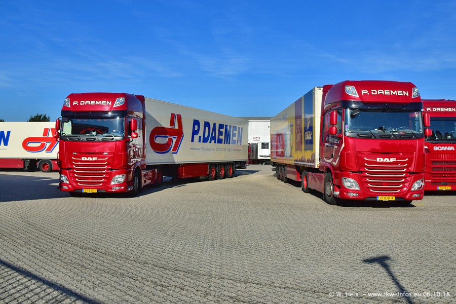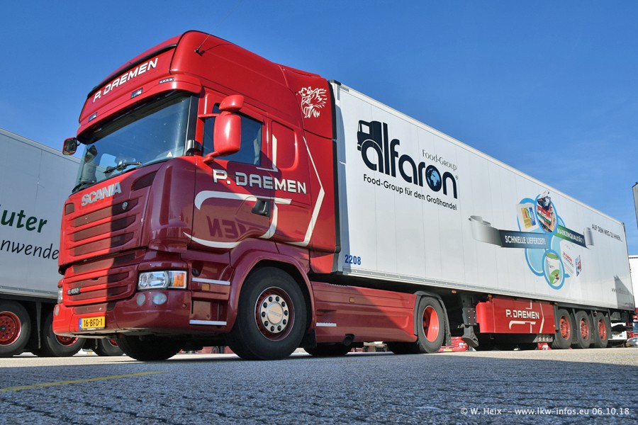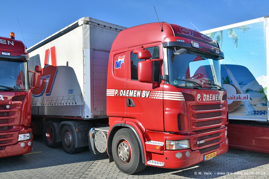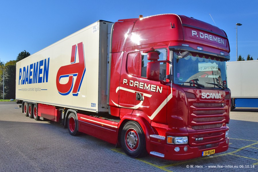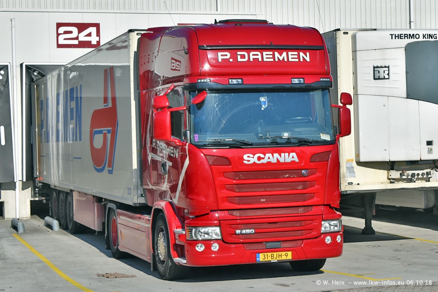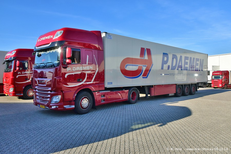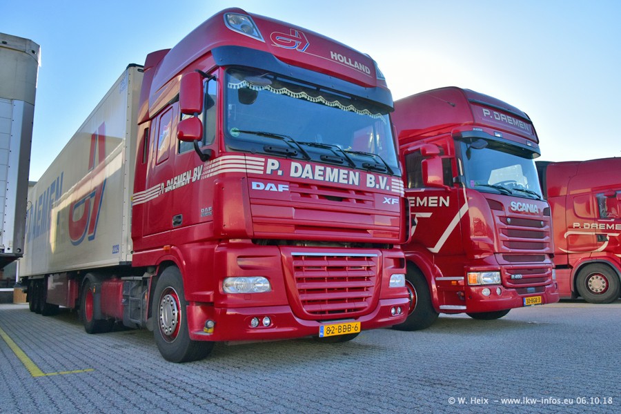Inzwischen gibt es mehrere neue SCANIA S NextGen, einen schwarznen SCANIA P 280 NextGen und einige neue DAF New XF Euro 6. Bei diesem Besuch war ein sehr großer Teil der LKW zuhause und somit konnte ich auch viele der neuen DAF und SCANIA fotografieren. Die sechs SCANIA R 410 Streamline sind inzwischen auch fertig beschriftet (Greenyard). Diesmal habe ich die Bilder sortiert nach P. Daemen, Greenyard und Scheuten.