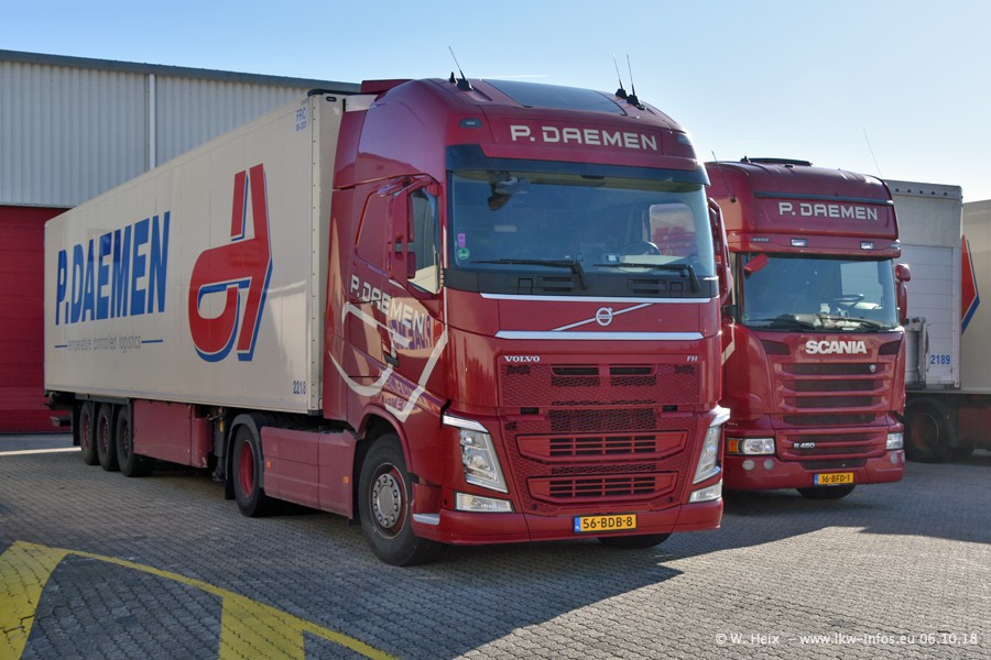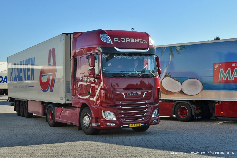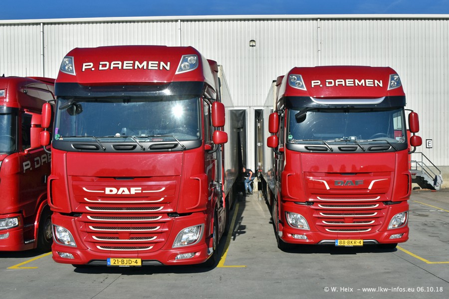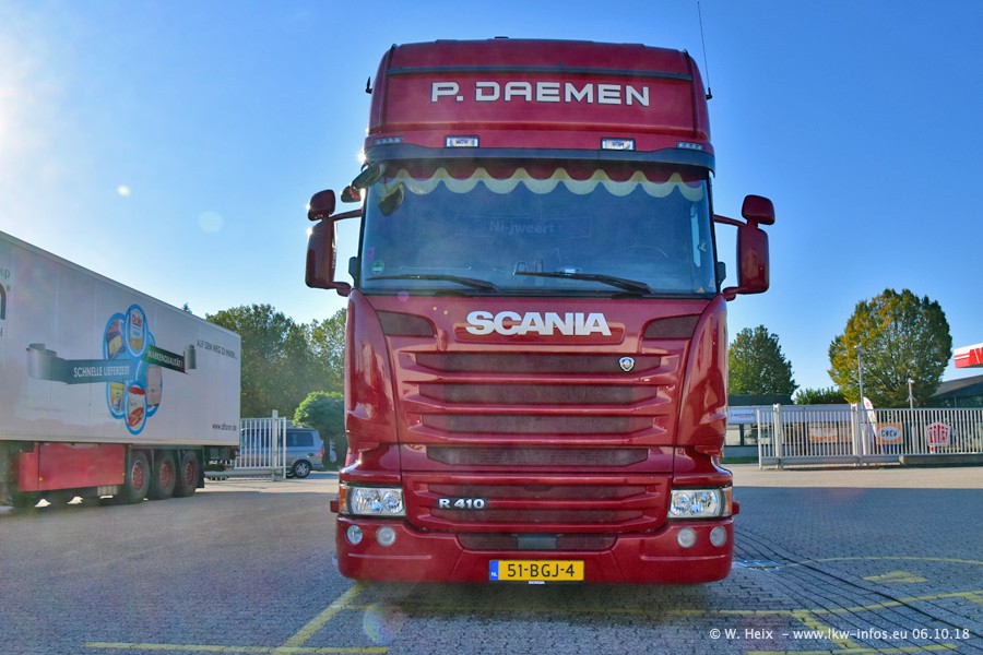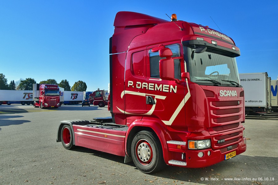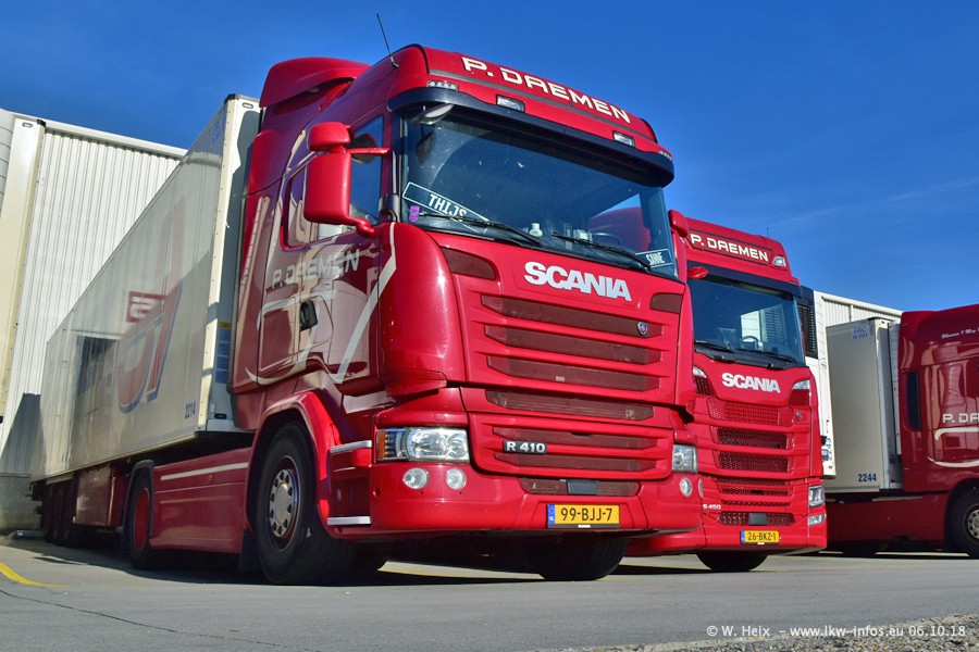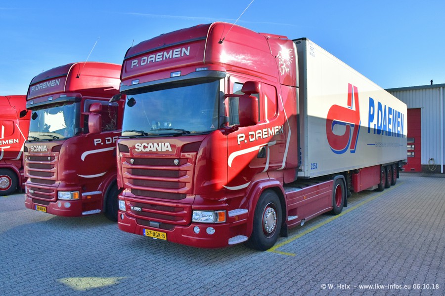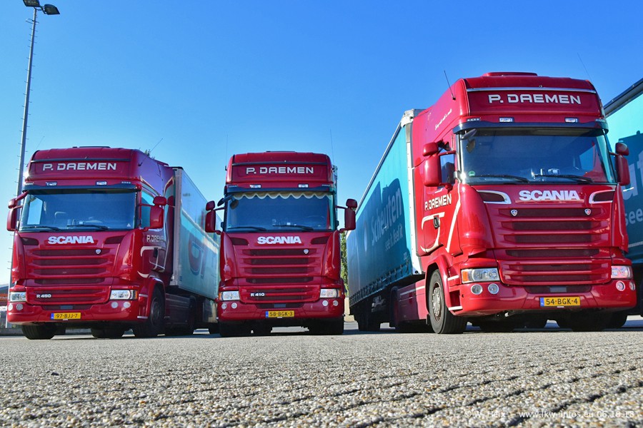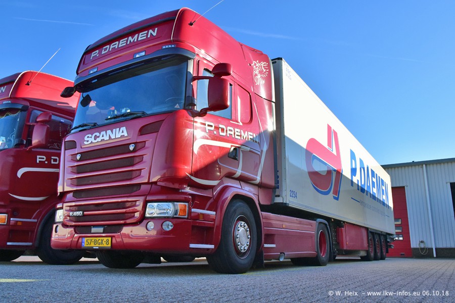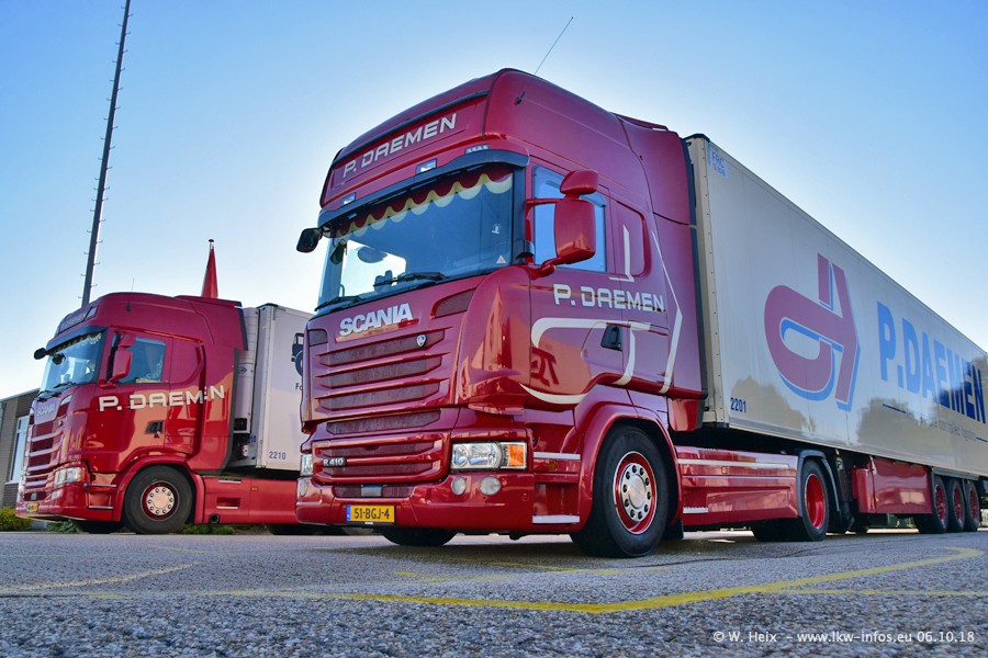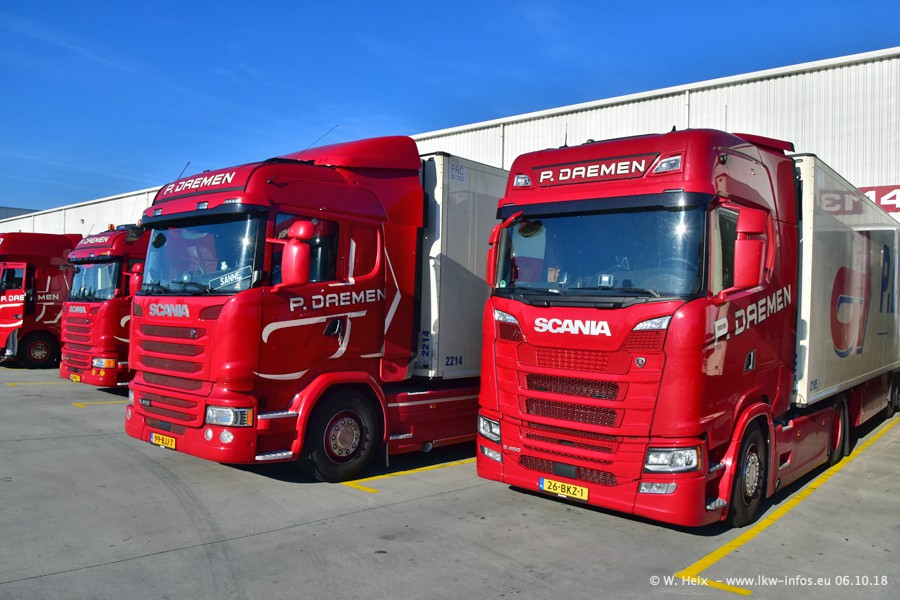 Inzwischen gibt es mehrere neue SCANIA S NextGen, einen schwarznen SCANIA P 280 NextGen und einige neue DAF New XF Euro 6. Bei diesem Besuch war ein sehr großer Teil der LKW zuhause und somit konnte ich auch viele der neuen DAF und SCANIA fotografieren. Die sechs SCANIA R 410 Streamline sind inzwischen auch fertig beschriftet (Greenyard). Diesmal habe ich die Bilder sortiert nach P. Daemen, Greenyard und Scheuten.