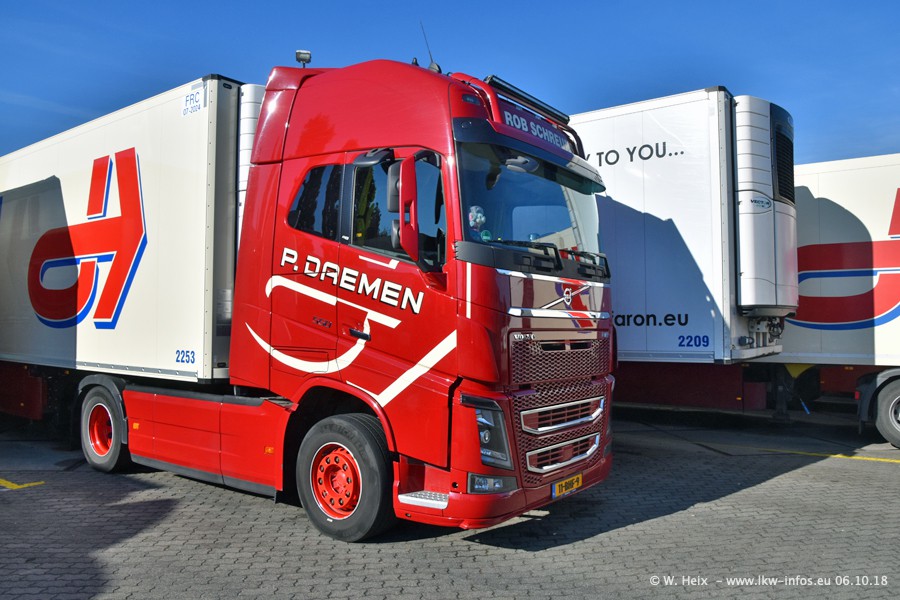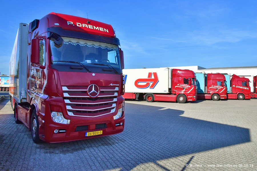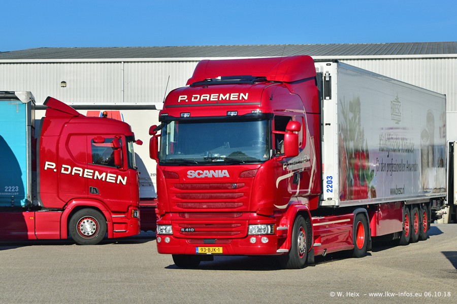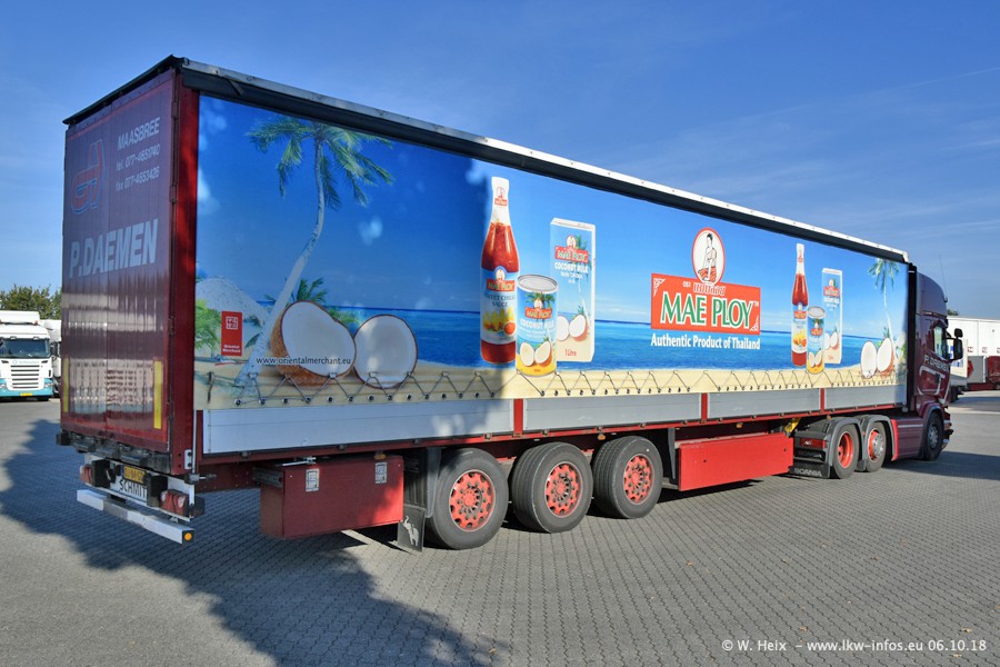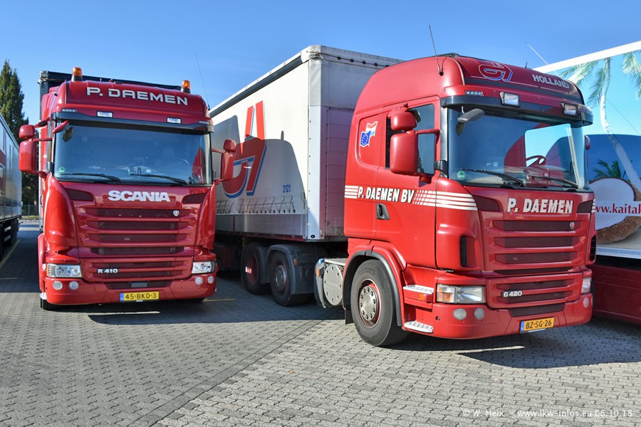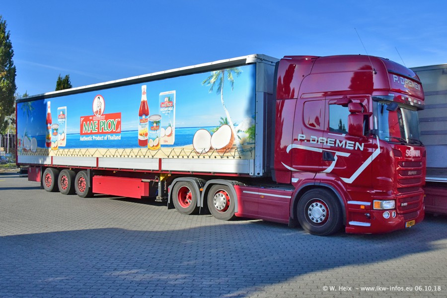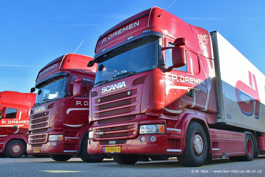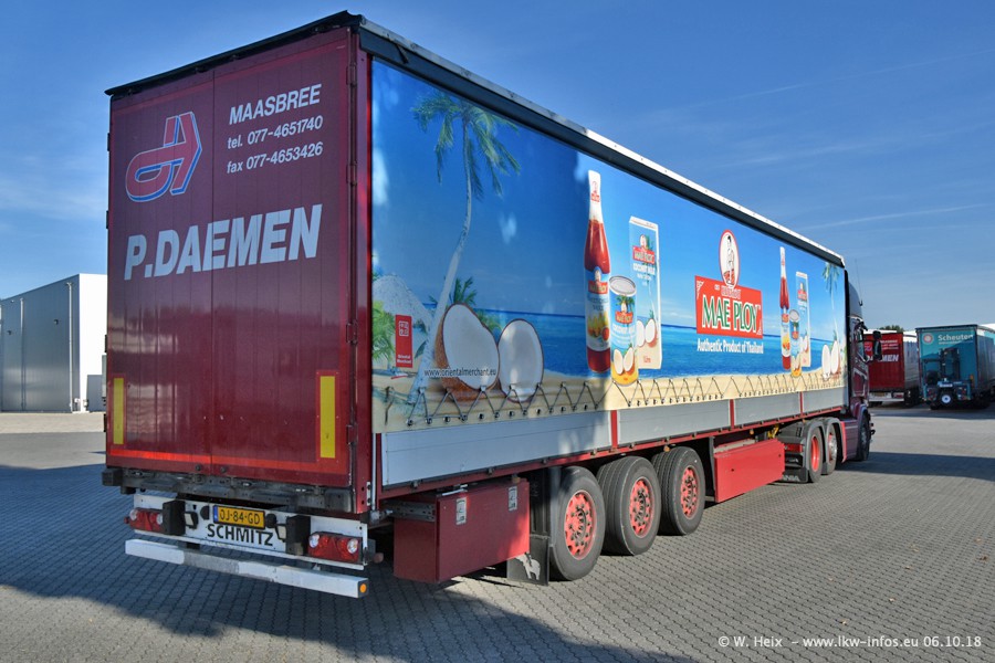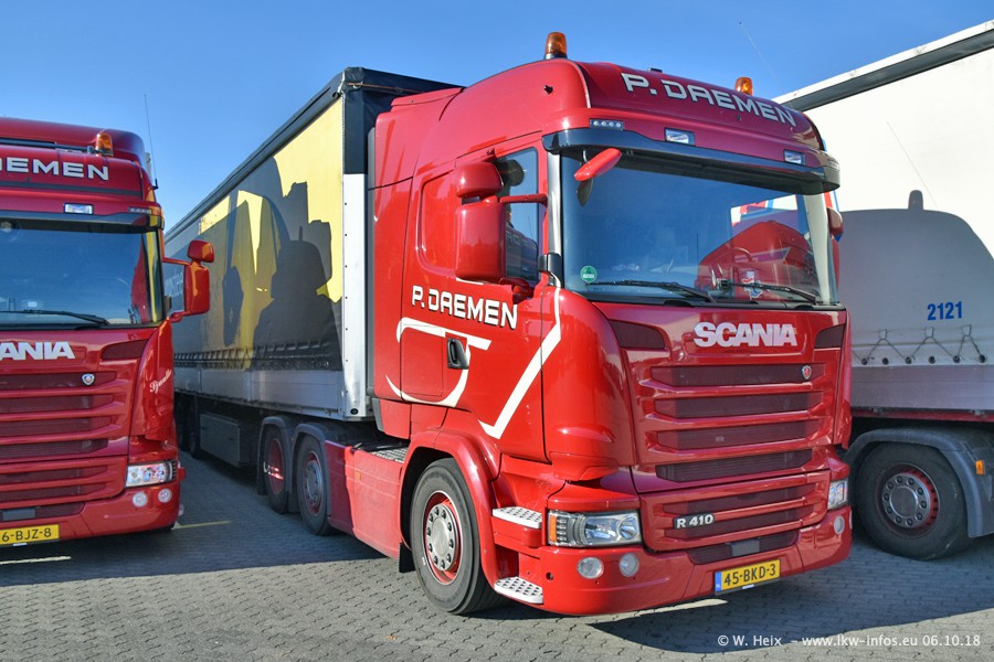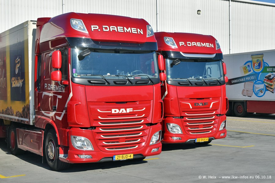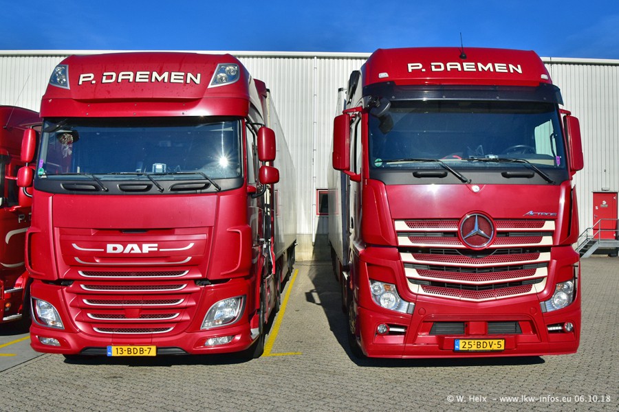 Inzwischen gibt es mehrere neue SCANIA S NextGen, einen schwarznen SCANIA P 280 NextGen und einige neue DAF New XF Euro 6. Bei diesem Besuch war ein sehr großer Teil der LKW zuhause und somit konnte ich auch viele der neuen DAF und SCANIA fotografieren. Die sechs SCANIA R 410 Streamline sind inzwischen auch fertig beschriftet (Greenyard). Diesmal habe ich die Bilder sortiert nach P. Daemen, Greenyard und Scheuten.