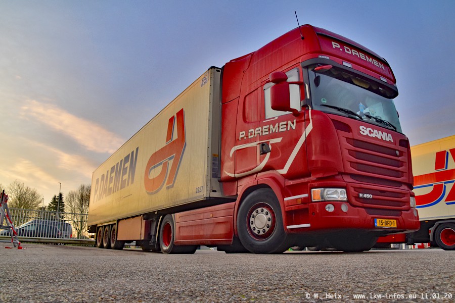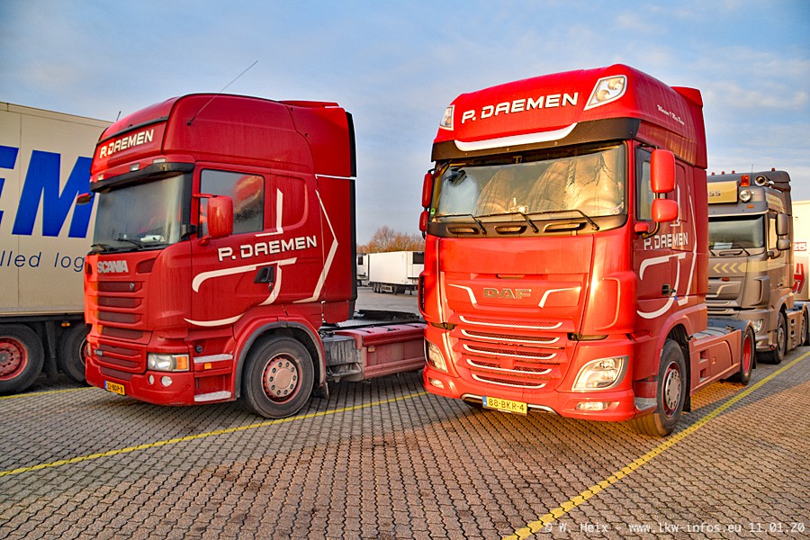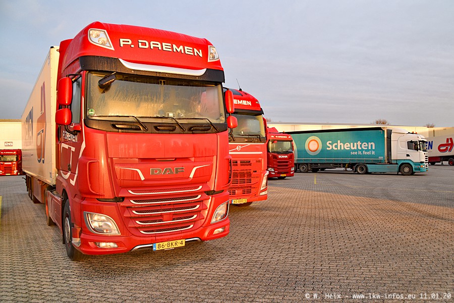 Besonders die ersten 50 Bilder sind farblich sehr schön geworden, denn Ich war sehr früh, kurz nach Sonnenaufgang, bei P. Daemen auf dem Hof. Kurz danach zog es sich weider zu. Am Ende der Galerie sind wieder einige Fahrzeuge von Chartern (Subunternehmern) zu sehen. Dies war übrigens mein 41. Besuch bei P. Daemen. Keine Spedition besuche ich länger.