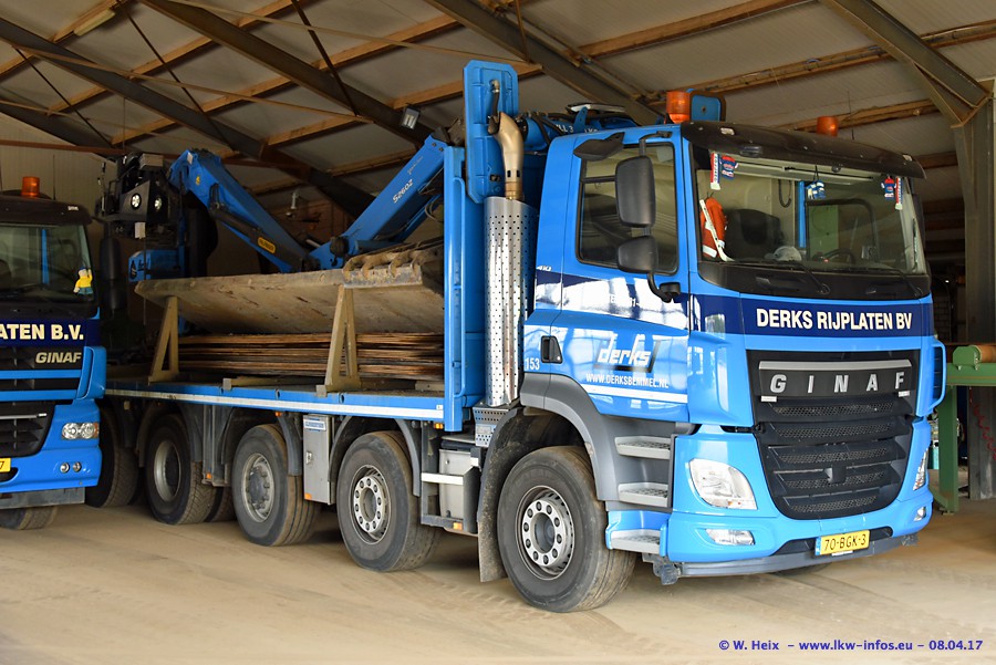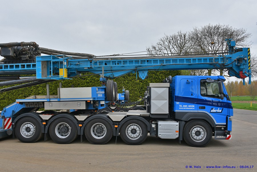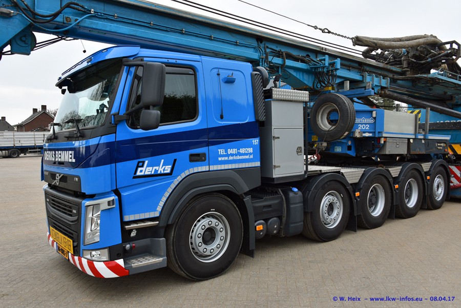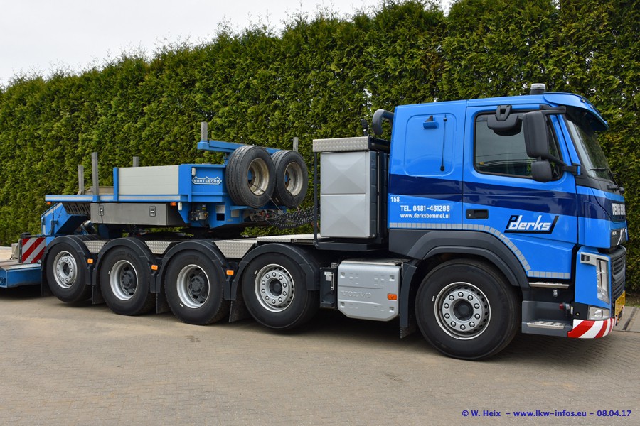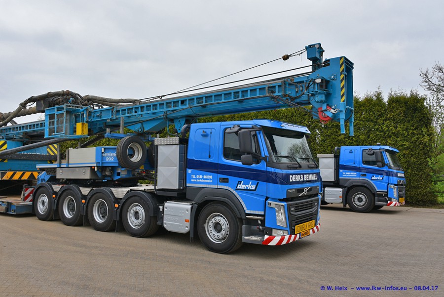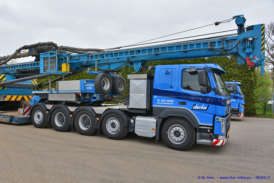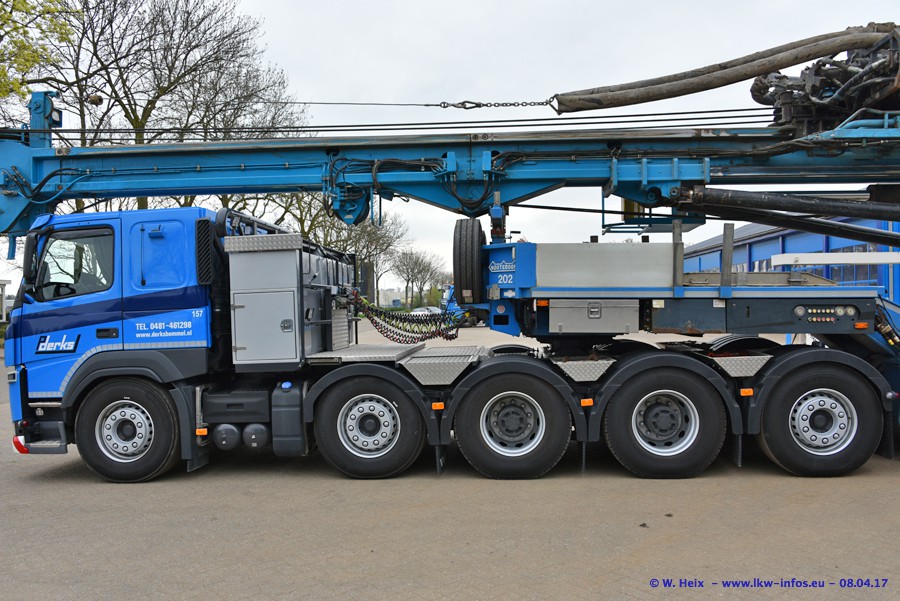 Mein letzter Besuch bei Derks war im Februar 2011. Nach dieser langen Pause war ich heute wieder bei Derks. Neu sind zwei Volvo FM 04 Euro 6 10x4, die seit einigen Monaten im Fuhrpark sind und die beiden bisherigen Schwertransport-Zugmaschinen ersetzen. Neu sind auch einige 5-Achs- Kipper von GINAF.