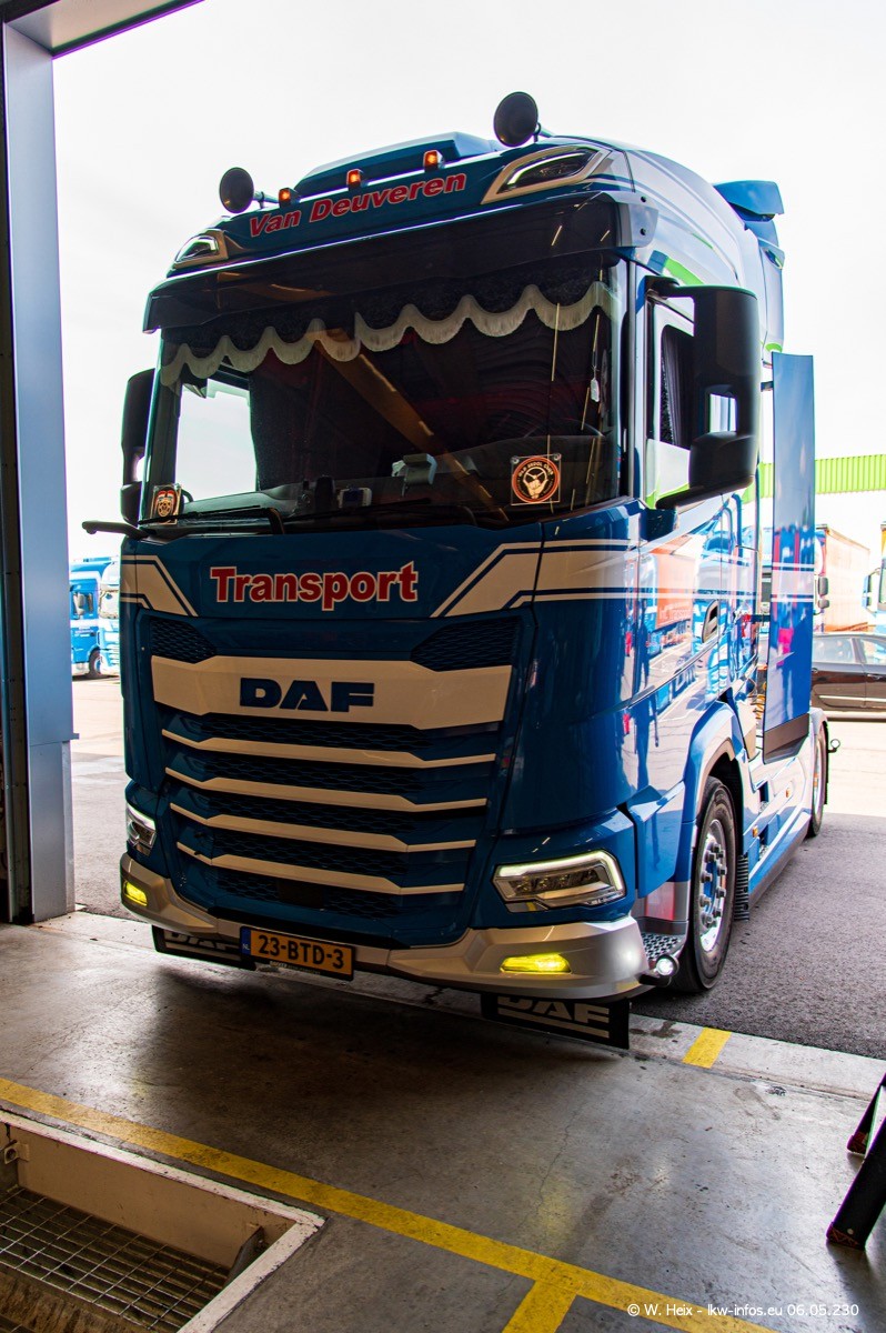 Inzwischen ist der Umzug auf das neue Gelände komplett abgeschlossen. Auf dem alten Gelände, das gegenüber liegt, wurden die Gebäude abgerissen und somit der Platz für die LKW und PKW der Fahrer erweitert. Die Fahrzeuge stehen jetzt auf beiden Plätzen. Neu sind mehrere VOLVOH FH 5, die ich teilweise im letzten Jahr schon fotografiert habe sowie mindestens drei DAF XG.