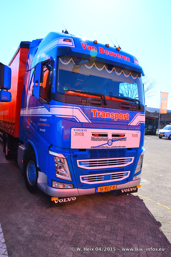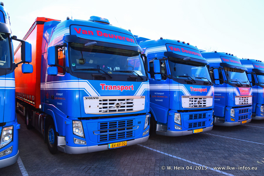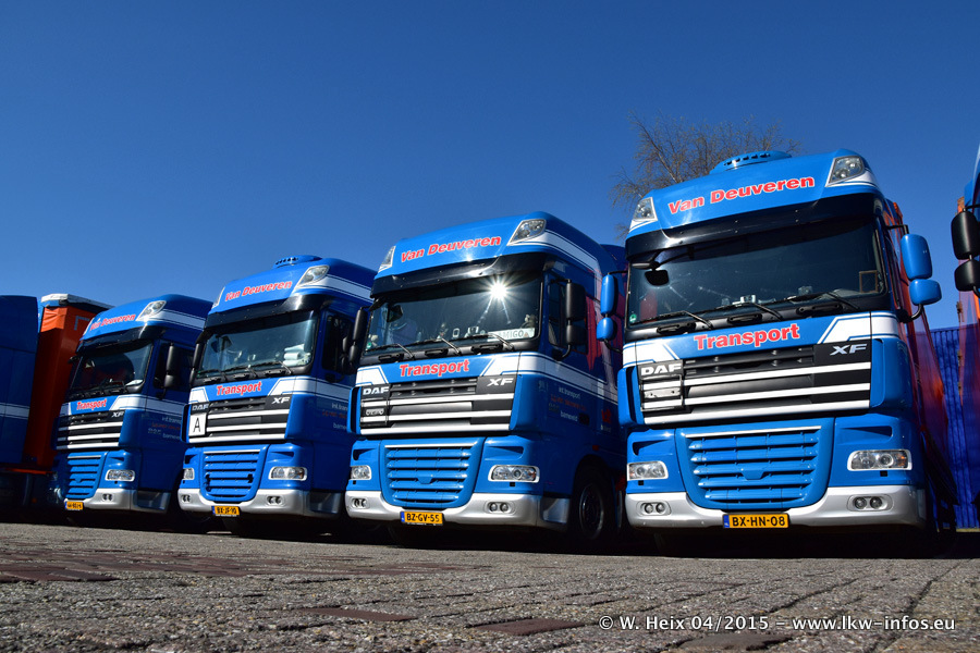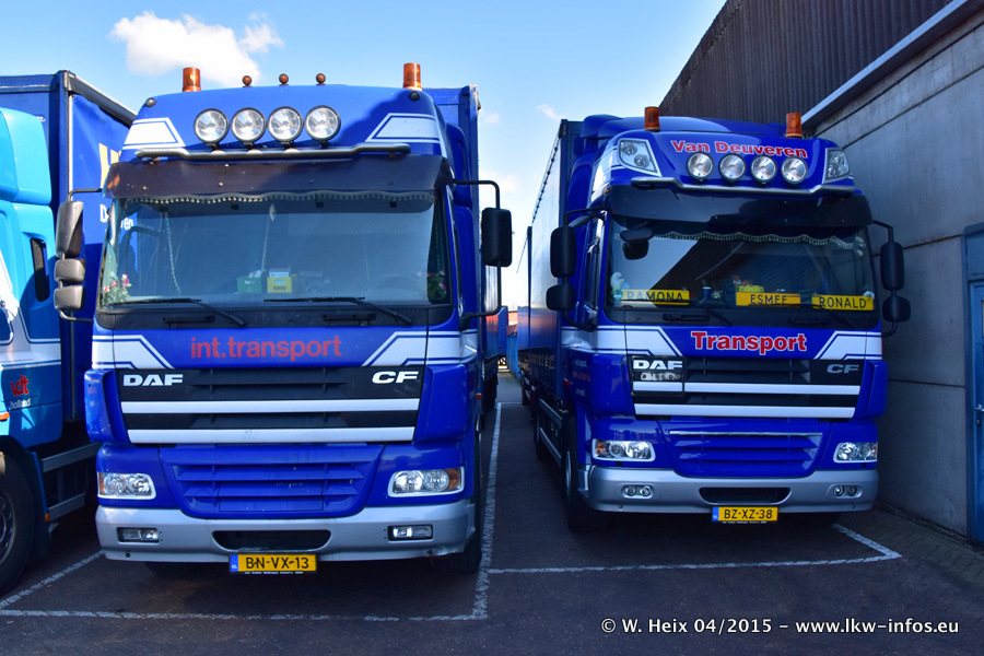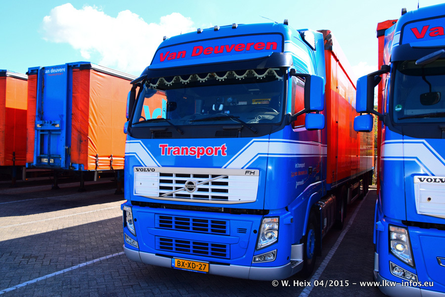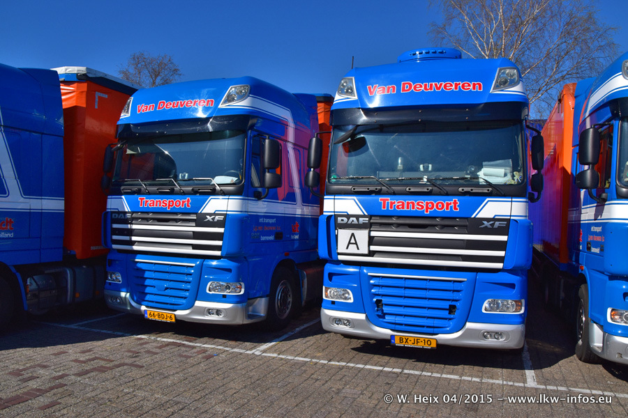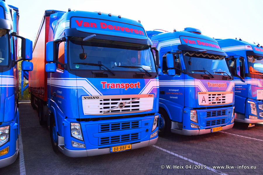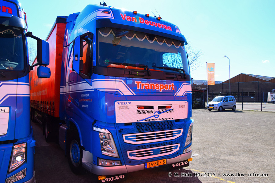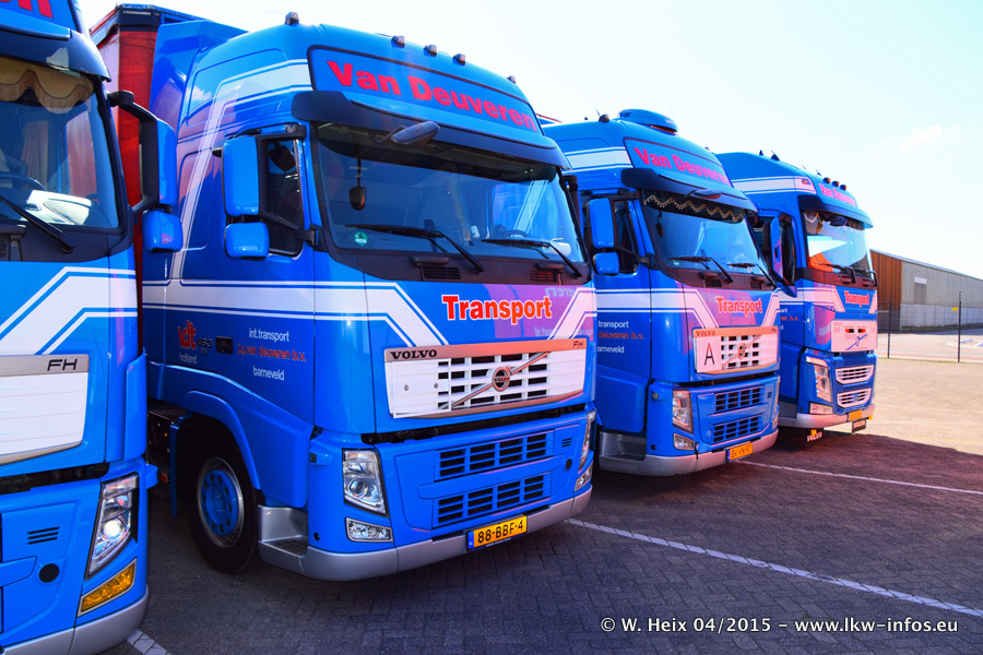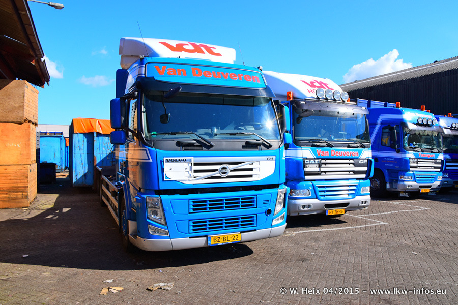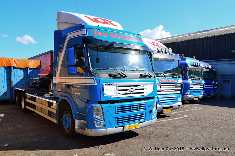 Seit meinem ersten Besuch bei van Deuveren im Januar 2014 sind einige LKW neu im Fuhrpark. Es gibt mindestens einen Volvo New FH (FH 4) und vier DAF XF 105 Euro 6. Drei davon standen auf dem Hof.
