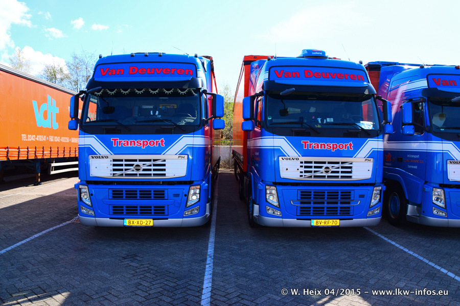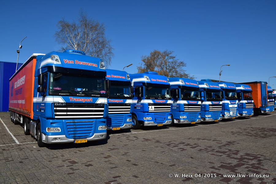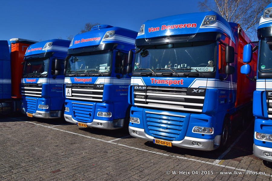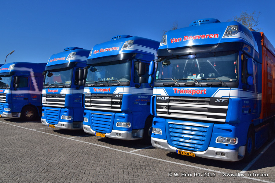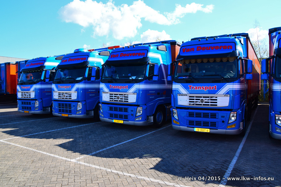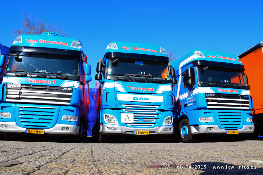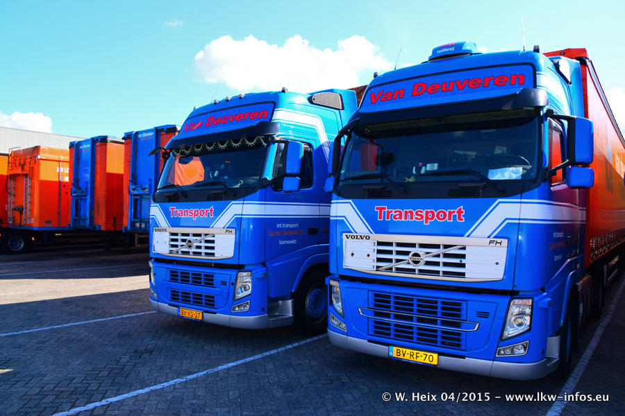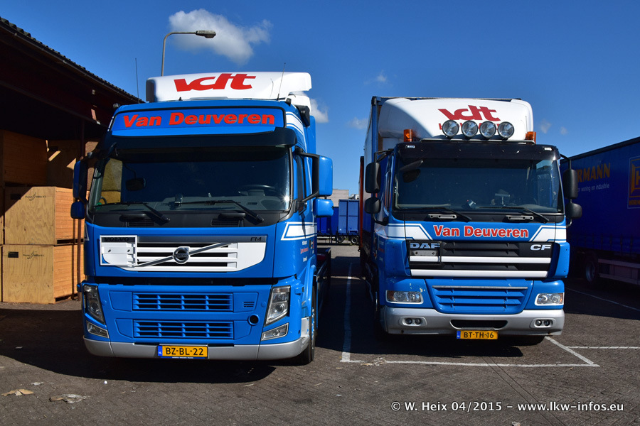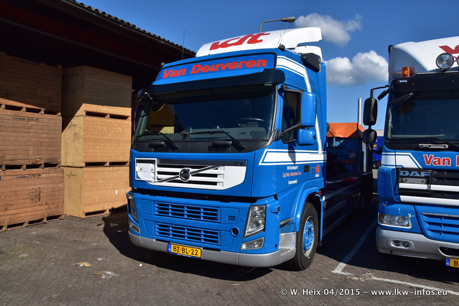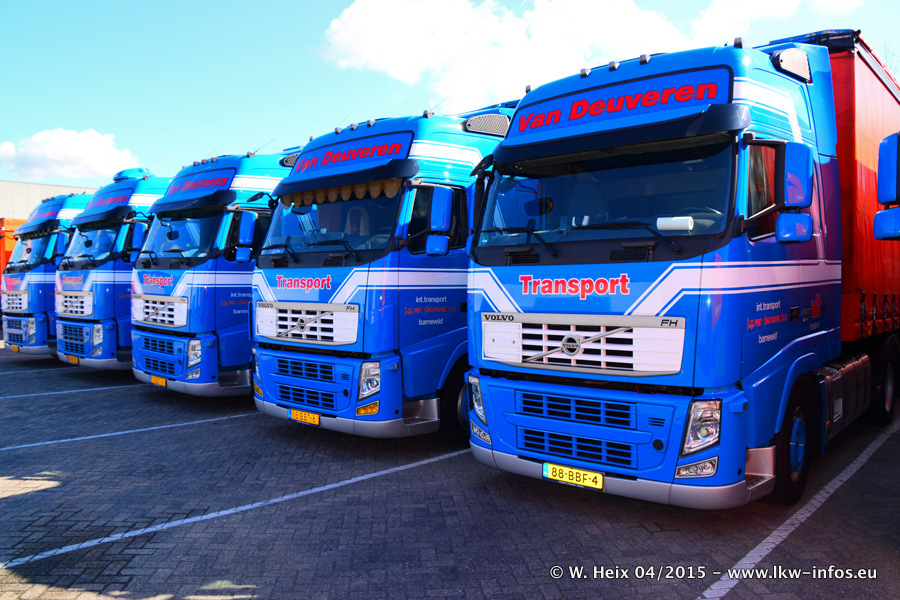 Seit meinem ersten Besuch bei van Deuveren im Januar 2014 sind einige LKW neu im Fuhrpark. Es gibt mindestens einen Volvo New FH (FH 4) und vier DAF XF 105 Euro 6. Drei davon standen auf dem Hof.